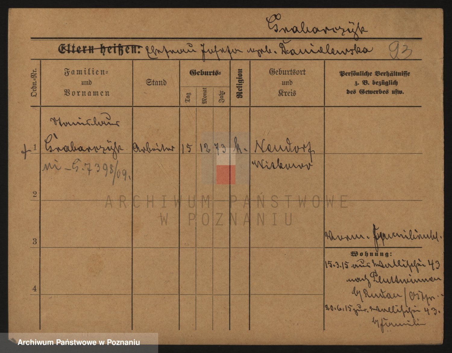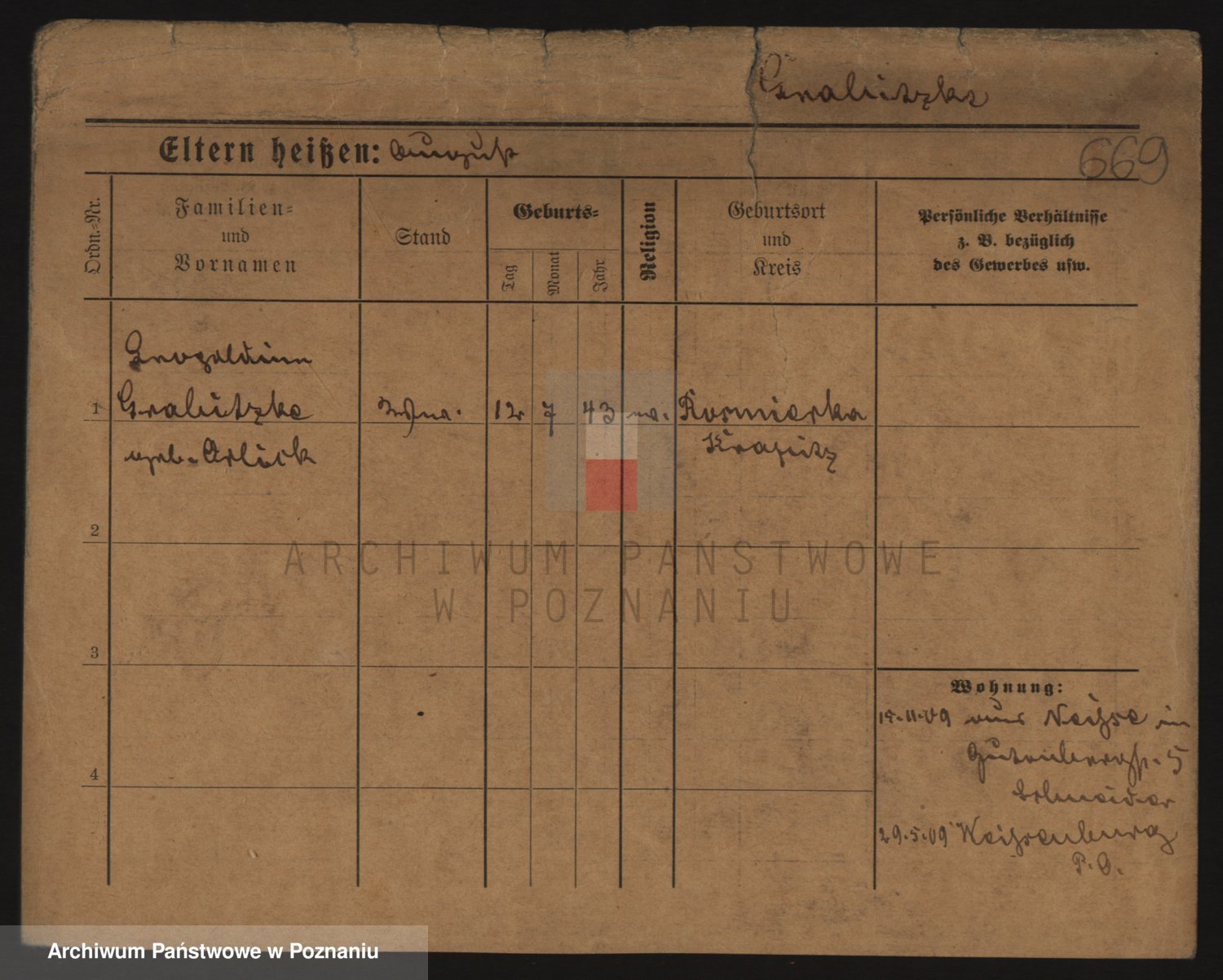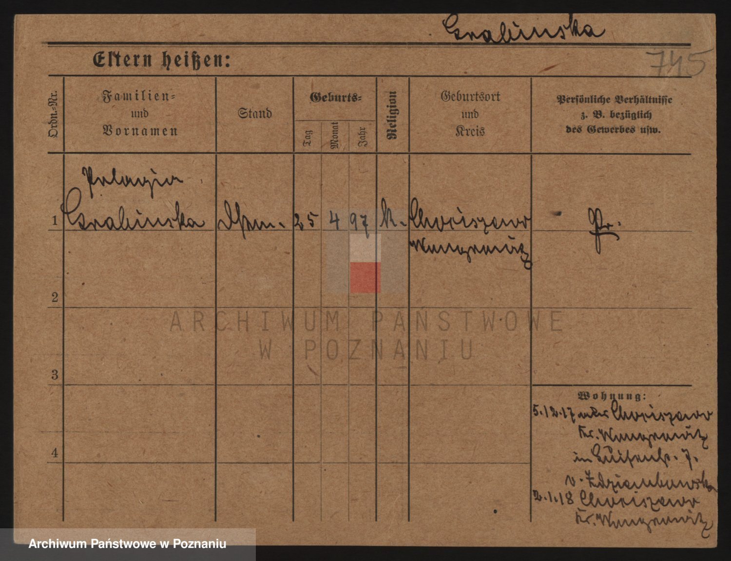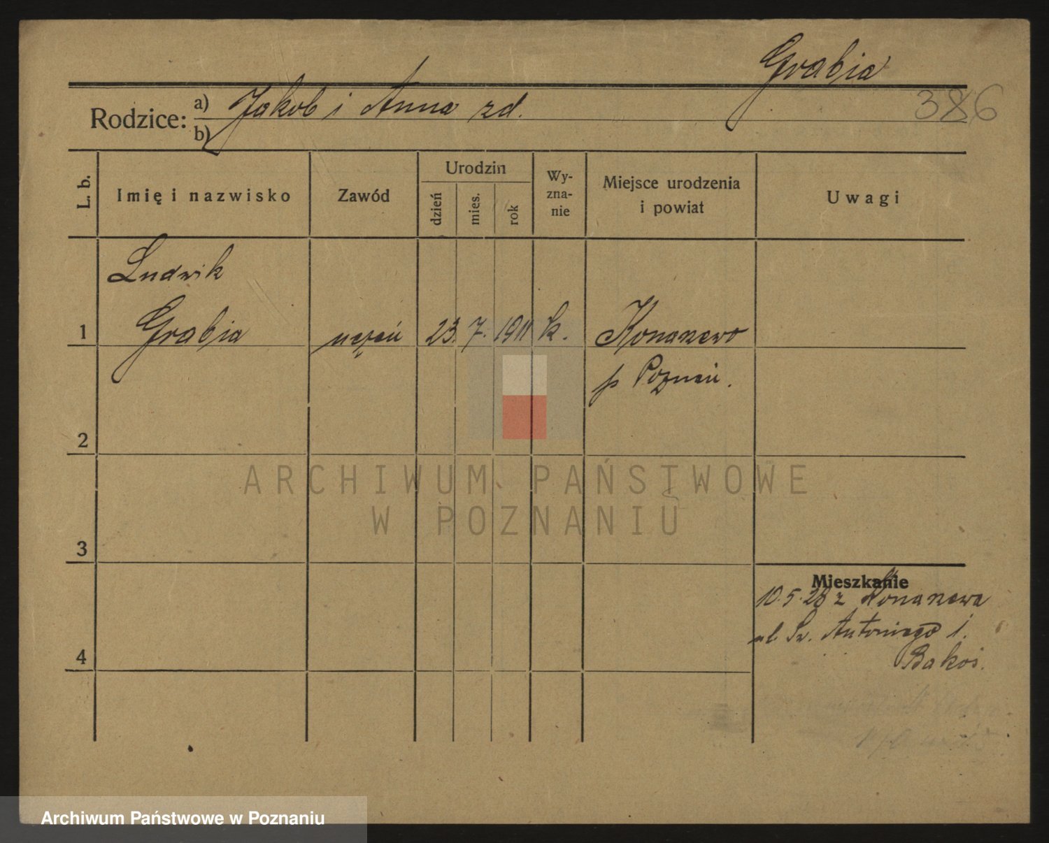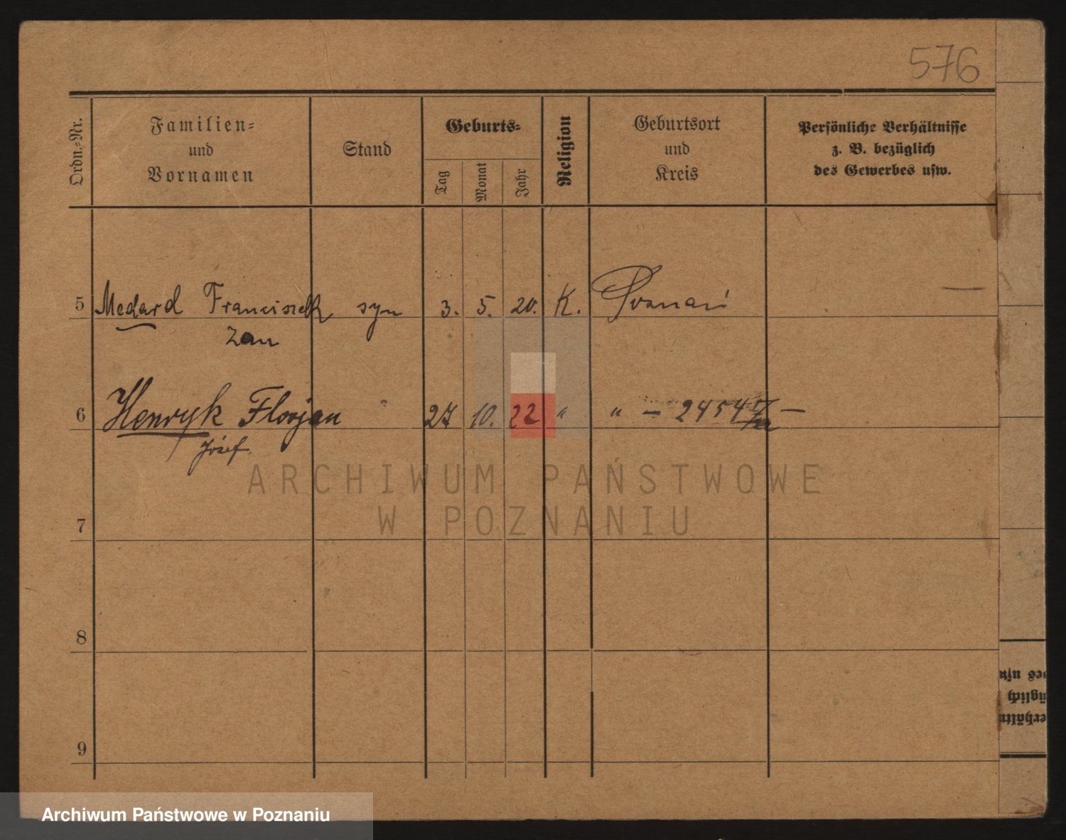 Podgląd karty osobowej dostępny jest po kliknięciu na nazwisko lub ikonkę karty. Można dokonywać powiększenia (ikony na górze) lub przechodzić między kolejnymi skanami (strzałki po bokach).