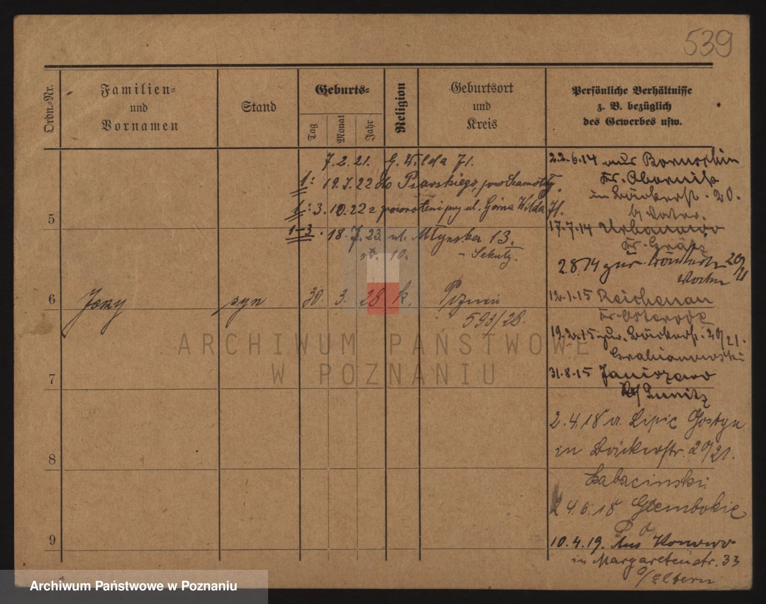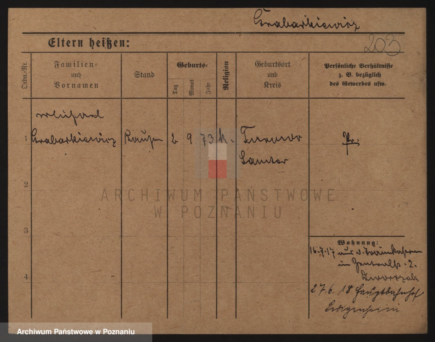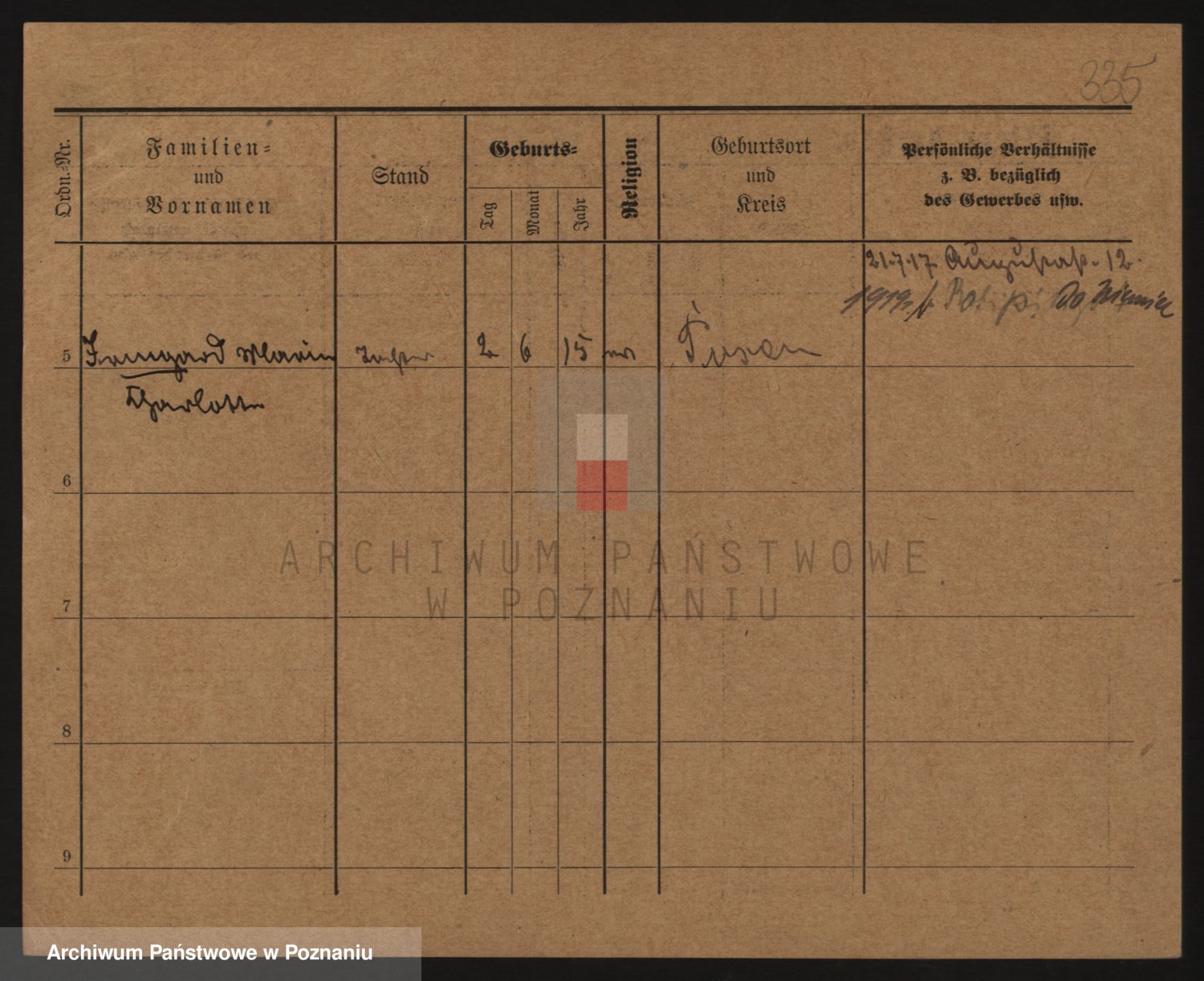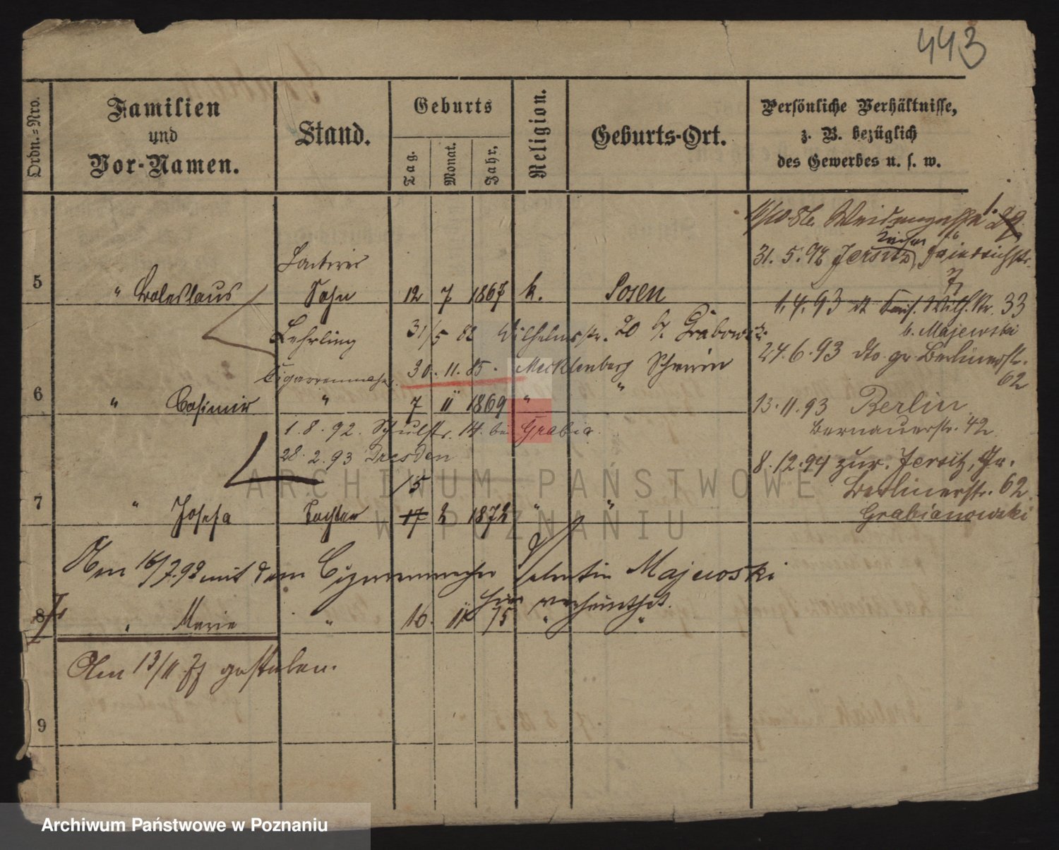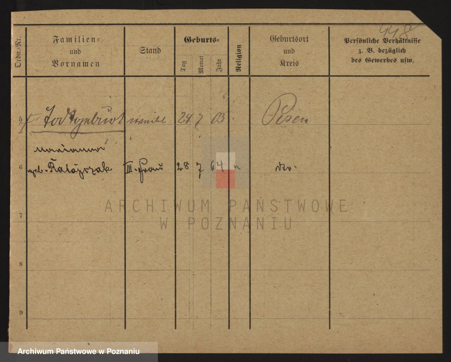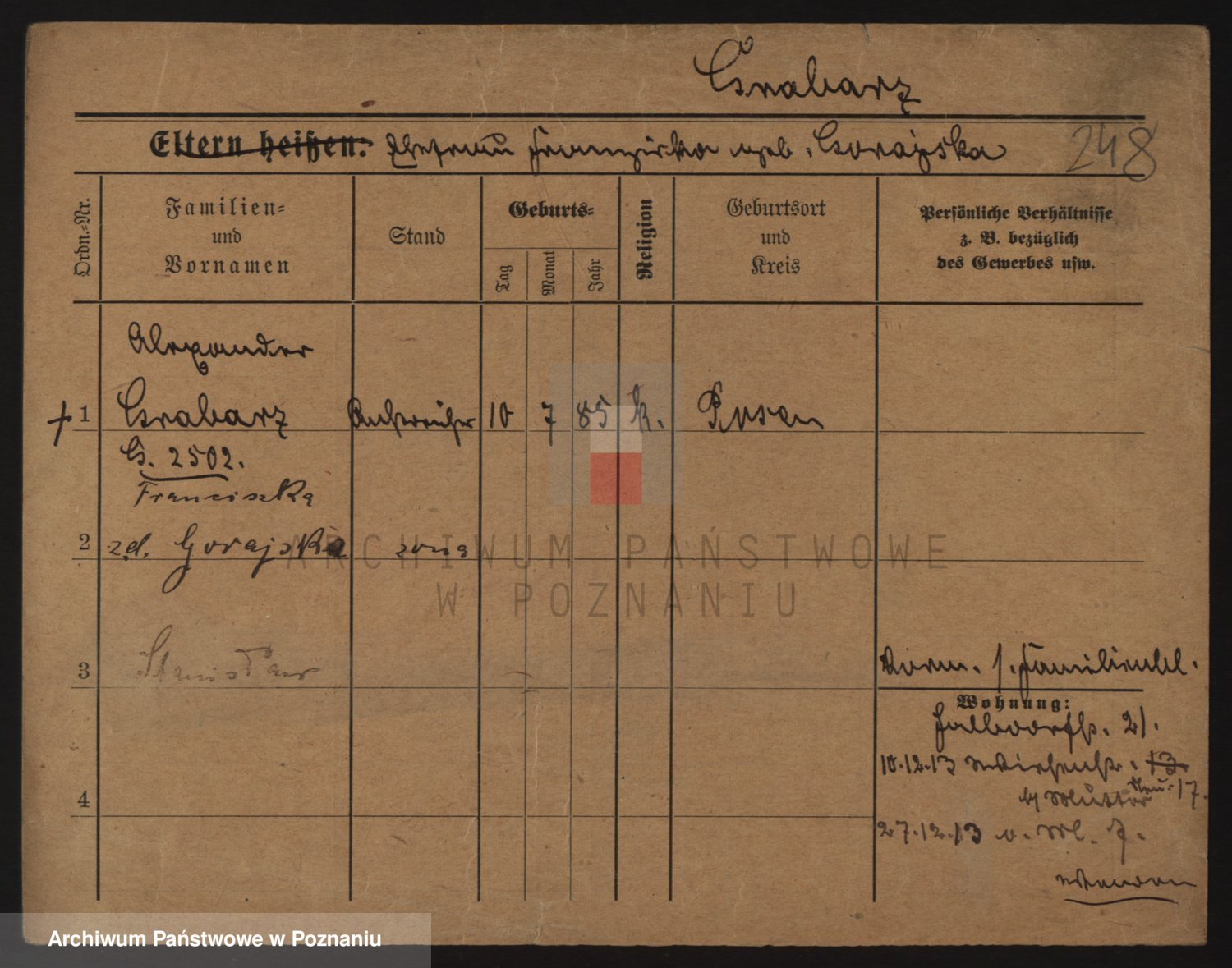 Podgląd karty osobowej dostępny jest po kliknięciu na nazwisko lub ikonkę karty. Można dokonywać powiększenia (ikony na górze) lub przechodzić między kolejnymi skanami (strzałki po bokach).
