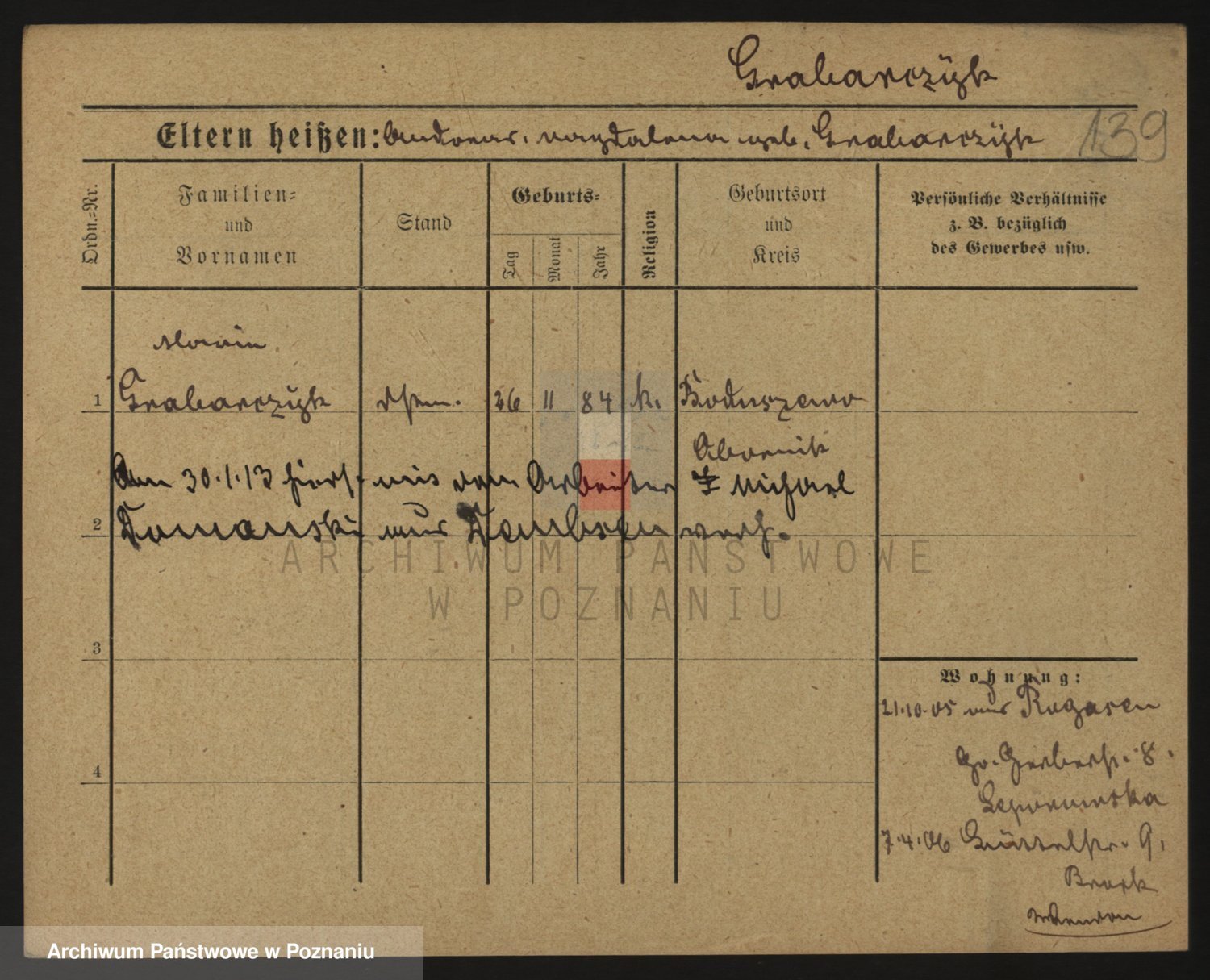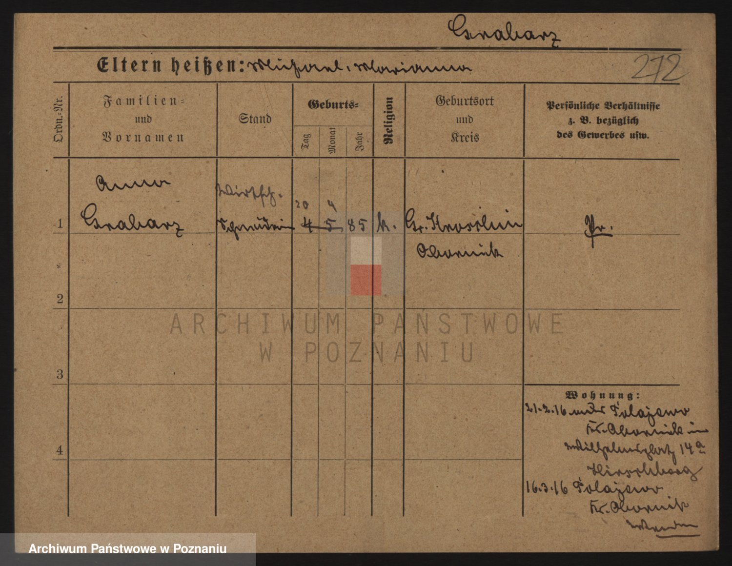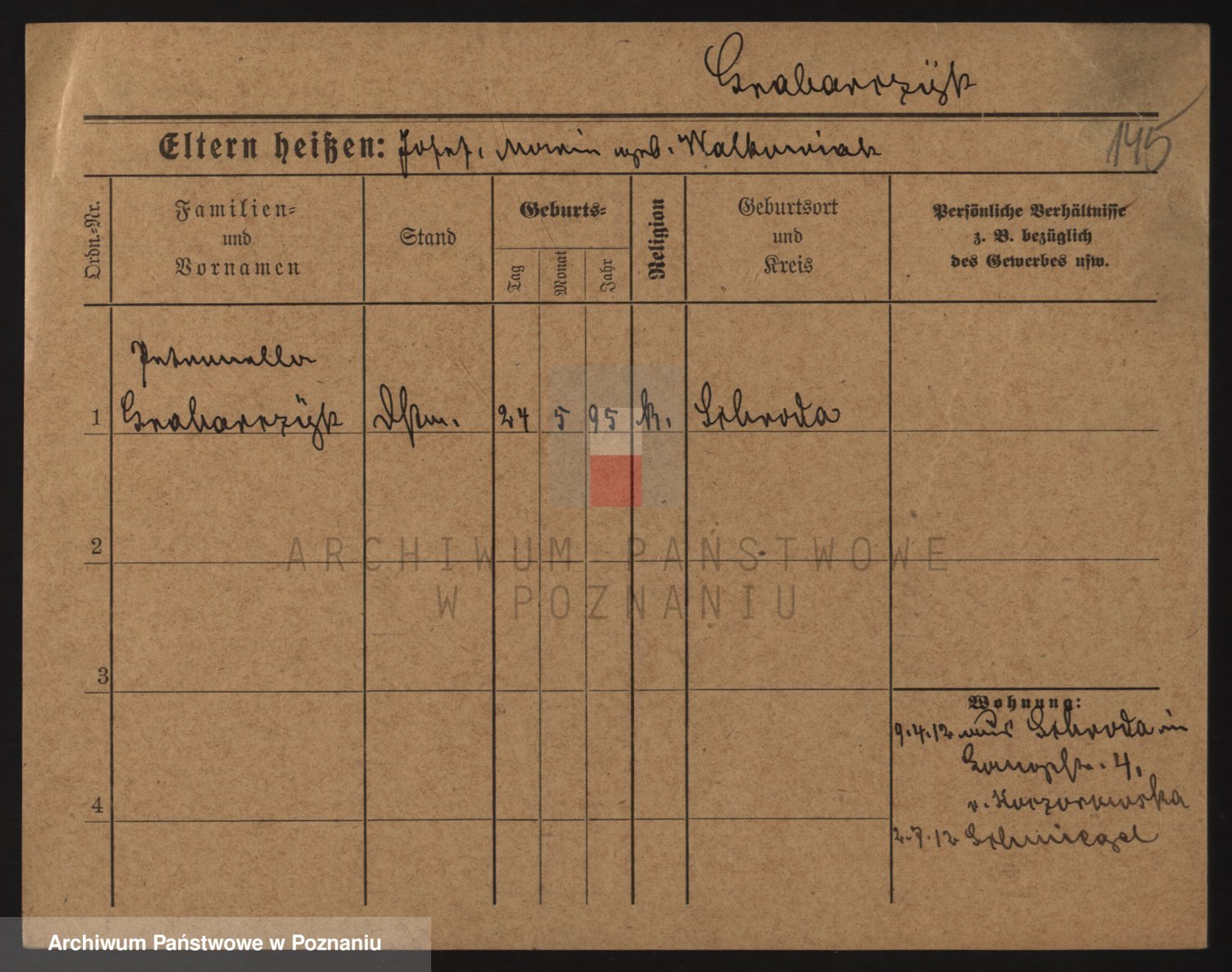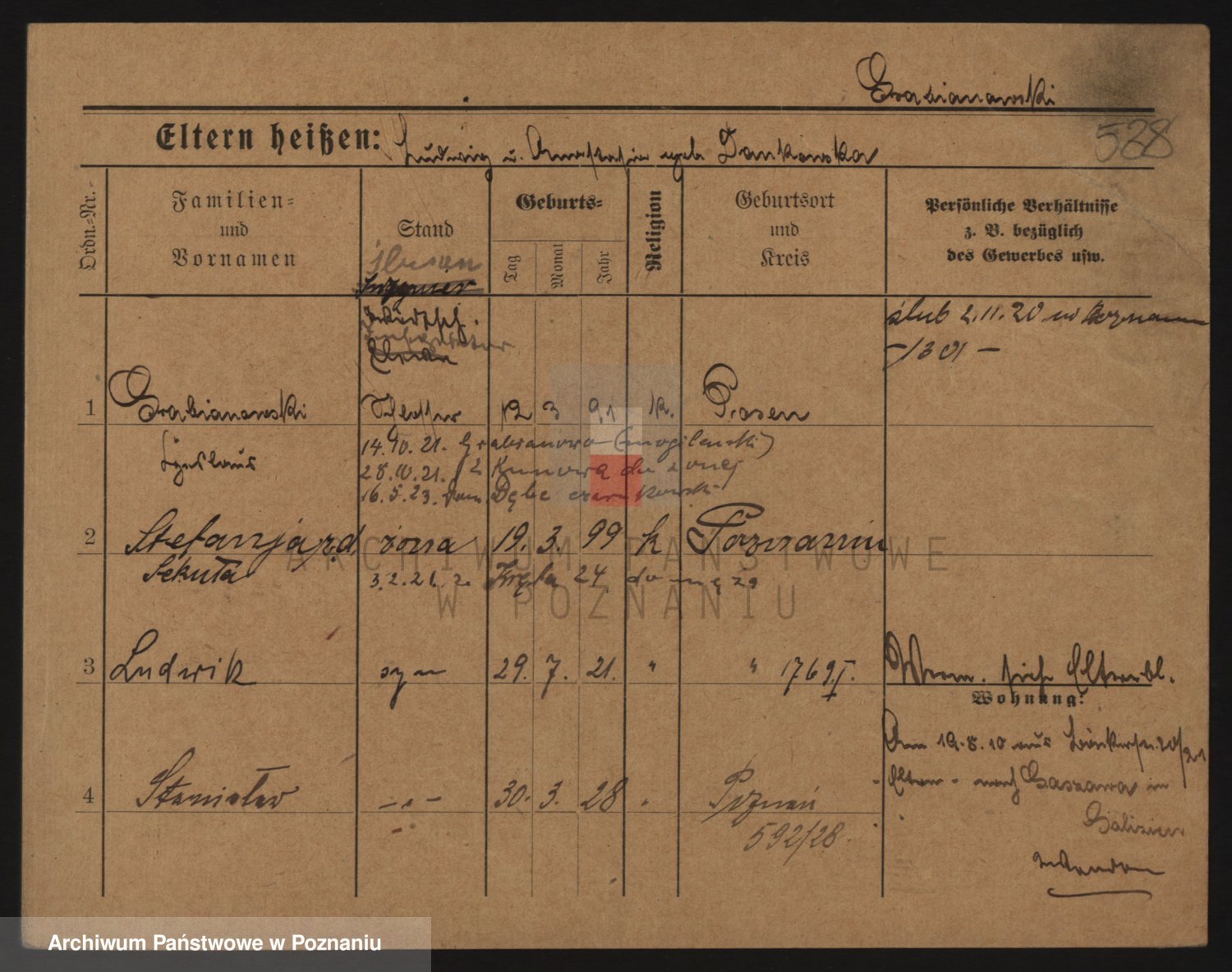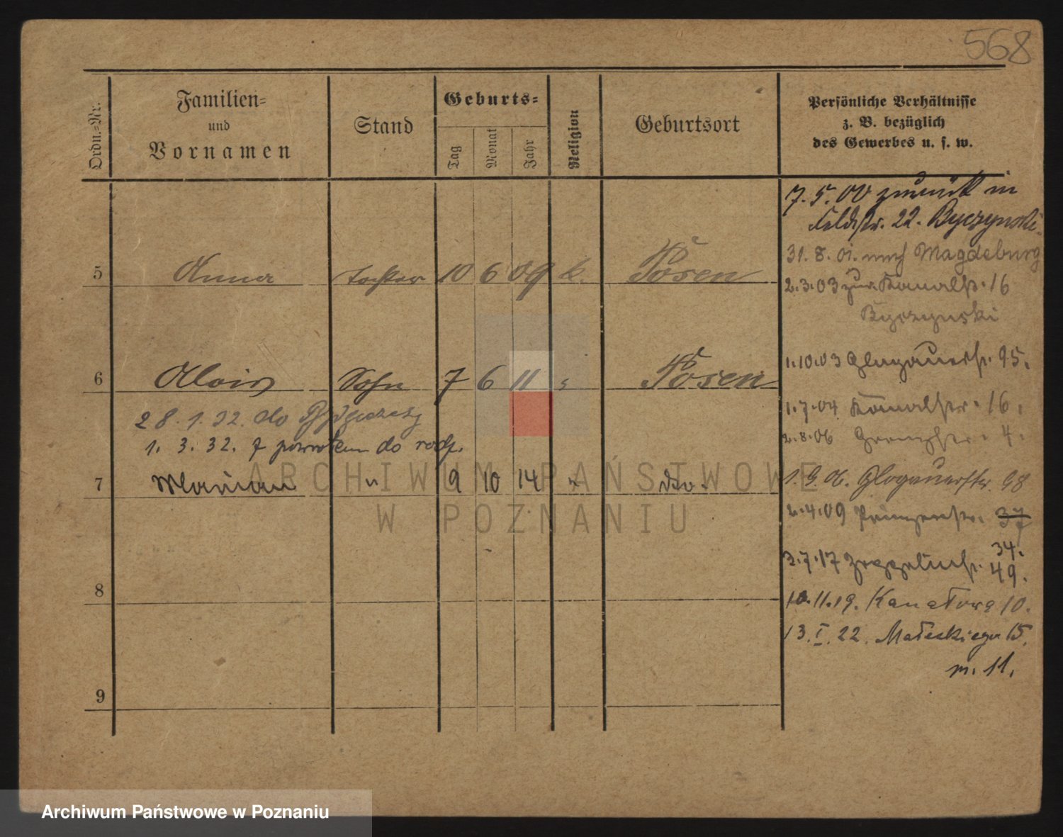 Podgląd karty osobowej dostępny jest po kliknięciu na nazwisko lub ikonkę karty. Można dokonywać powiększenia (ikony na górze) lub przechodzić między kolejnymi skanami (strzałki po bokach).