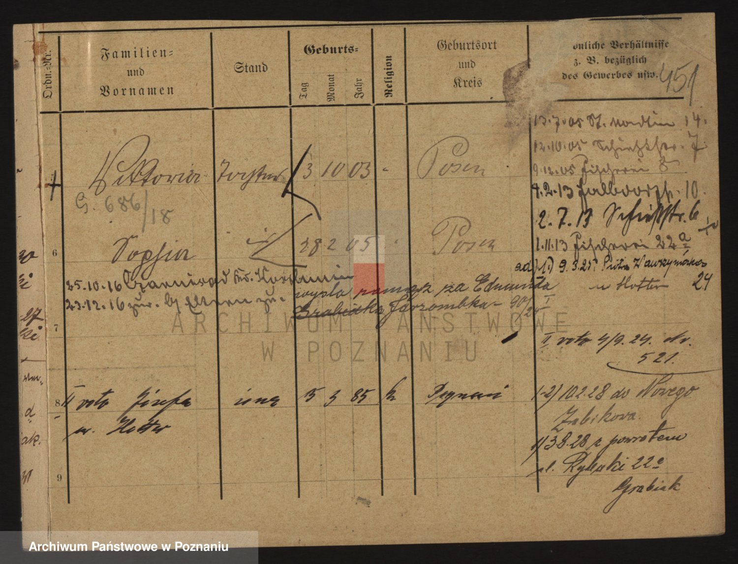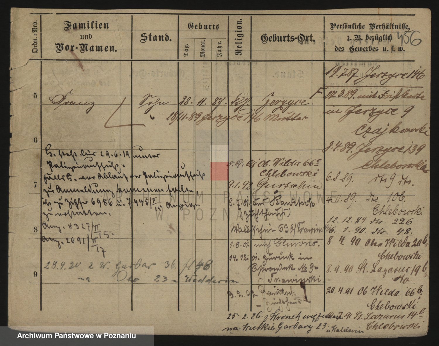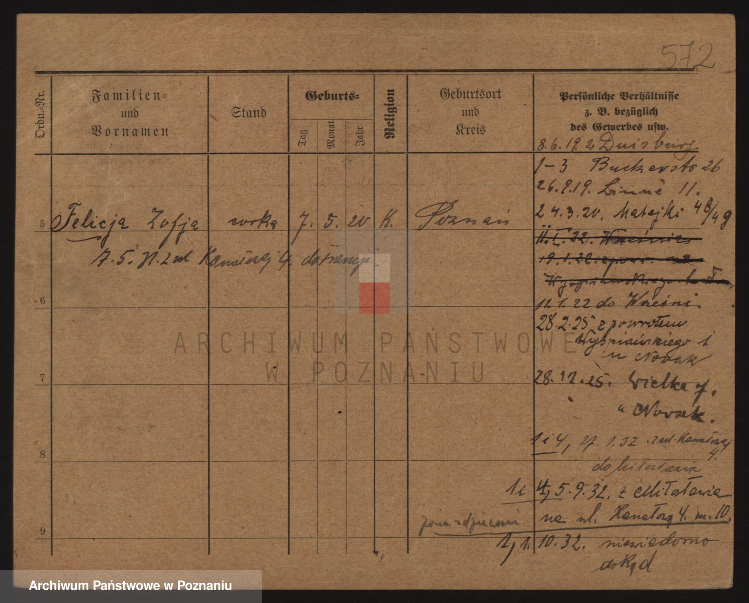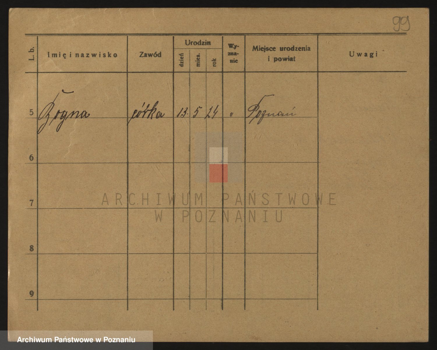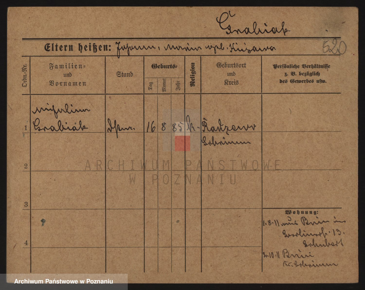 Podgląd karty osobowej dostępny jest po kliknięciu na nazwisko lub ikonkę karty. Można dokonywać powiększenia (ikony na górze) lub przechodzić między kolejnymi skanami (strzałki po bokach).