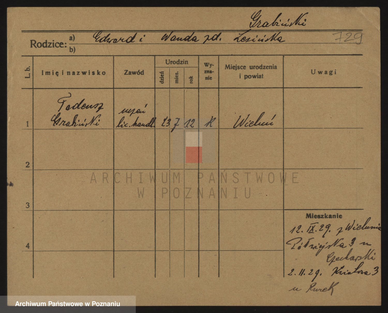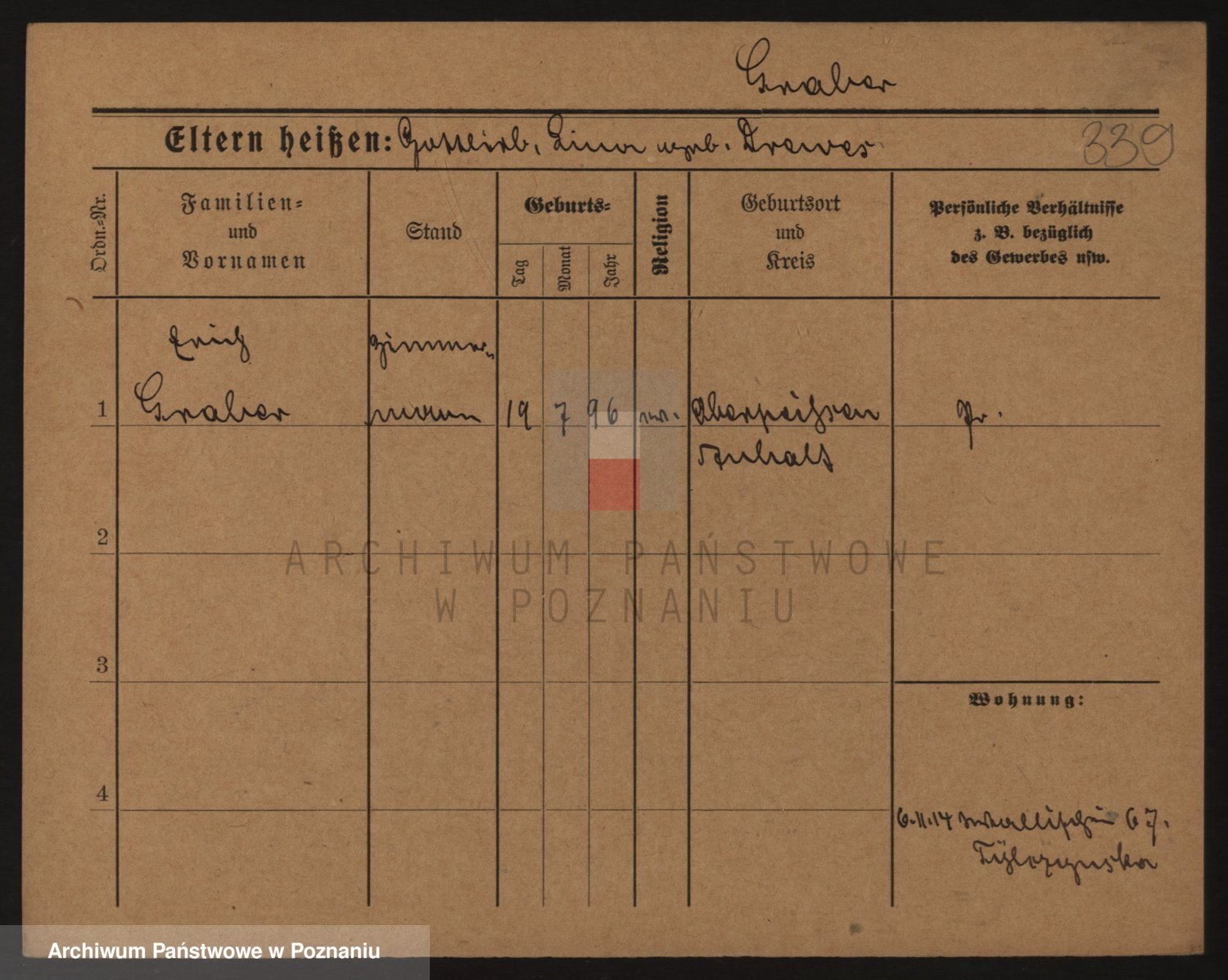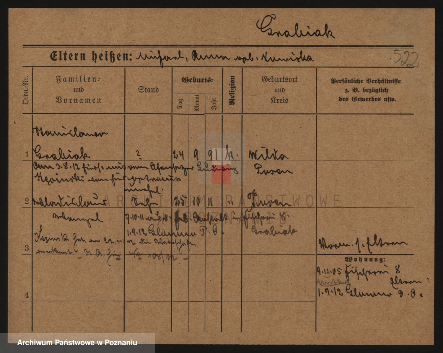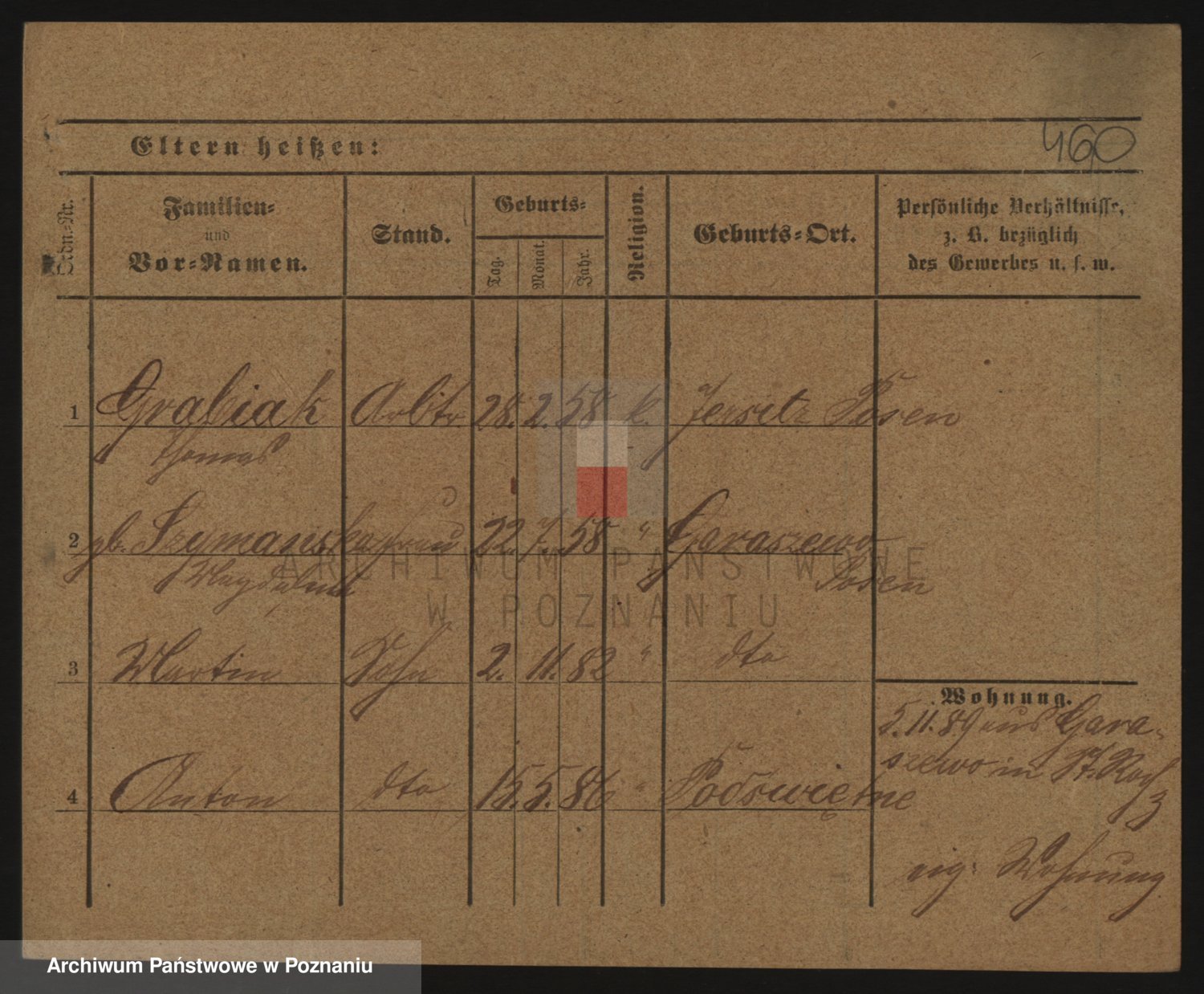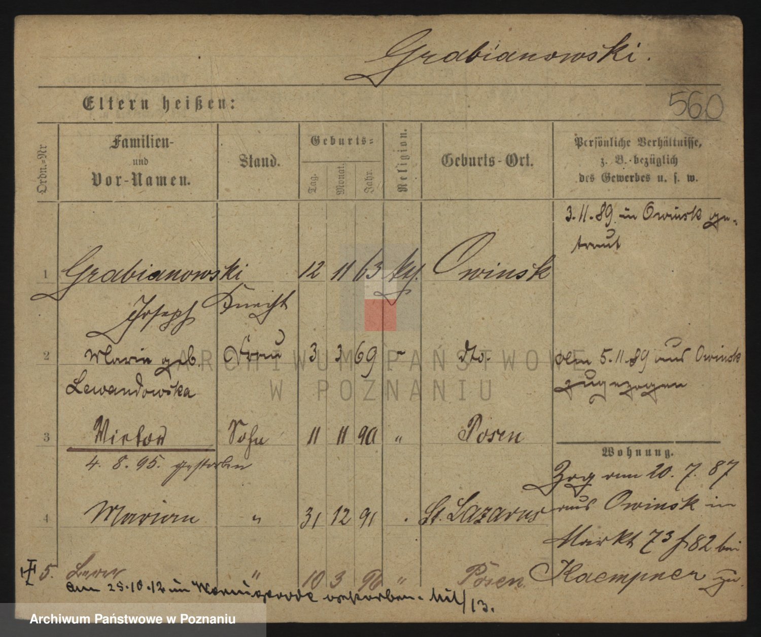 Podgląd karty osobowej dostępny jest po kliknięciu na nazwisko lub ikonkę karty. Można dokonywać powiększenia (ikony na górze) lub przechodzić między kolejnymi skanami (strzałki po bokach).