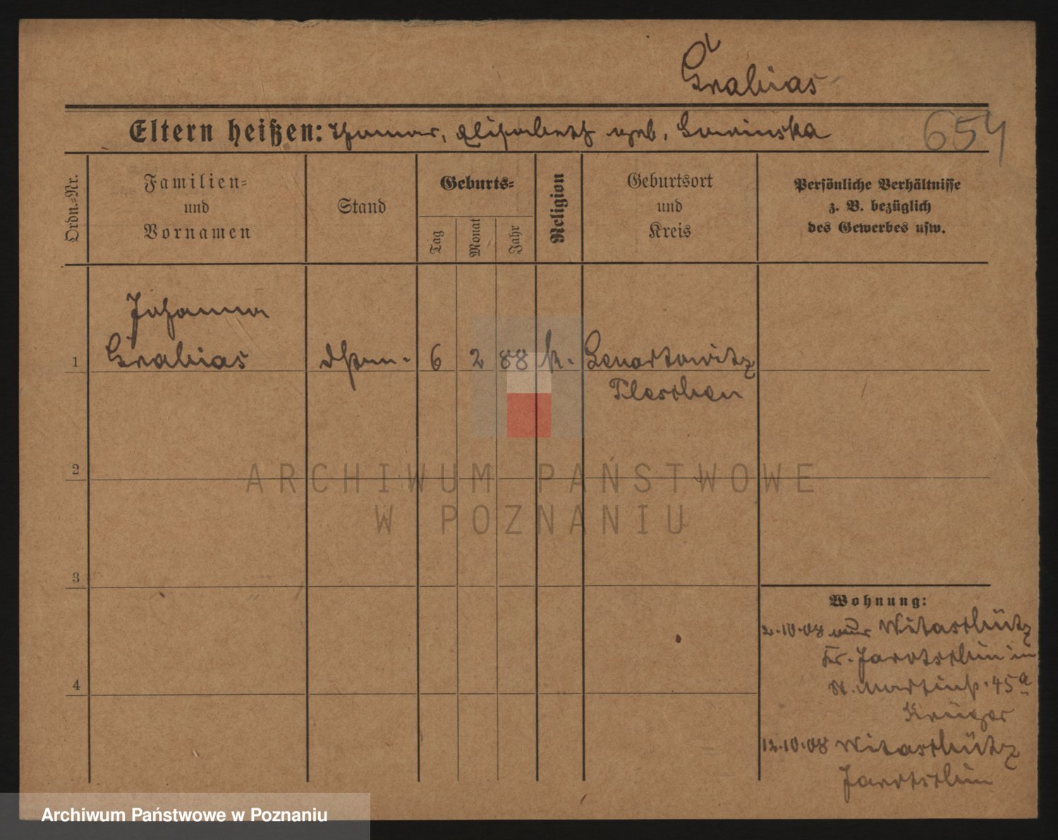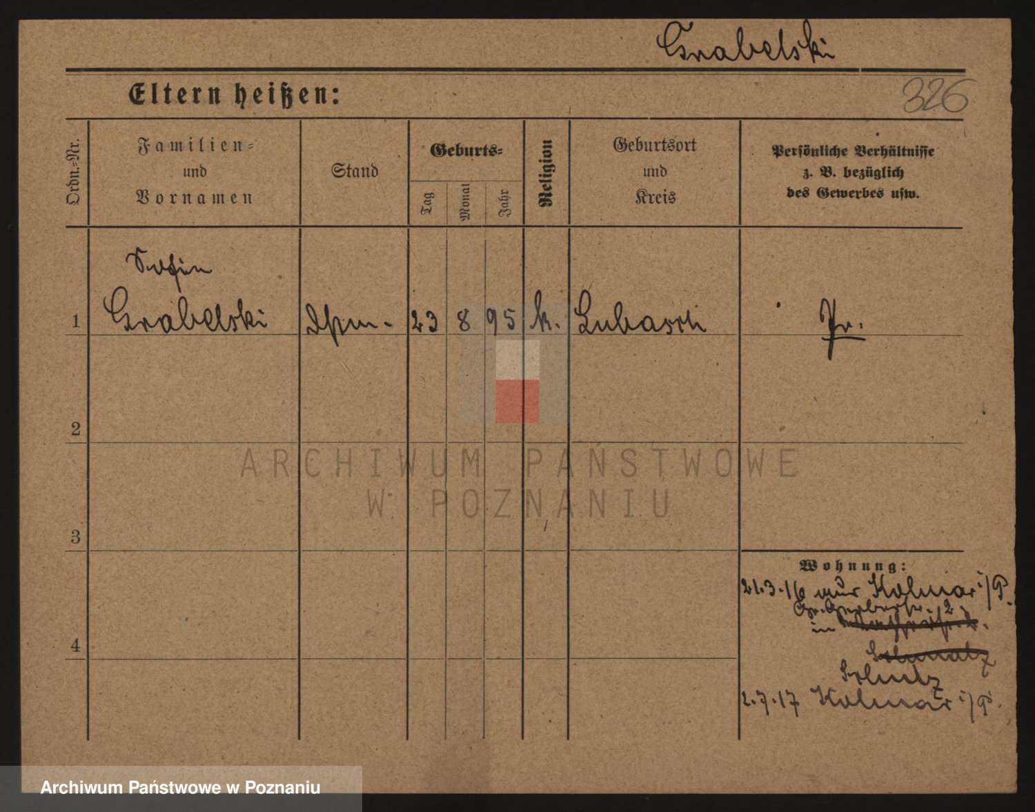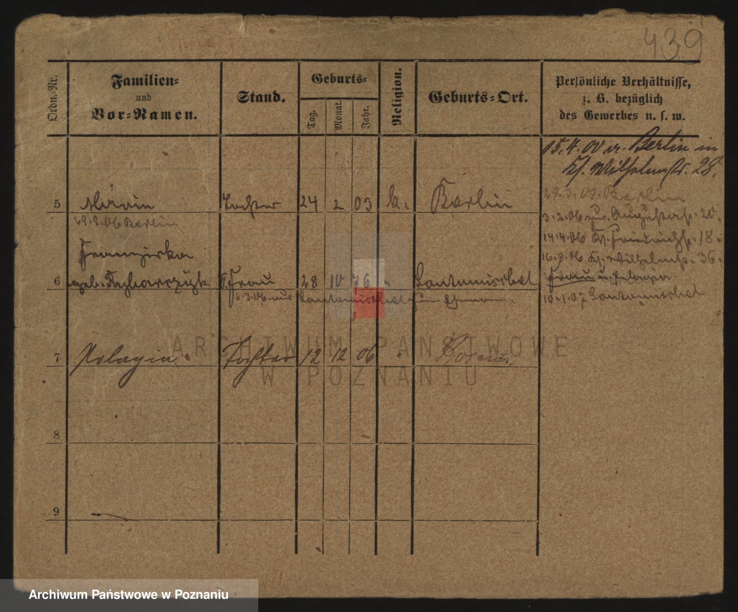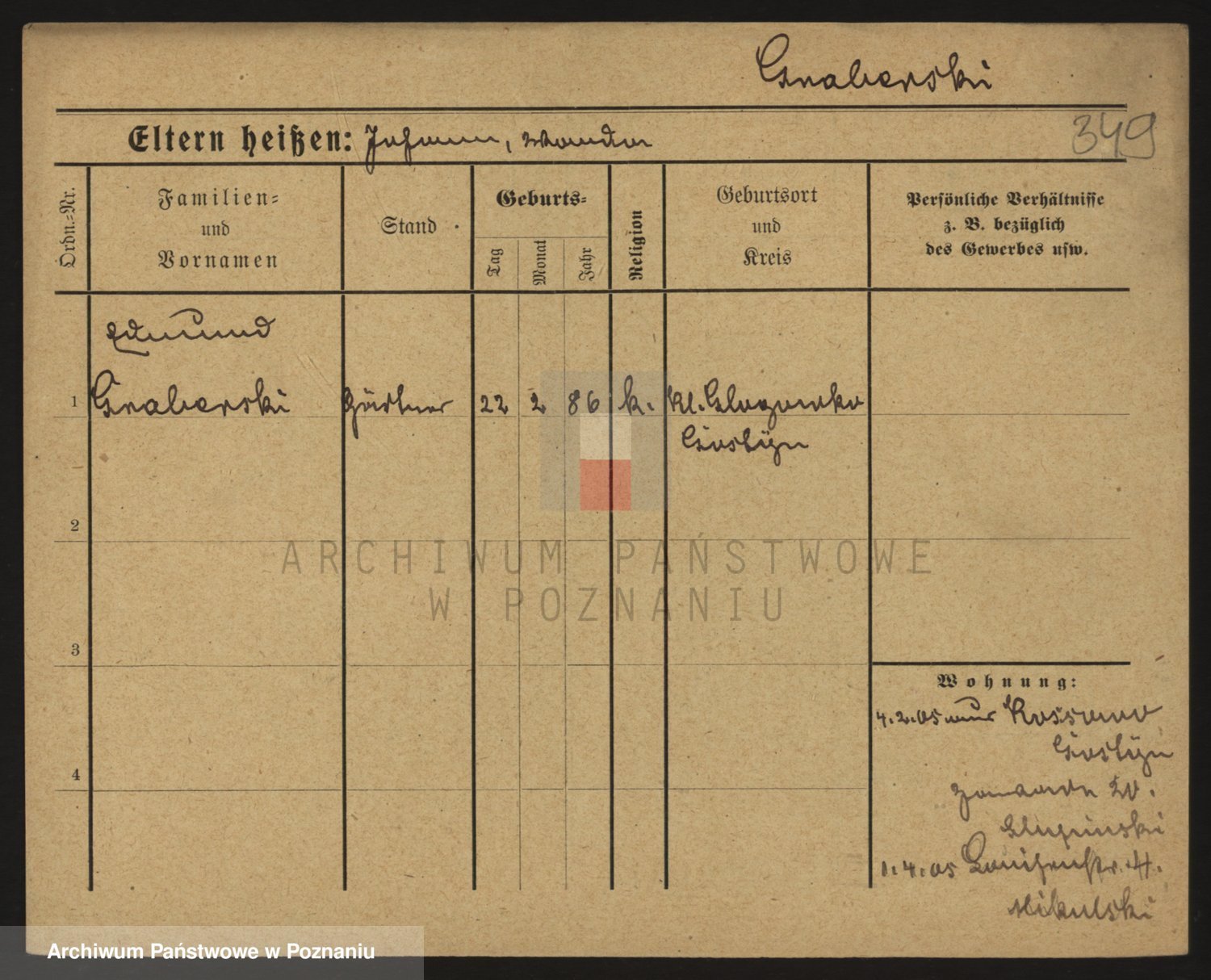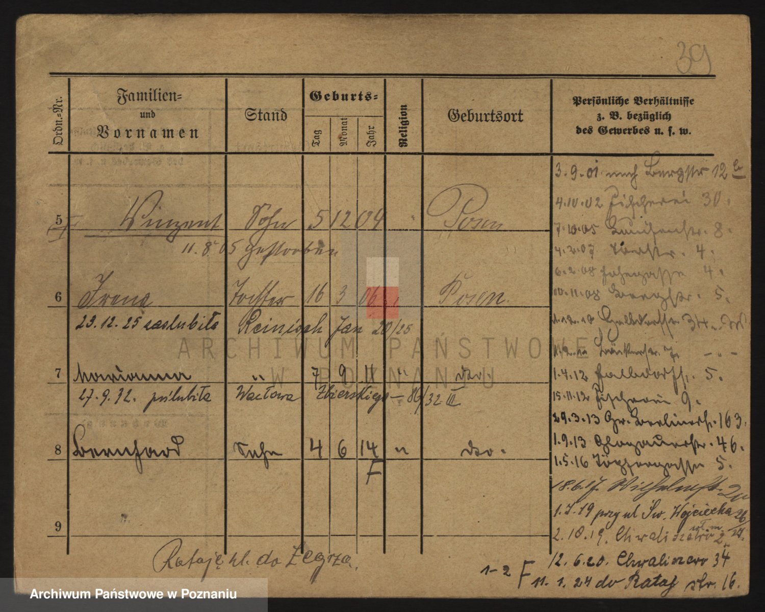 Podgląd karty osobowej dostępny jest po kliknięciu na nazwisko lub ikonkę karty. Można dokonywać powiększenia (ikony na górze) lub przechodzić między kolejnymi skanami (strzałki po bokach).