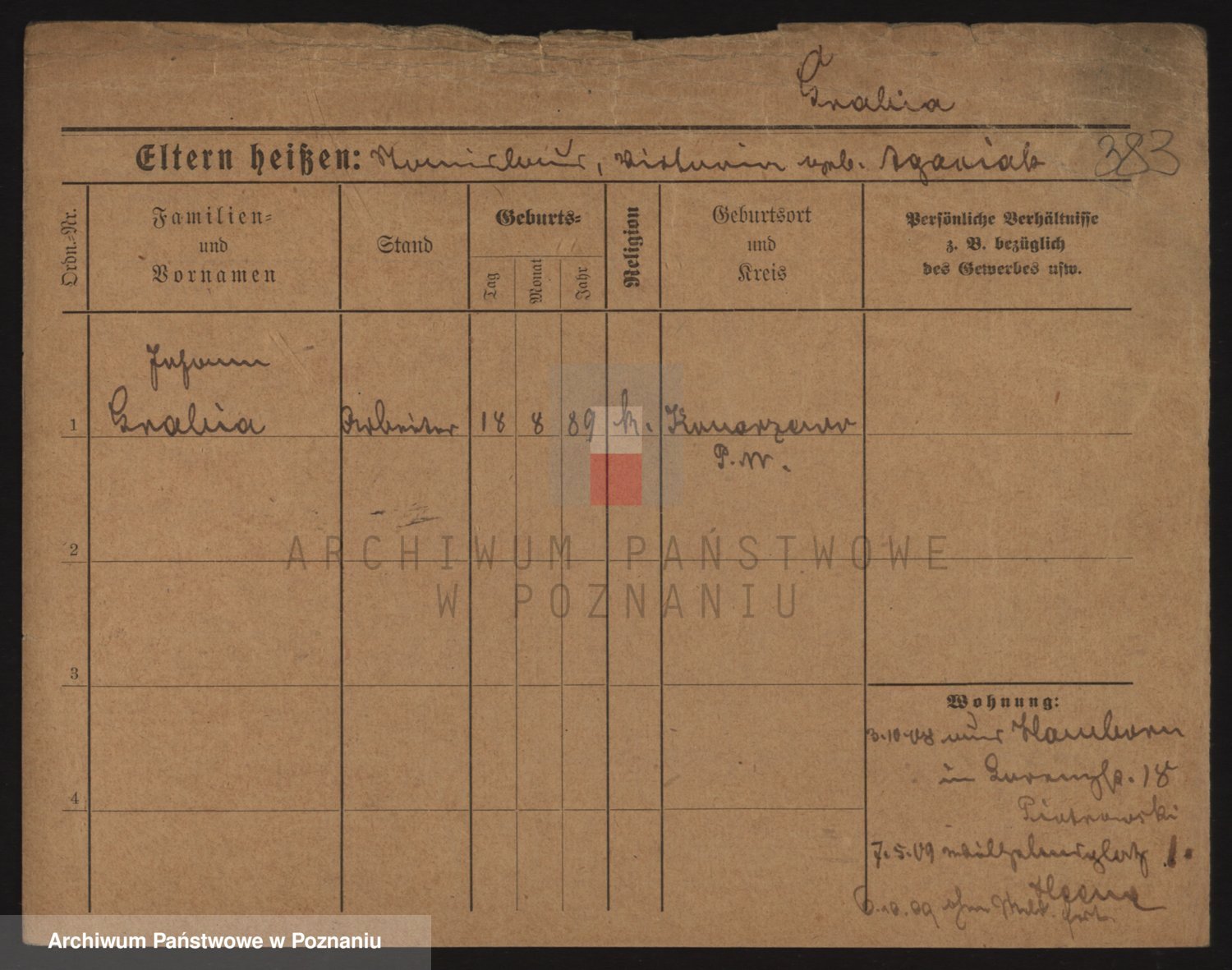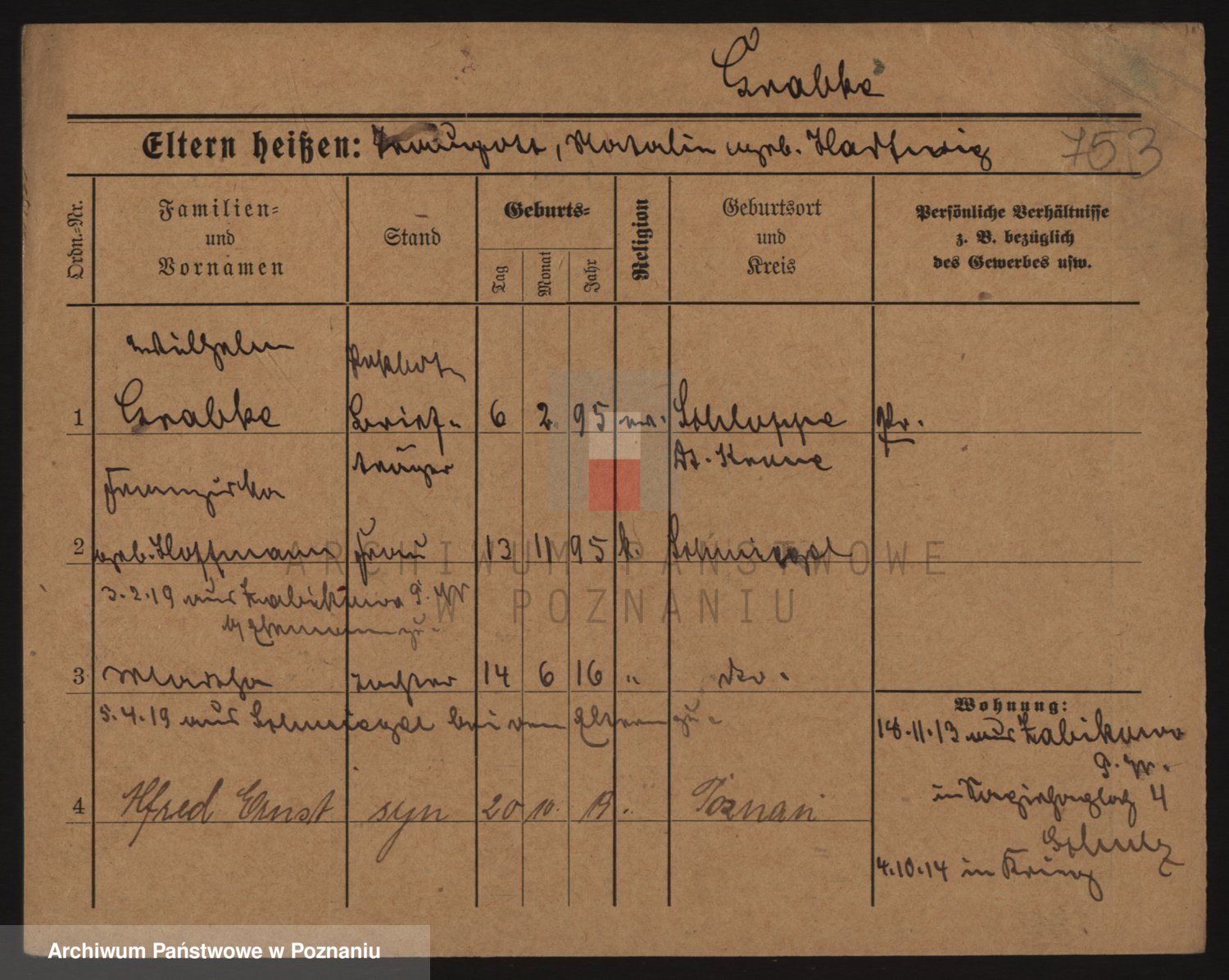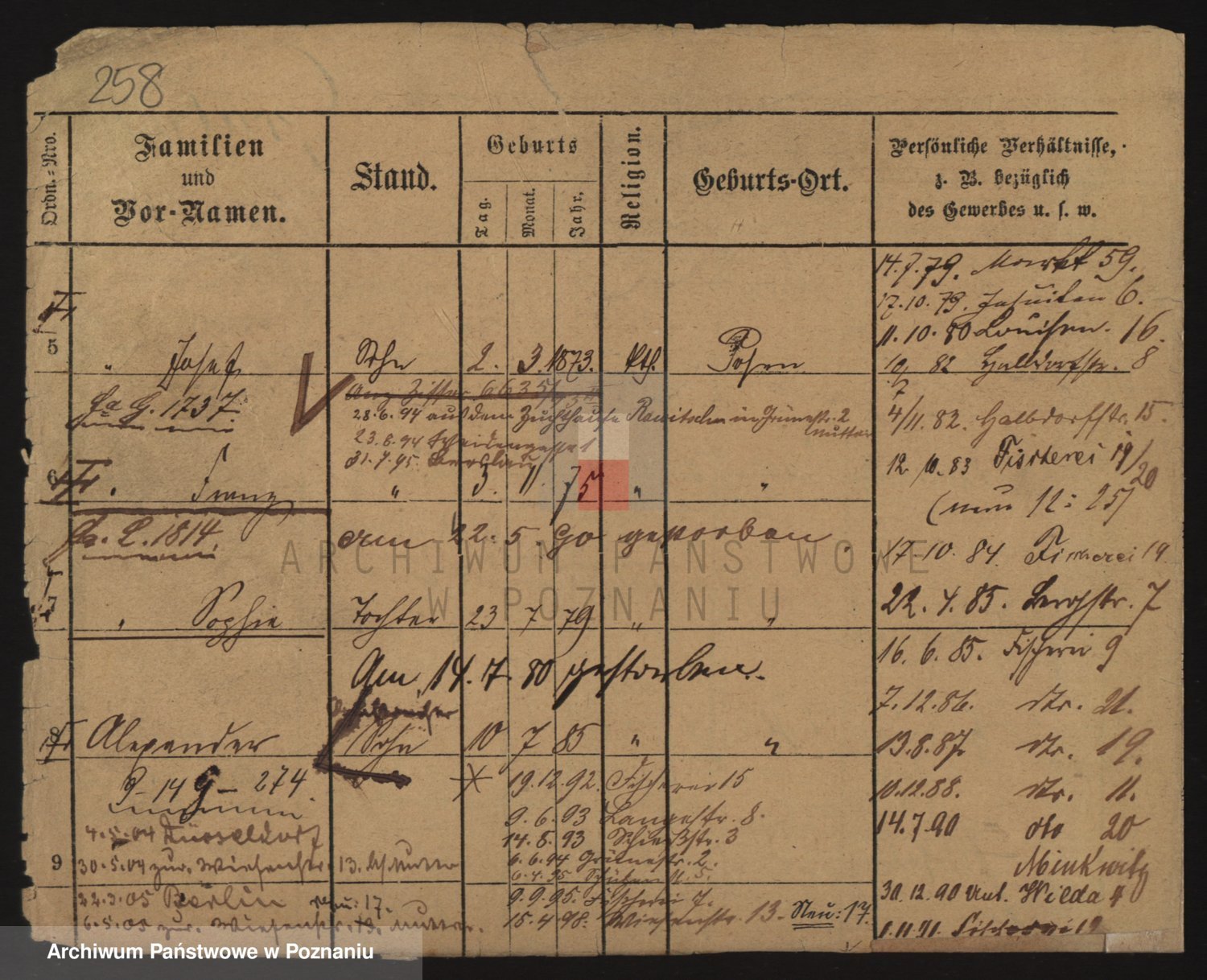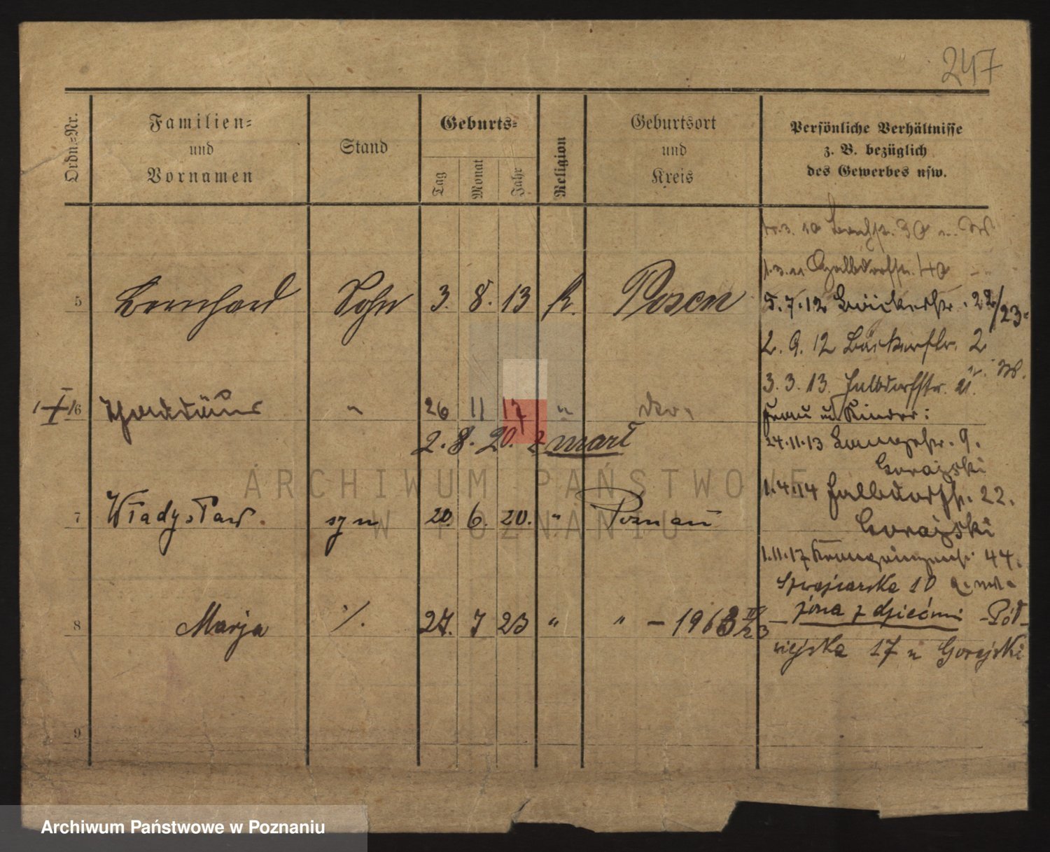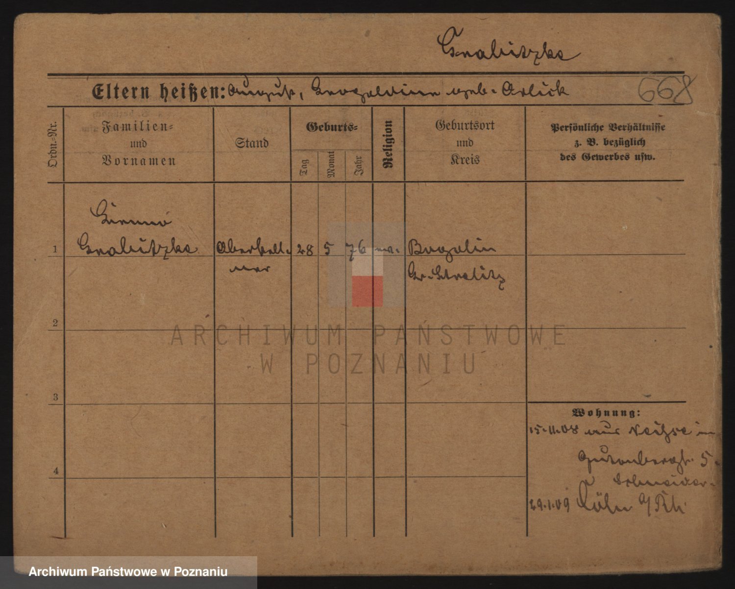 Podgląd karty osobowej dostępny jest po kliknięciu na nazwisko lub ikonkę karty. Można dokonywać powiększenia (ikony na górze) lub przechodzić między kolejnymi skanami (strzałki po bokach).