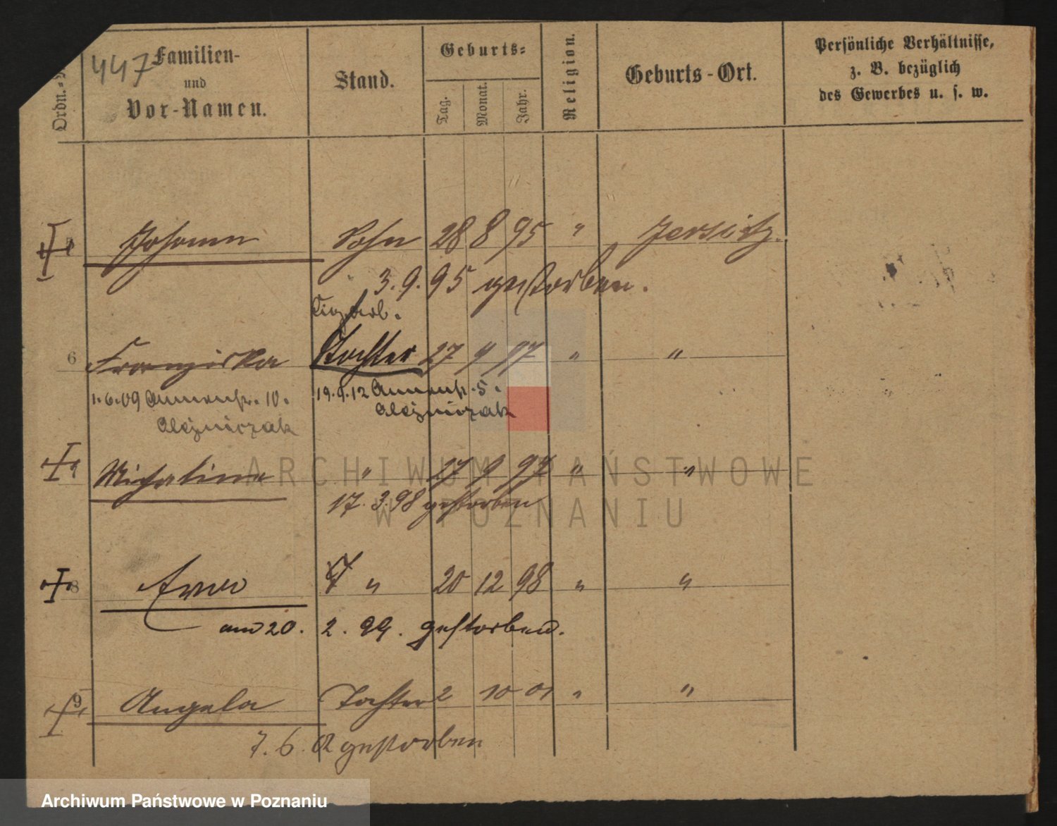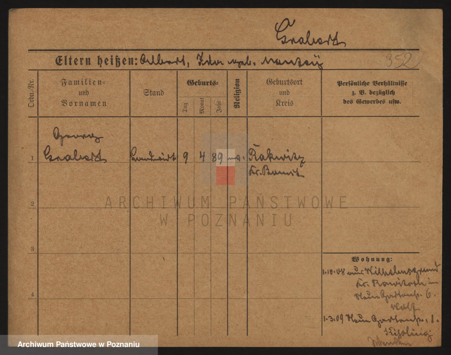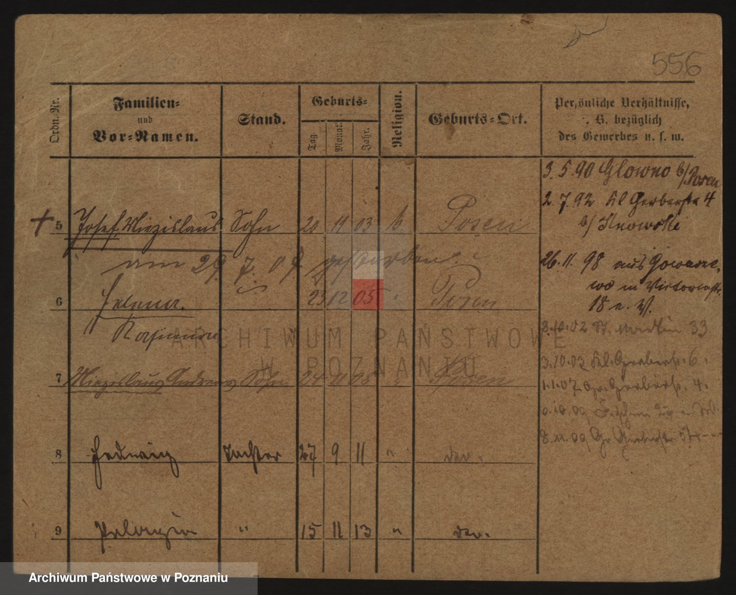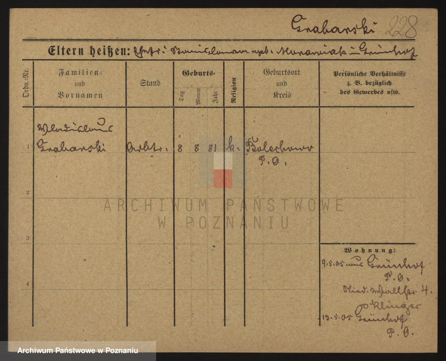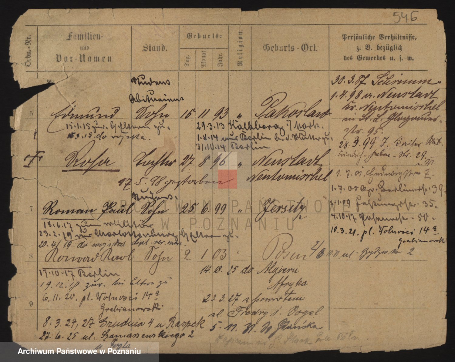 Podgląd karty osobowej dostępny jest po kliknięciu na nazwisko lub ikonkę karty. Można dokonywać powiększenia (ikony na górze) lub przechodzić między kolejnymi skanami (strzałki po bokach).