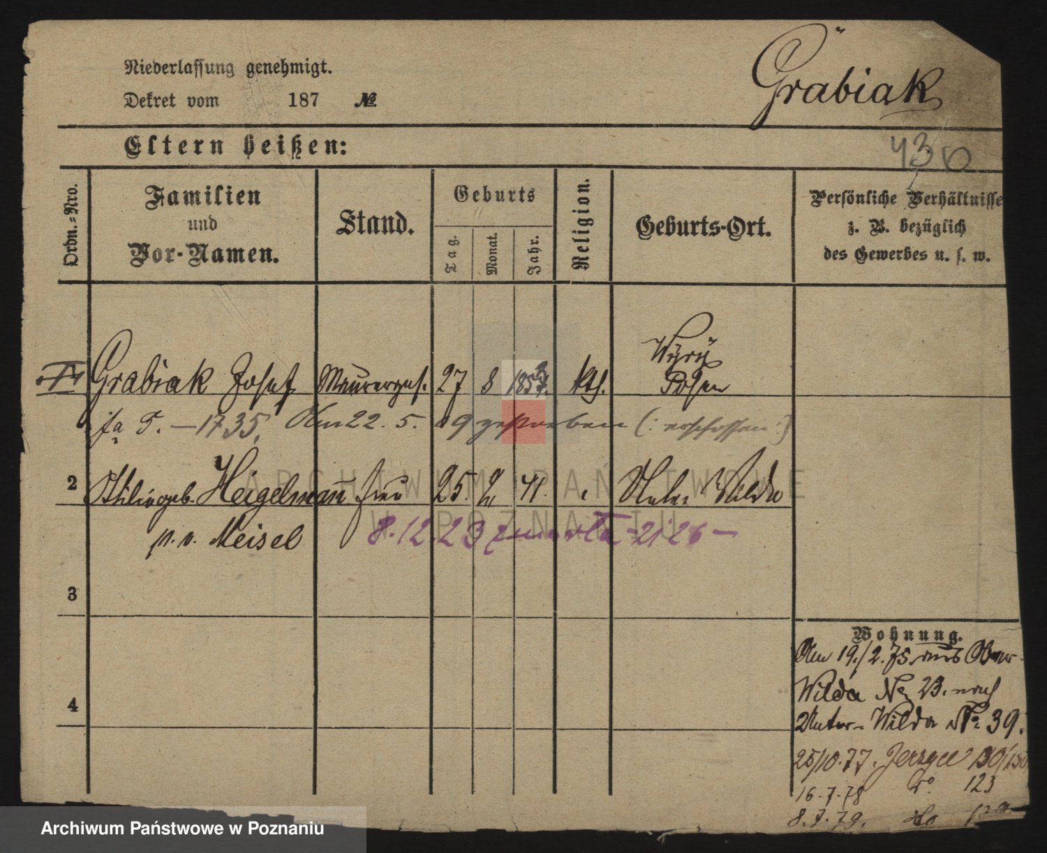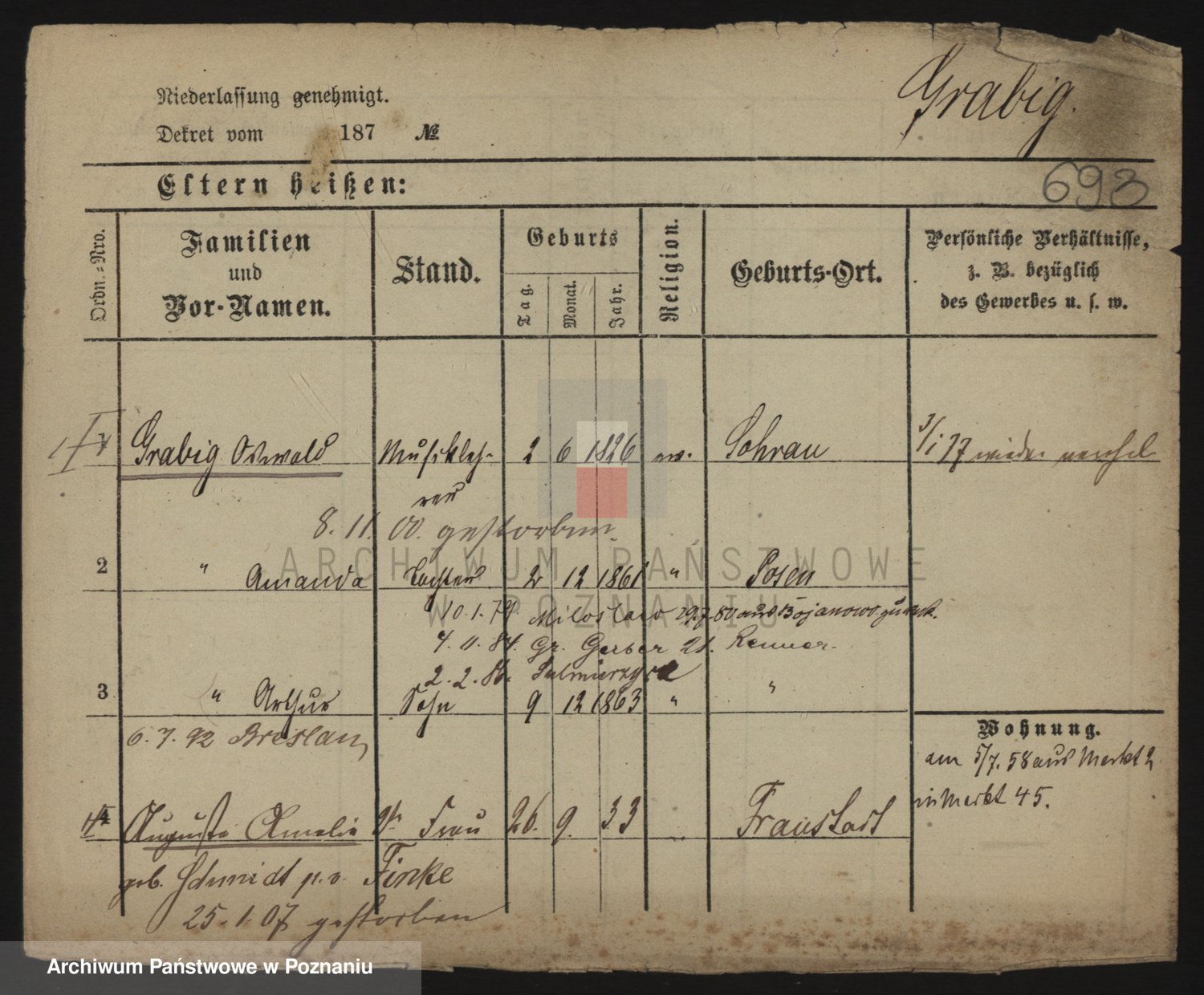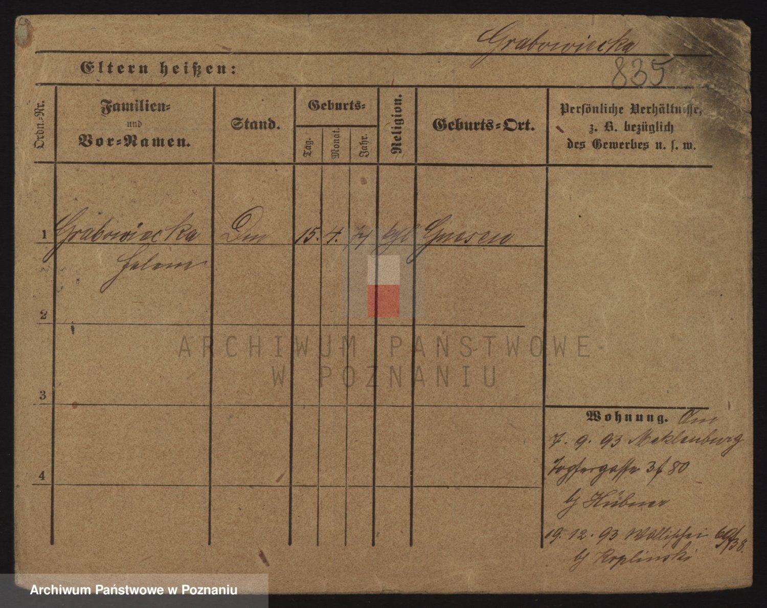 Grableÿ z.d. Schmidt, Ferdinanda