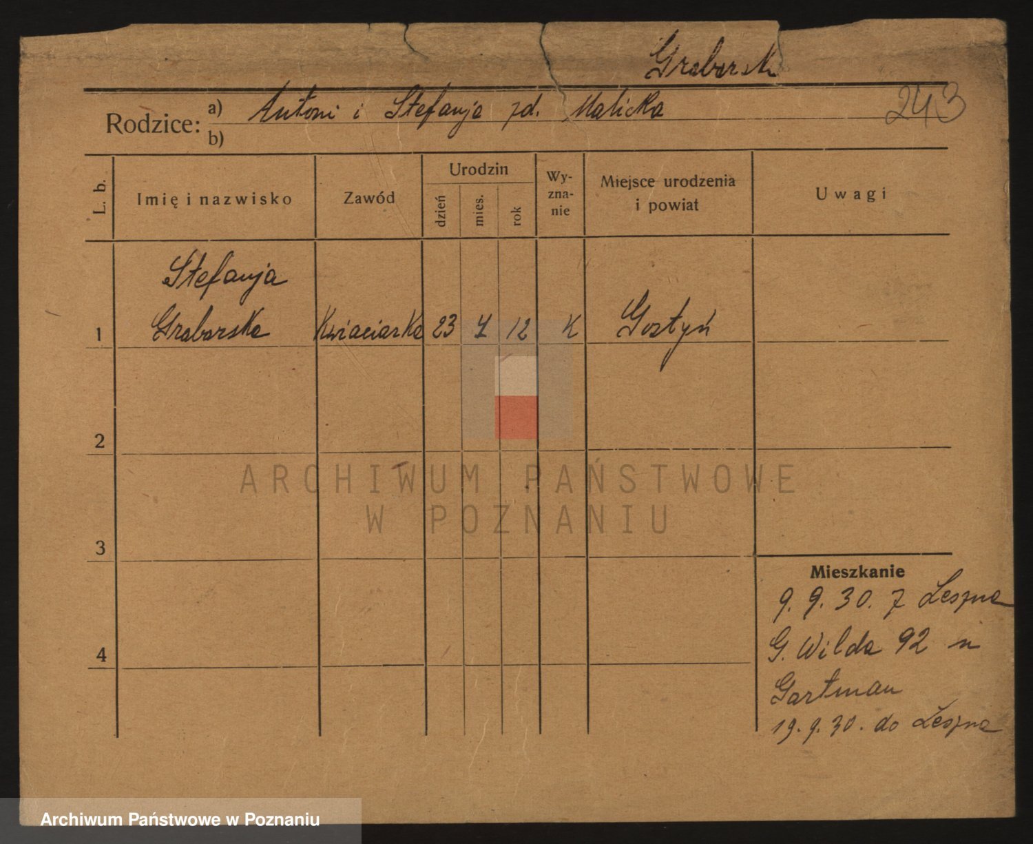 Grabarczÿk z.d. Mackowiak, Josepha