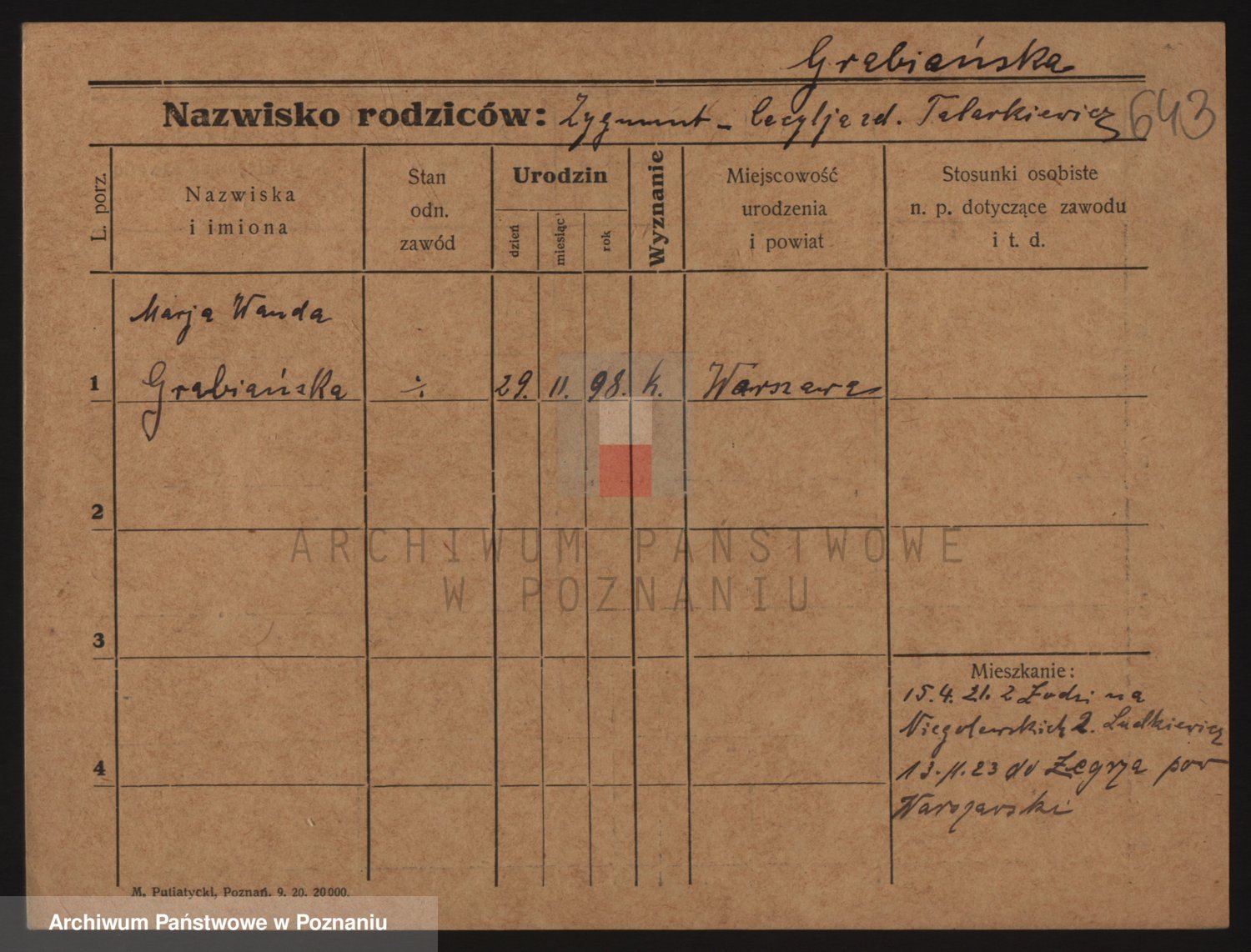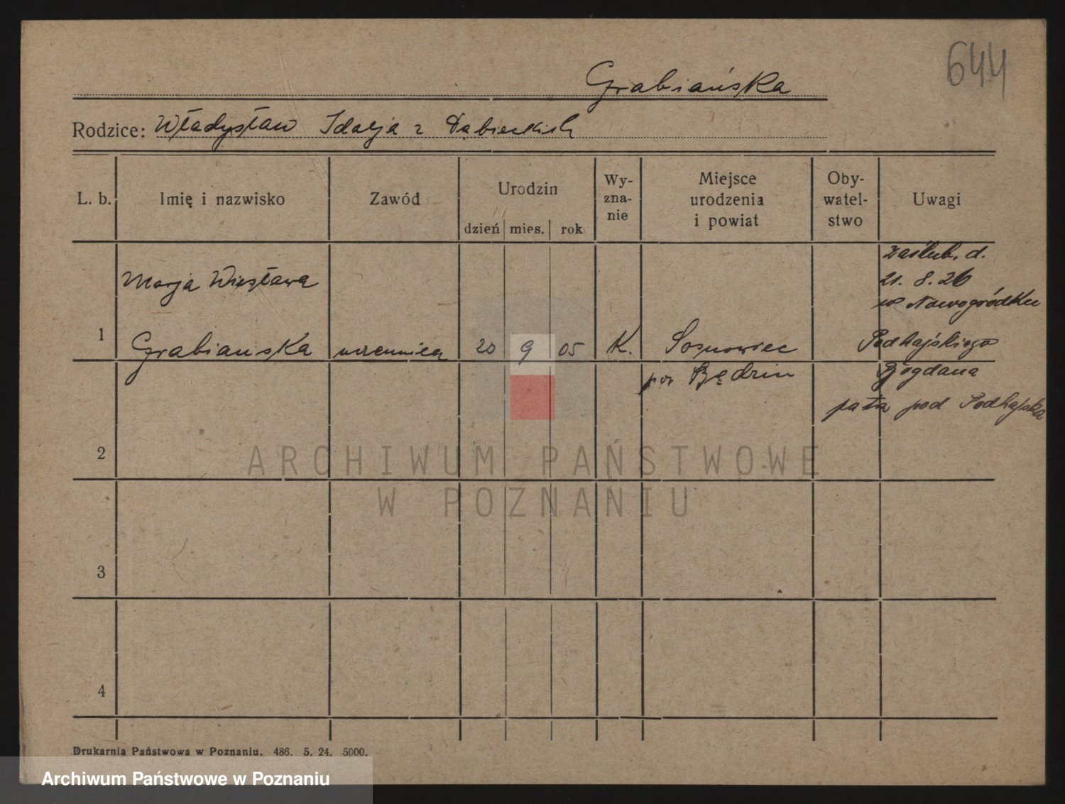 Grablinska z.d. Szczepańska, Marja