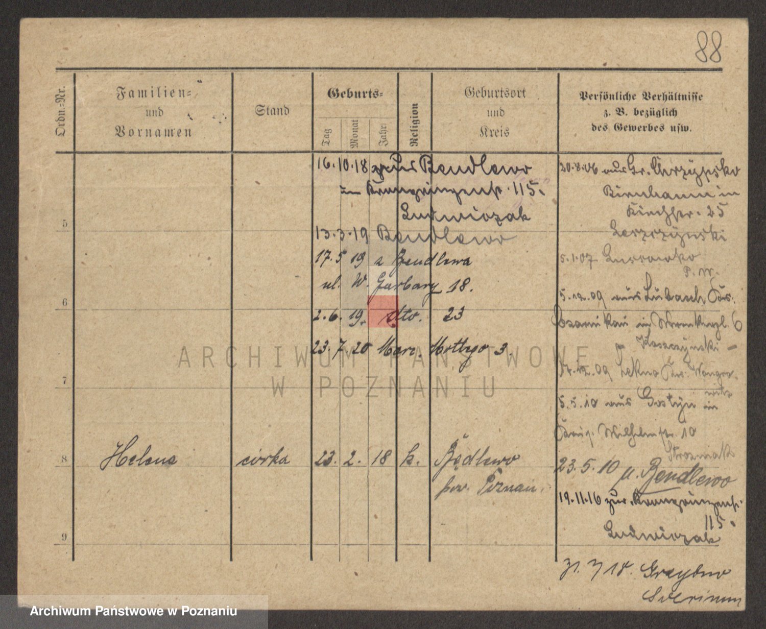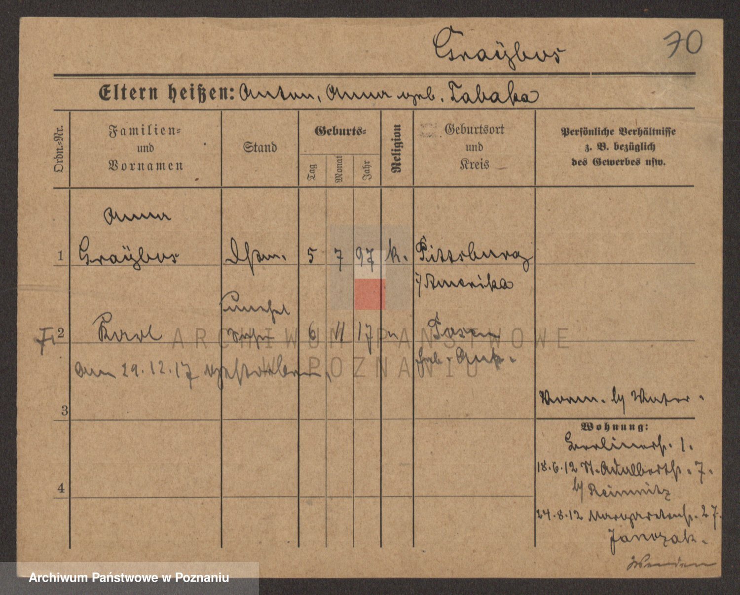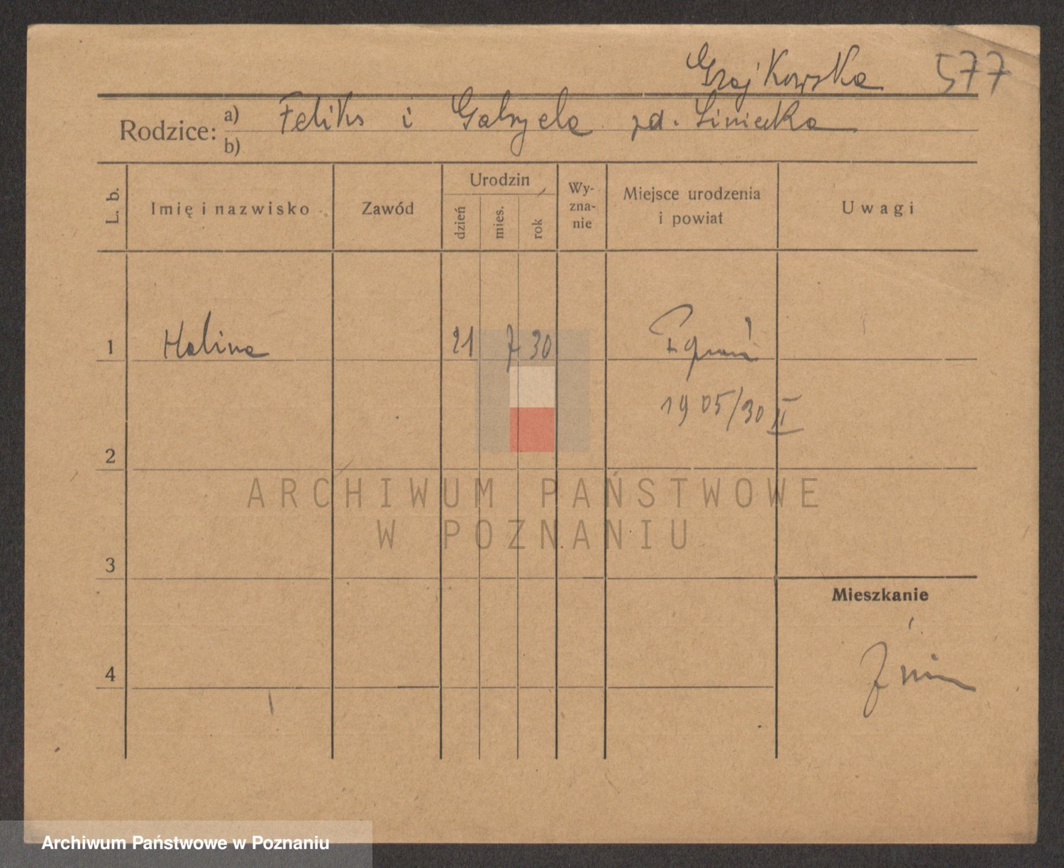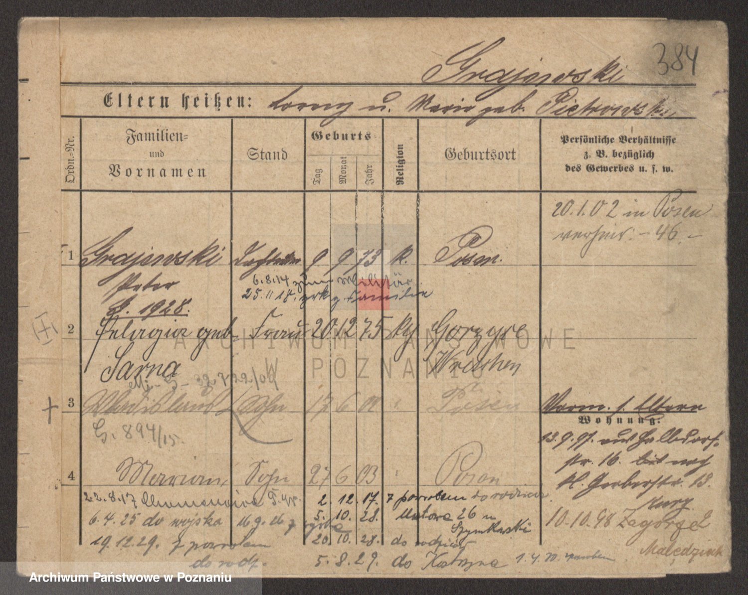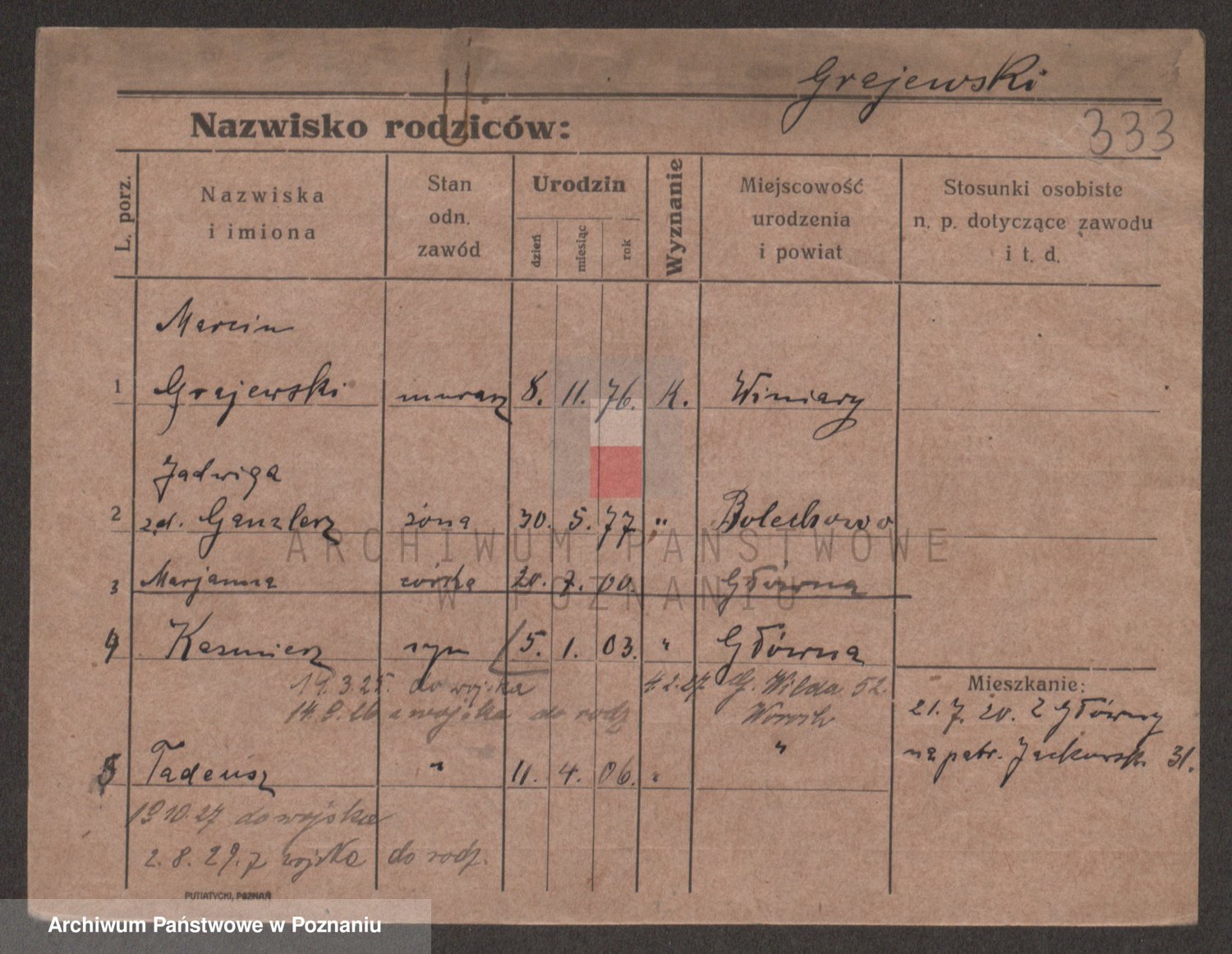 Podgląd karty osobowej dostępny jest po kliknięciu na nazwisko lub ikonkę karty. Można dokonywać powiększenia (ikony na górze) lub przechodzić między kolejnymi skanami (strzałki po bokach).