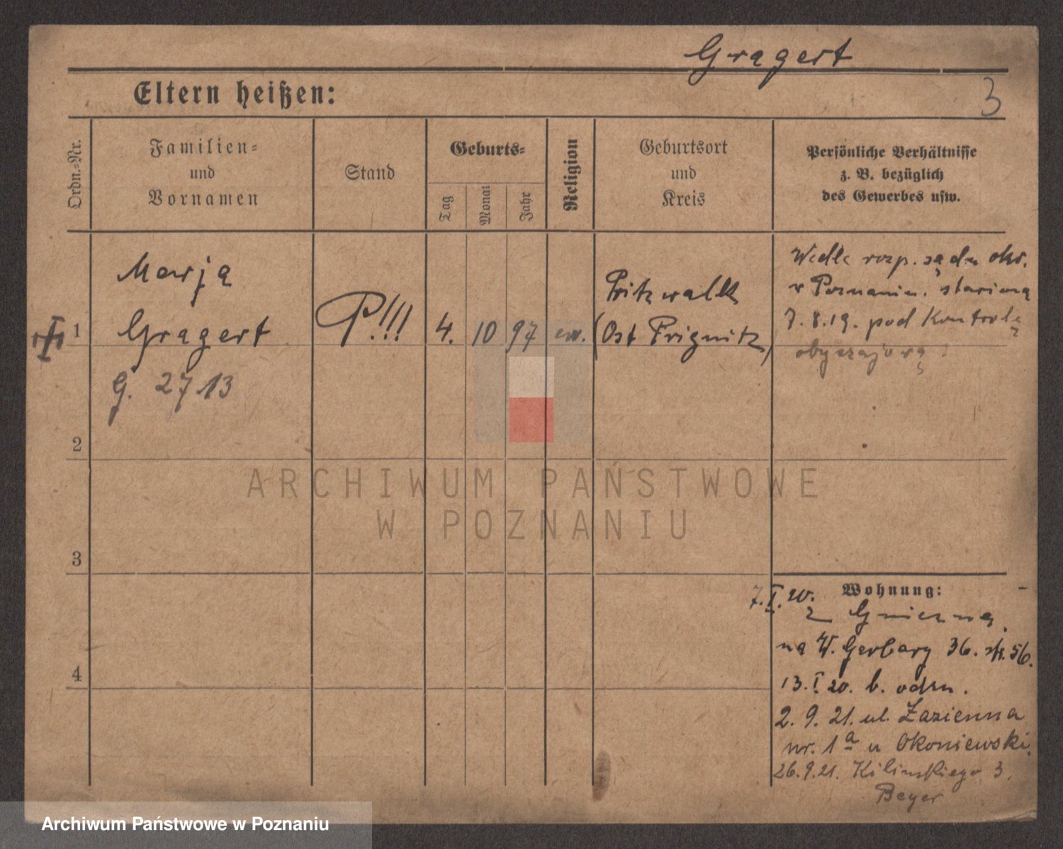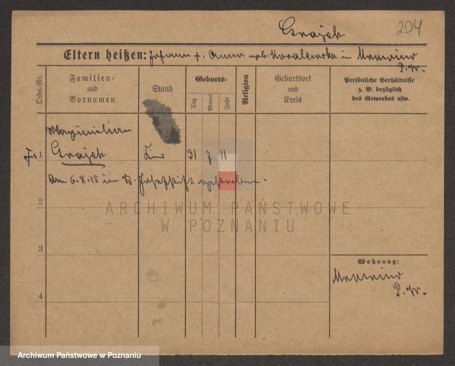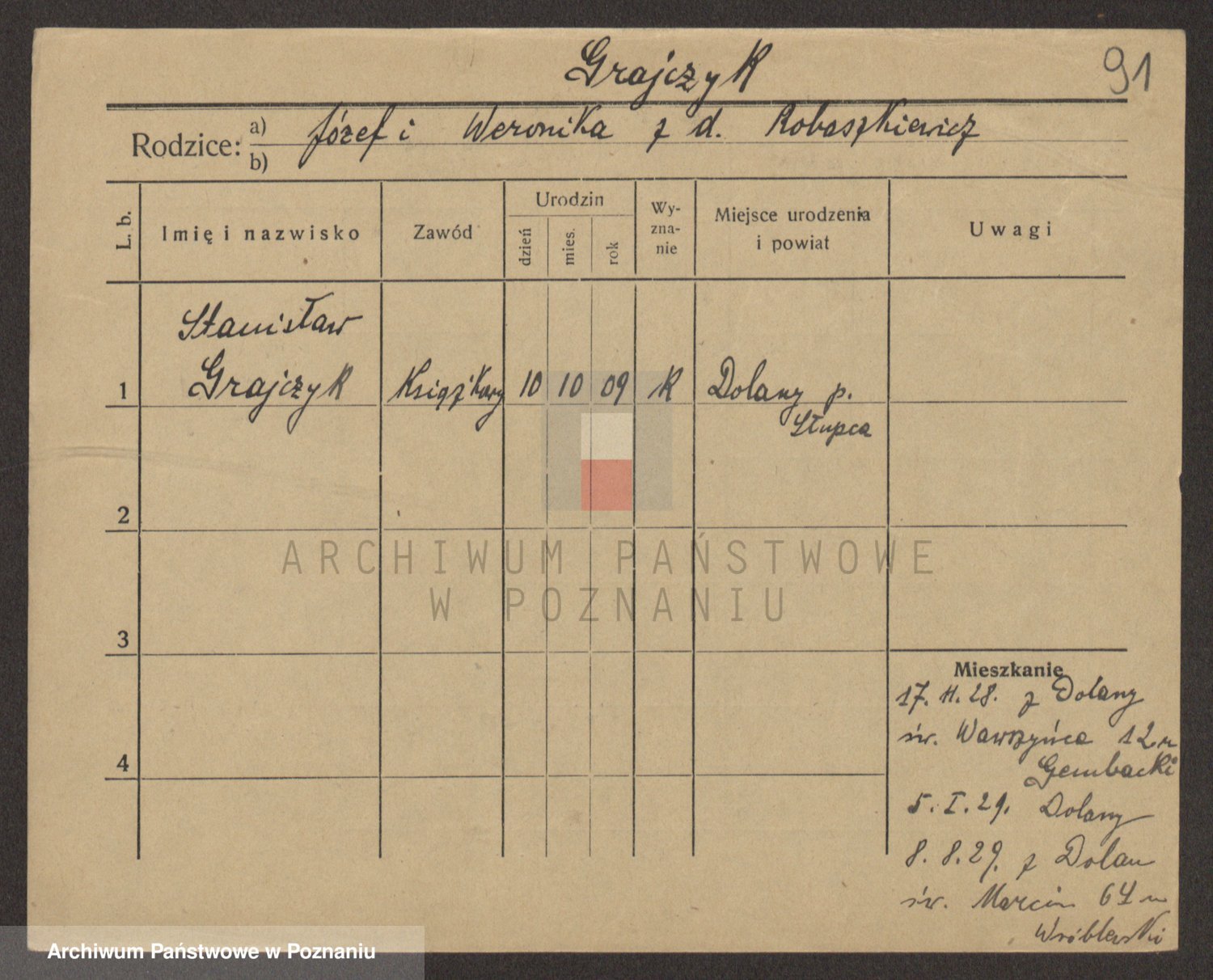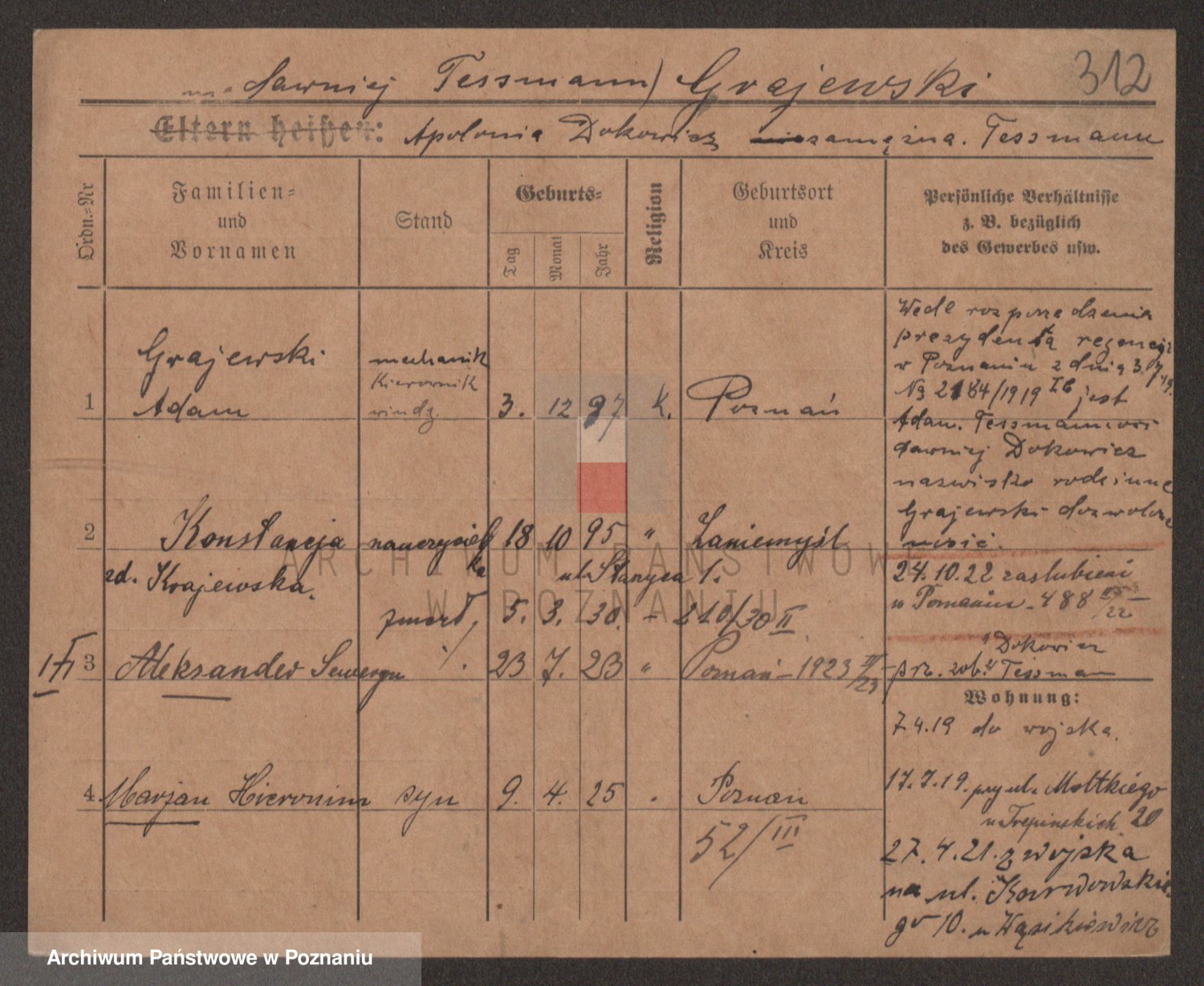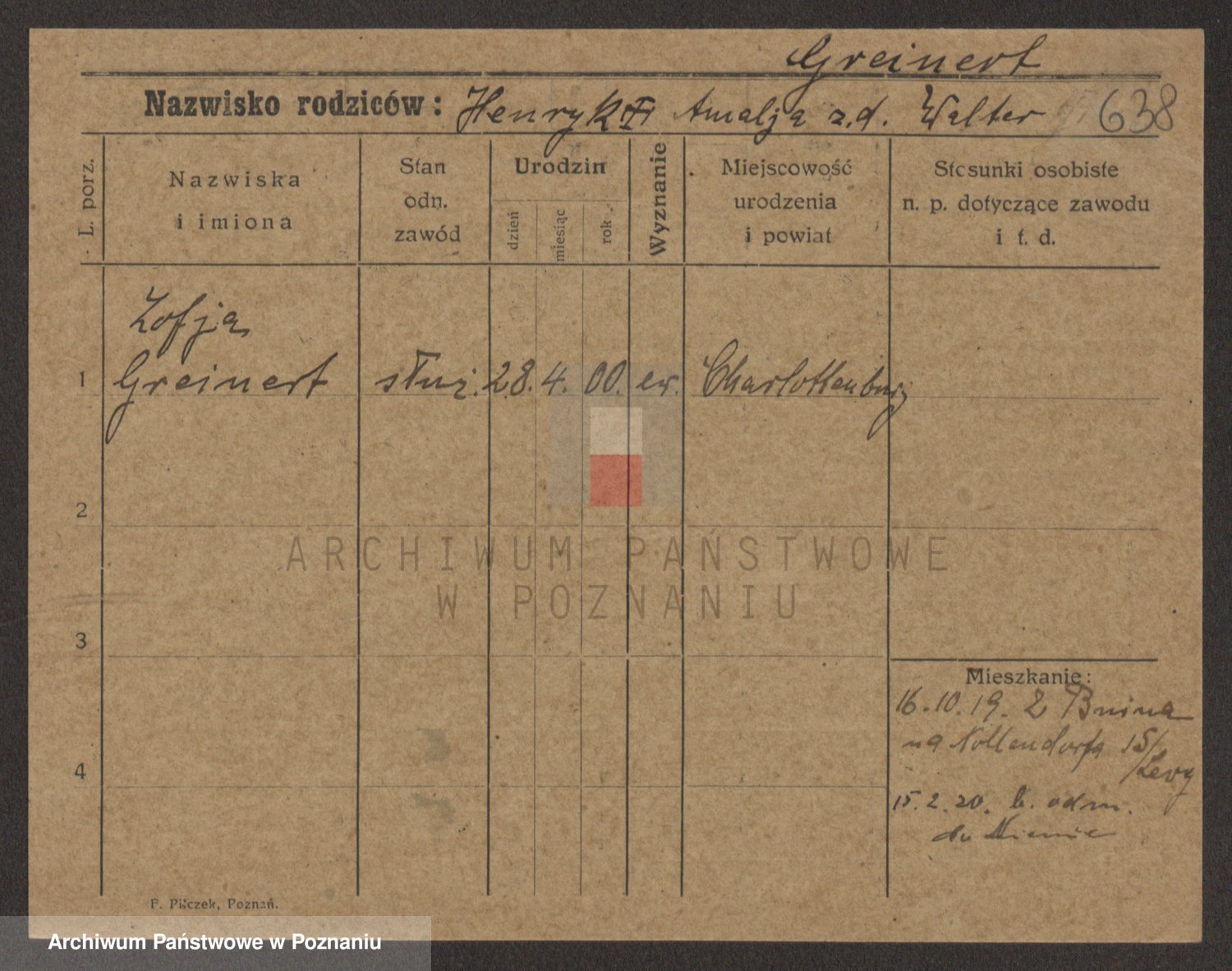 Podgląd karty osobowej dostępny jest po kliknięciu na nazwisko lub ikonkę karty. Można dokonywać powiększenia (ikony na górze) lub przechodzić między kolejnymi skanami (strzałki po bokach).