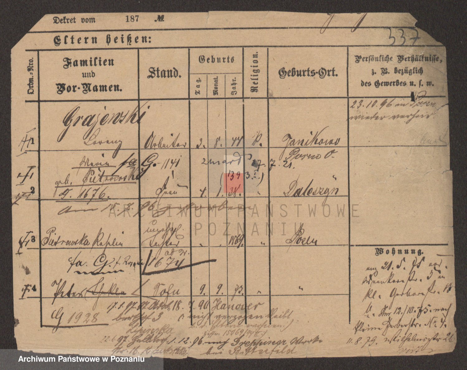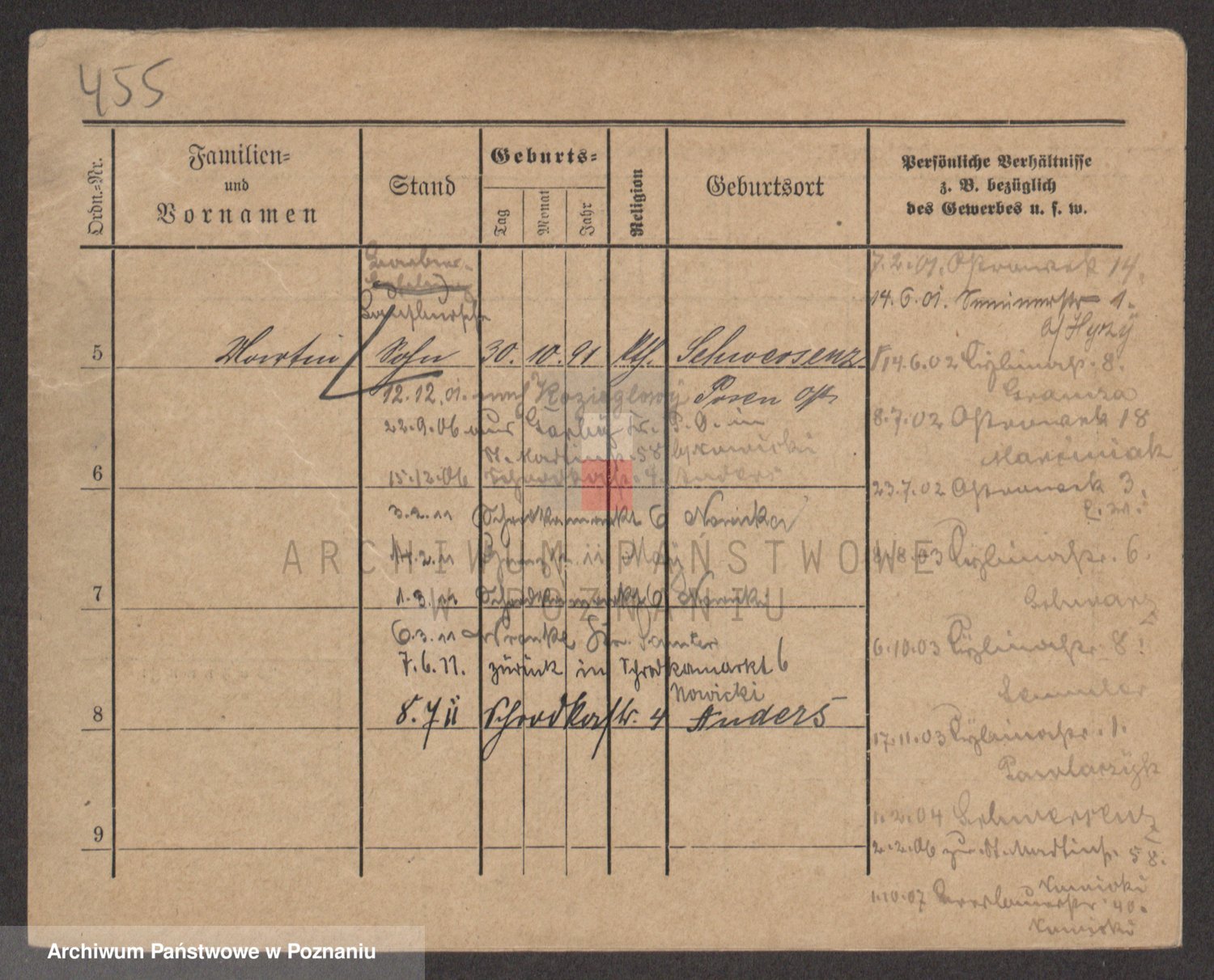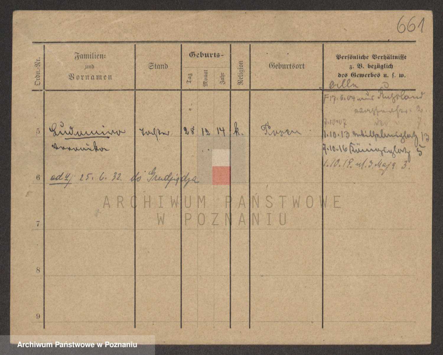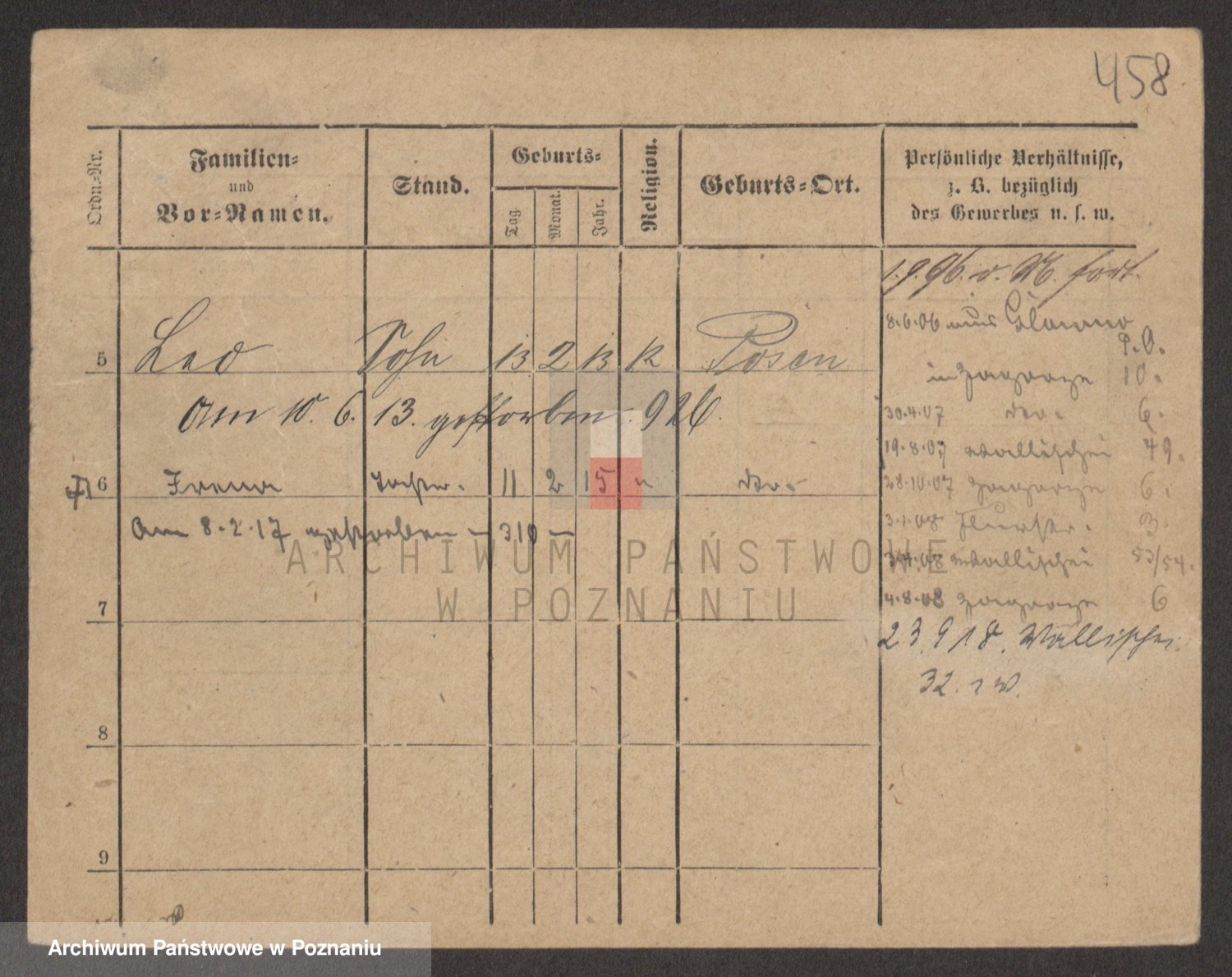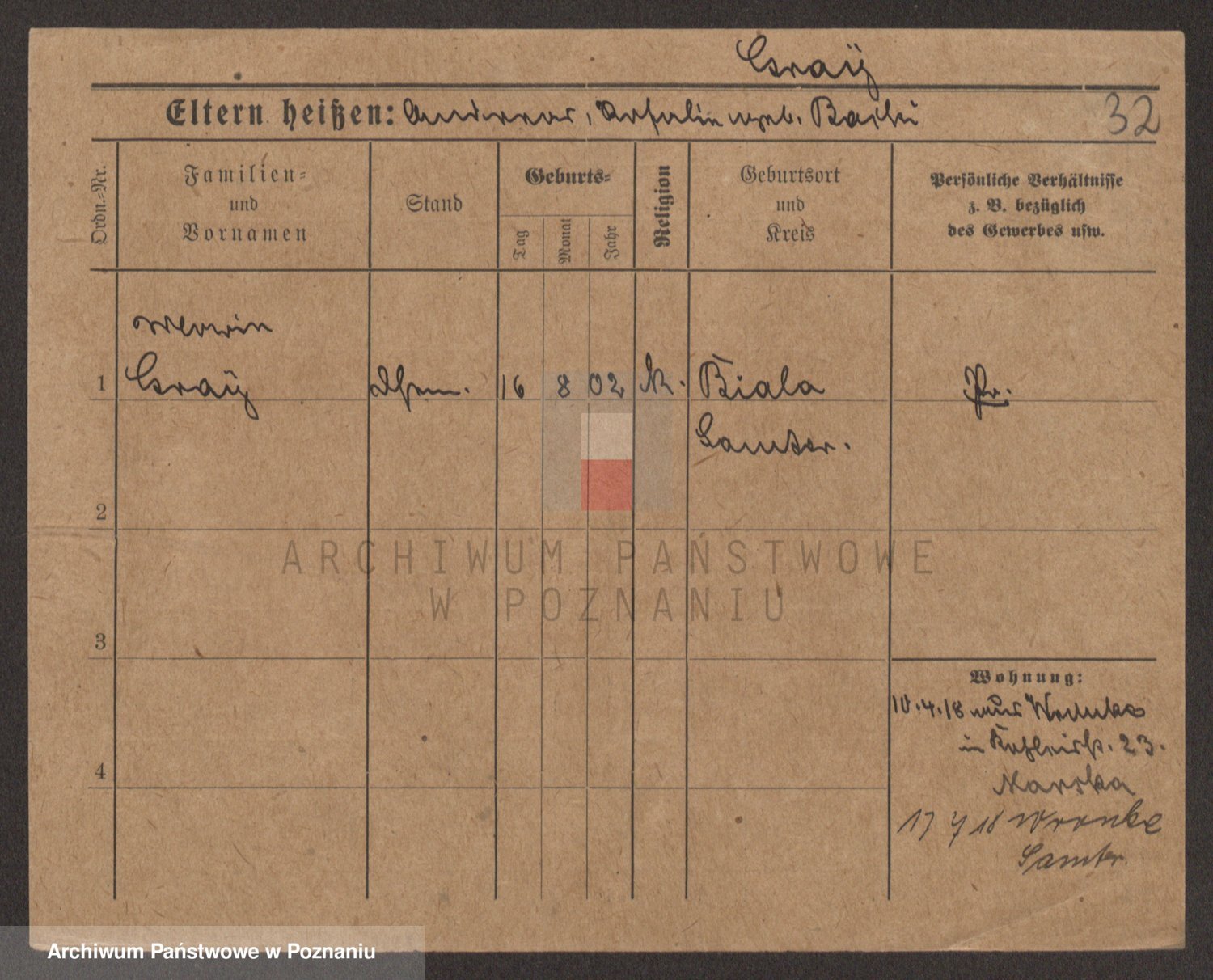 Podgląd karty osobowej dostępny jest po kliknięciu na nazwisko lub ikonkę karty. Można dokonywać powiększenia (ikony na górze) lub przechodzić między kolejnymi skanami (strzałki po bokach).