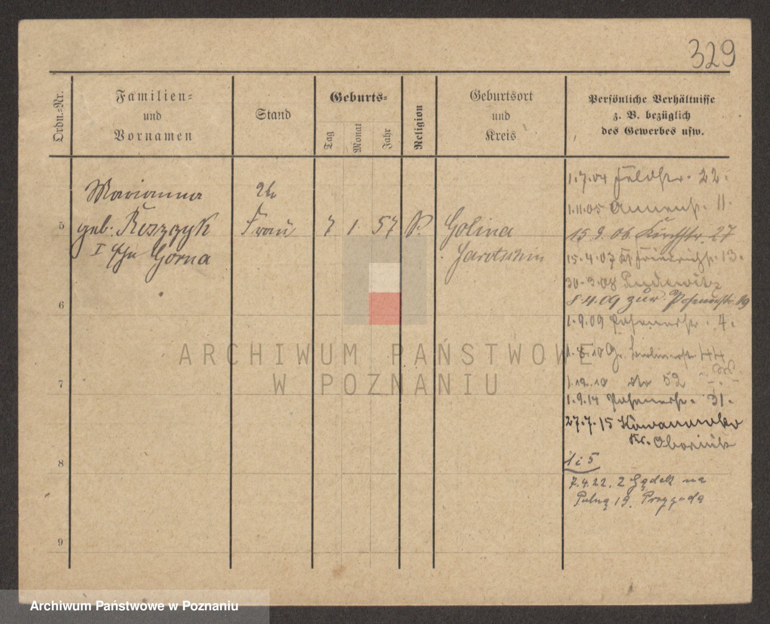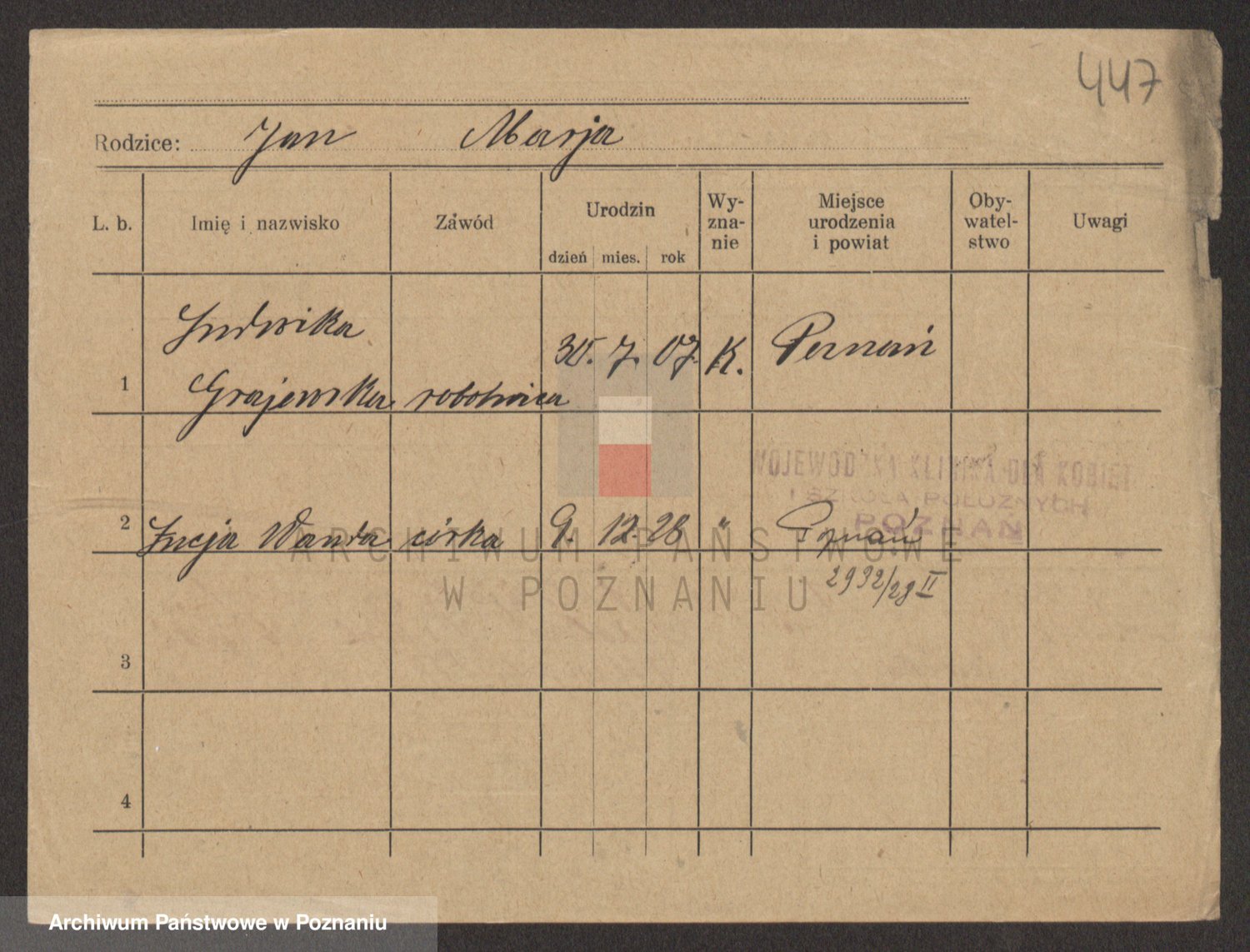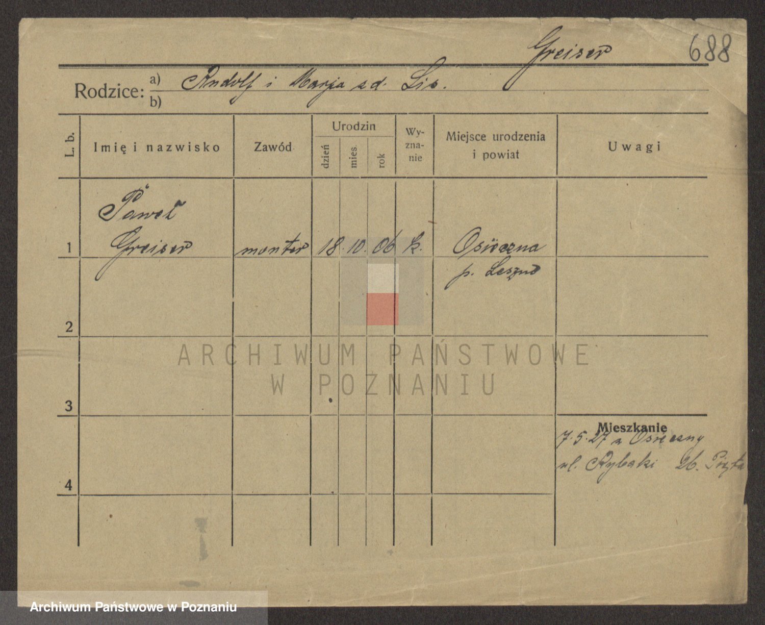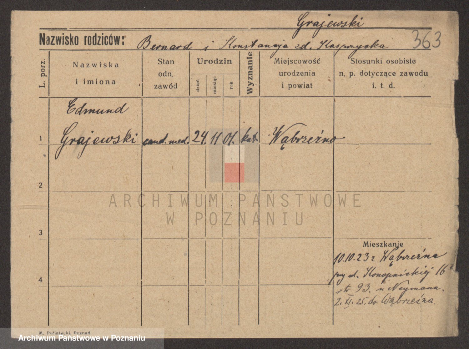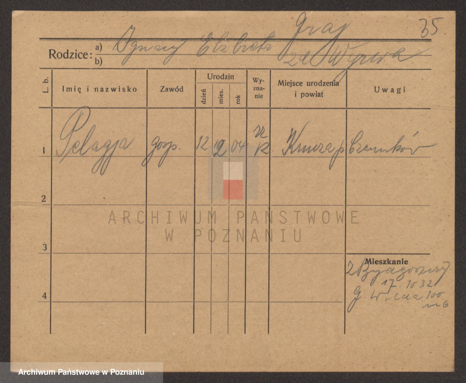 Podgląd karty osobowej dostępny jest po kliknięciu na nazwisko lub ikonkę karty. Można dokonywać powiększenia (ikony na górze) lub przechodzić między kolejnymi skanami (strzałki po bokach).