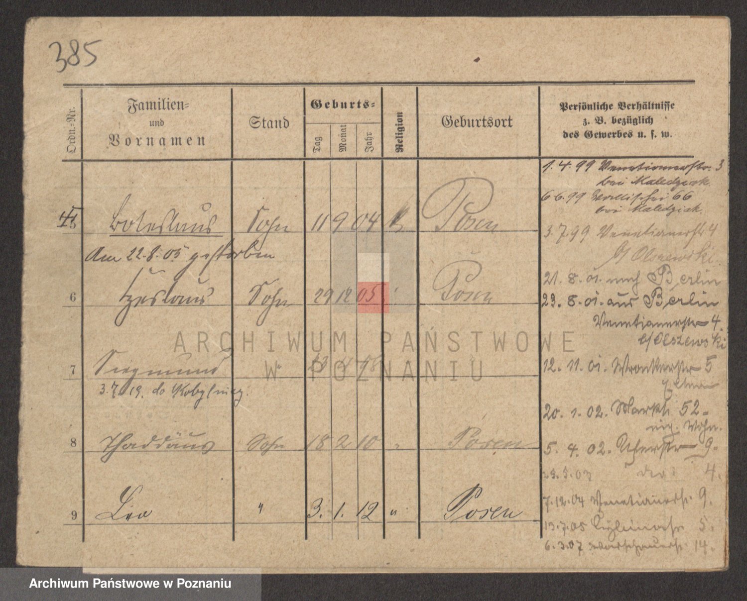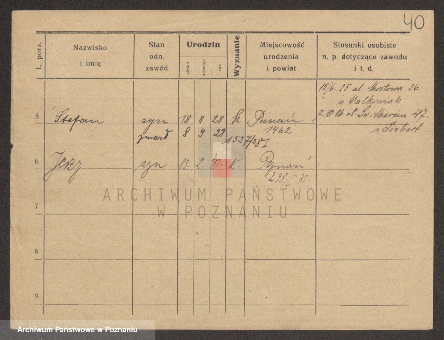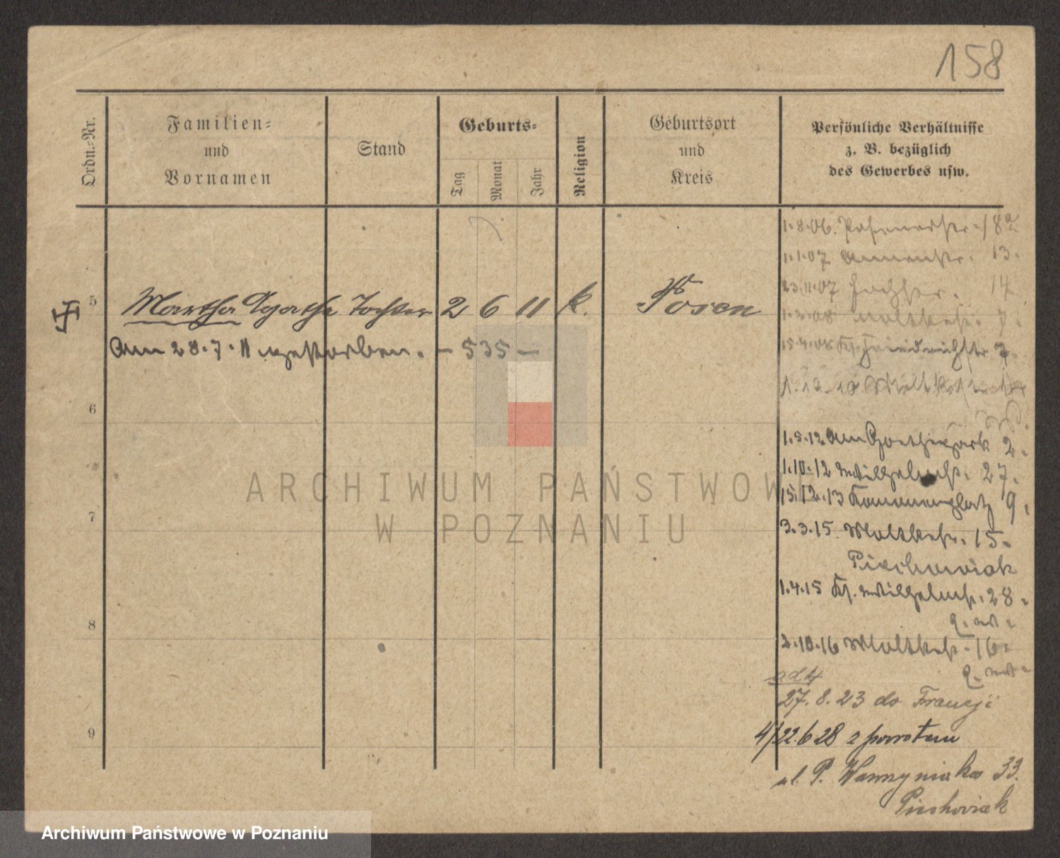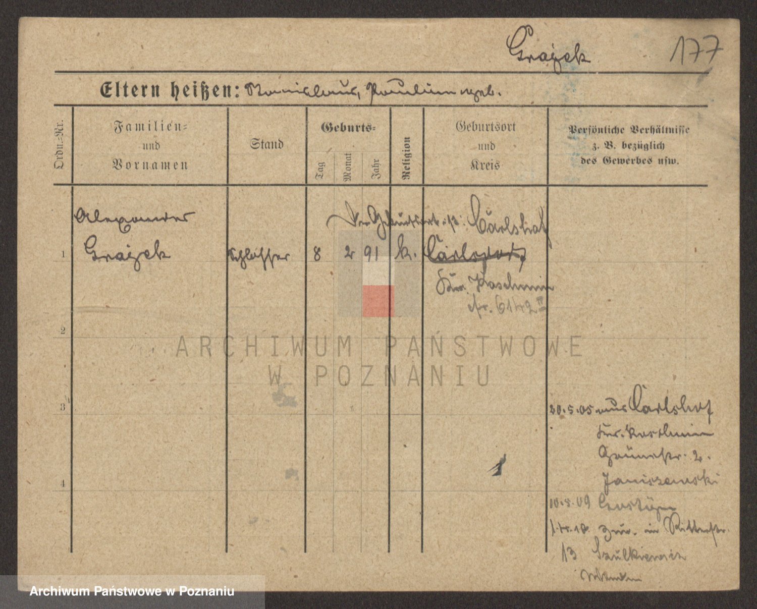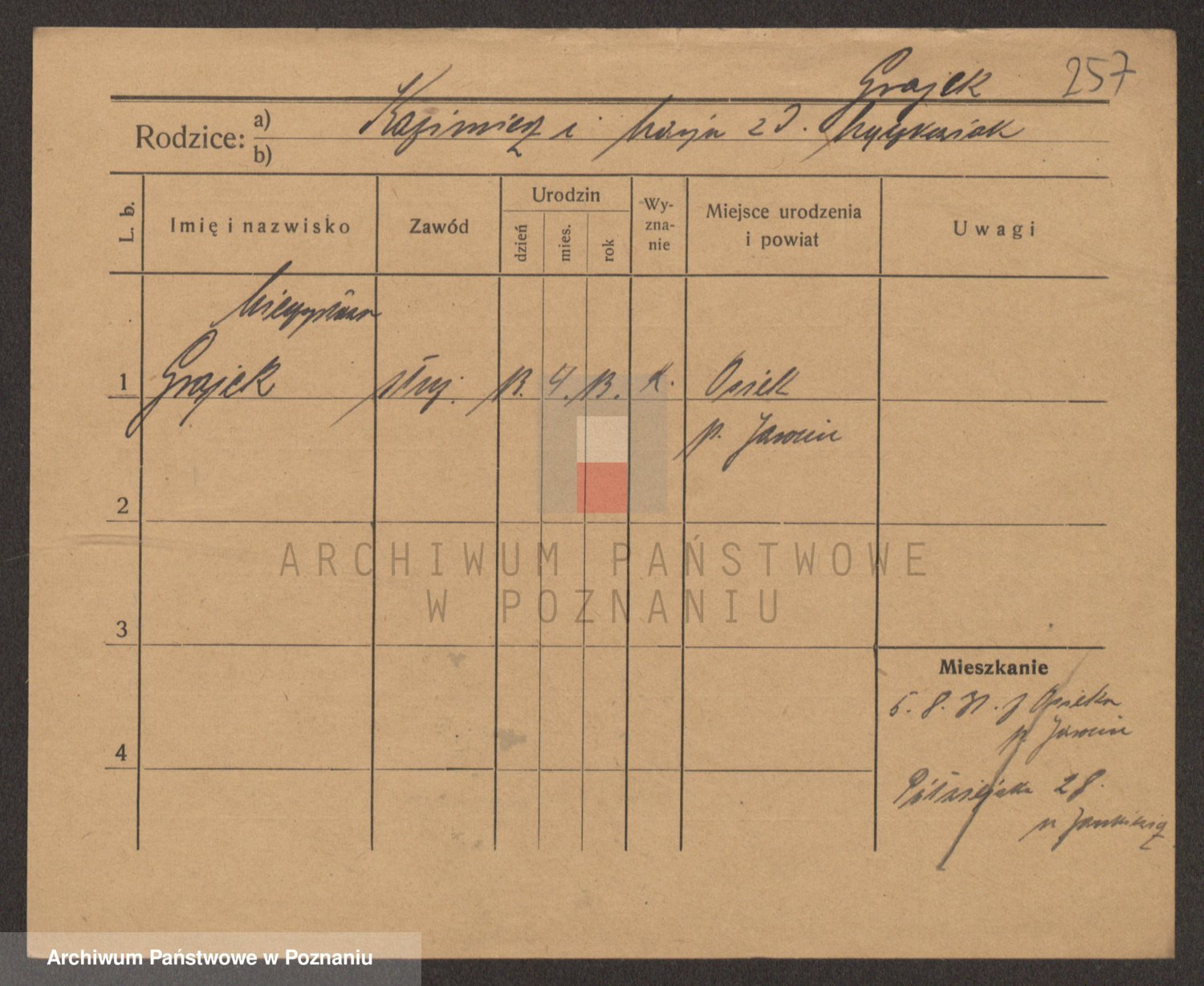 Podgląd karty osobowej dostępny jest po kliknięciu na nazwisko lub ikonkę karty. Można dokonywać powiększenia (ikony na górze) lub przechodzić między kolejnymi skanami (strzałki po bokach).
