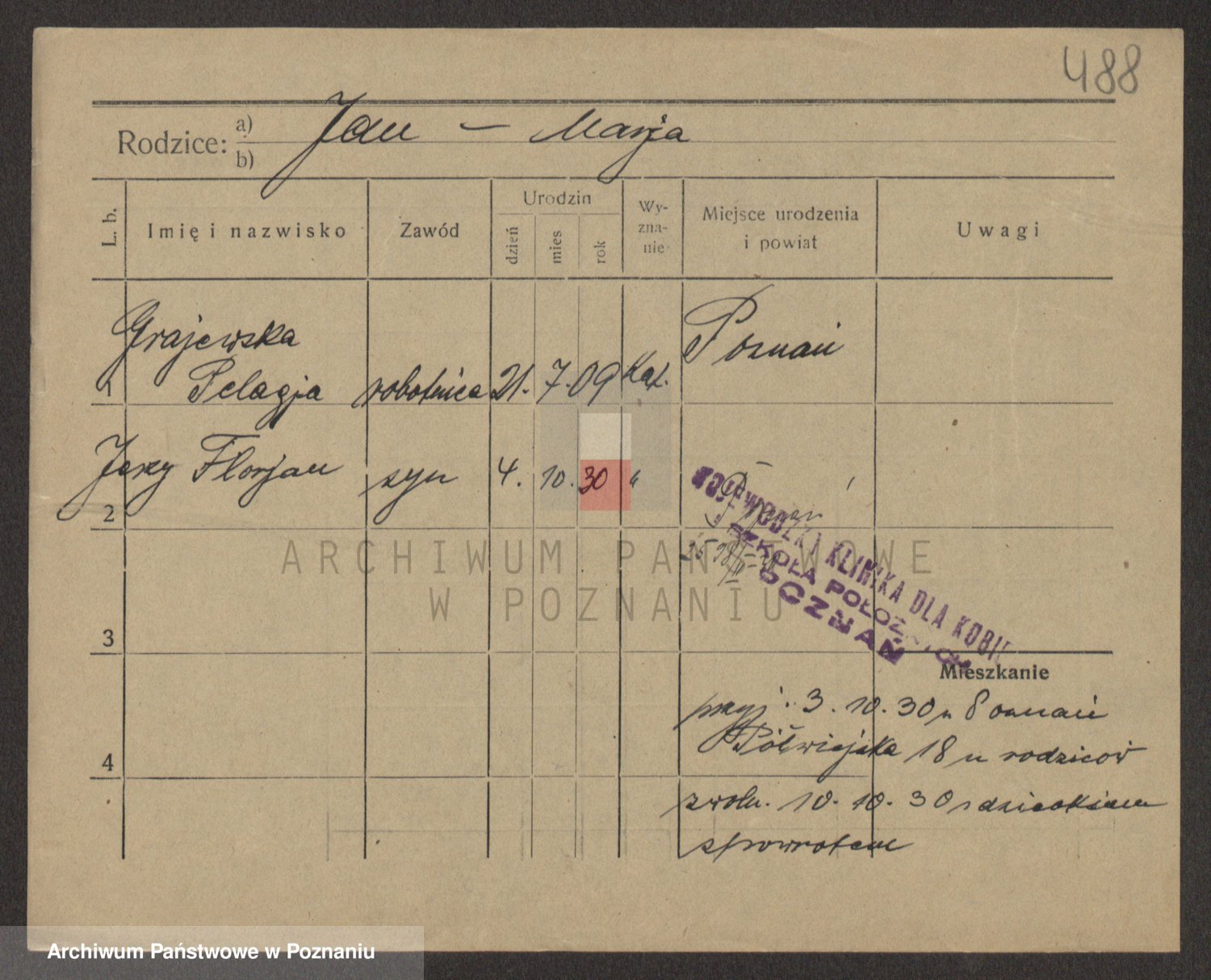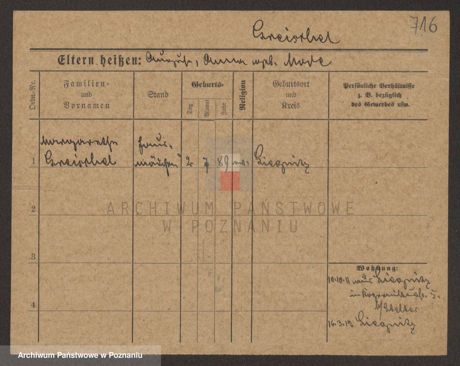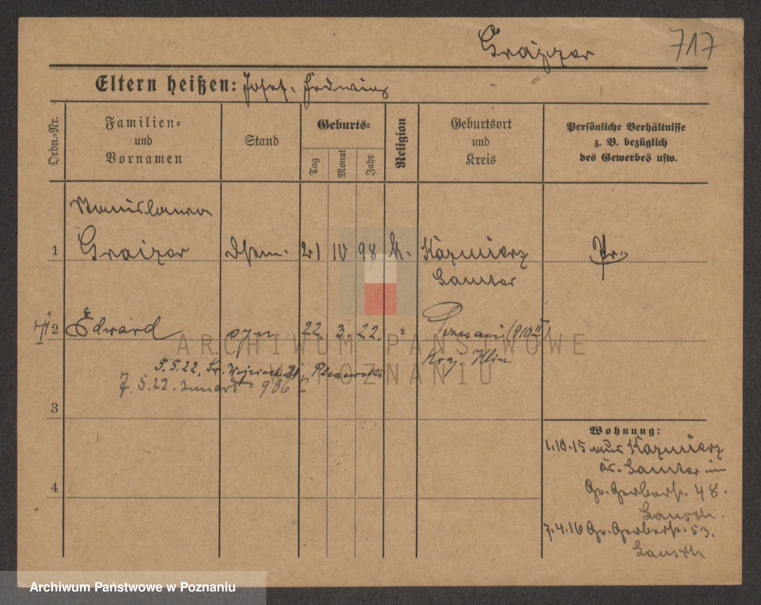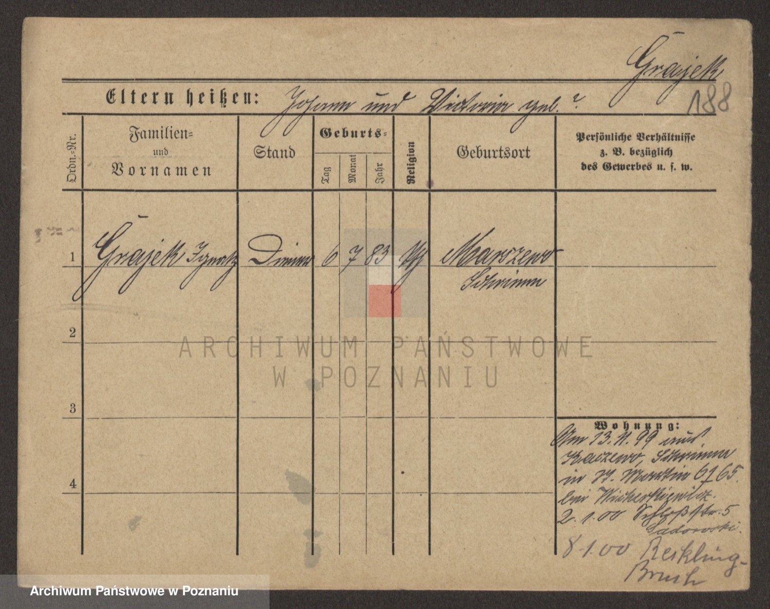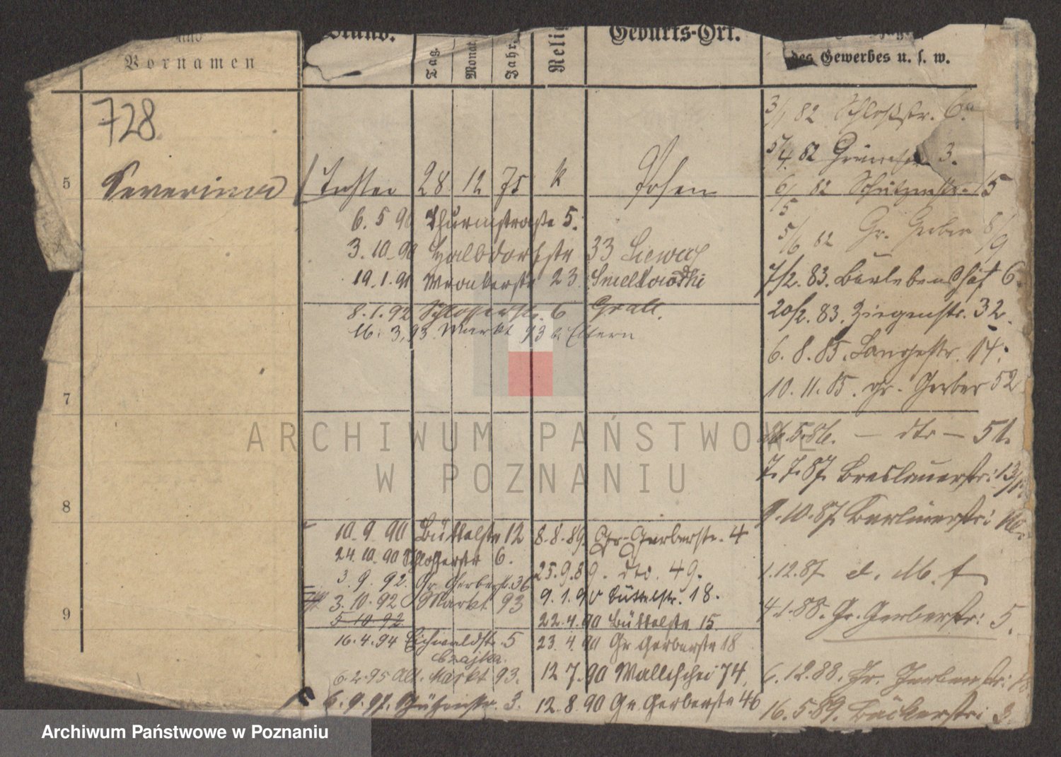Podgląd karty osobowej dostępny jest po kliknięciu na nazwisko lub ikonkę karty. Można dokonywać powiększenia (ikony na górze) lub przechodzić między kolejnymi skanami (strzałki po bokach).
