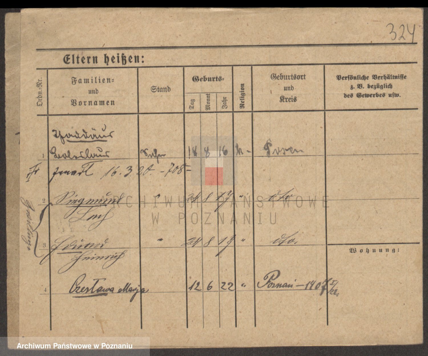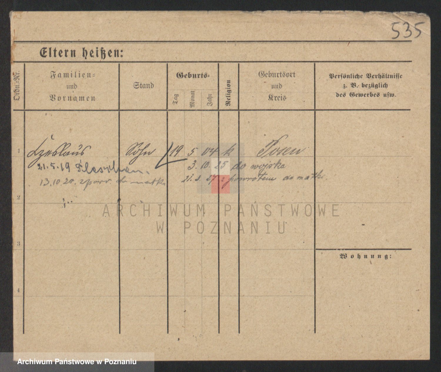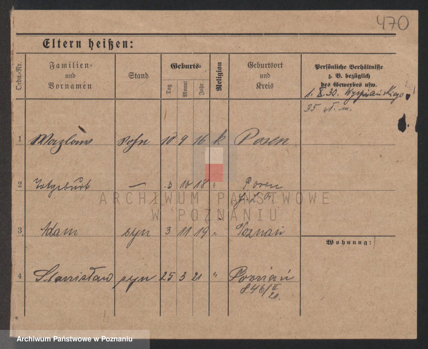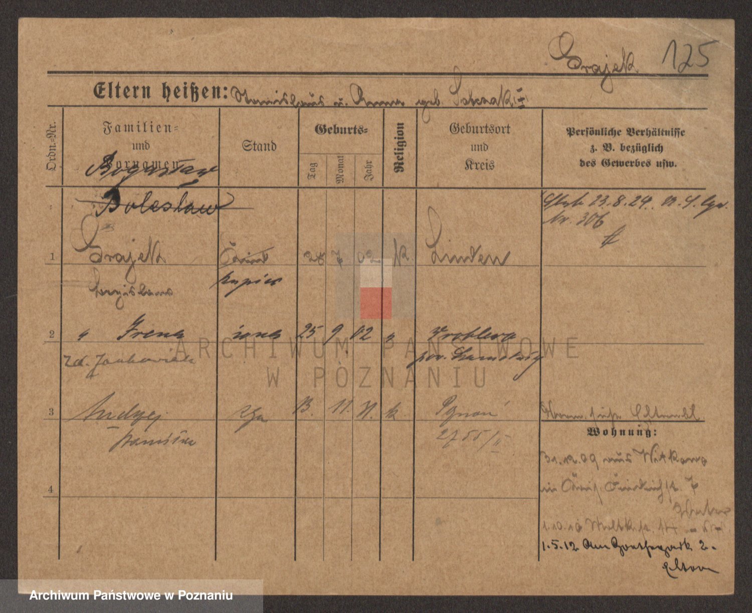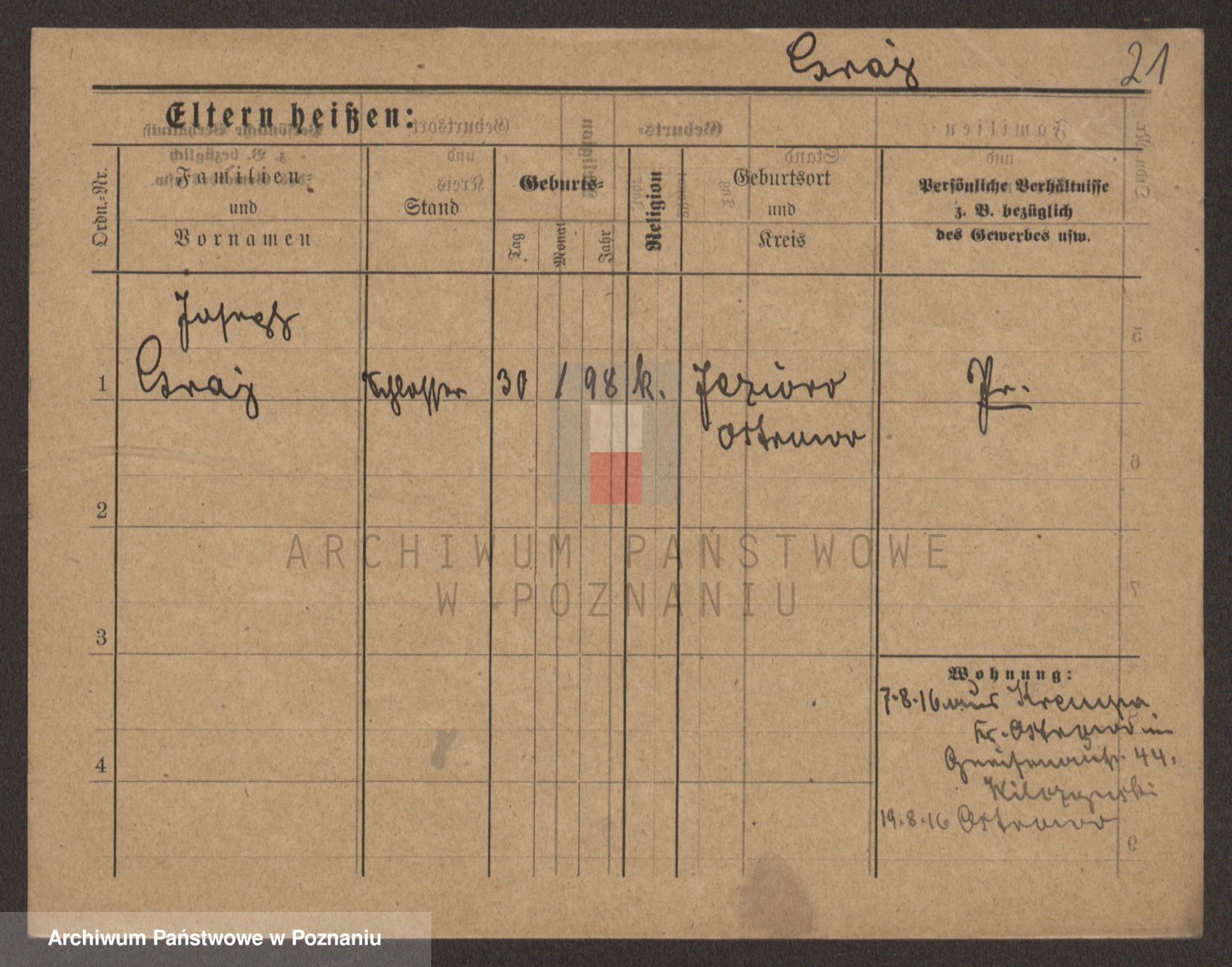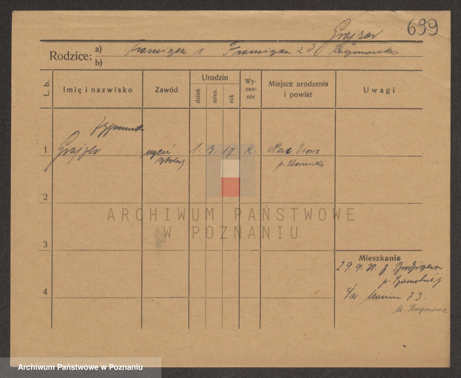 Podgląd karty osobowej dostępny jest po kliknięciu na nazwisko lub ikonkę karty. Można dokonywać powiększenia (ikony na górze) lub przechodzić między kolejnymi skanami (strzałki po bokach).