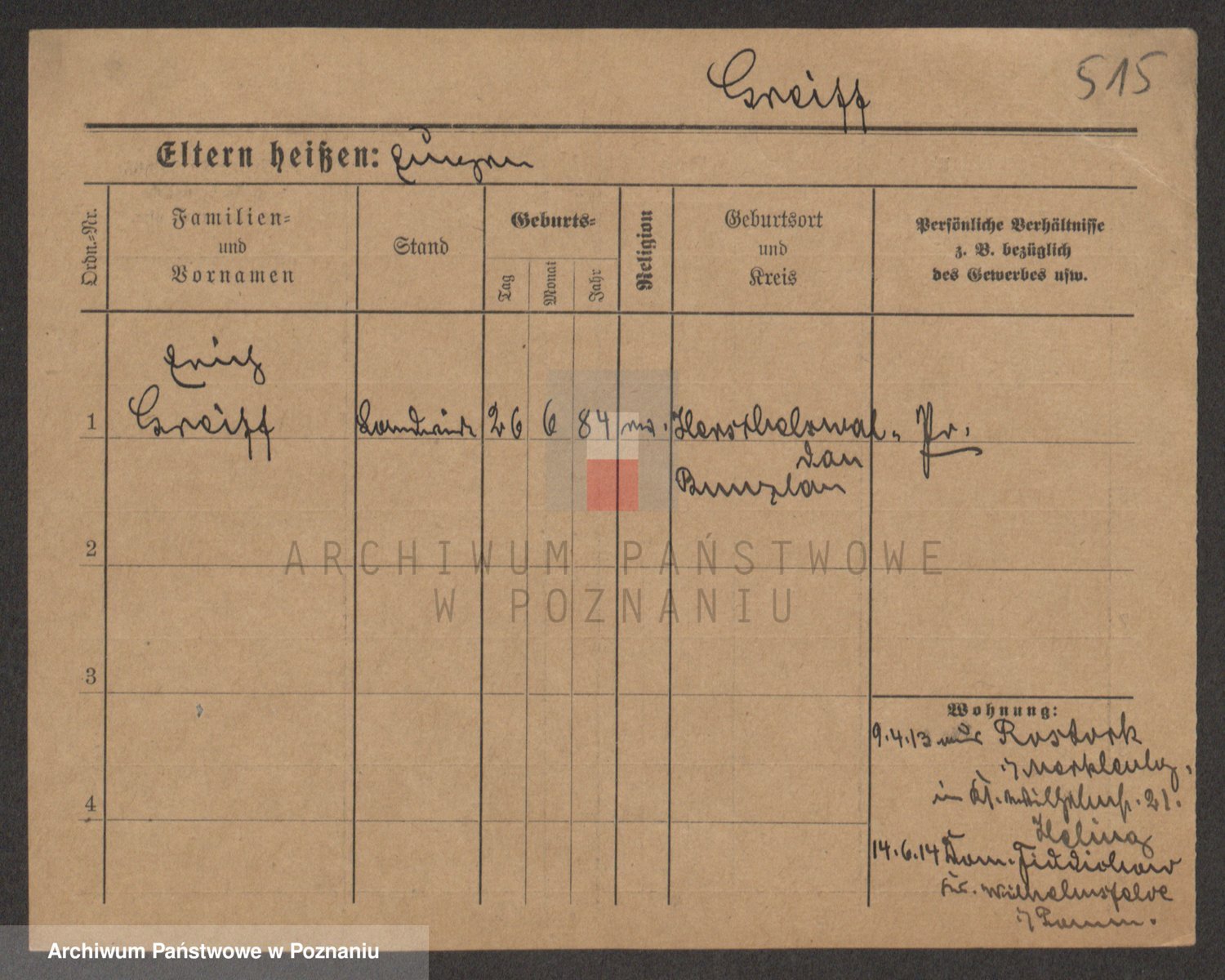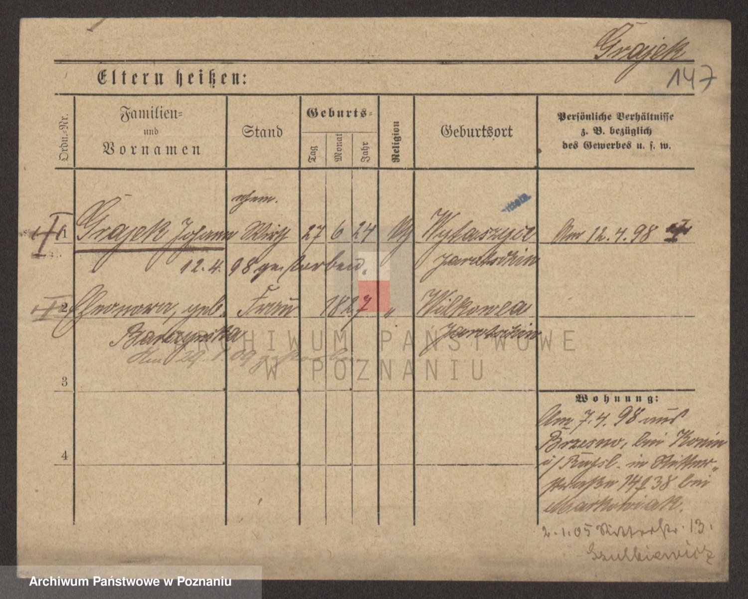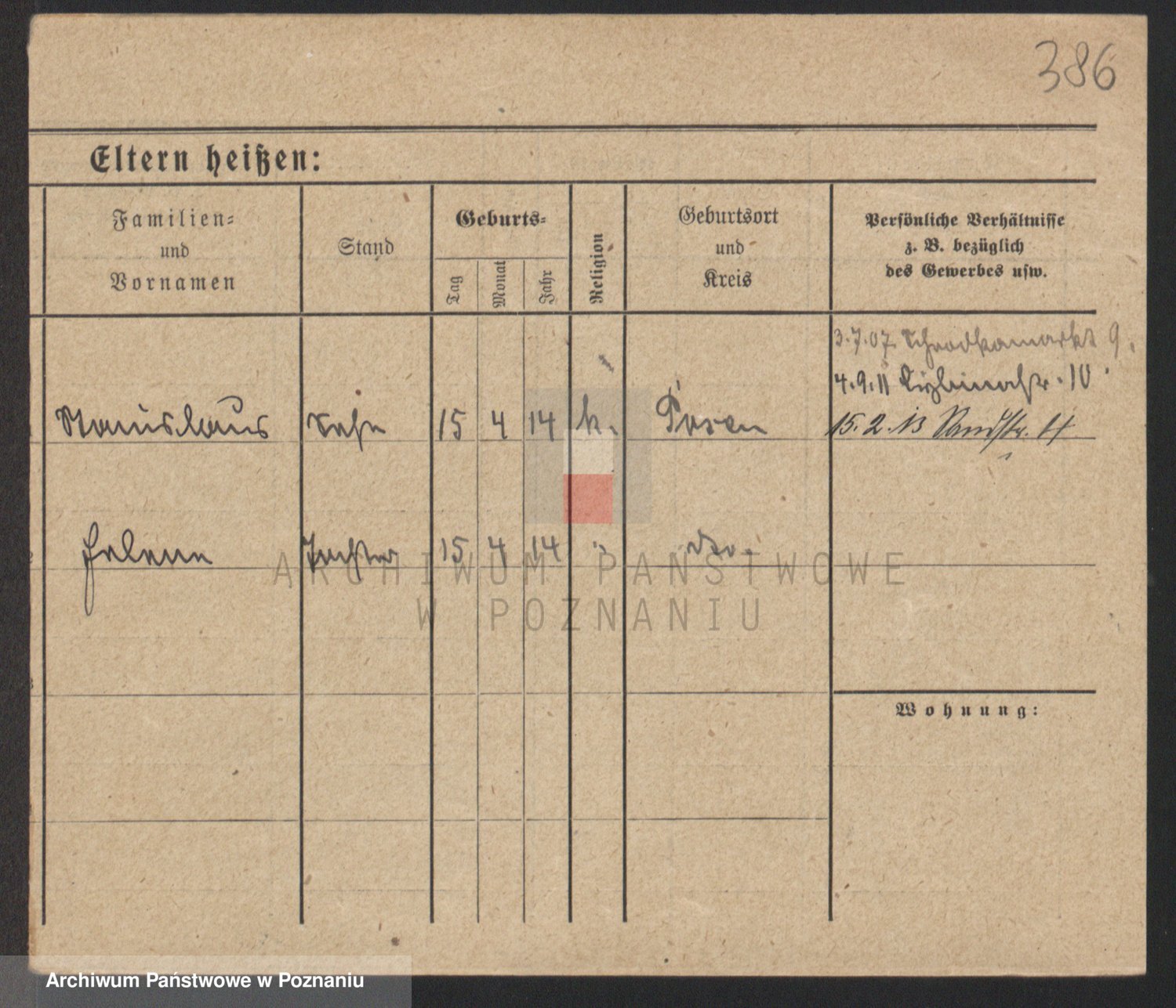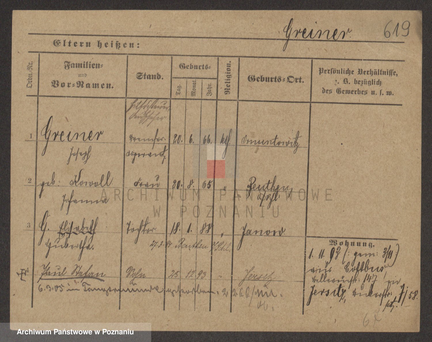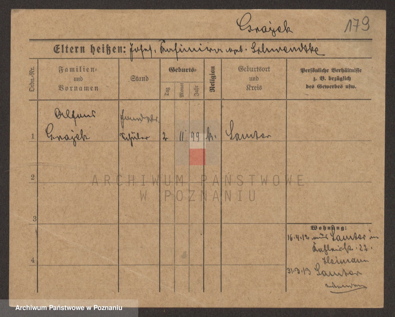 Podgląd karty osobowej dostępny jest po kliknięciu na nazwisko lub ikonkę karty. Można dokonywać powiększenia (ikony na górze) lub przechodzić między kolejnymi skanami (strzałki po bokach).