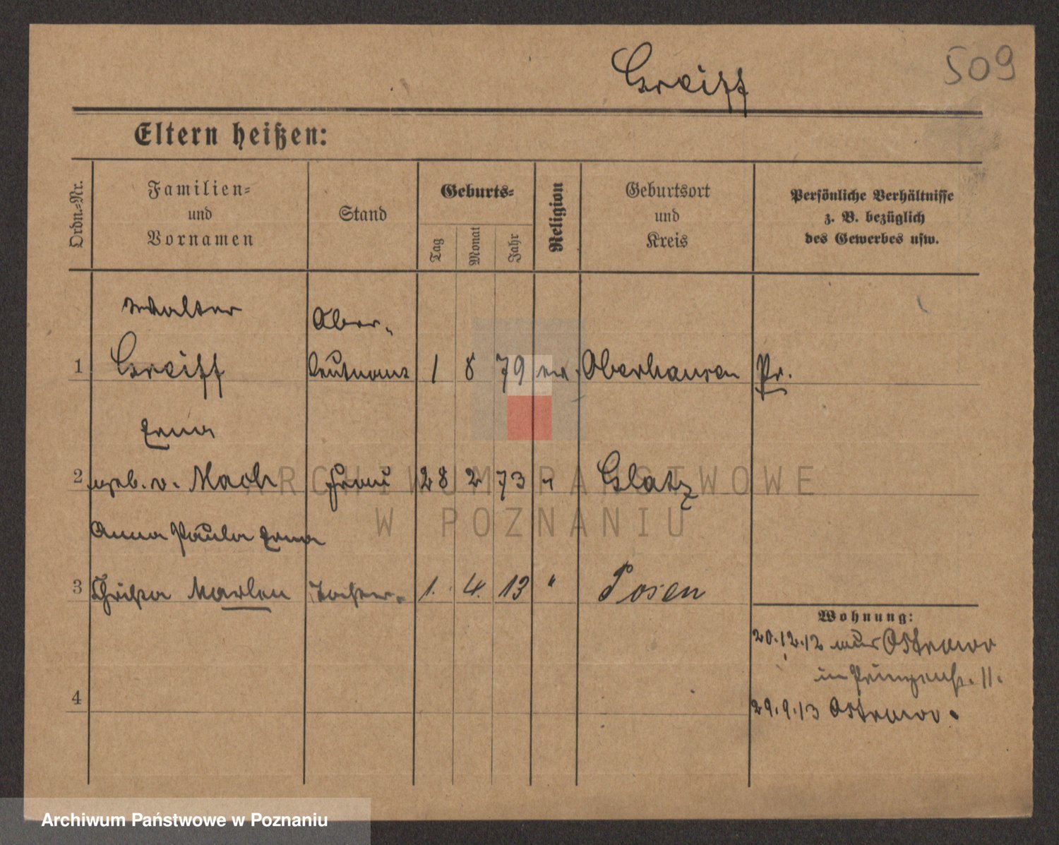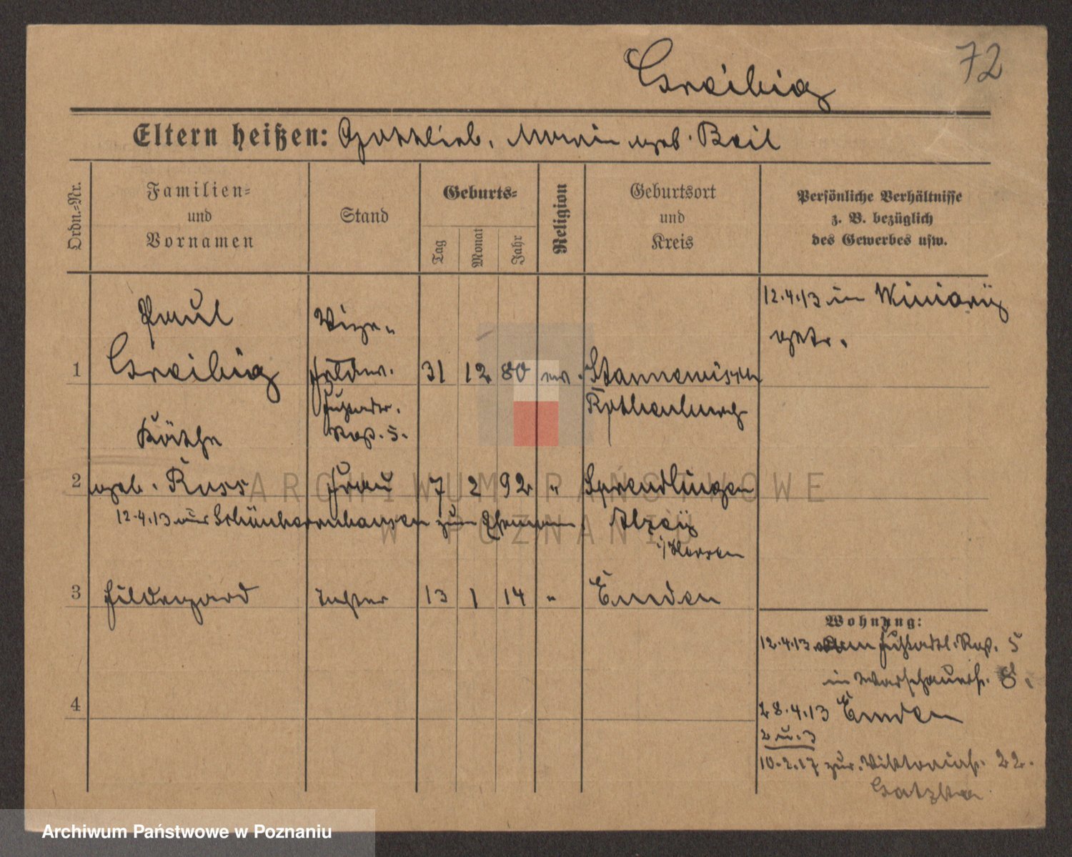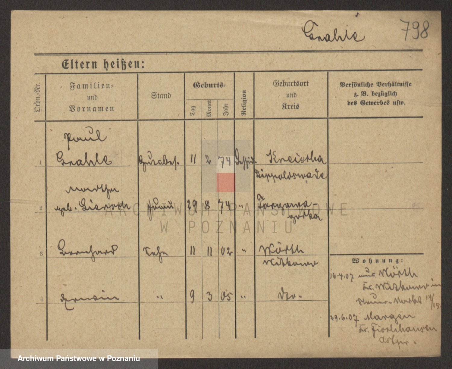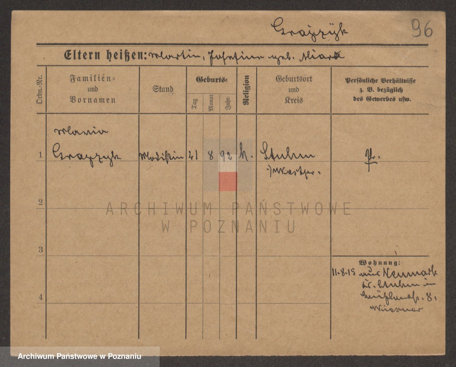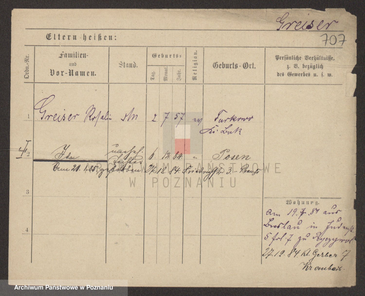 Podgląd karty osobowej dostępny jest po kliknięciu na nazwisko lub ikonkę karty. Można dokonywać powiększenia (ikony na górze) lub przechodzić między kolejnymi skanami (strzałki po bokach).