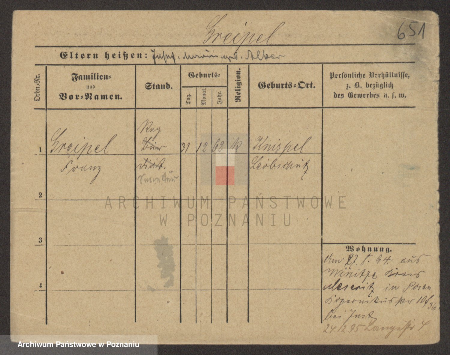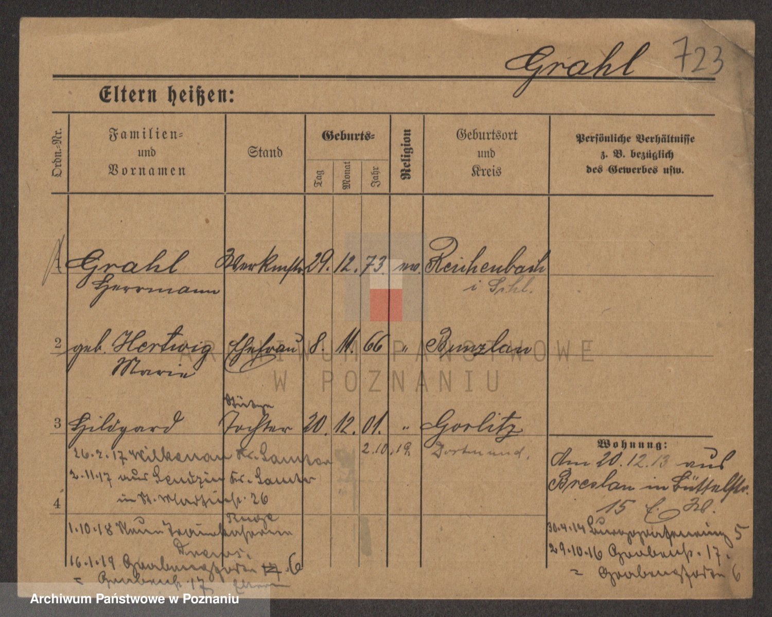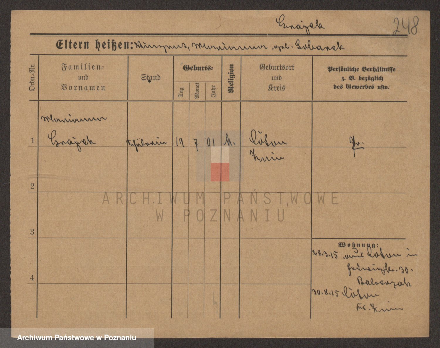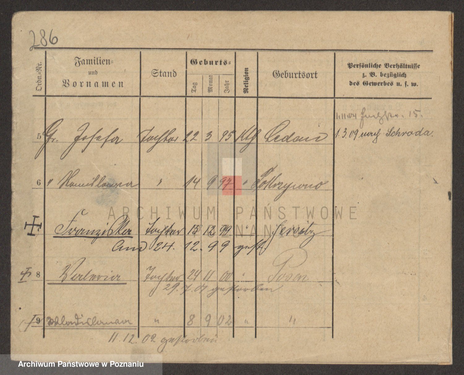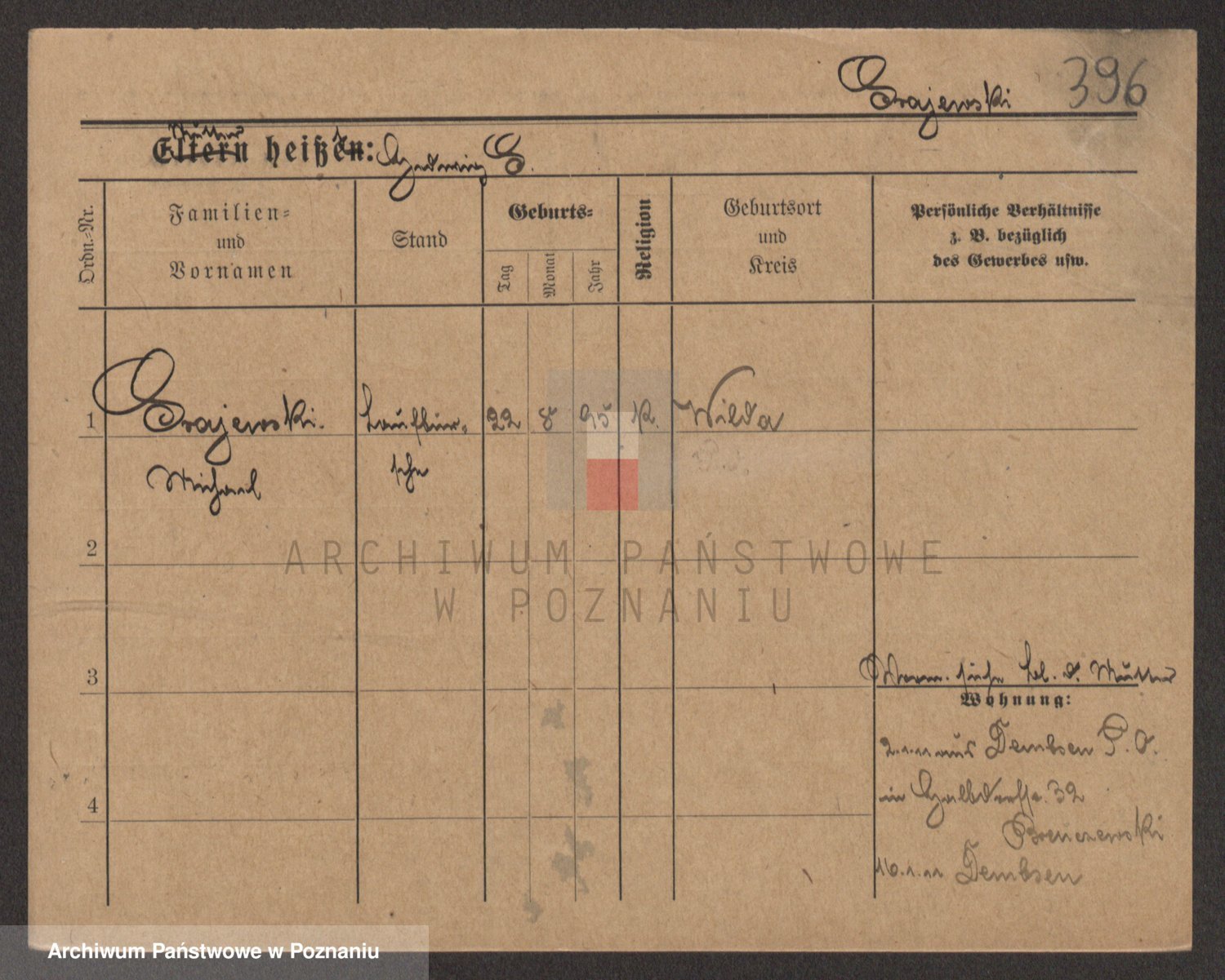 Podgląd karty osobowej dostępny jest po kliknięciu na nazwisko lub ikonkę karty. Można dokonywać powiększenia (ikony na górze) lub przechodzić między kolejnymi skanami (strzałki po bokach).