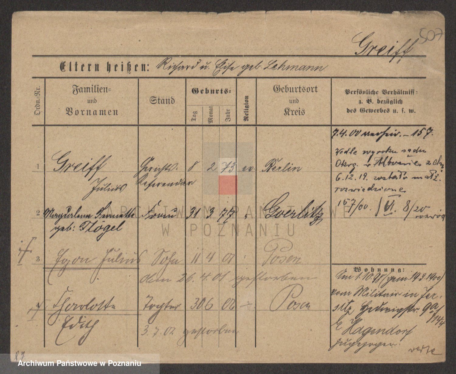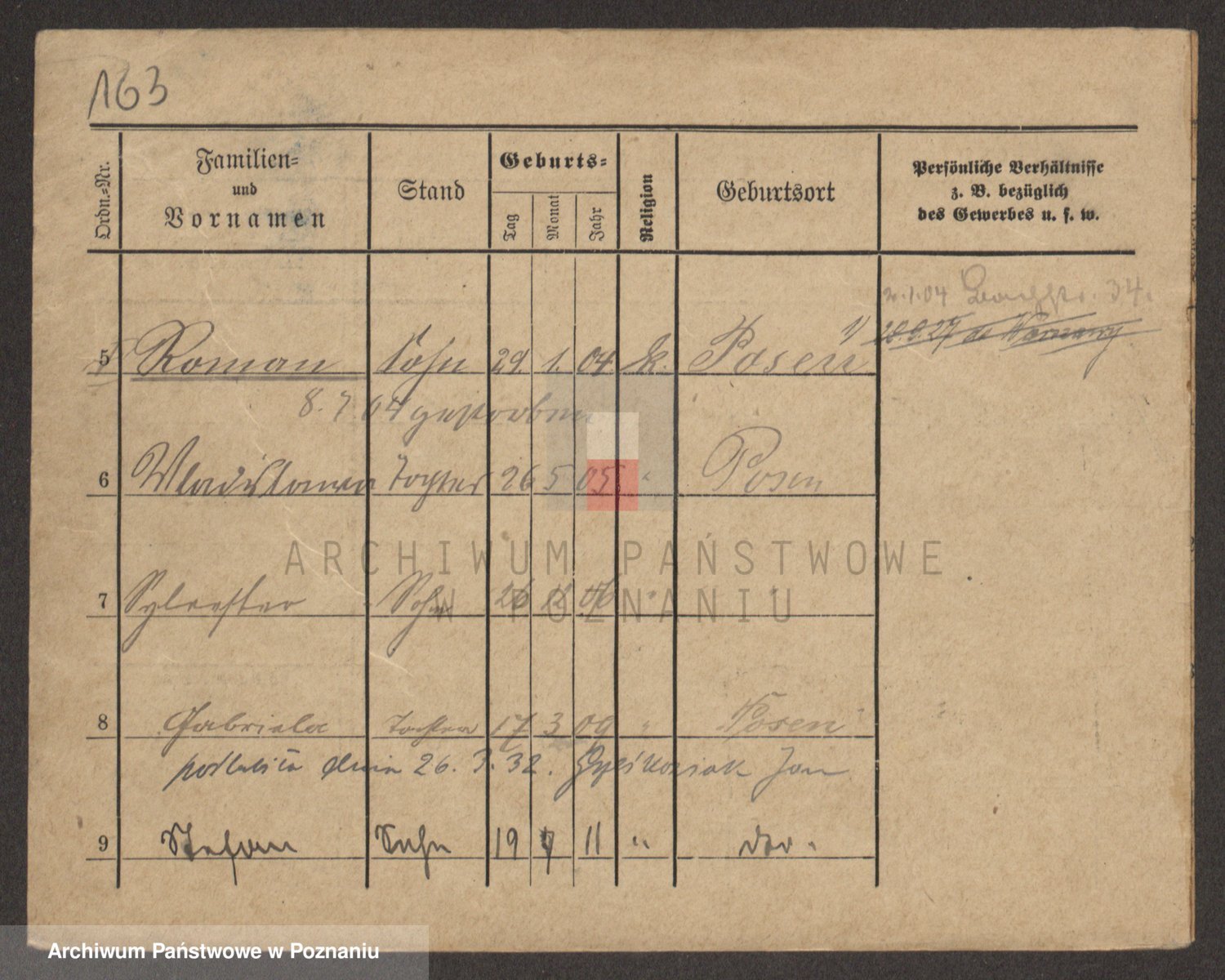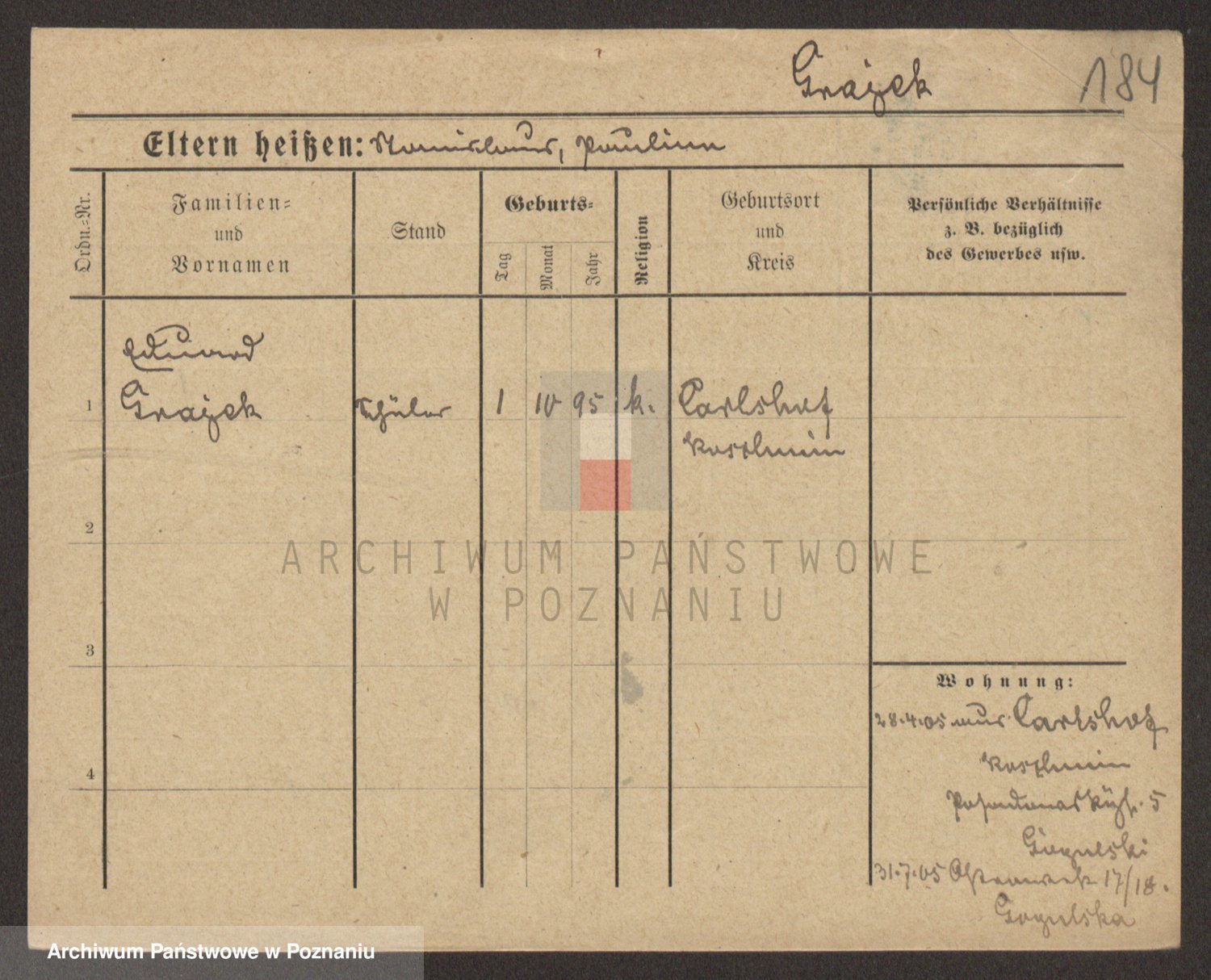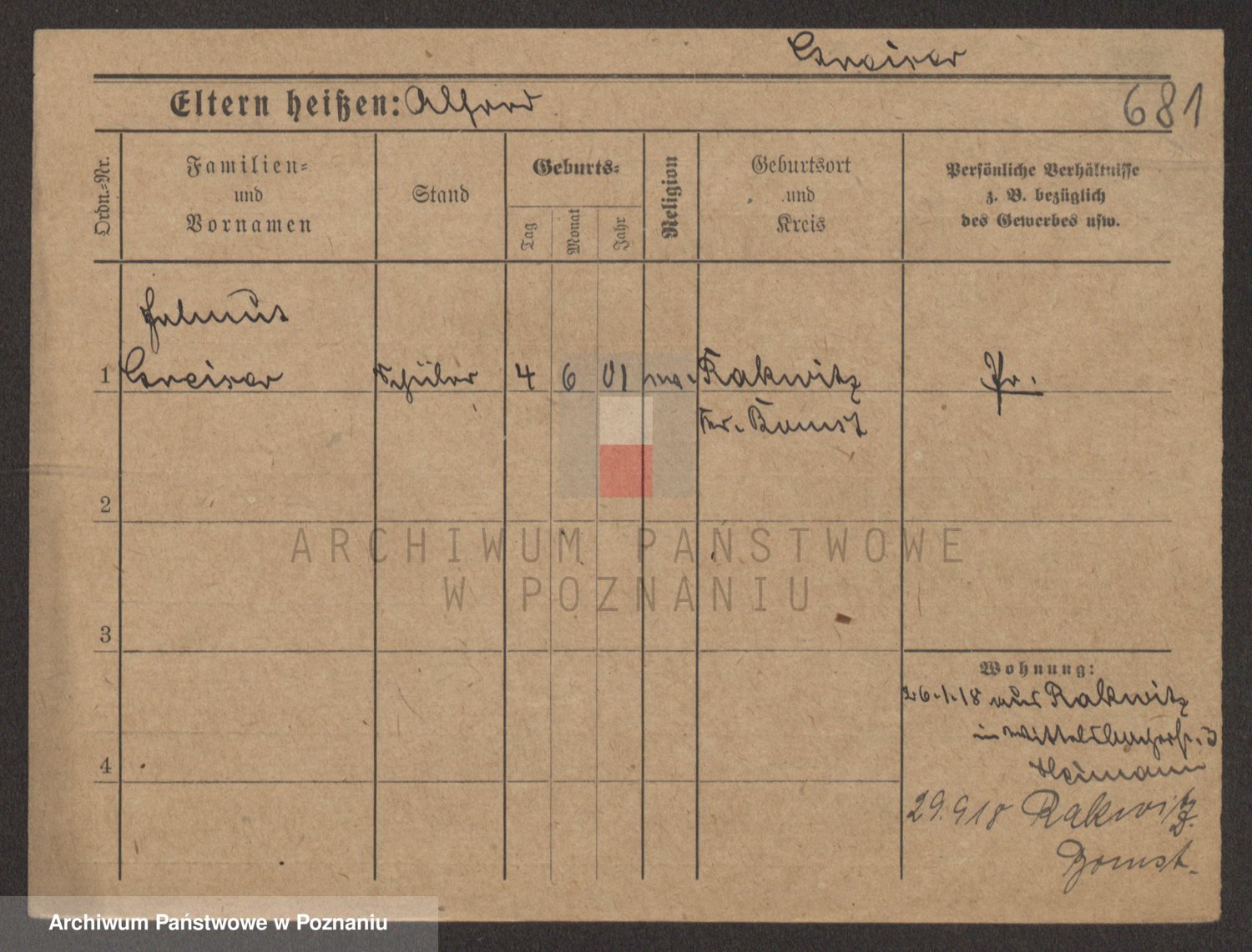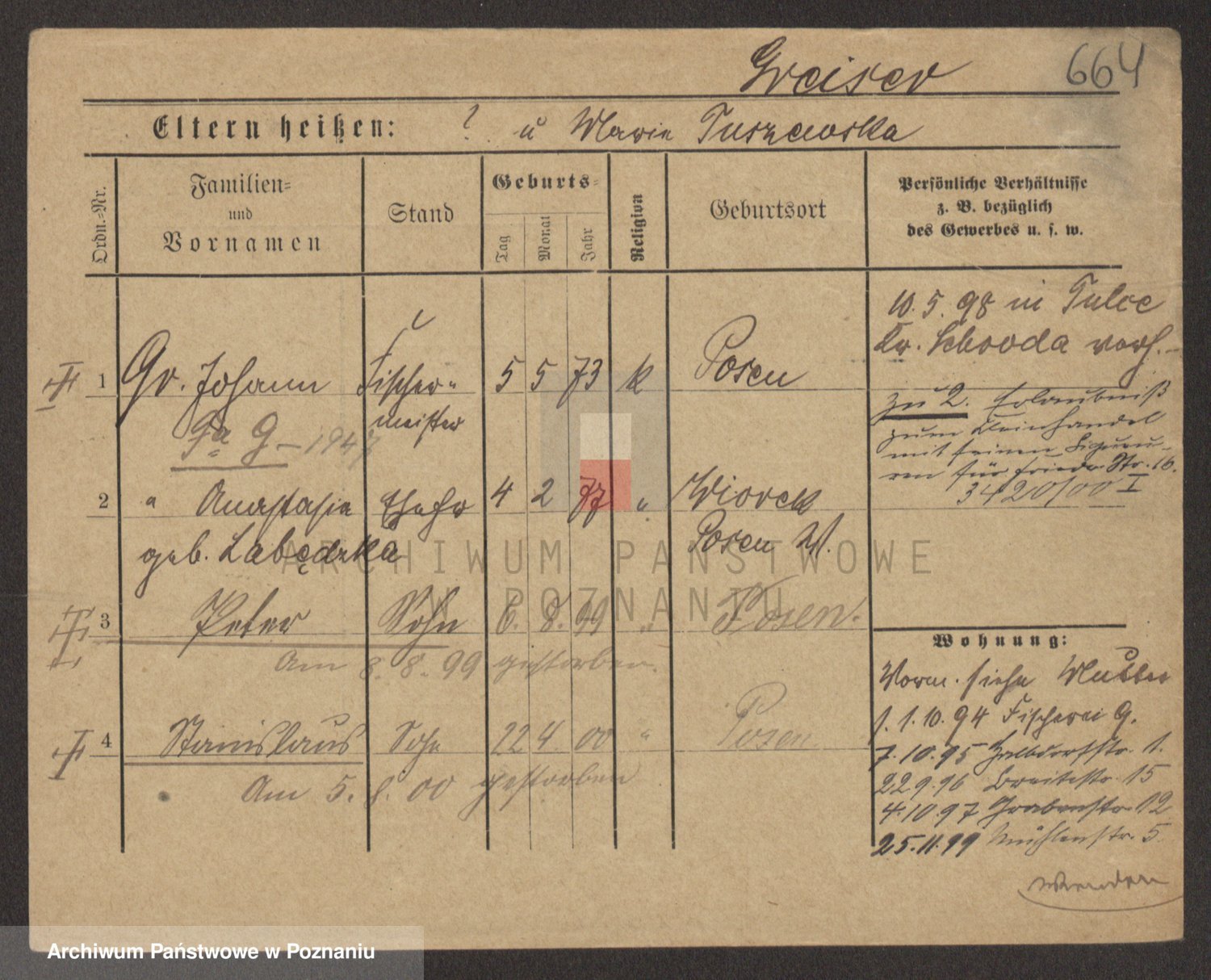 Podgląd karty osobowej dostępny jest po kliknięciu na nazwisko lub ikonkę karty. Można dokonywać powiększenia (ikony na górze) lub przechodzić między kolejnymi skanami (strzałki po bokach).