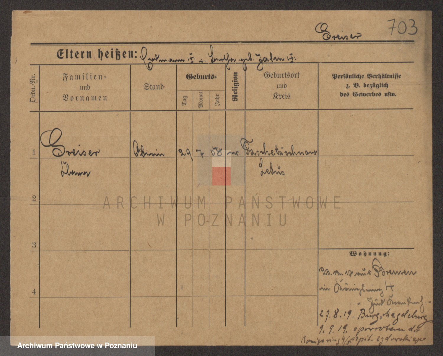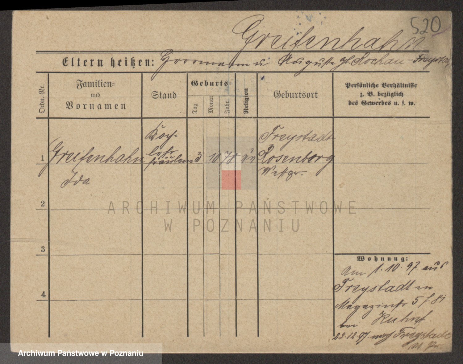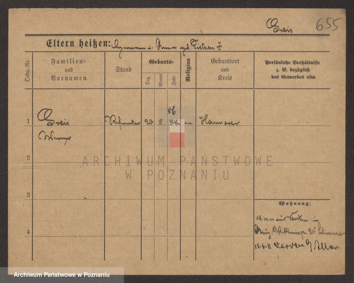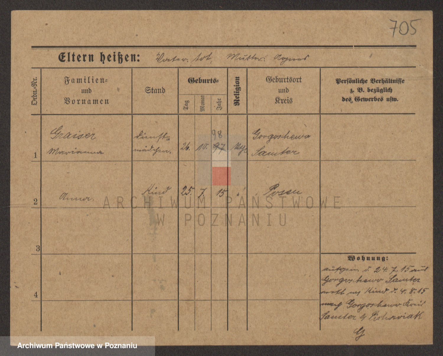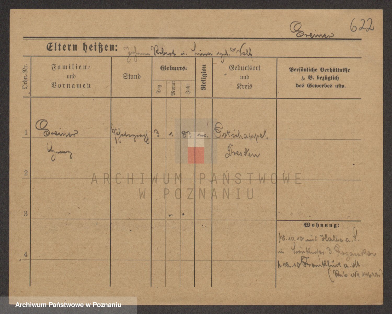Podgląd karty osobowej dostępny jest po kliknięciu na nazwisko lub ikonkę karty. Można dokonywać powiększenia (ikony na górze) lub przechodzić między kolejnymi skanami (strzałki po bokach).