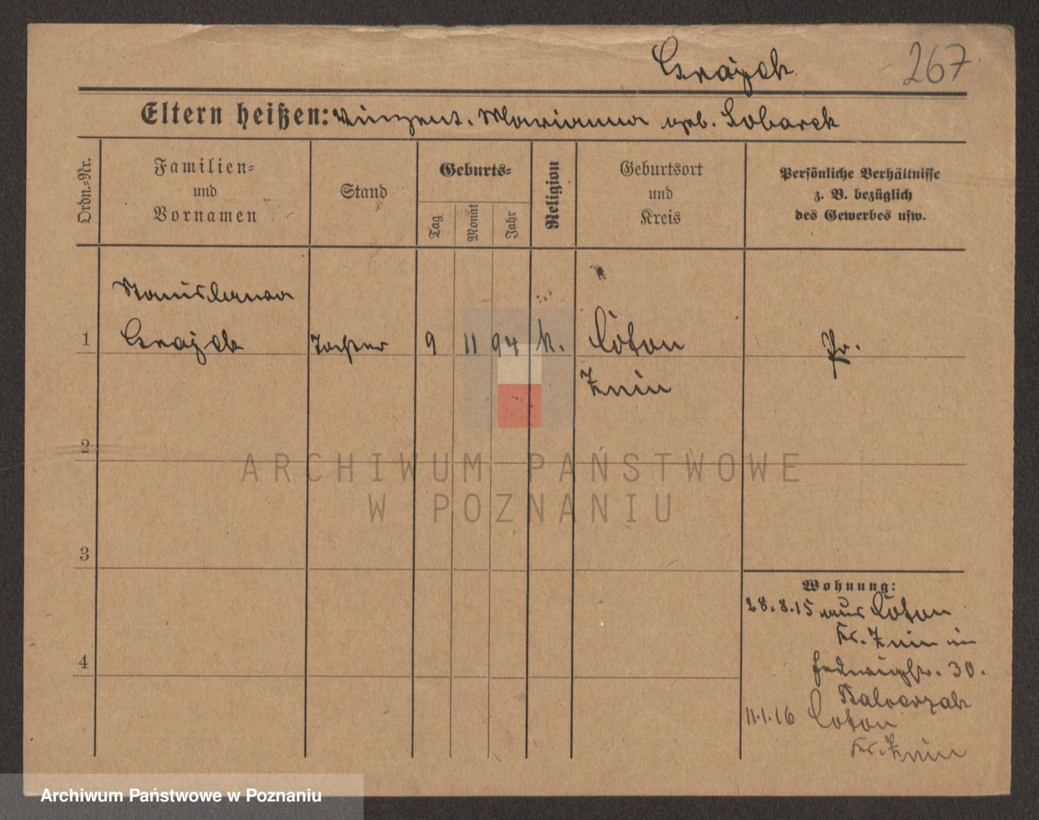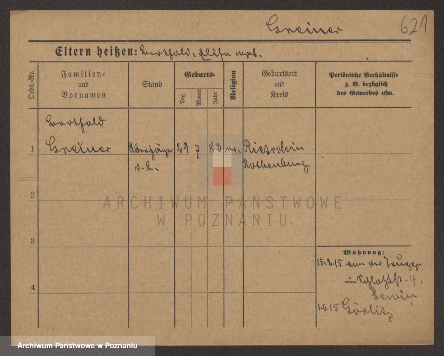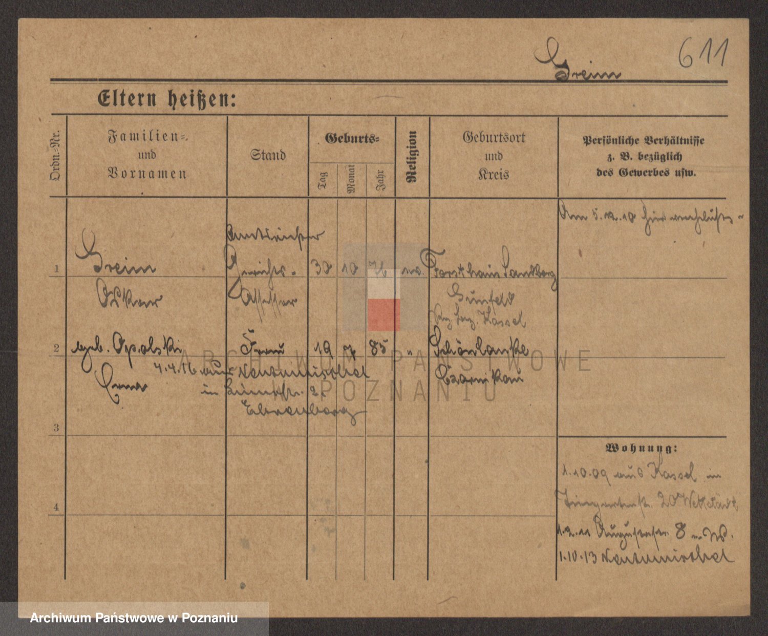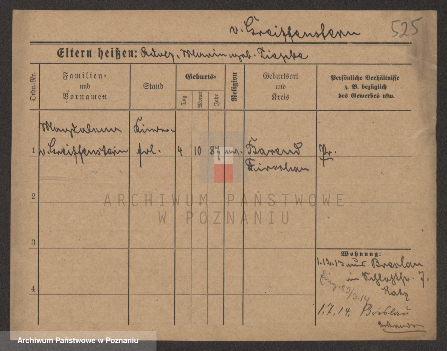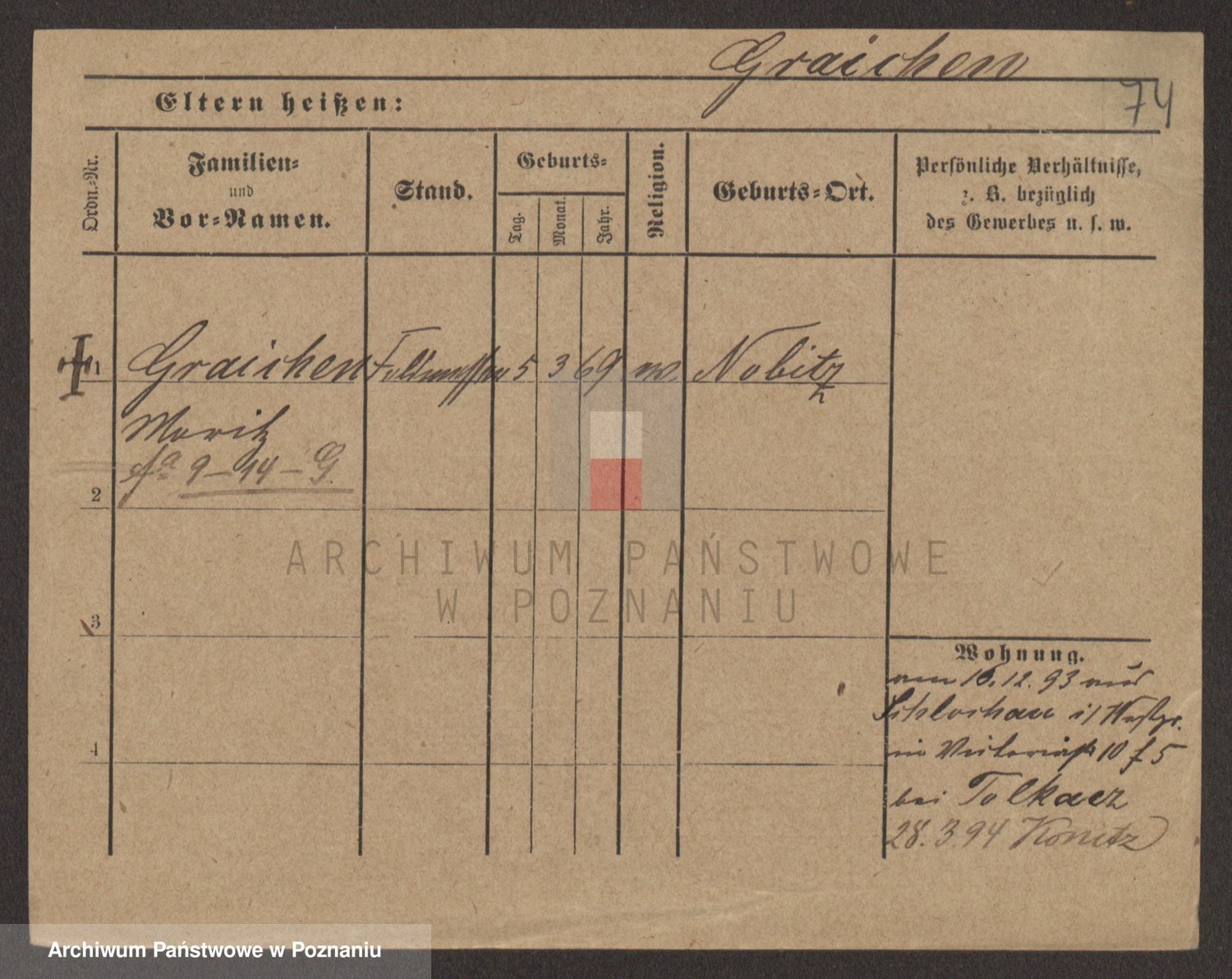 Podgląd karty osobowej dostępny jest po kliknięciu na nazwisko lub ikonkę karty. Można dokonywać powiększenia (ikony na górze) lub przechodzić między kolejnymi skanami (strzałki po bokach).
