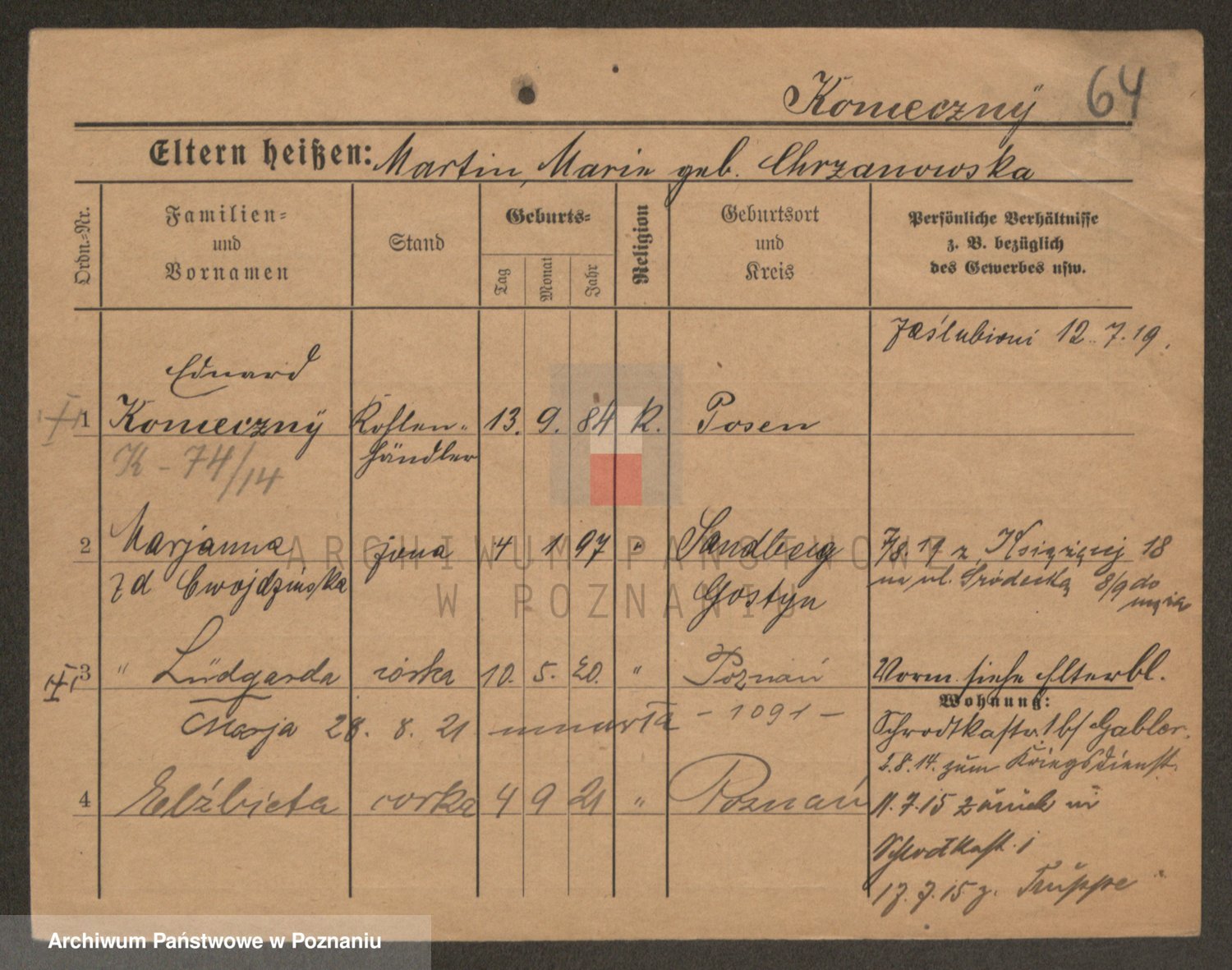 Konieczny z d. Przybecka I v. Garczyńska, Marie Isabella