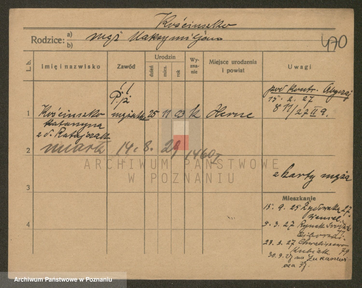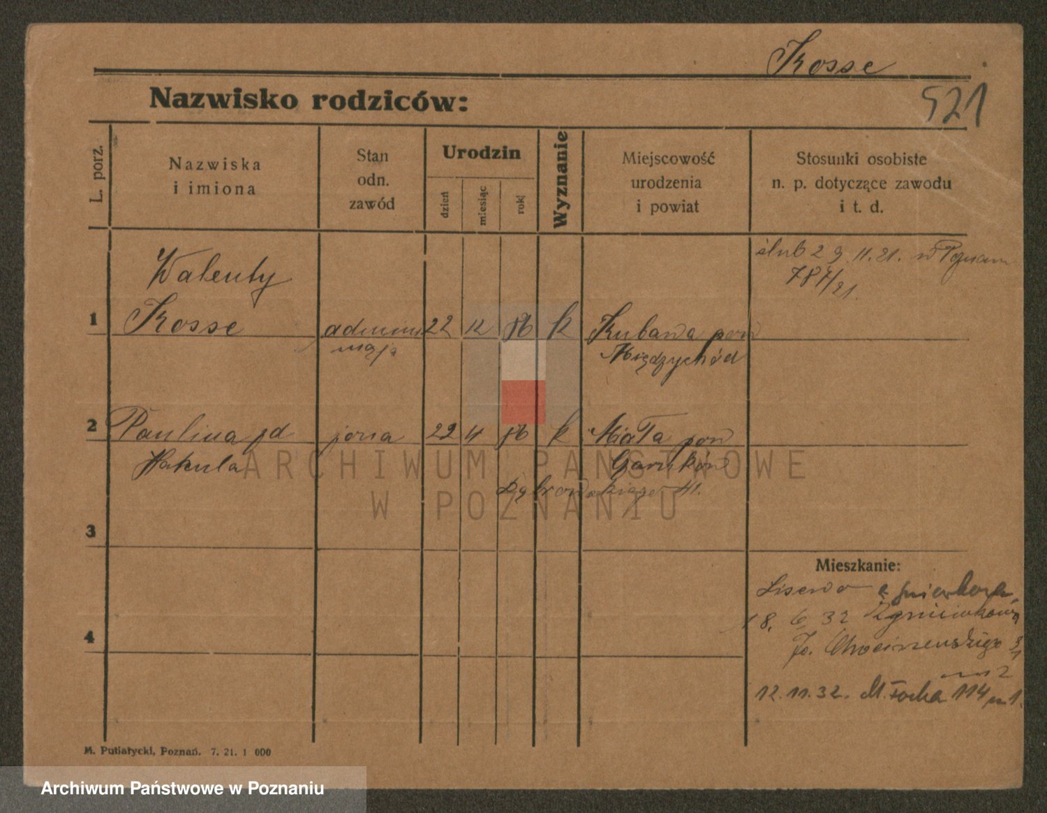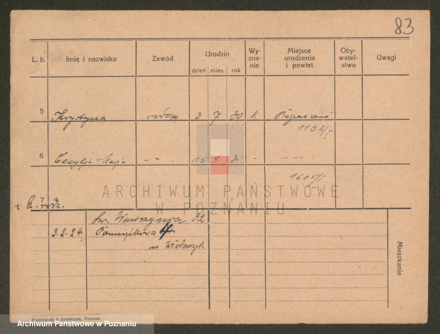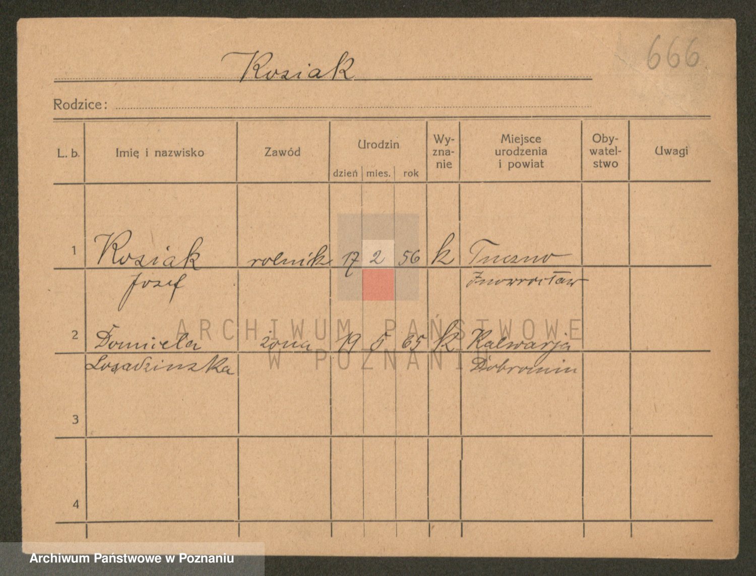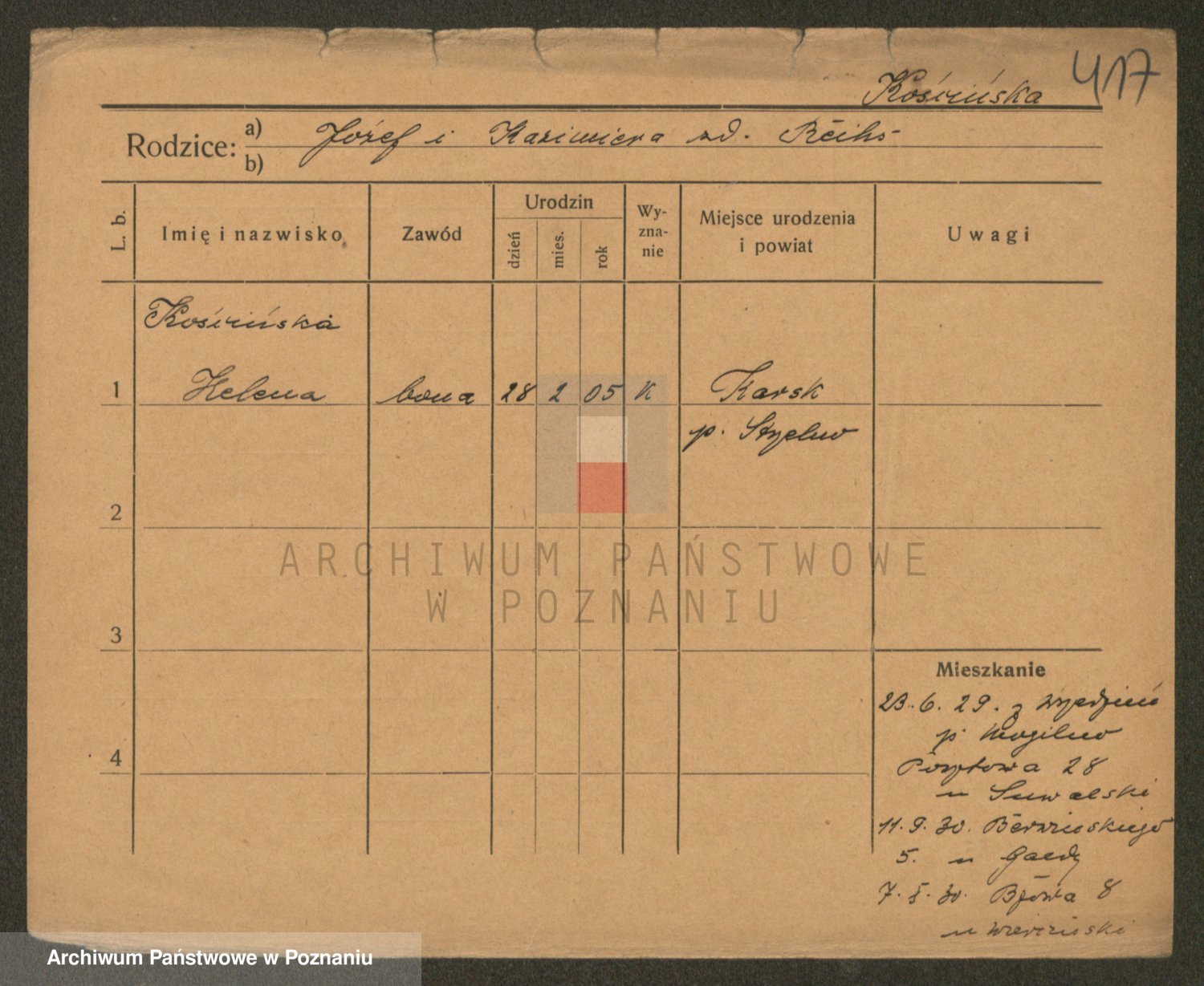 Podgląd karty osobowej dostępny jest po kliknięciu na nazwisko lub ikonkę karty. Można dokonywać powiększenia (ikony na górze) lub przechodzić między kolejnymi skanami (strzałki po bokach).