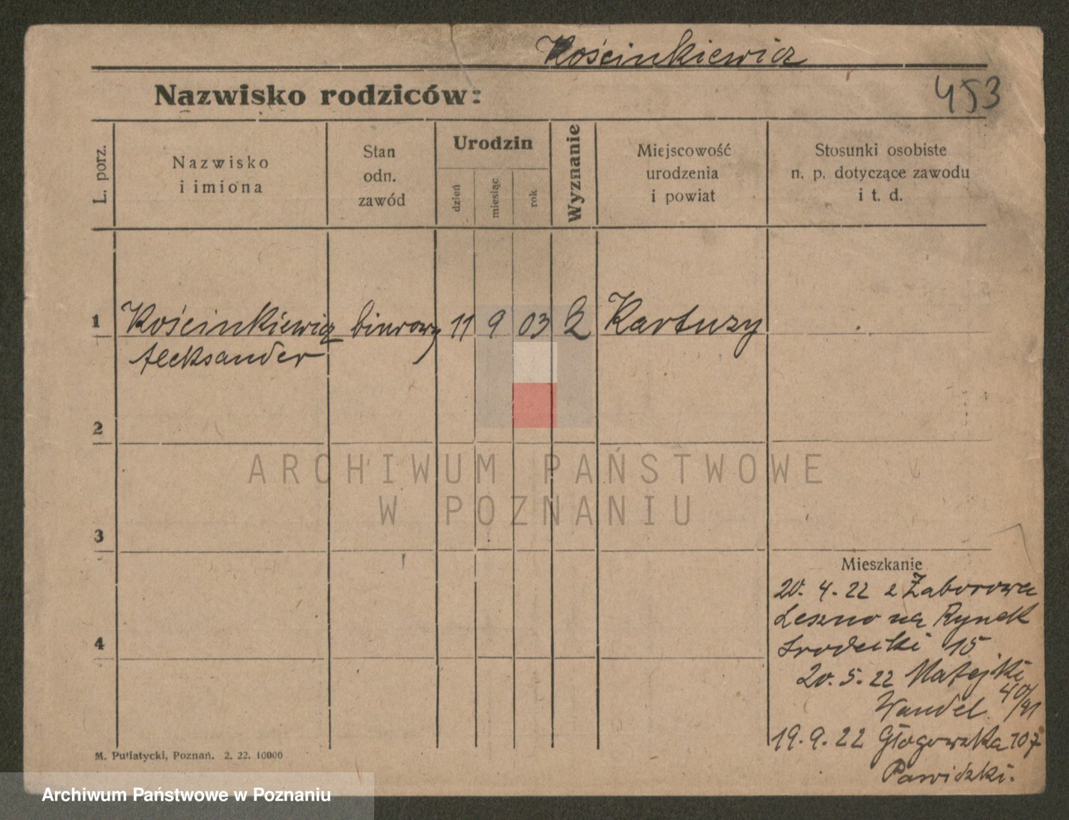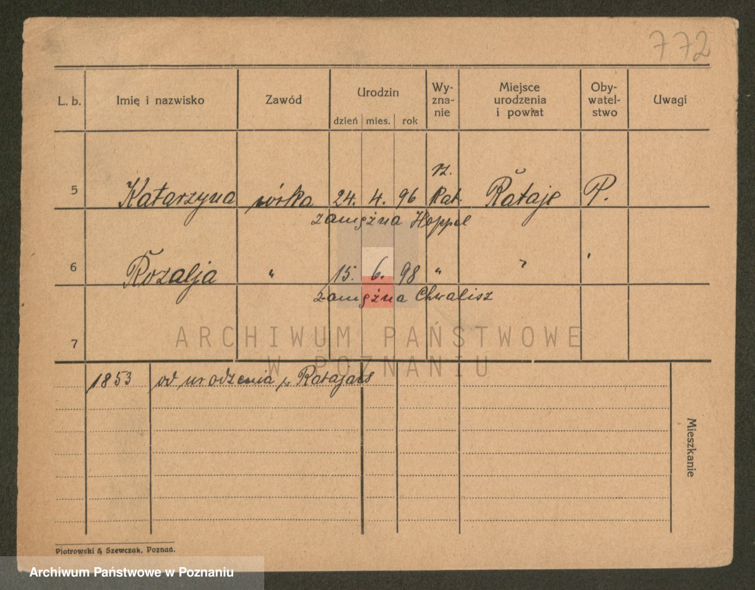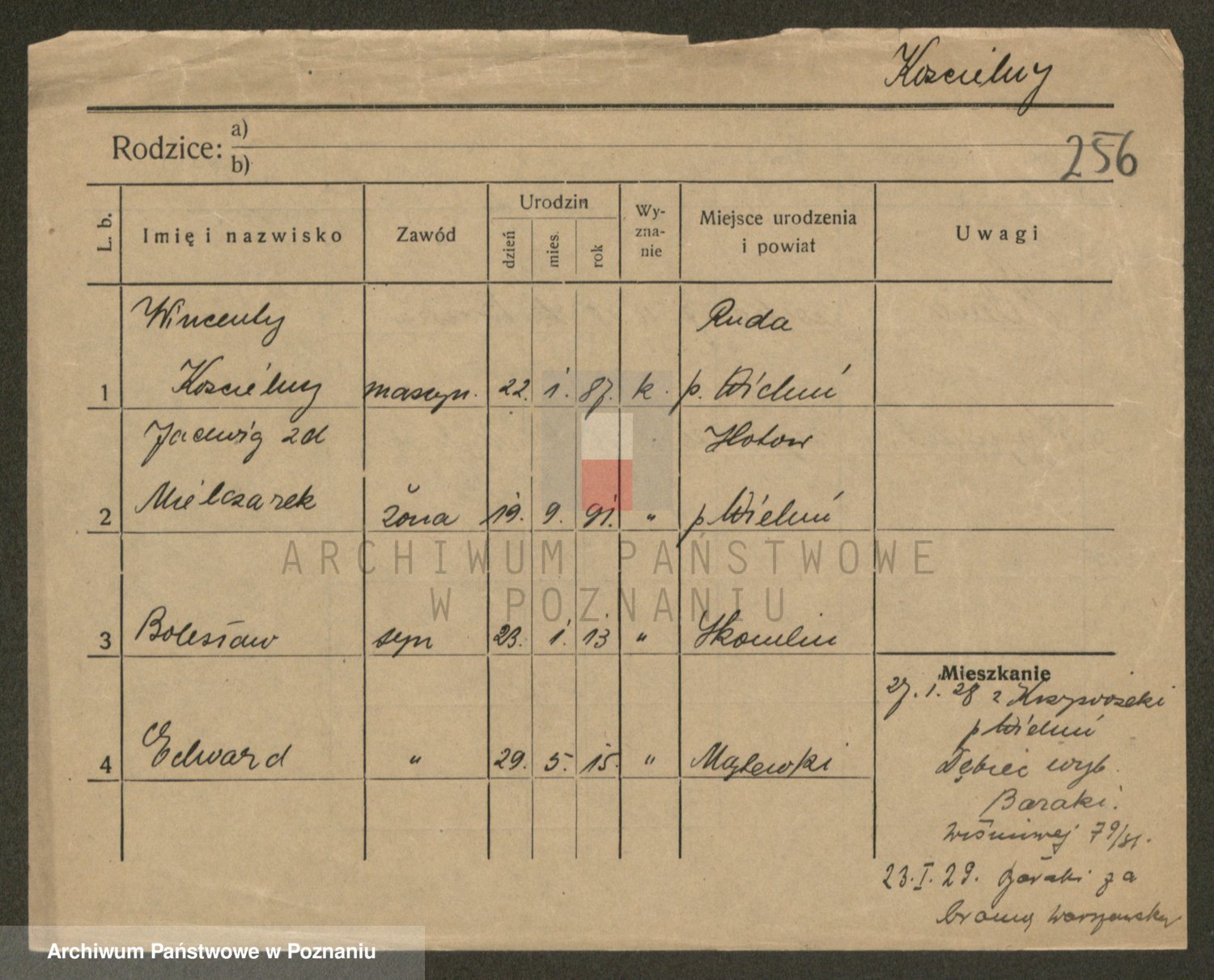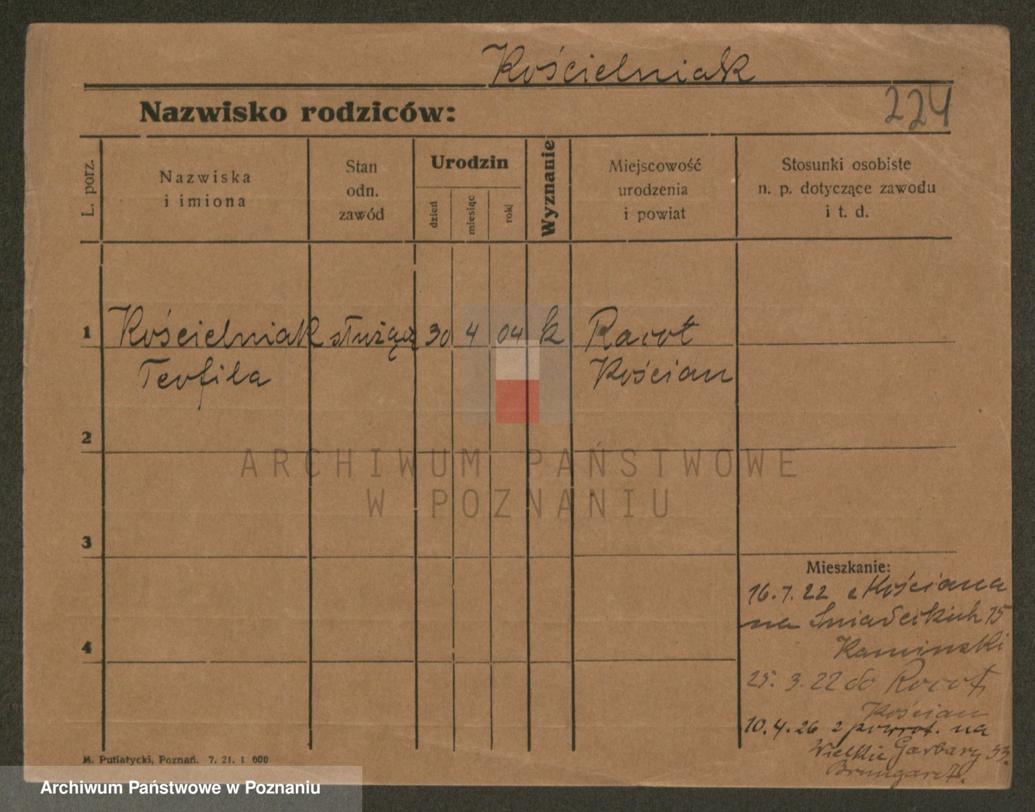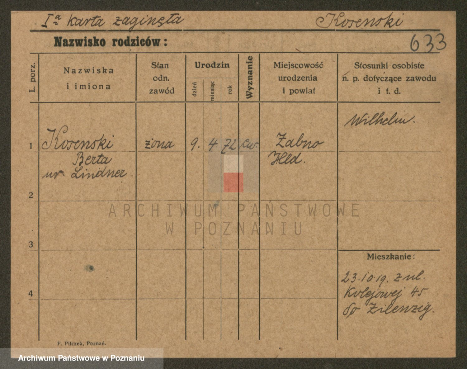 Podgląd karty osobowej dostępny jest po kliknięciu na nazwisko lub ikonkę karty. Można dokonywać powiększenia (ikony na górze) lub przechodzić między kolejnymi skanami (strzałki po bokach).