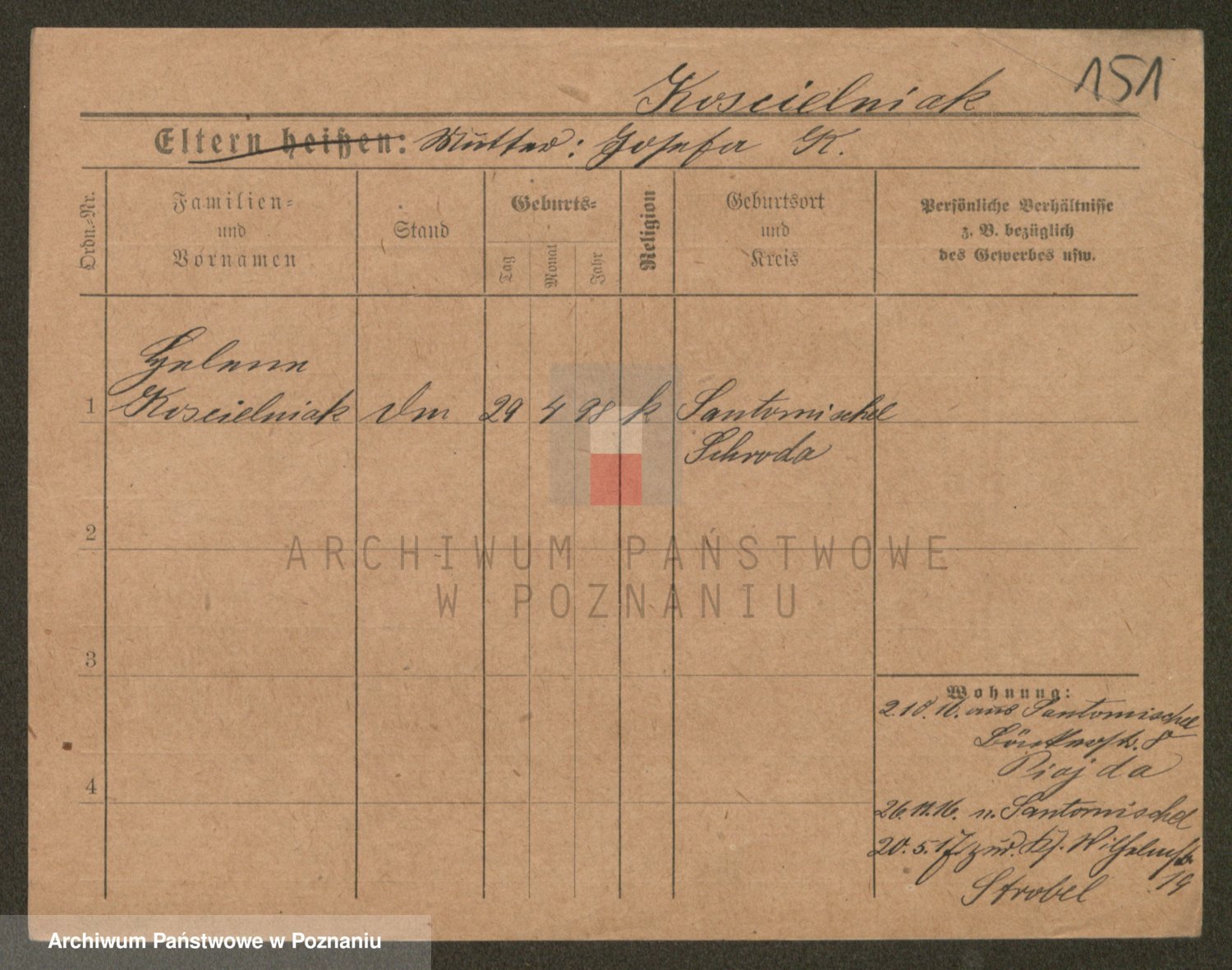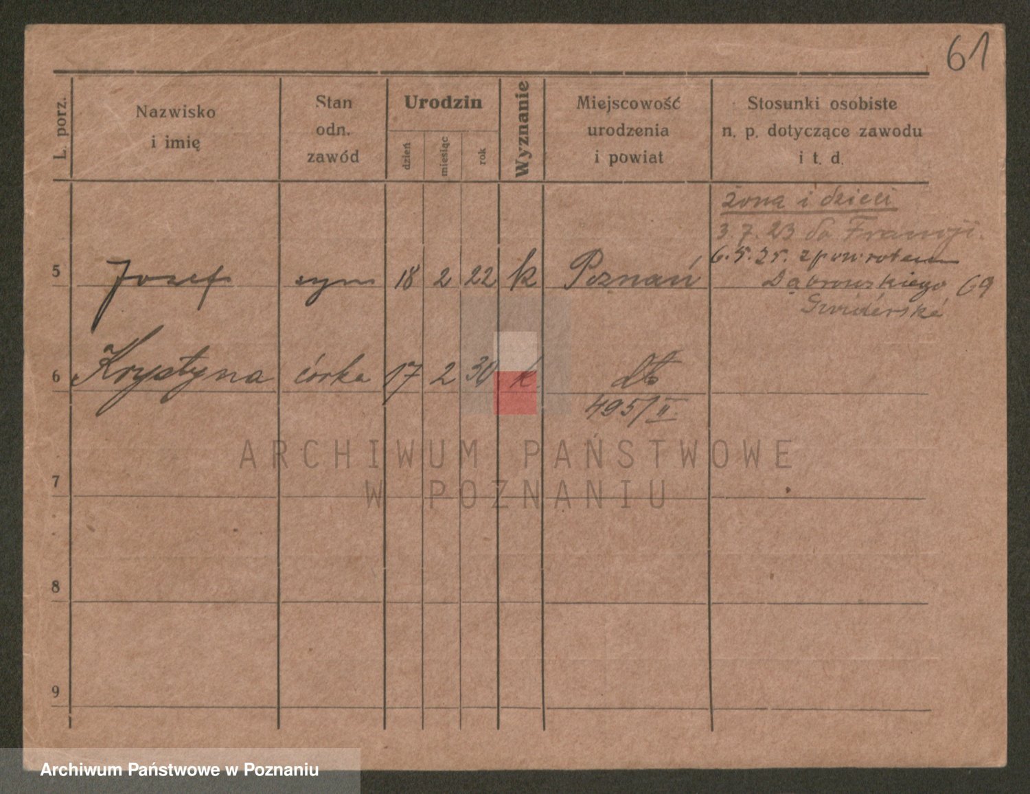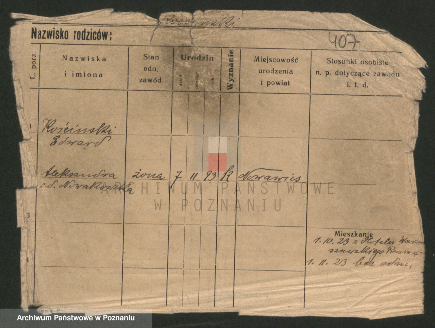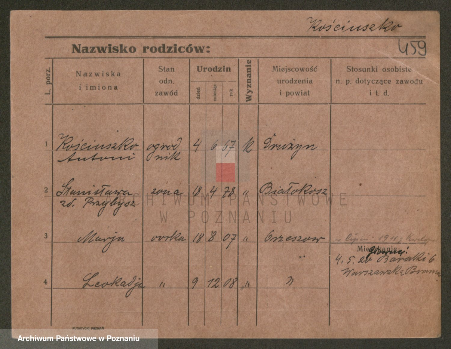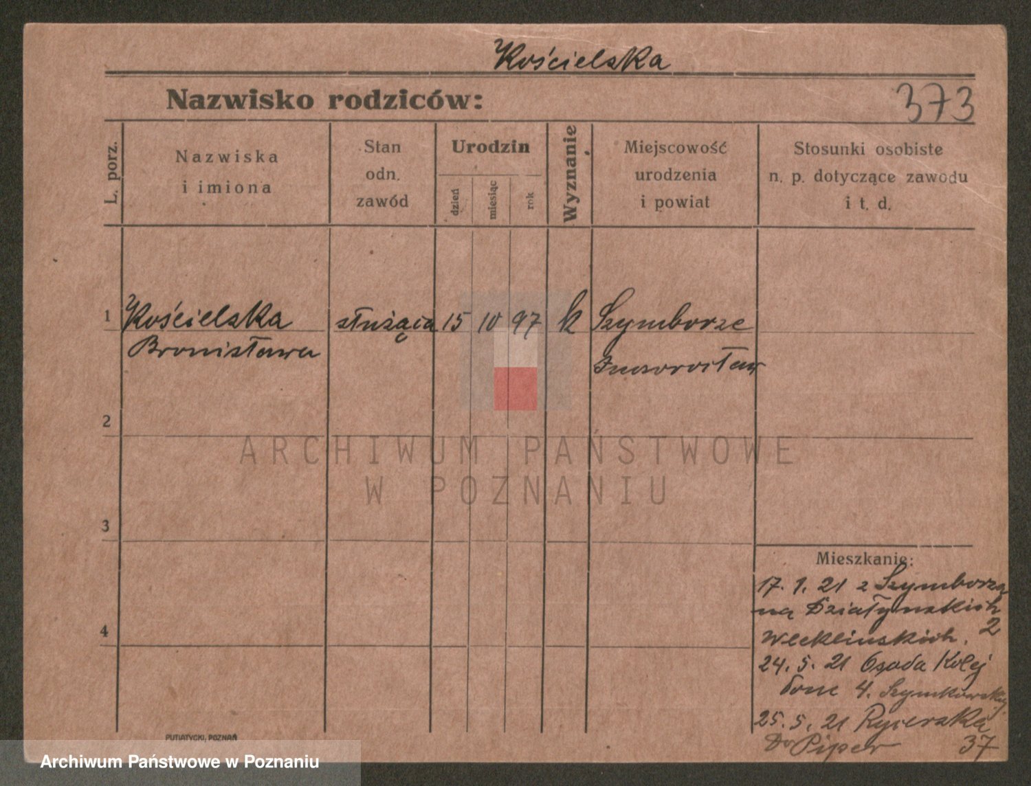 Podgląd karty osobowej dostępny jest po kliknięciu na nazwisko lub ikonkę karty. Można dokonywać powiększenia (ikony na górze) lub przechodzić między kolejnymi skanami (strzałki po bokach).