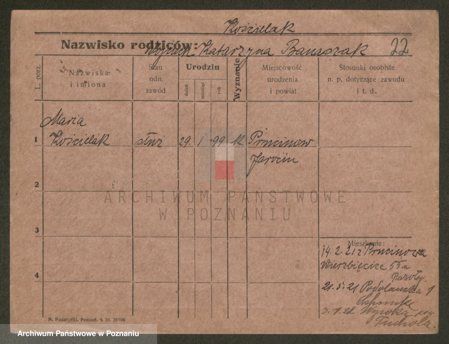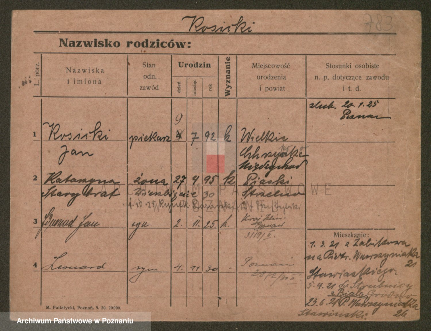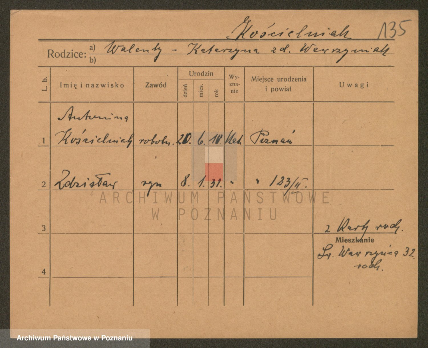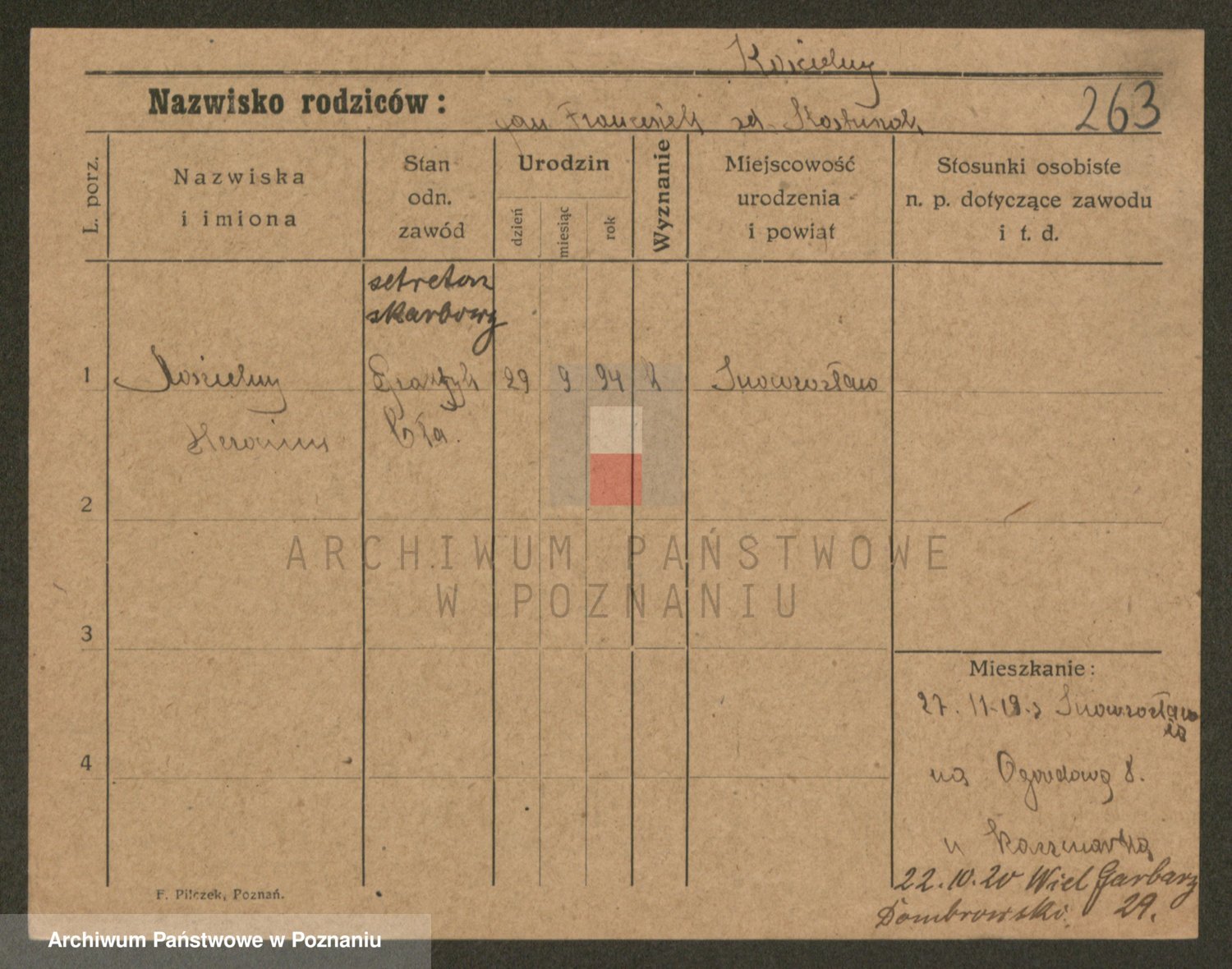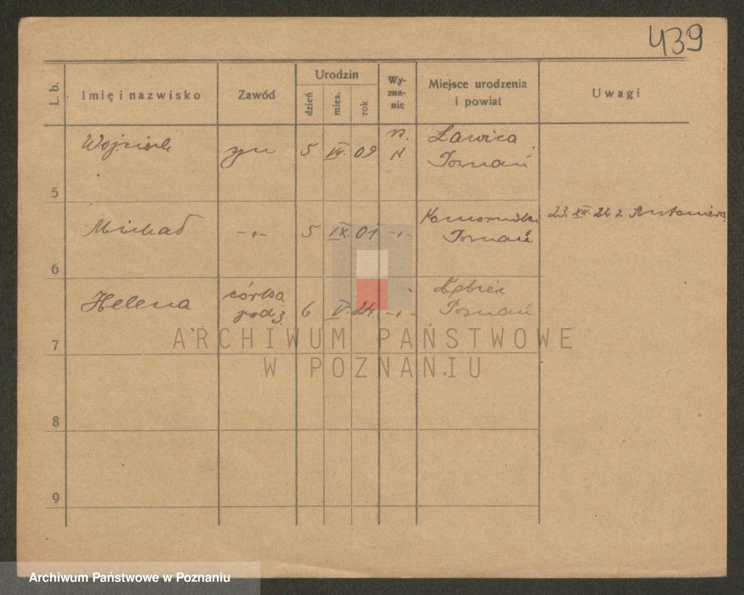 Podgląd karty osobowej dostępny jest po kliknięciu na nazwisko lub ikonkę karty. Można dokonywać powiększenia (ikony na górze) lub przechodzić między kolejnymi skanami (strzałki po bokach).
