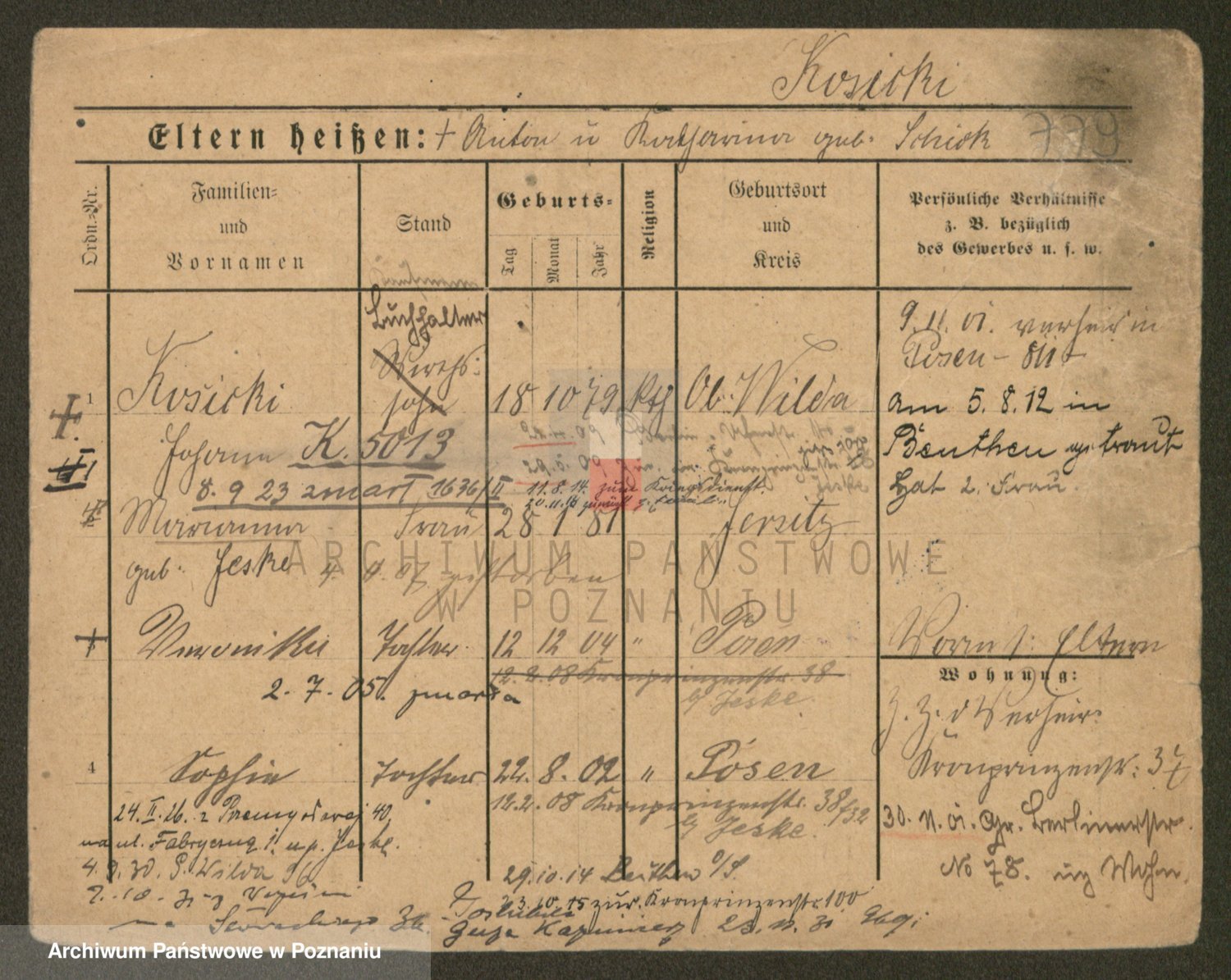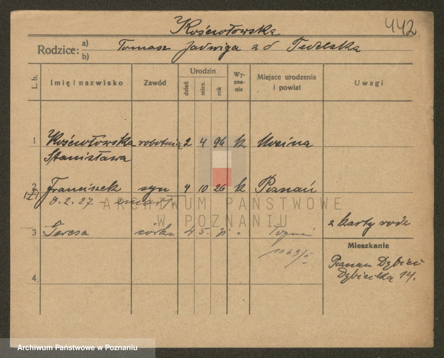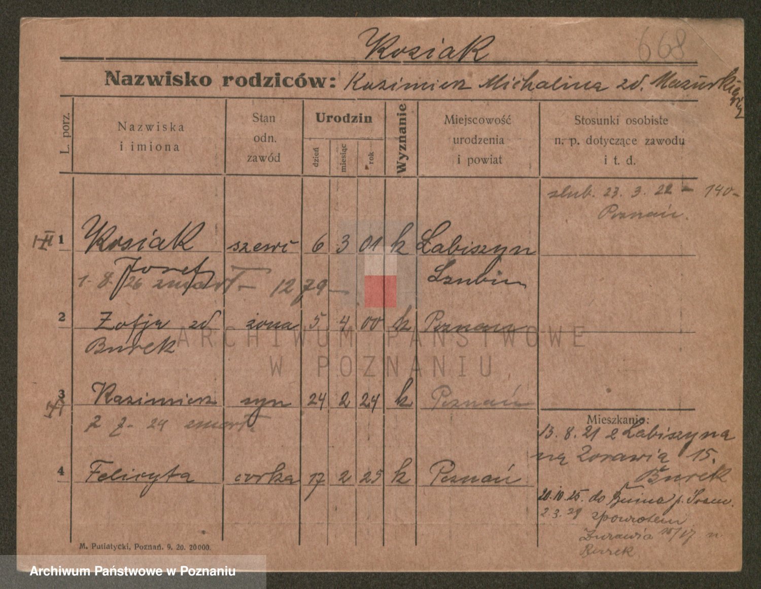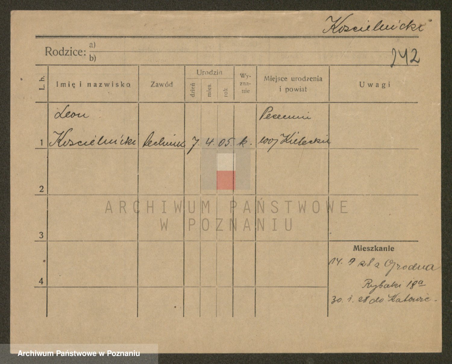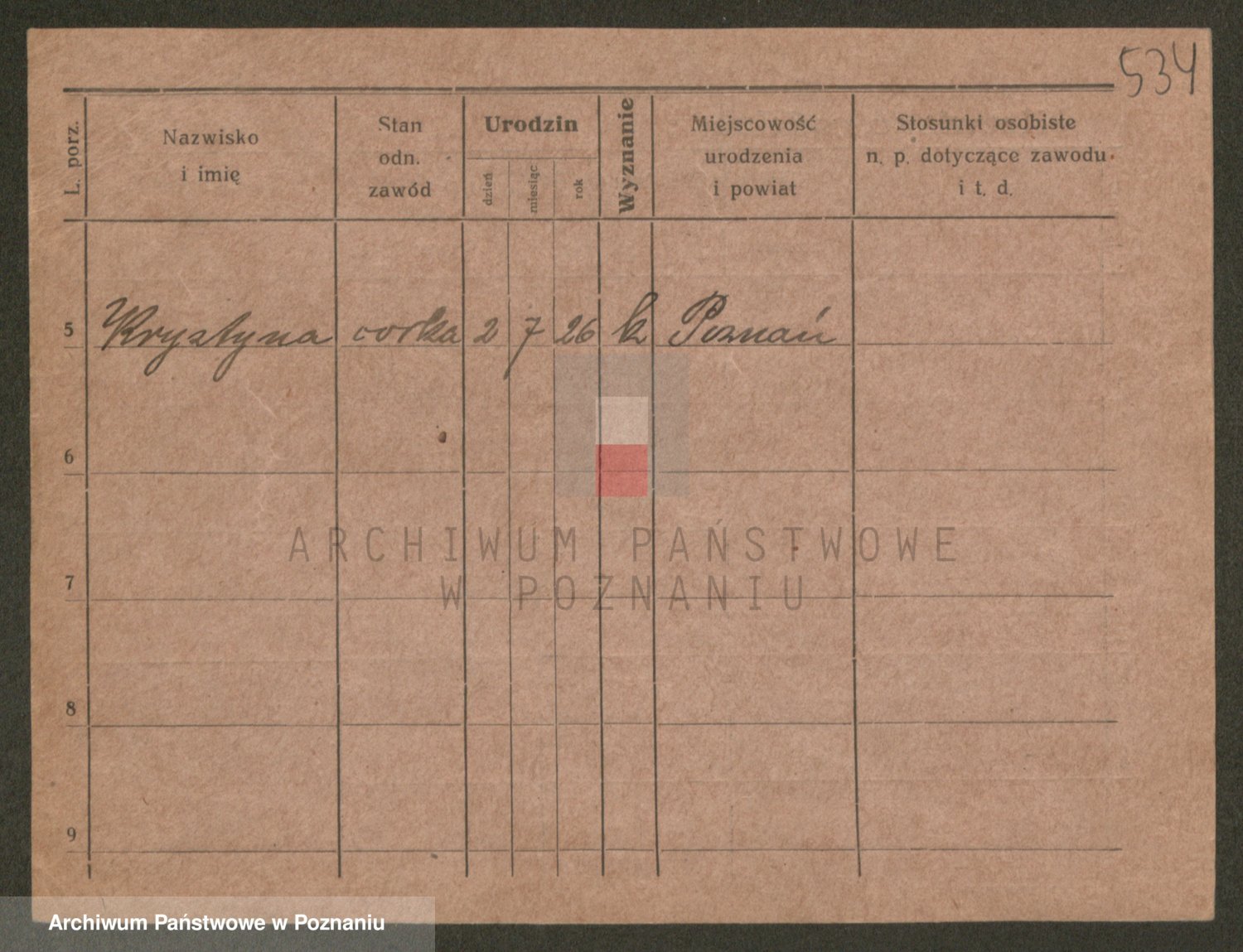 Podgląd karty osobowej dostępny jest po kliknięciu na nazwisko lub ikonkę karty. Można dokonywać powiększenia (ikony na górze) lub przechodzić między kolejnymi skanami (strzałki po bokach).