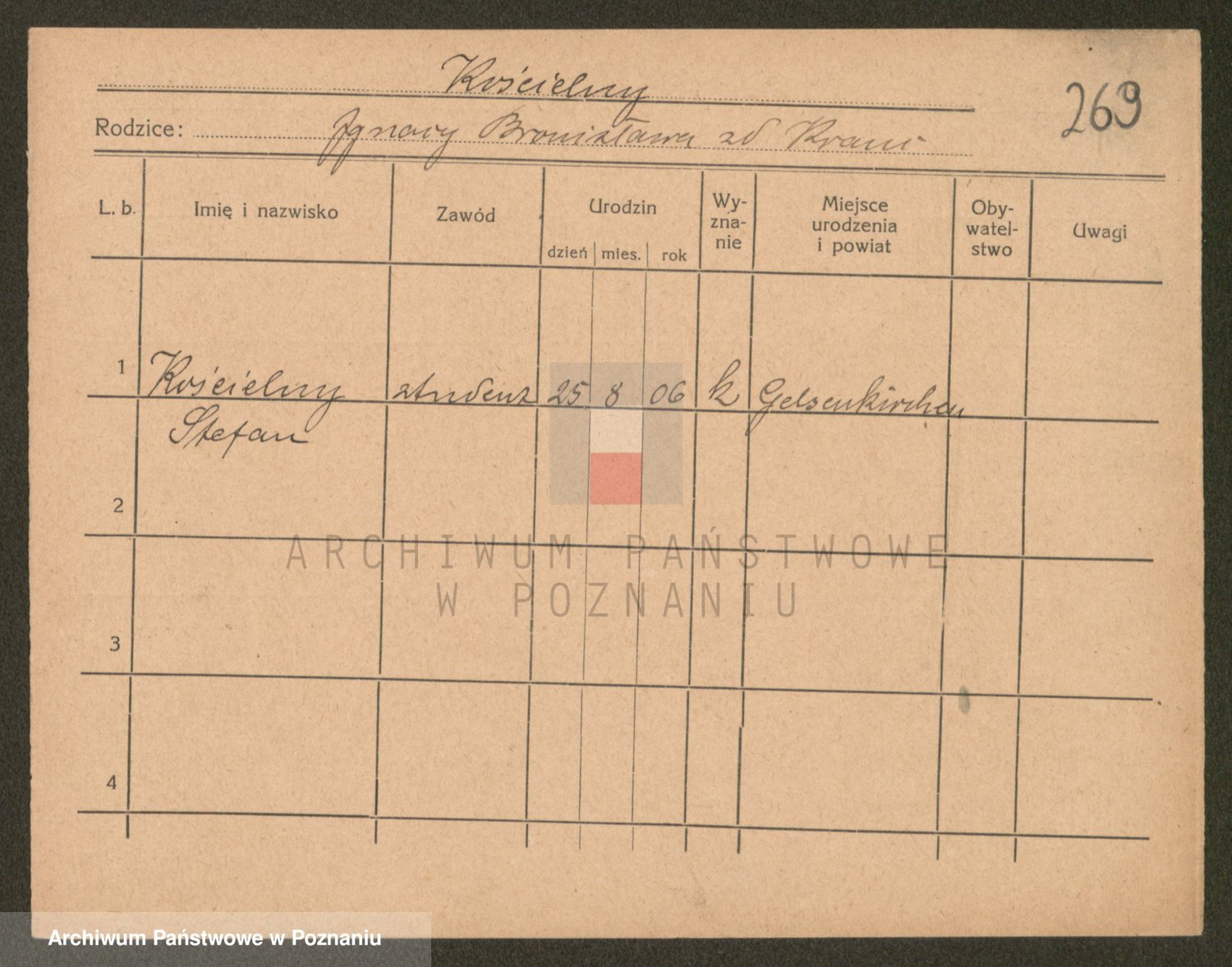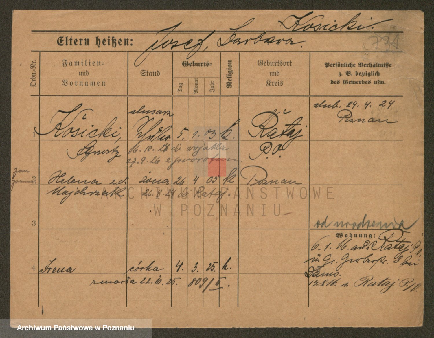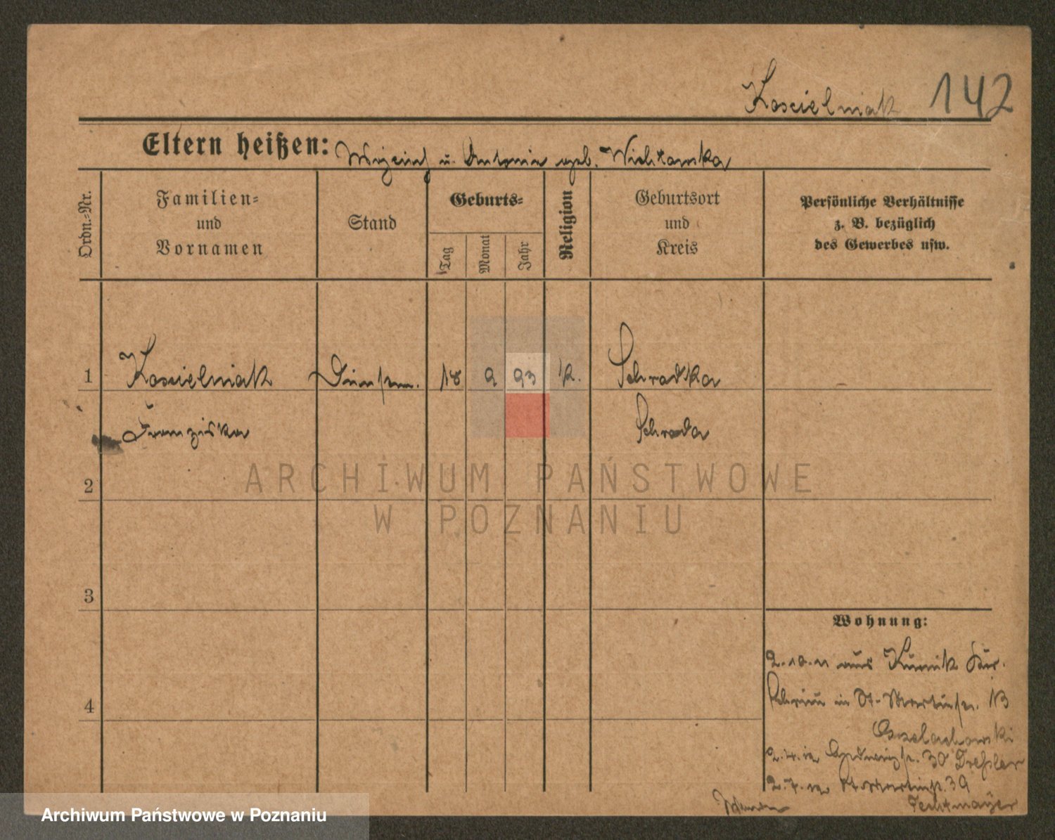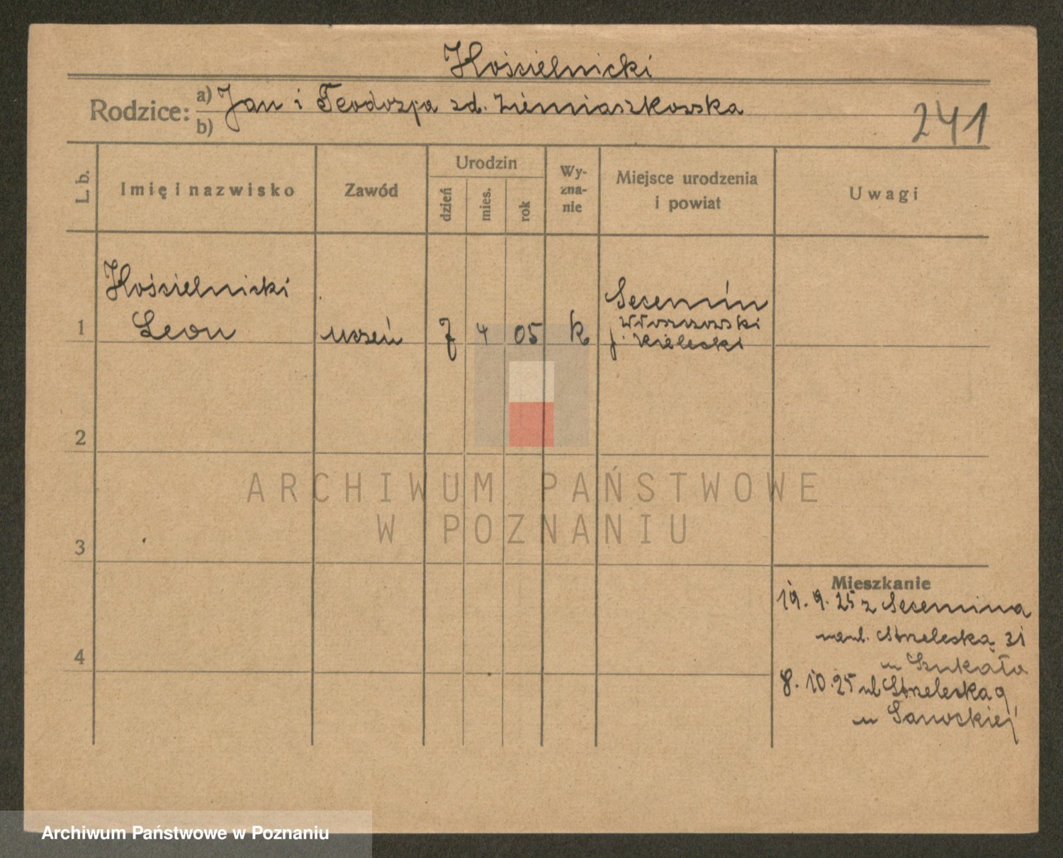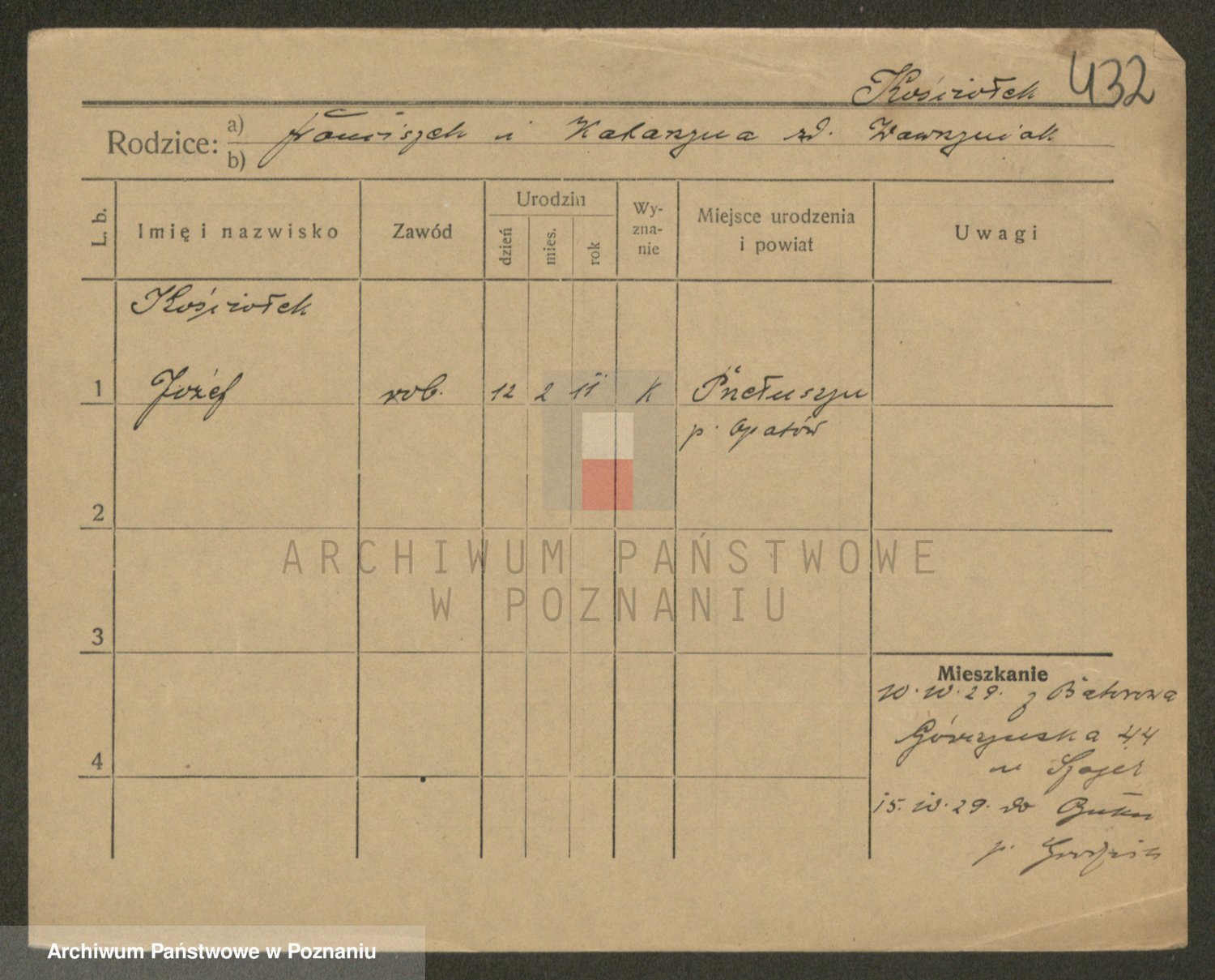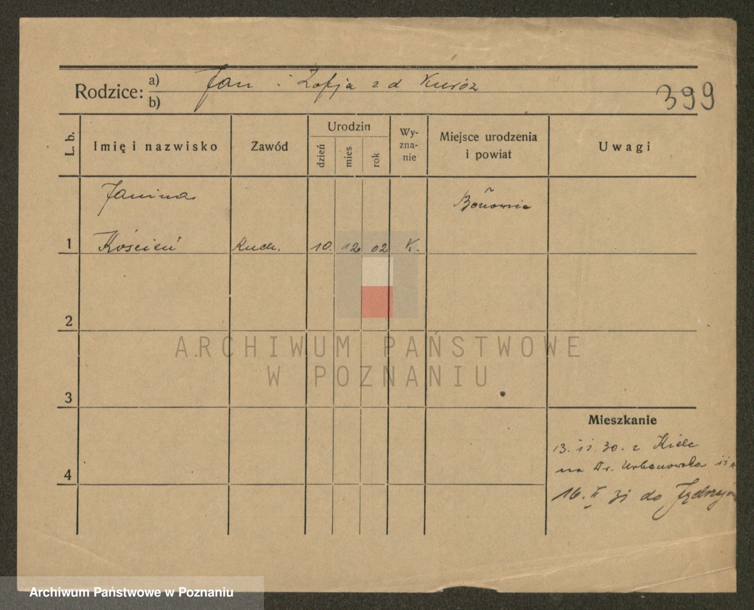 Podgląd karty osobowej dostępny jest po kliknięciu na nazwisko lub ikonkę karty. Można dokonywać powiększenia (ikony na górze) lub przechodzić między kolejnymi skanami (strzałki po bokach).