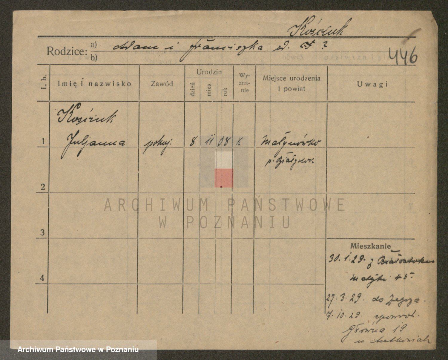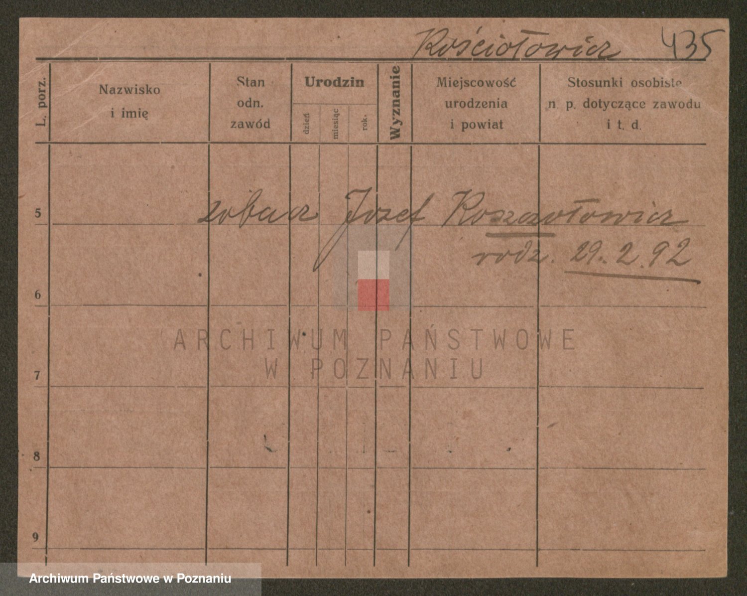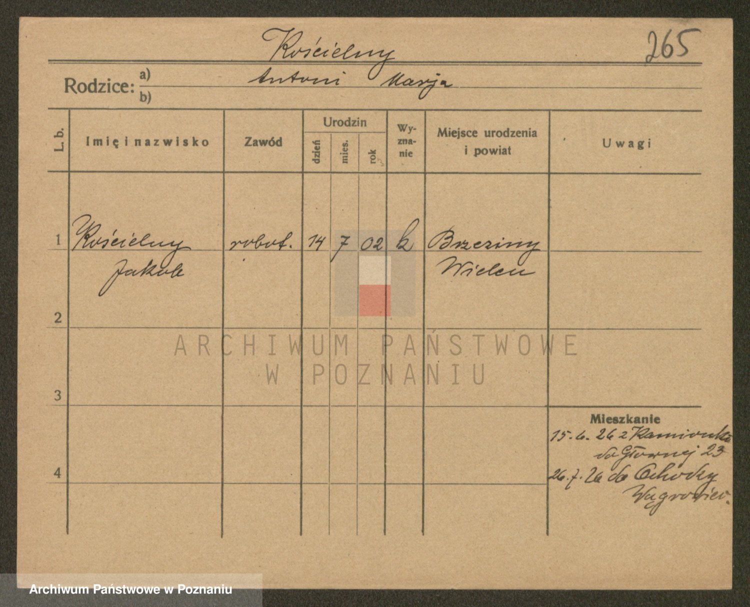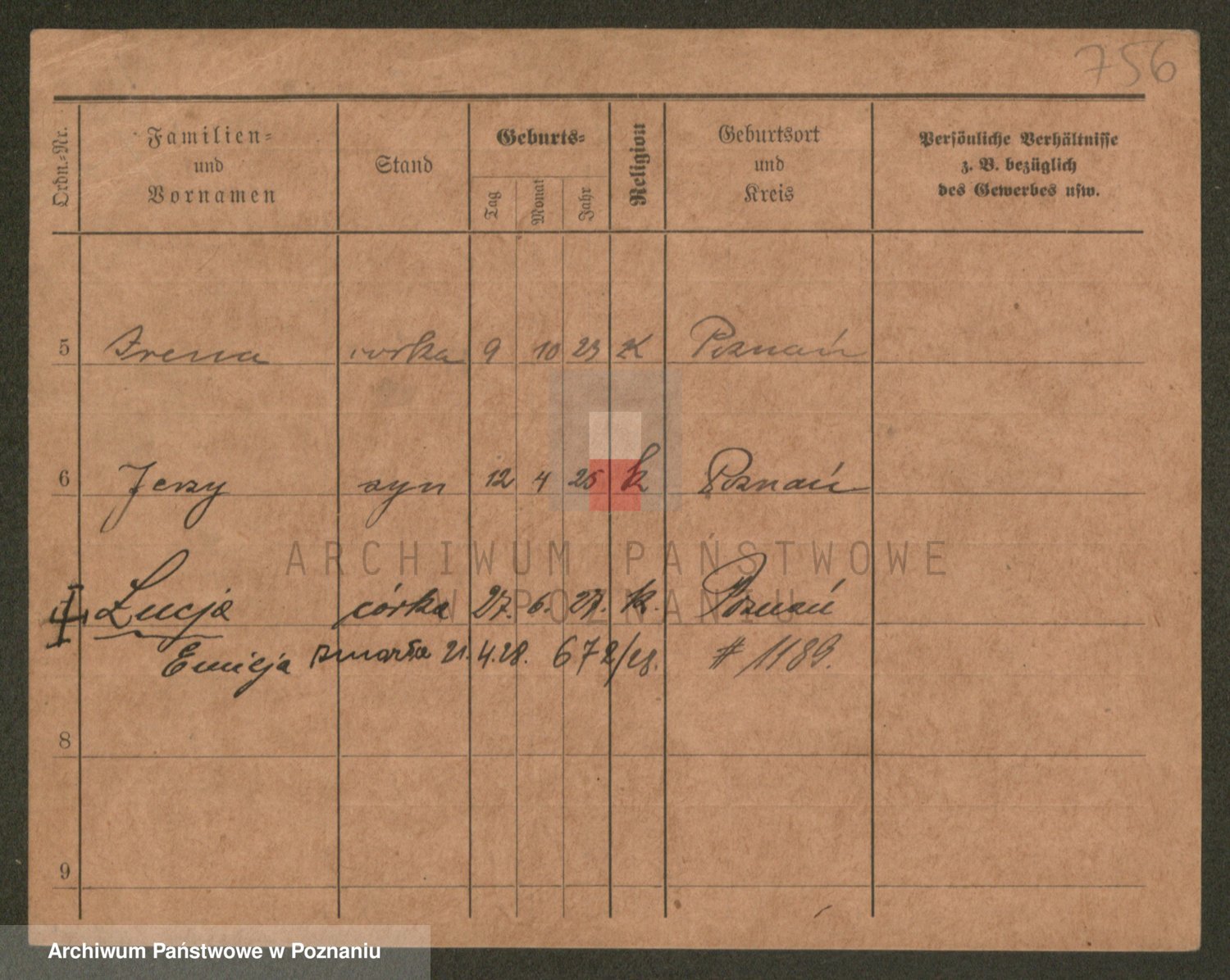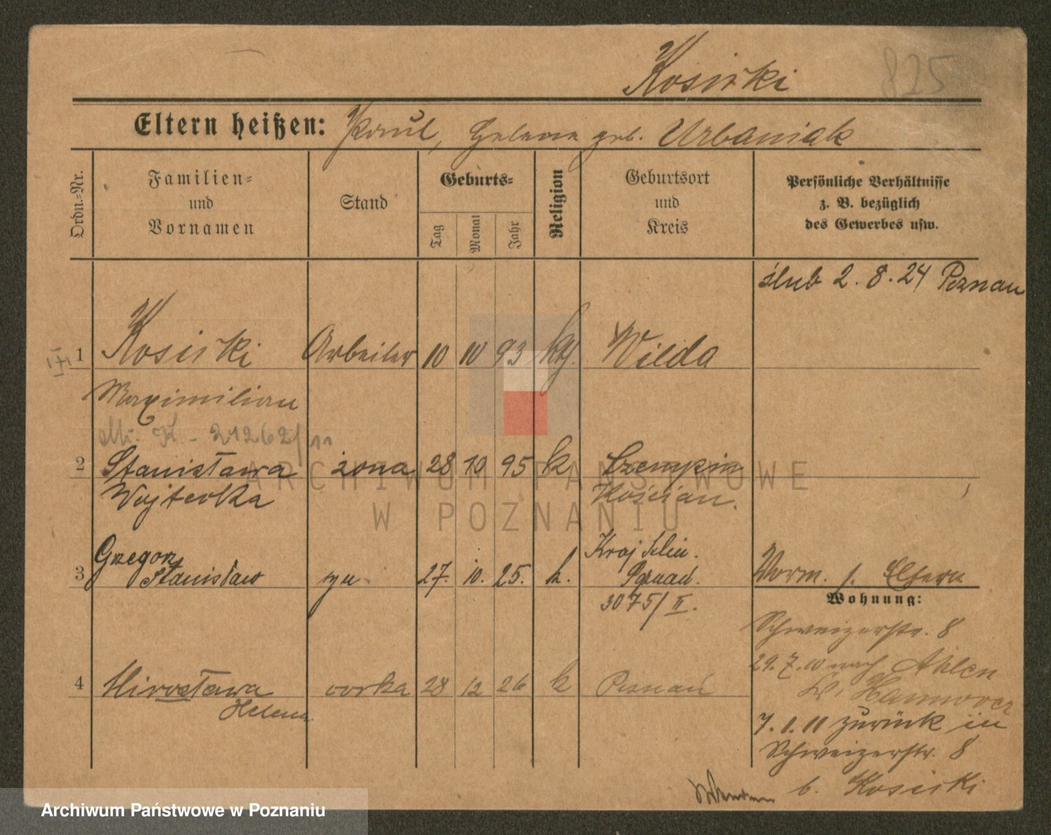 Podgląd karty osobowej dostępny jest po kliknięciu na nazwisko lub ikonkę karty. Można dokonywać powiększenia (ikony na górze) lub przechodzić między kolejnymi skanami (strzałki po bokach).