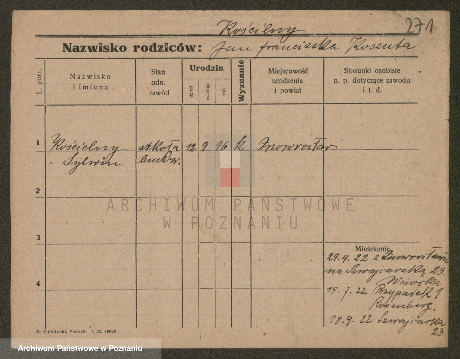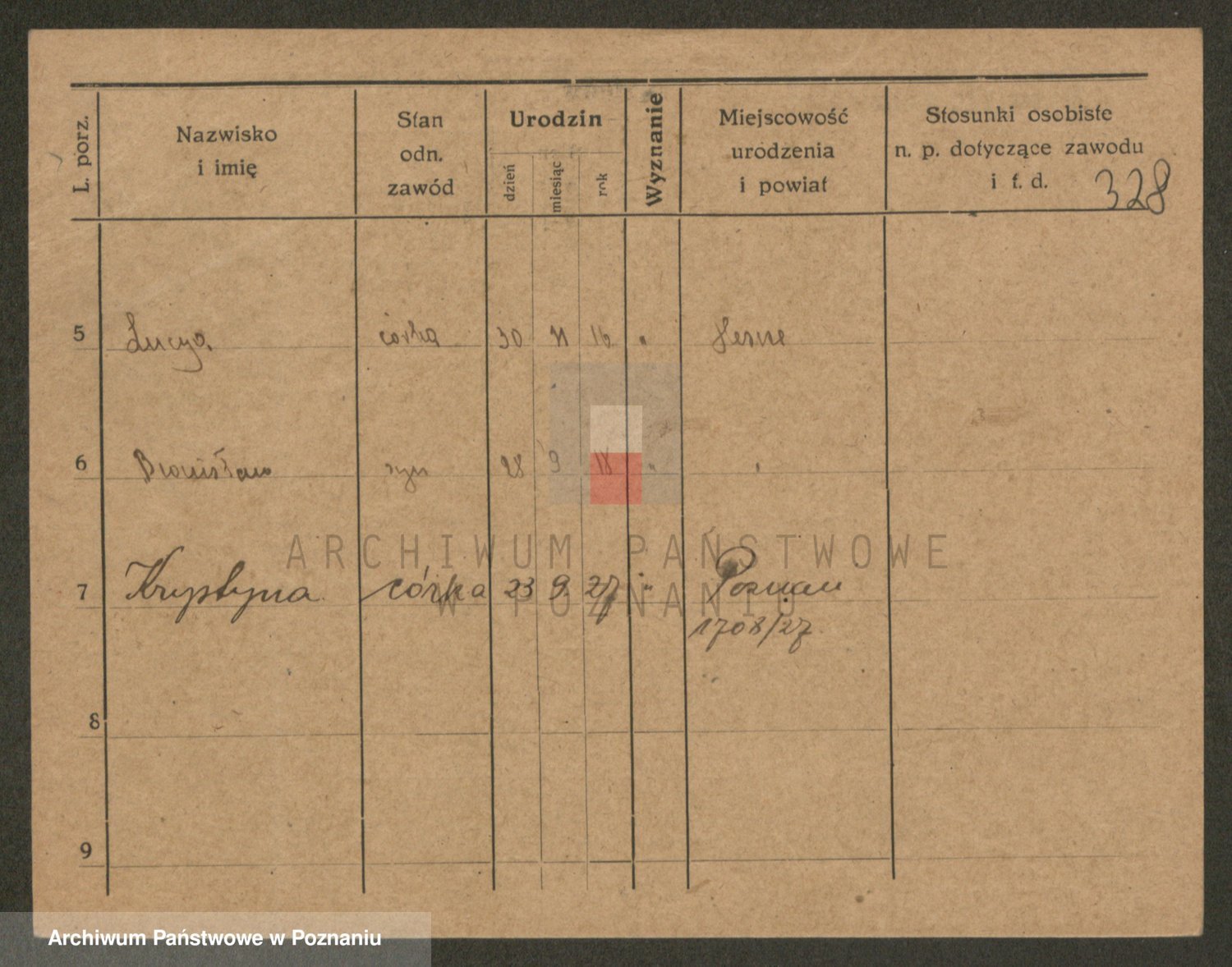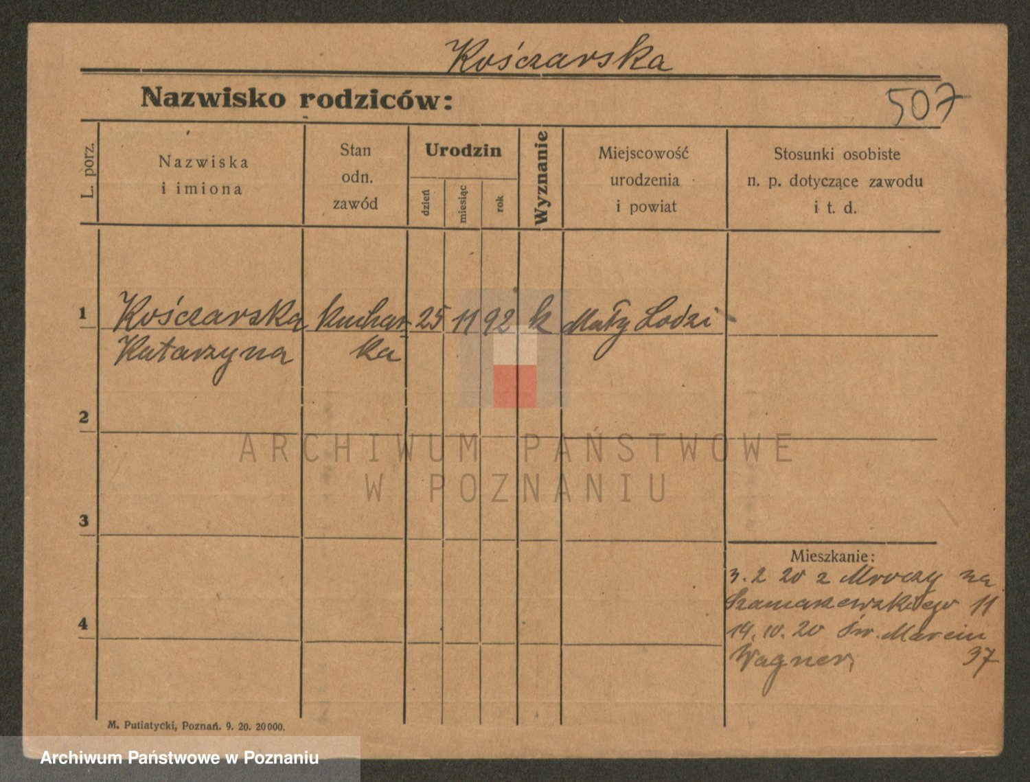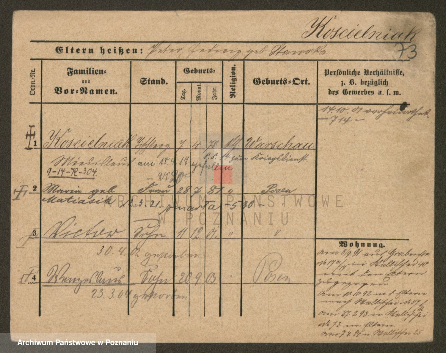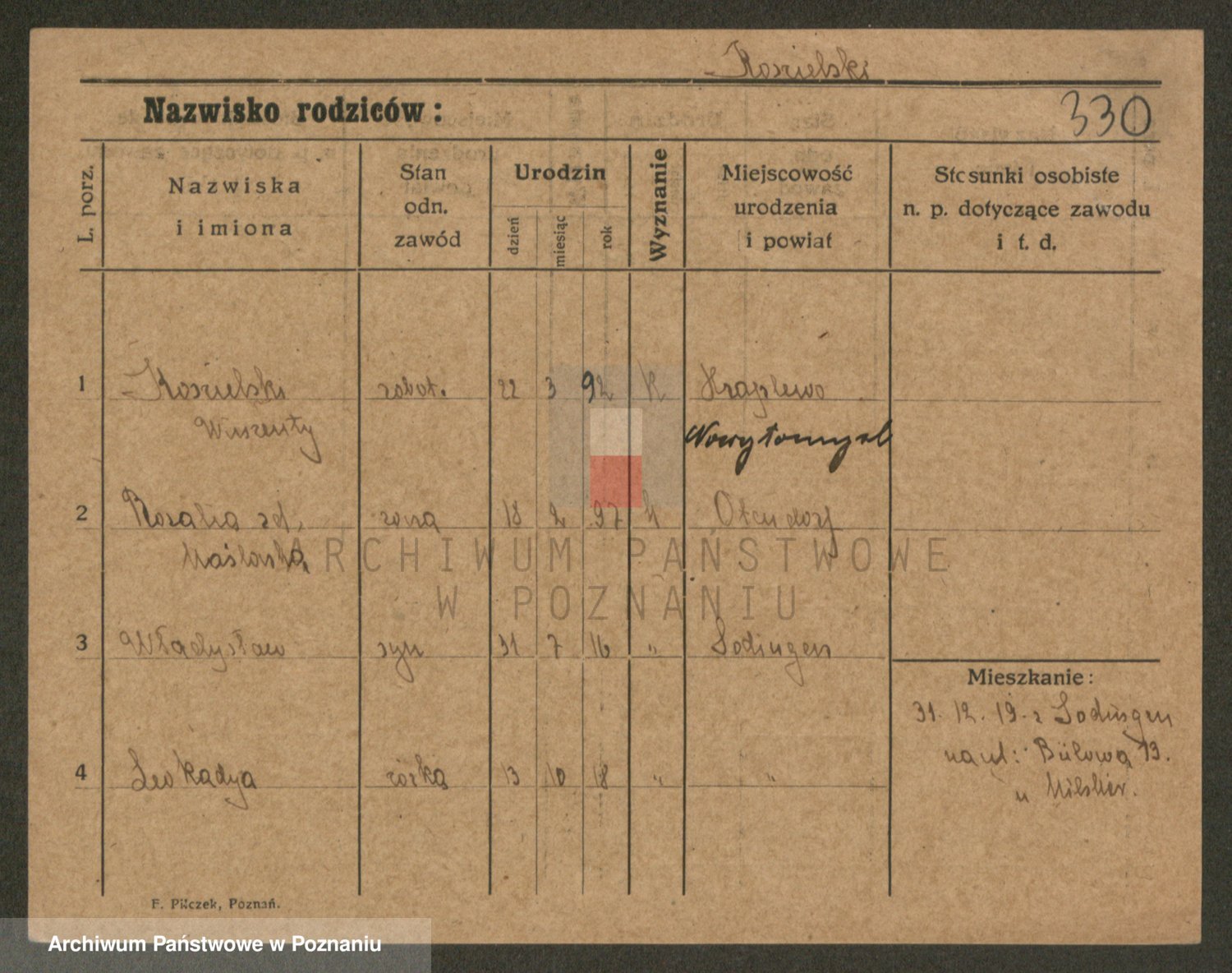 Podgląd karty osobowej dostępny jest po kliknięciu na nazwisko lub ikonkę karty. Można dokonywać powiększenia (ikony na górze) lub przechodzić między kolejnymi skanami (strzałki po bokach).
