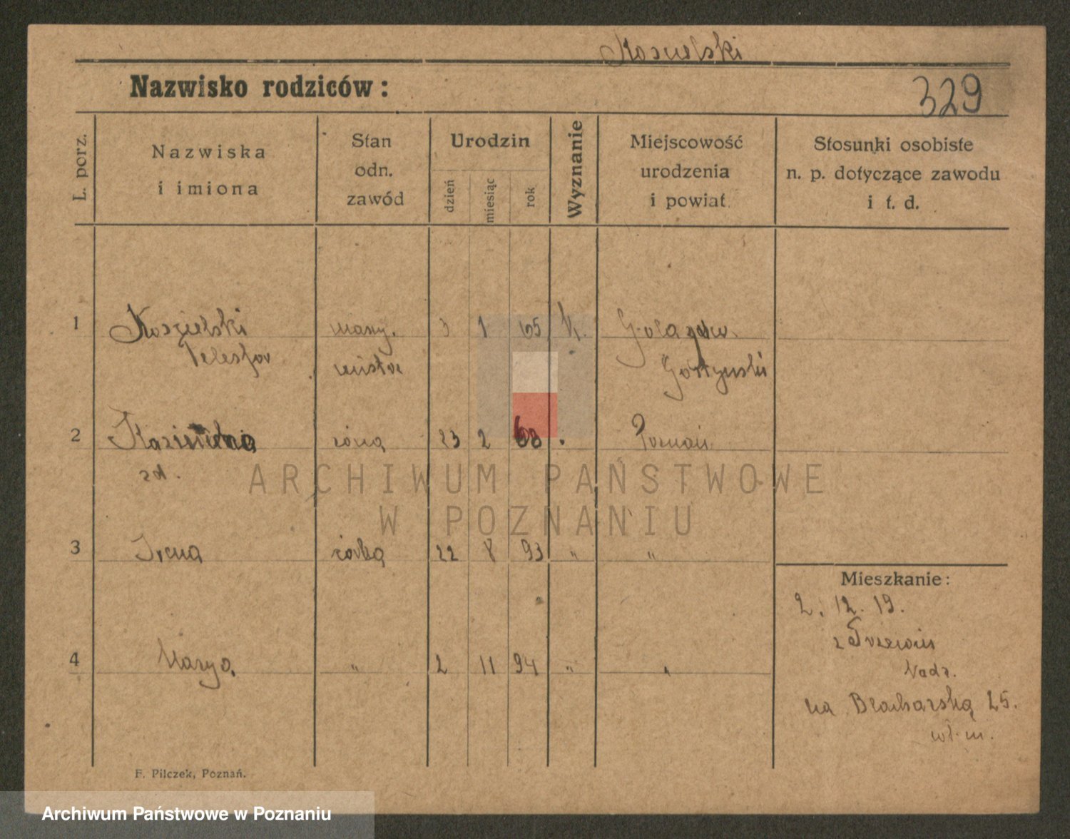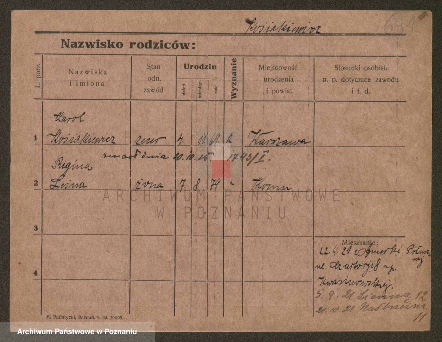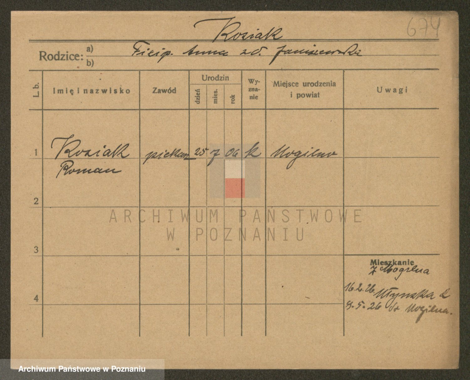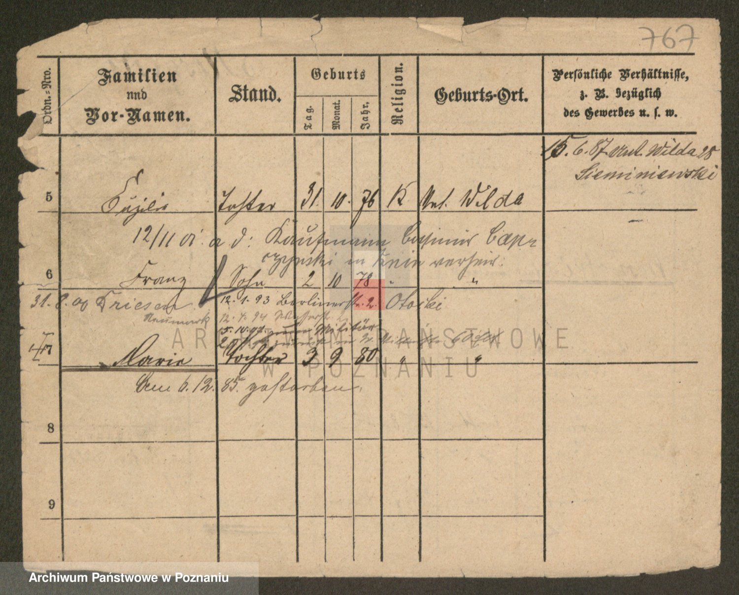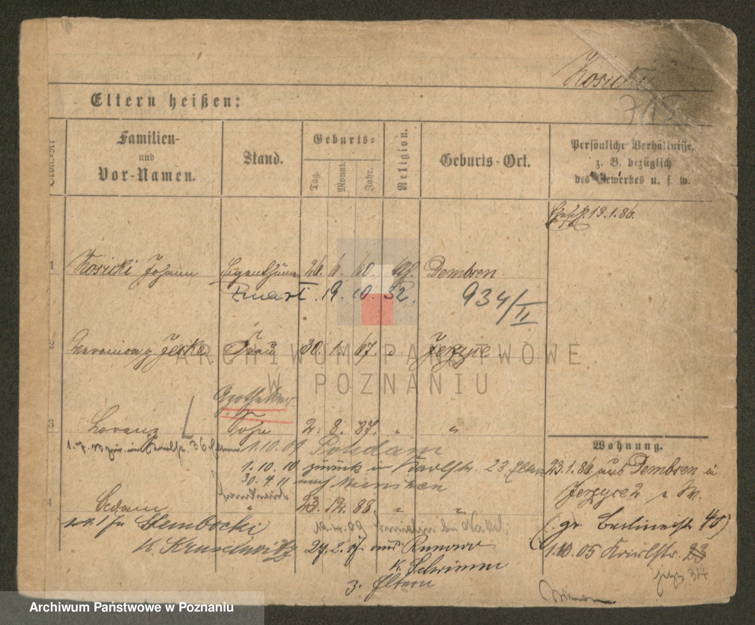 Podgląd karty osobowej dostępny jest po kliknięciu na nazwisko lub ikonkę karty. Można dokonywać powiększenia (ikony na górze) lub przechodzić między kolejnymi skanami (strzałki po bokach).