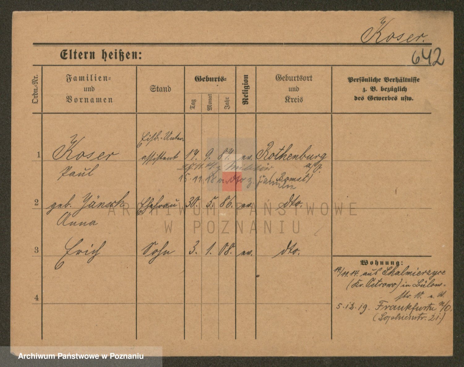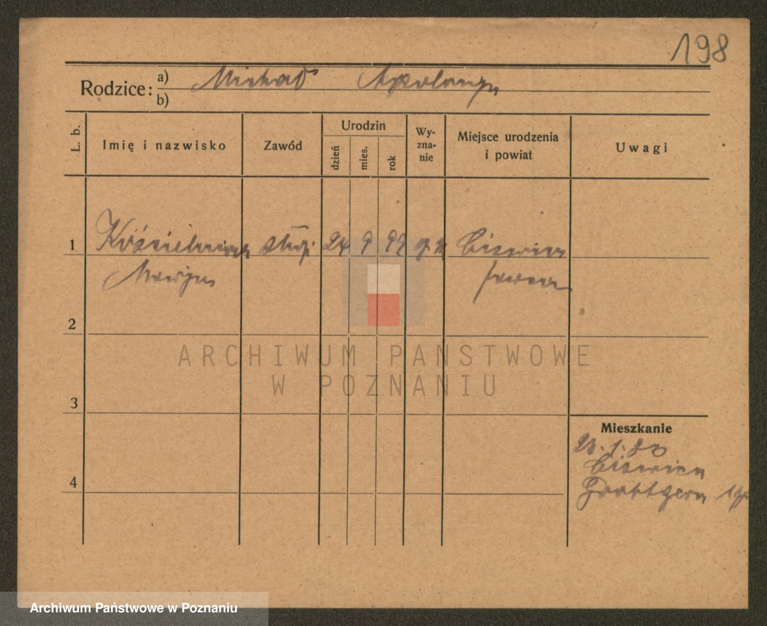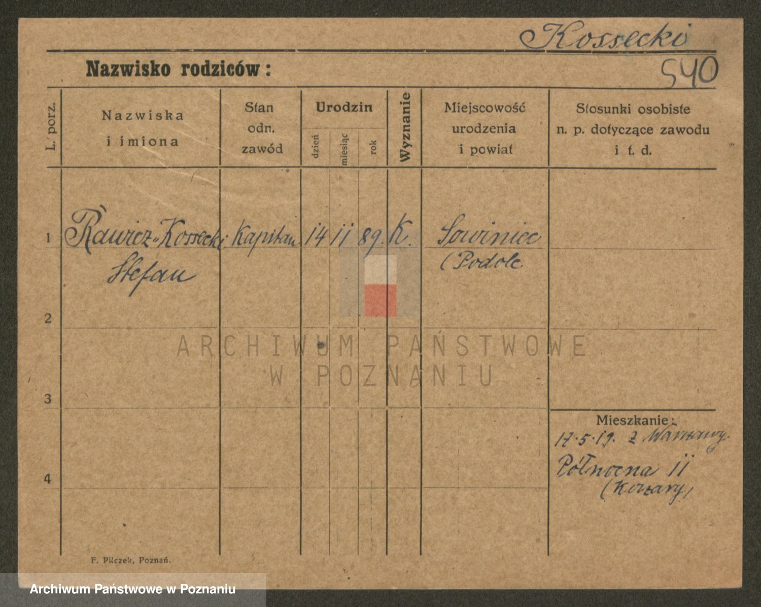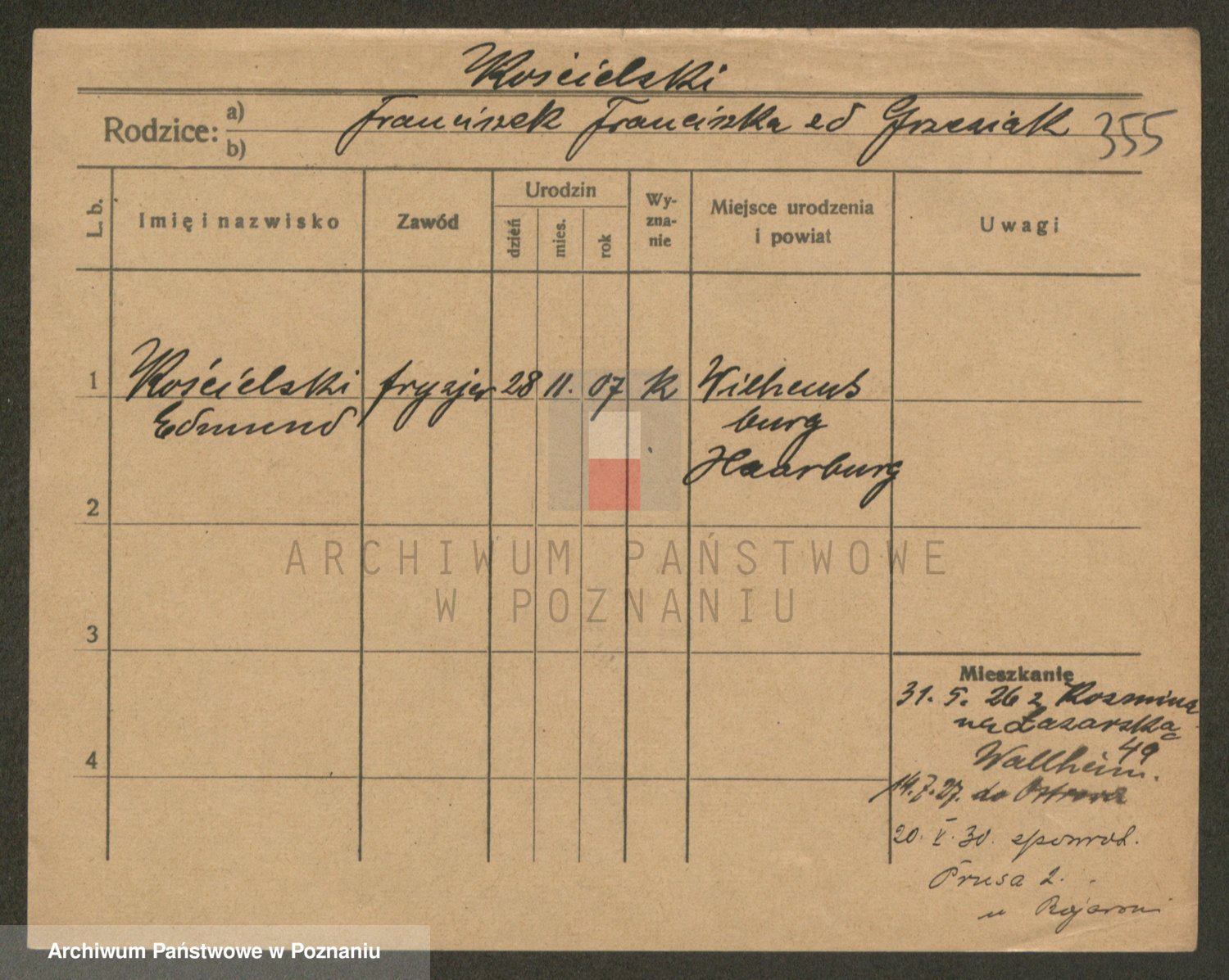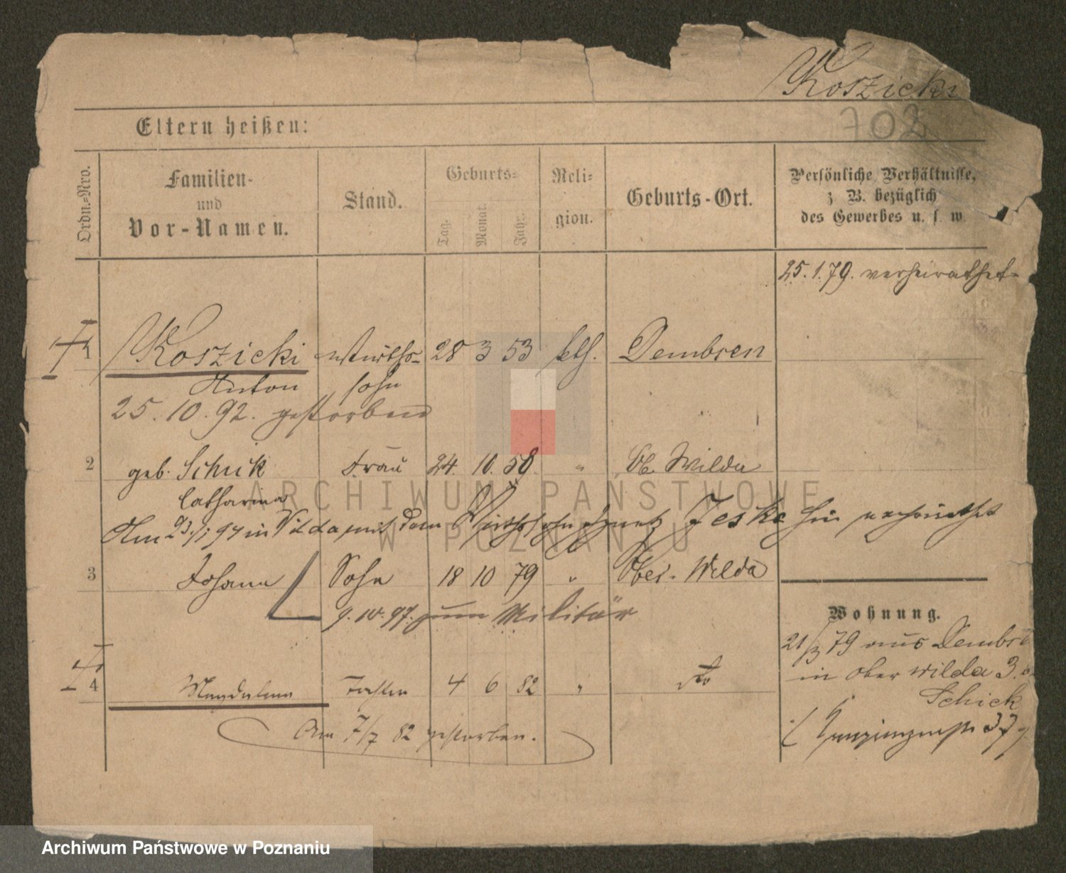 Podgląd karty osobowej dostępny jest po kliknięciu na nazwisko lub ikonkę karty. Można dokonywać powiększenia (ikony na górze) lub przechodzić między kolejnymi skanami (strzałki po bokach).