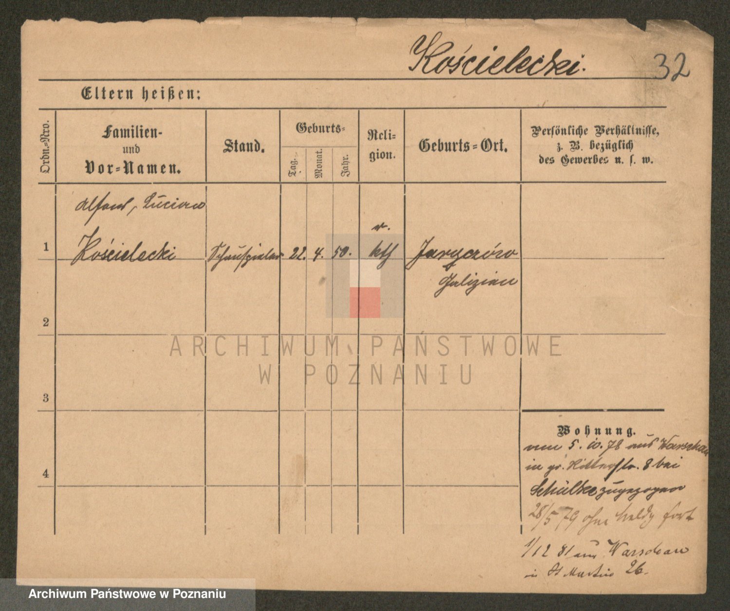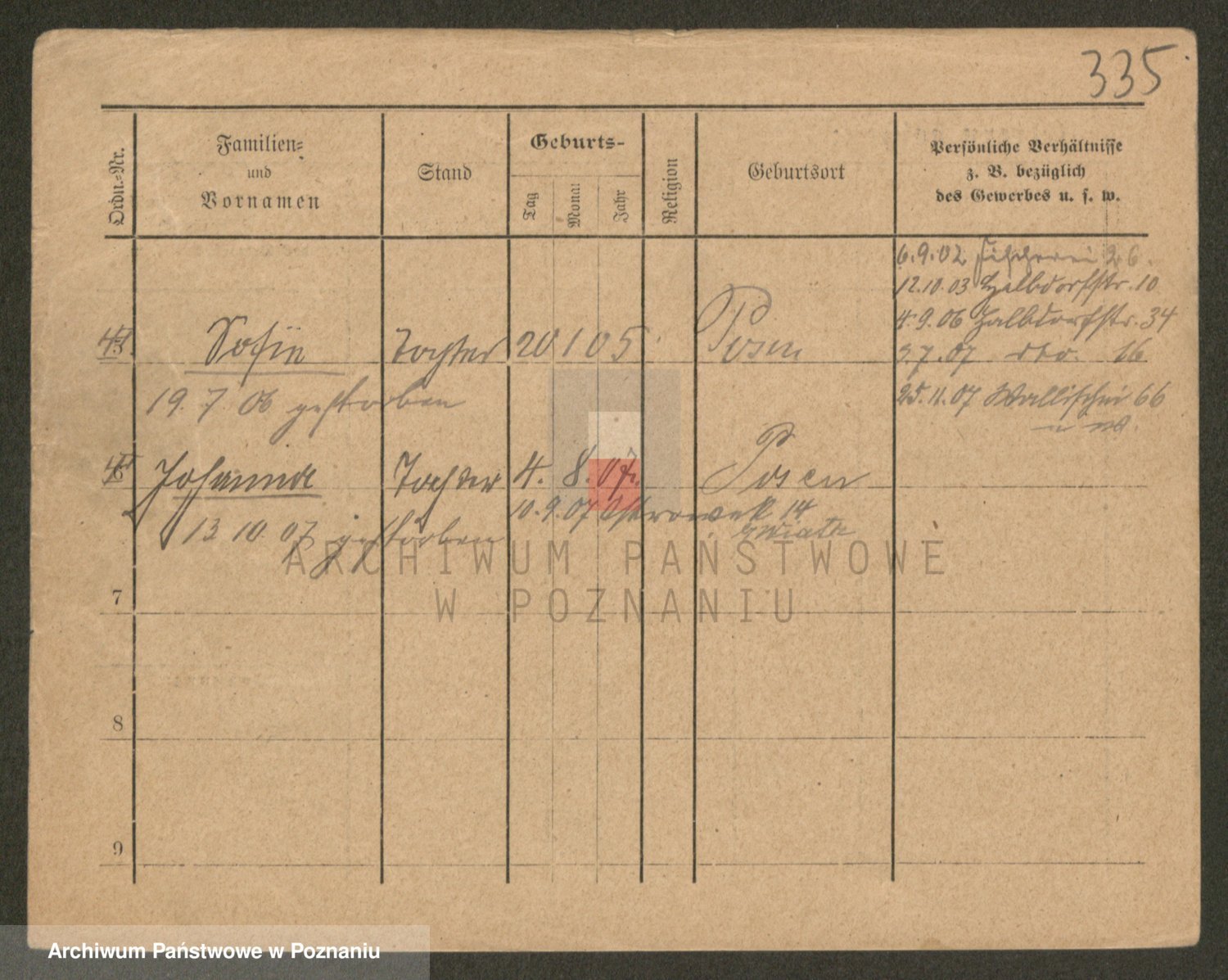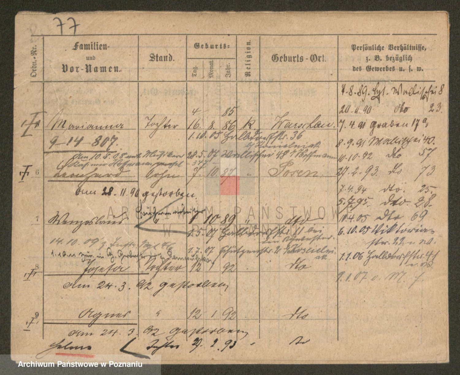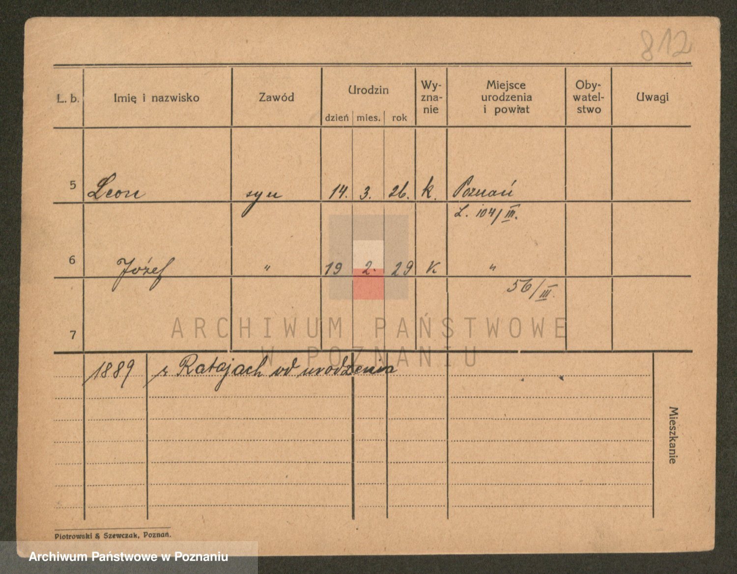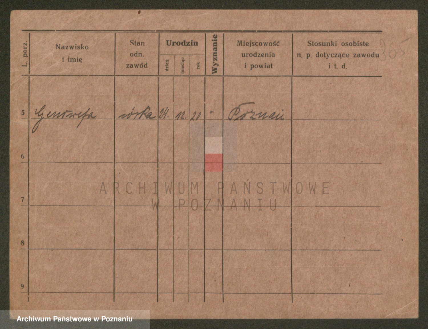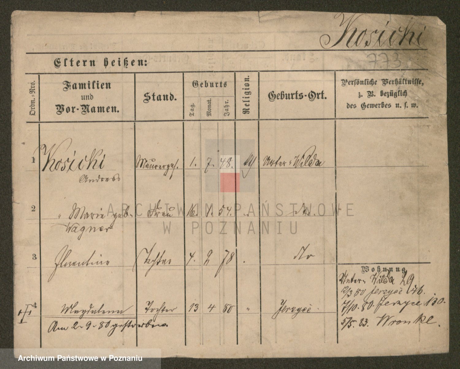 Podgląd karty osobowej dostępny jest po kliknięciu na nazwisko lub ikonkę karty. Można dokonywać powiększenia (ikony na górze) lub przechodzić między kolejnymi skanami (strzałki po bokach).