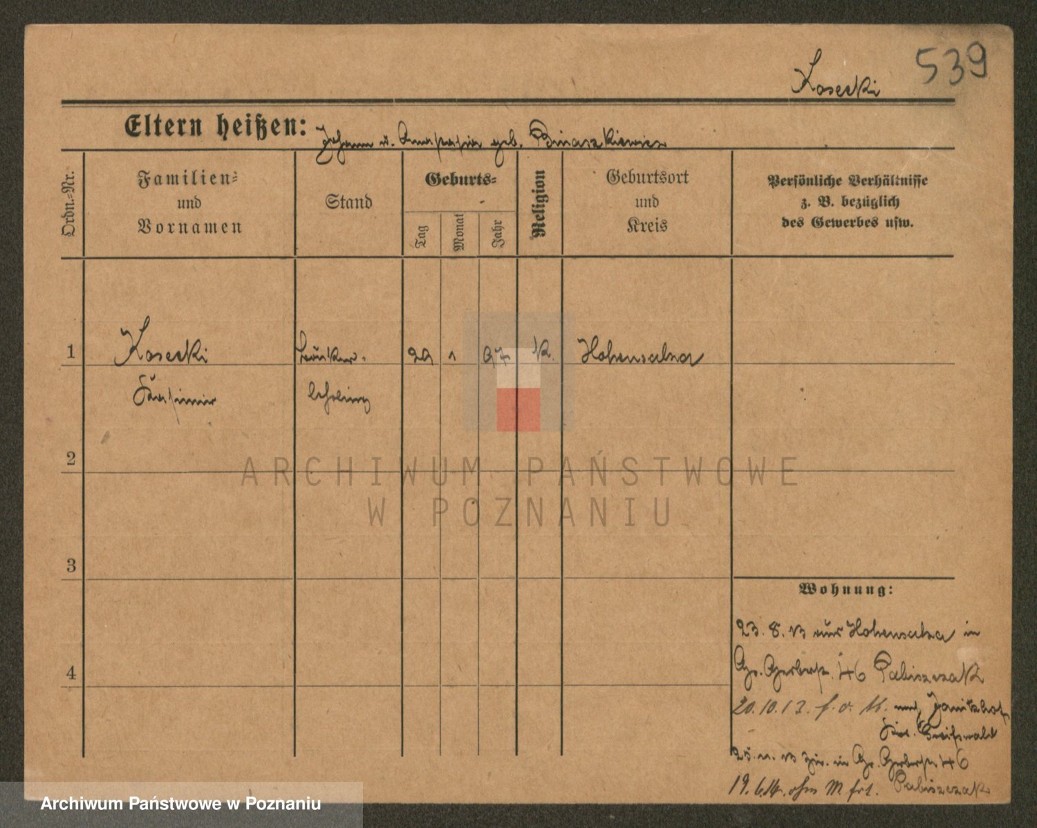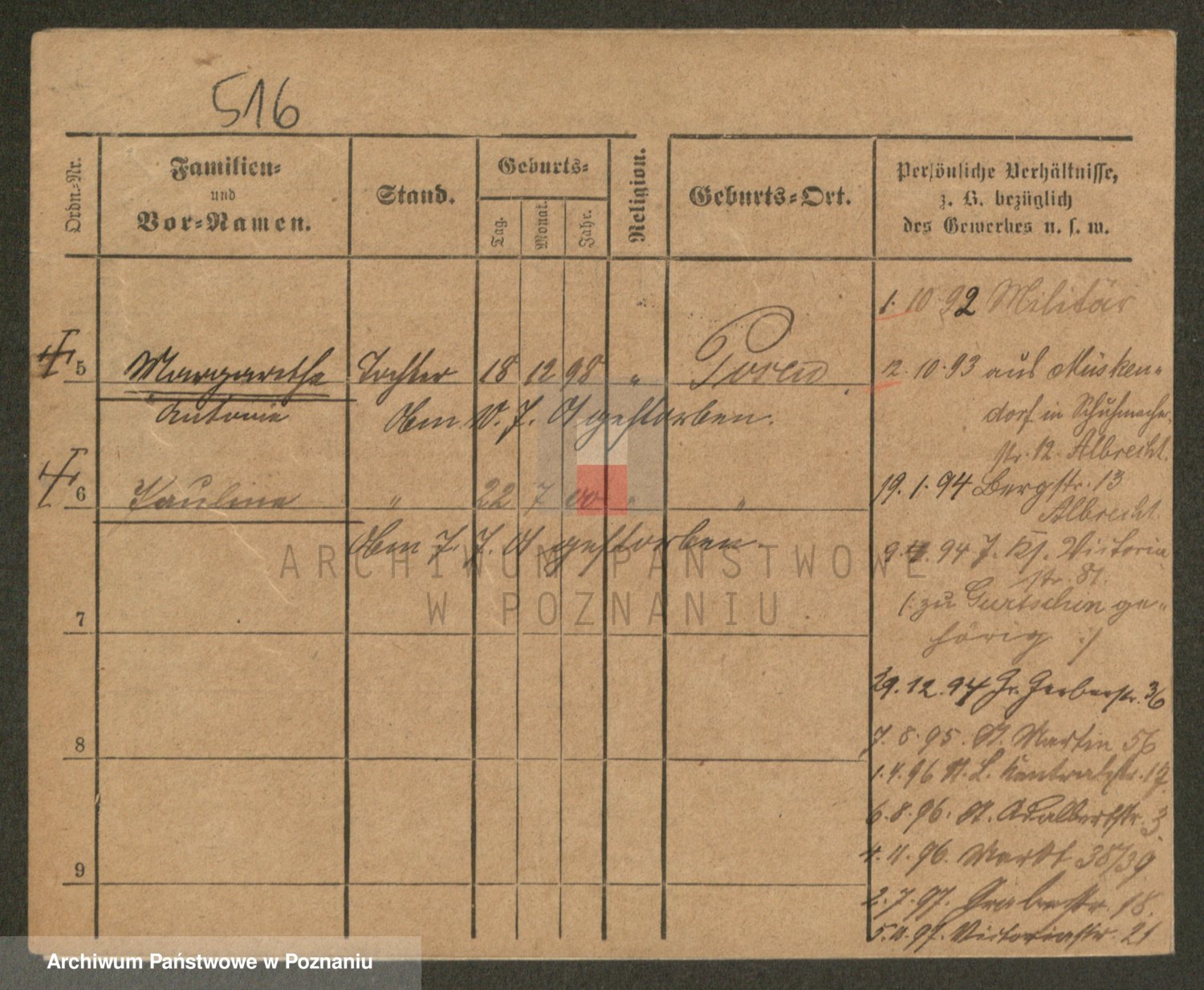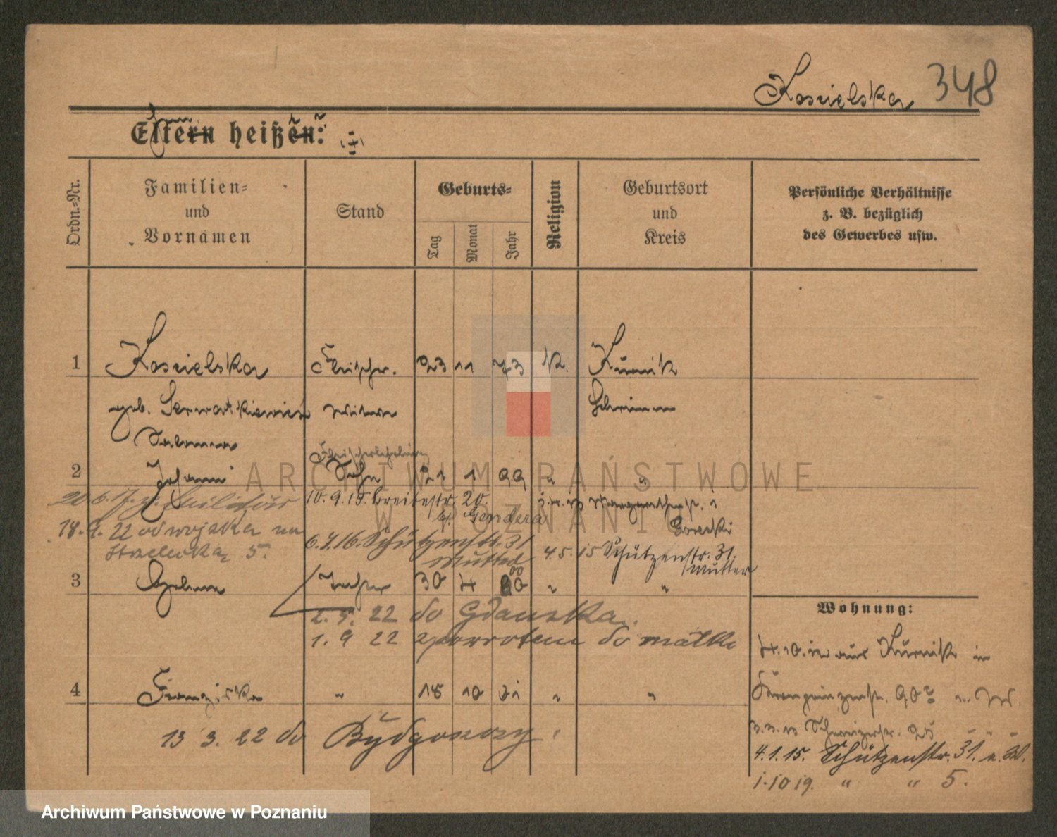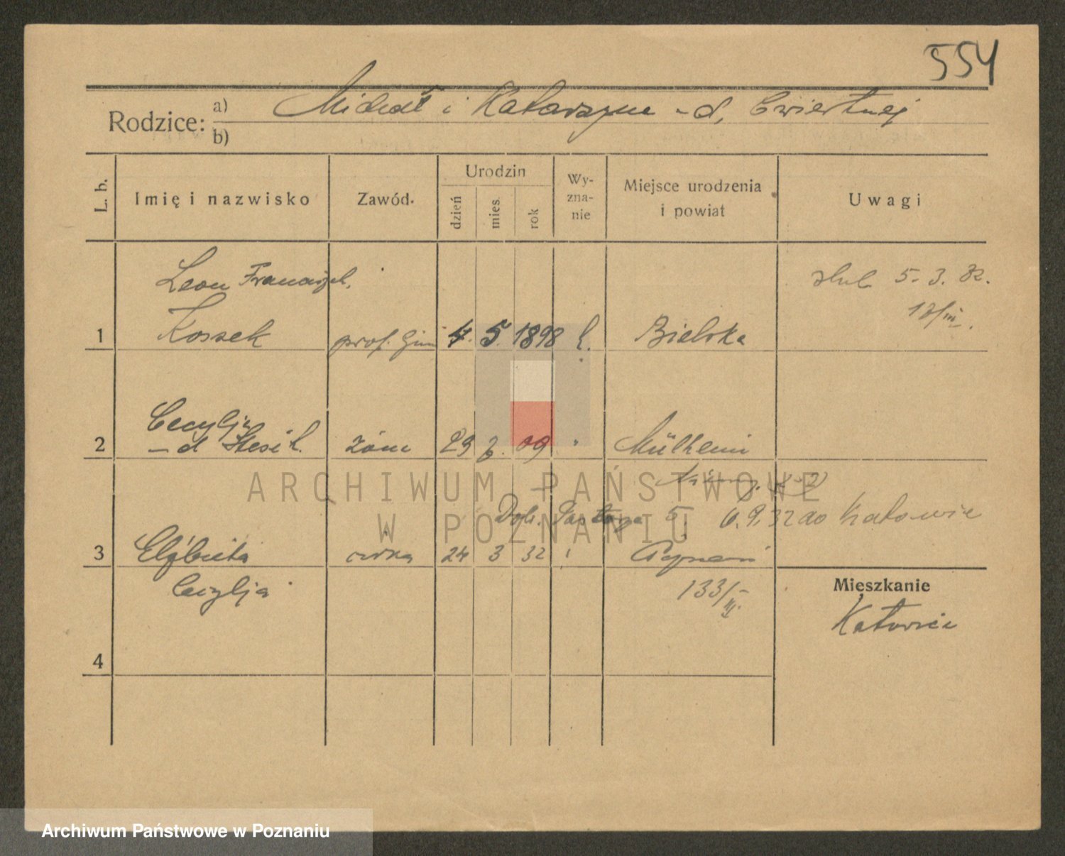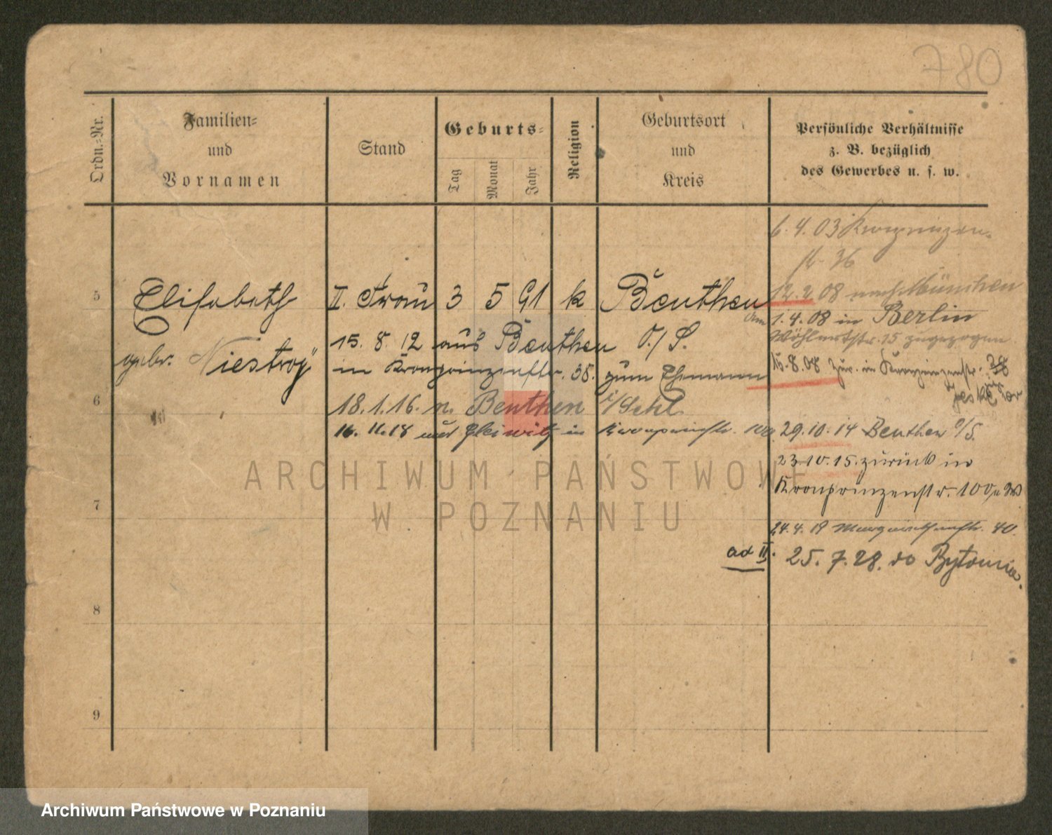 Podgląd karty osobowej dostępny jest po kliknięciu na nazwisko lub ikonkę karty. Można dokonywać powiększenia (ikony na górze) lub przechodzić między kolejnymi skanami (strzałki po bokach).