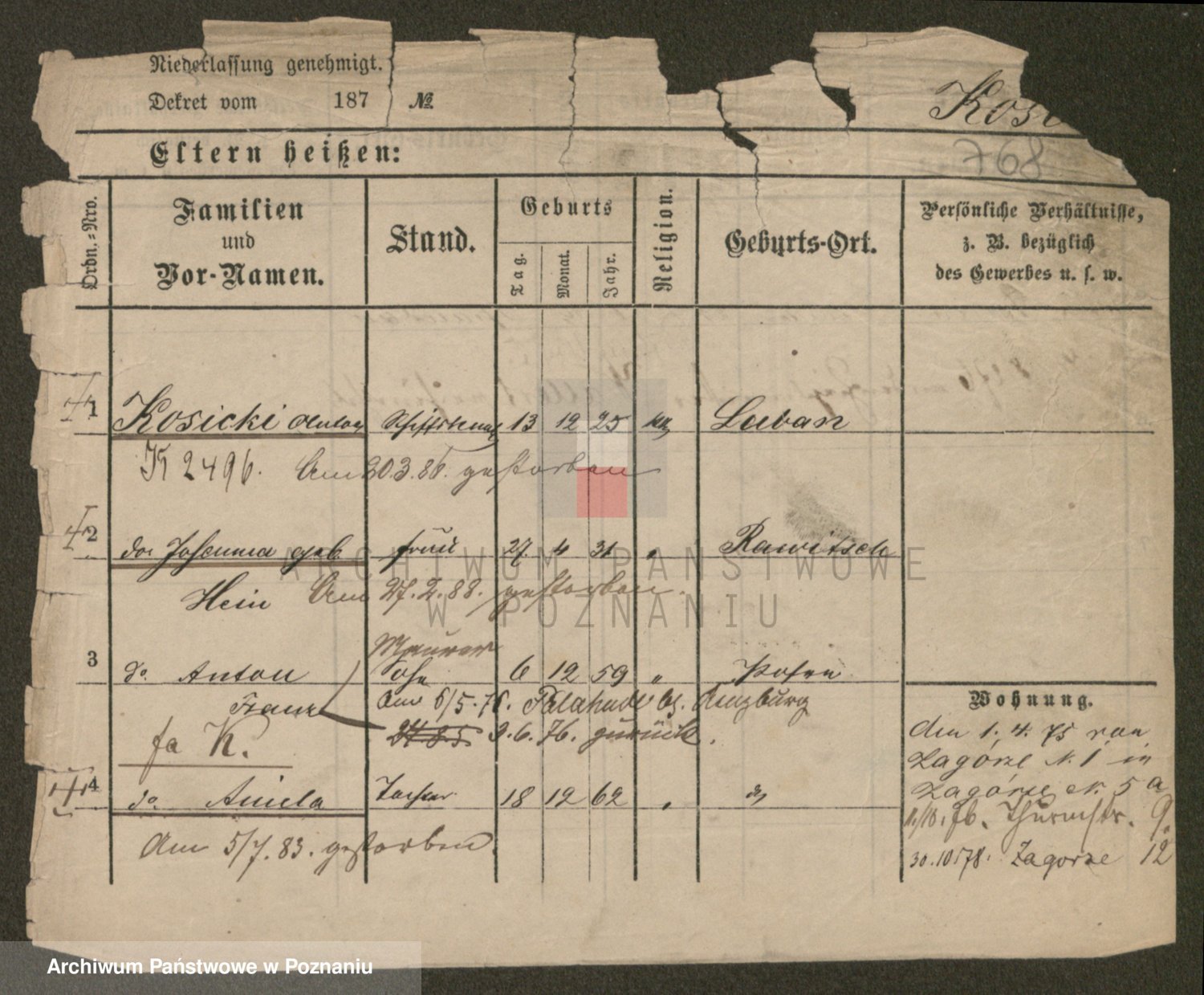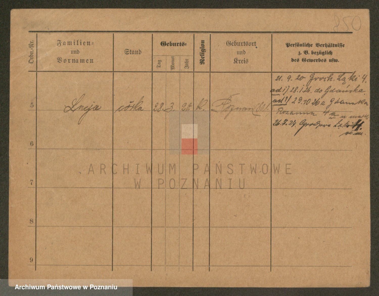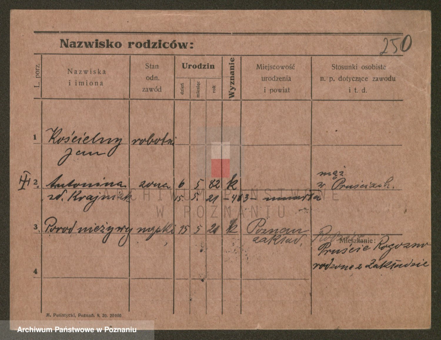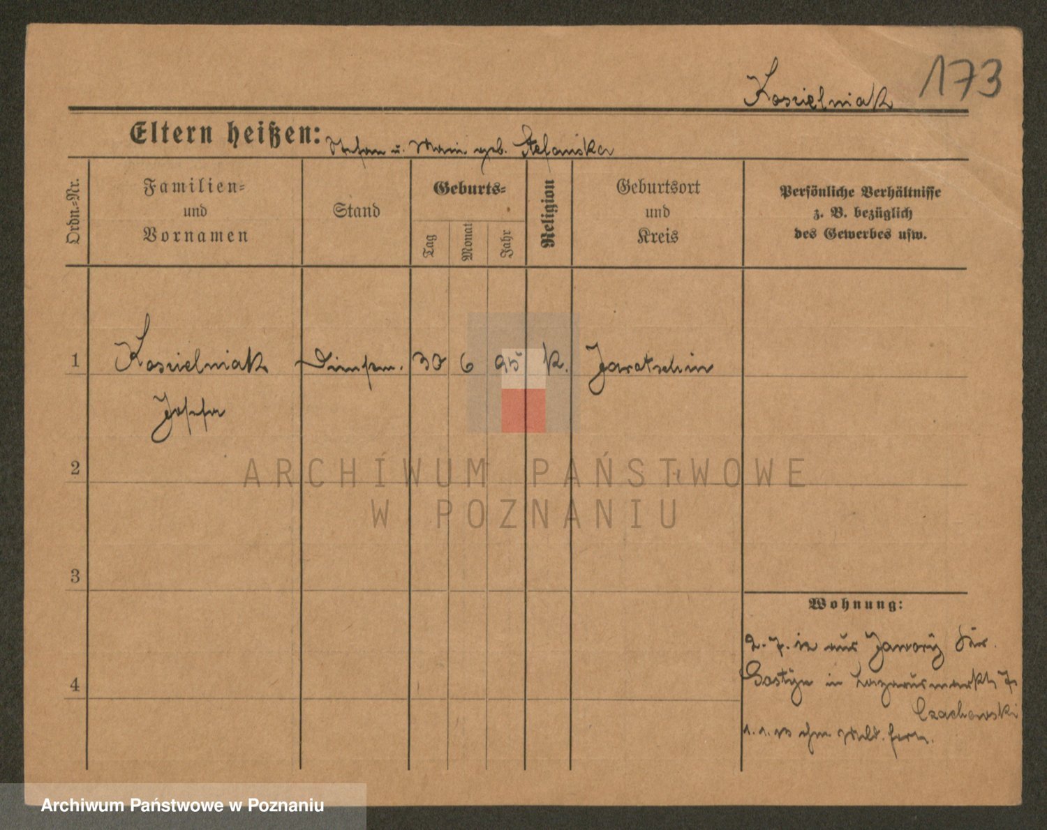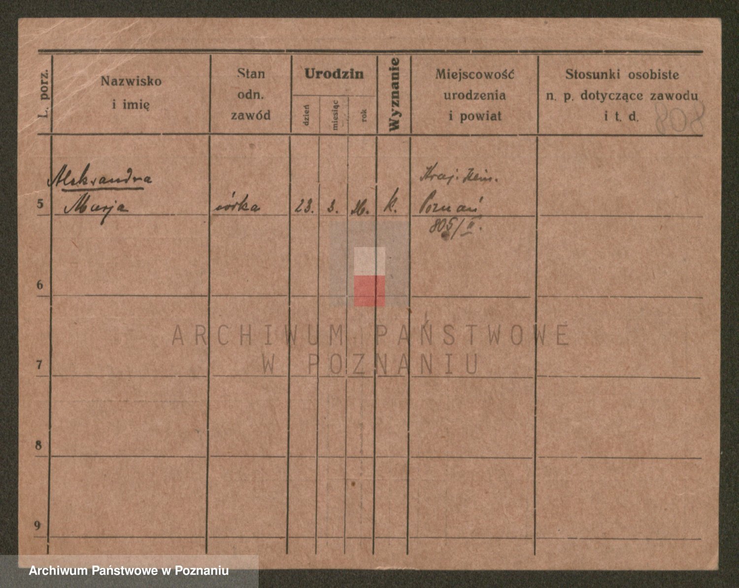 Podgląd karty osobowej dostępny jest po kliknięciu na nazwisko lub ikonkę karty. Można dokonywać powiększenia (ikony na górze) lub przechodzić między kolejnymi skanami (strzałki po bokach).