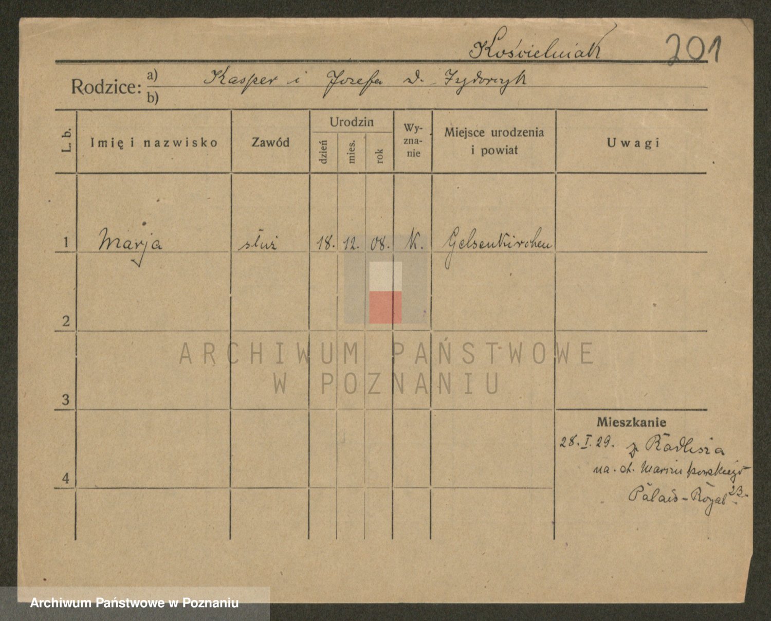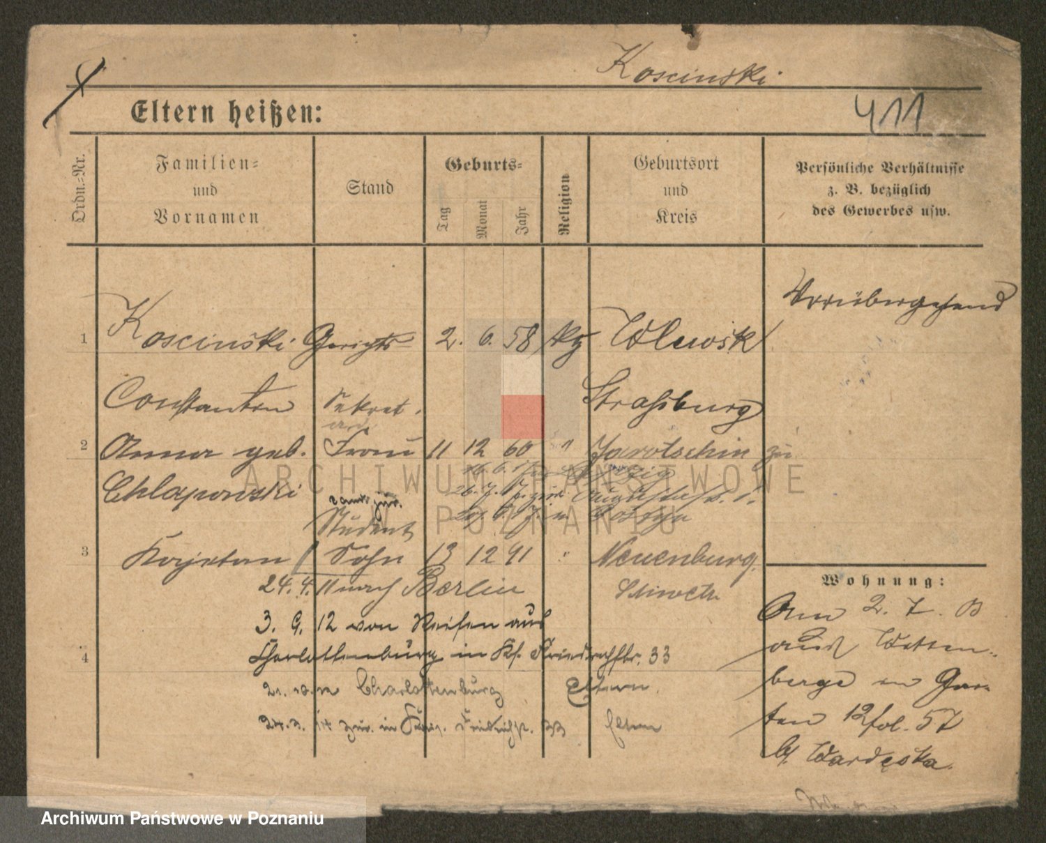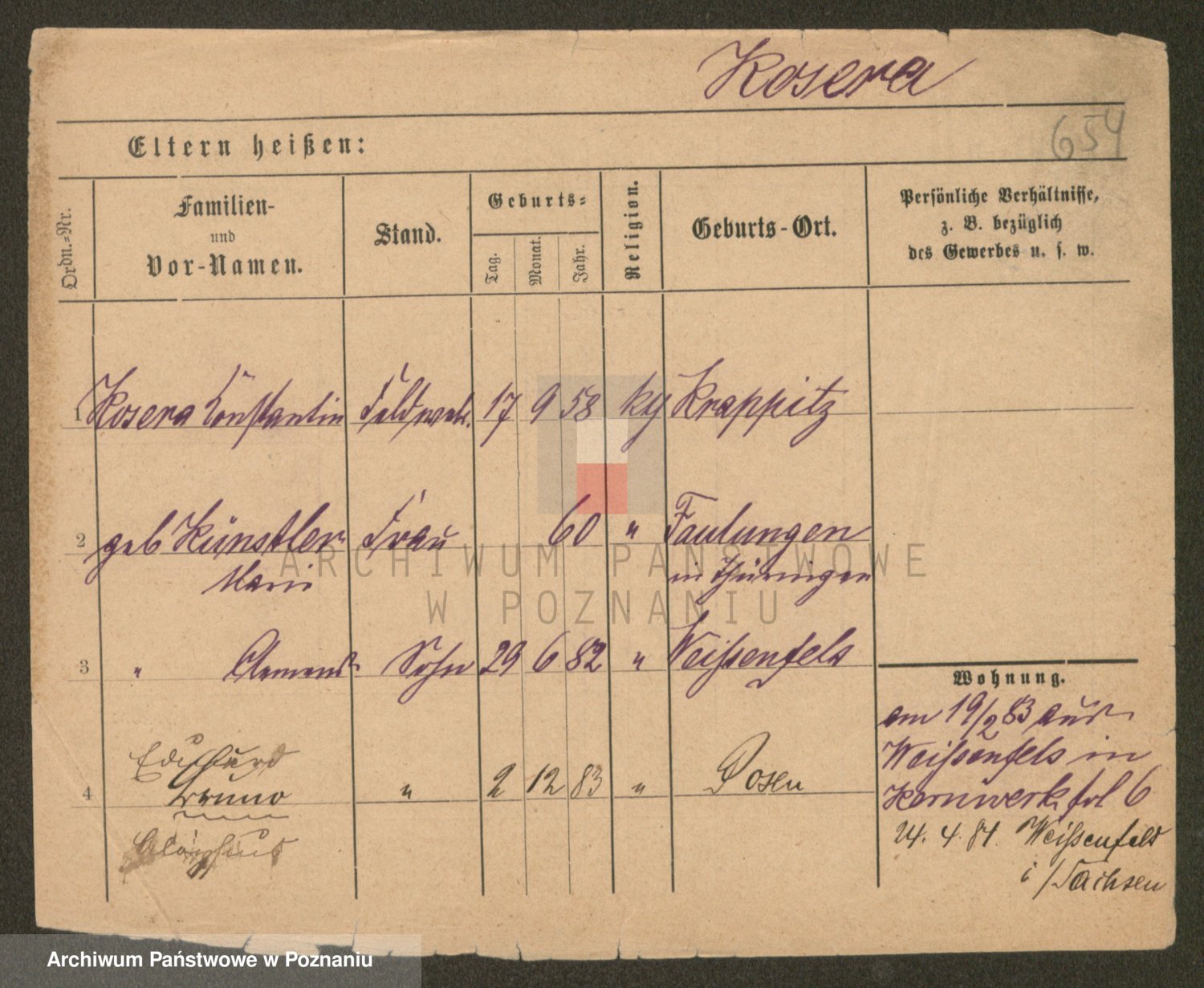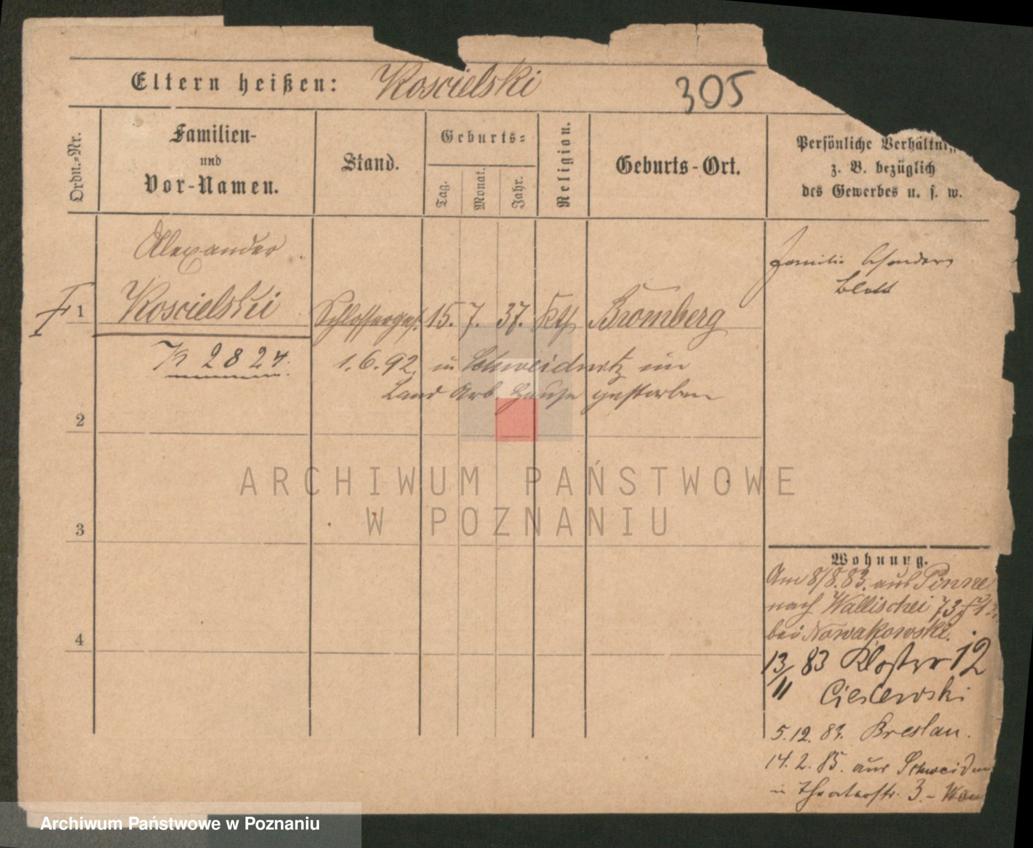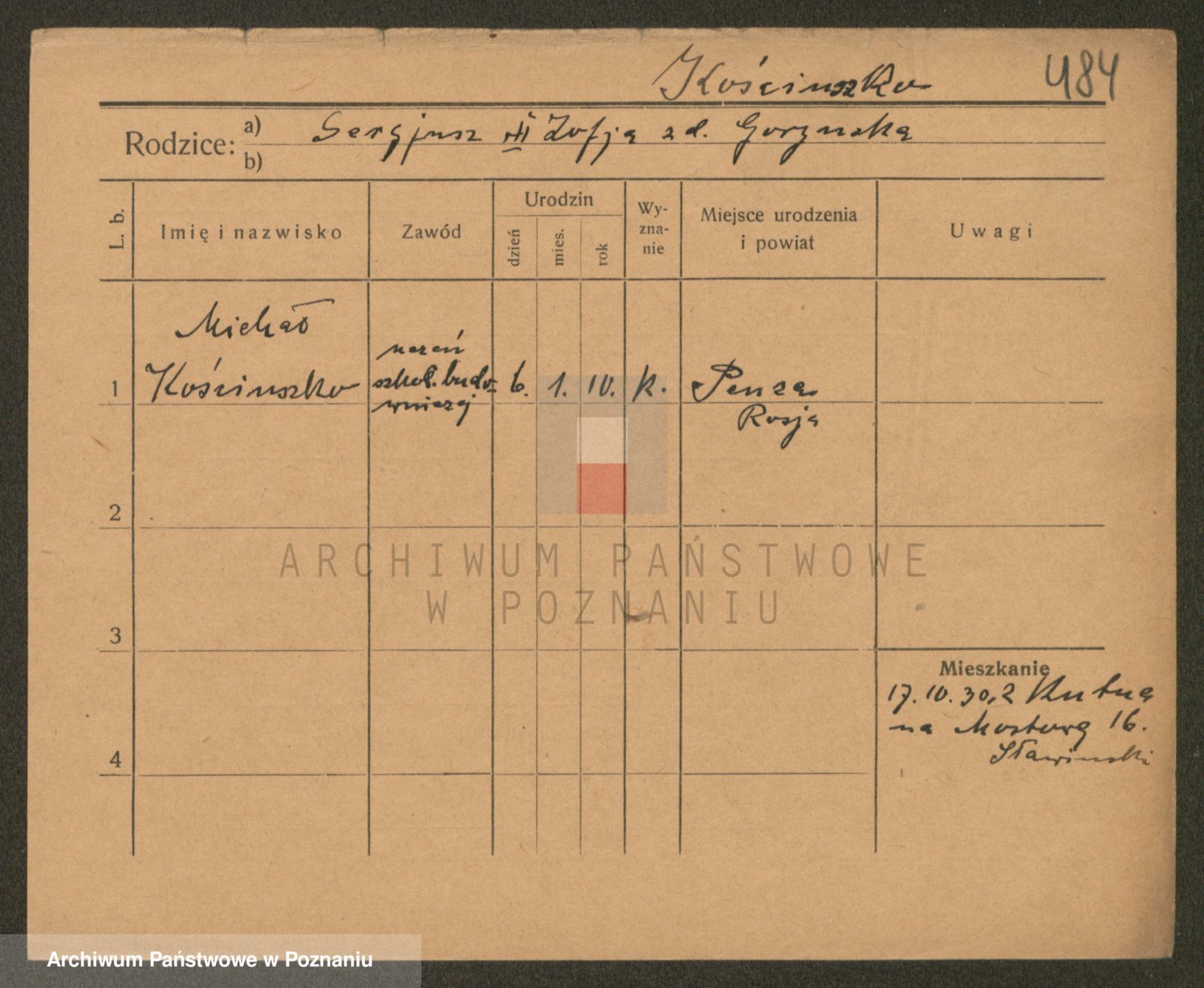 Podgląd karty osobowej dostępny jest po kliknięciu na nazwisko lub ikonkę karty. Można dokonywać powiększenia (ikony na górze) lub przechodzić między kolejnymi skanami (strzałki po bokach).