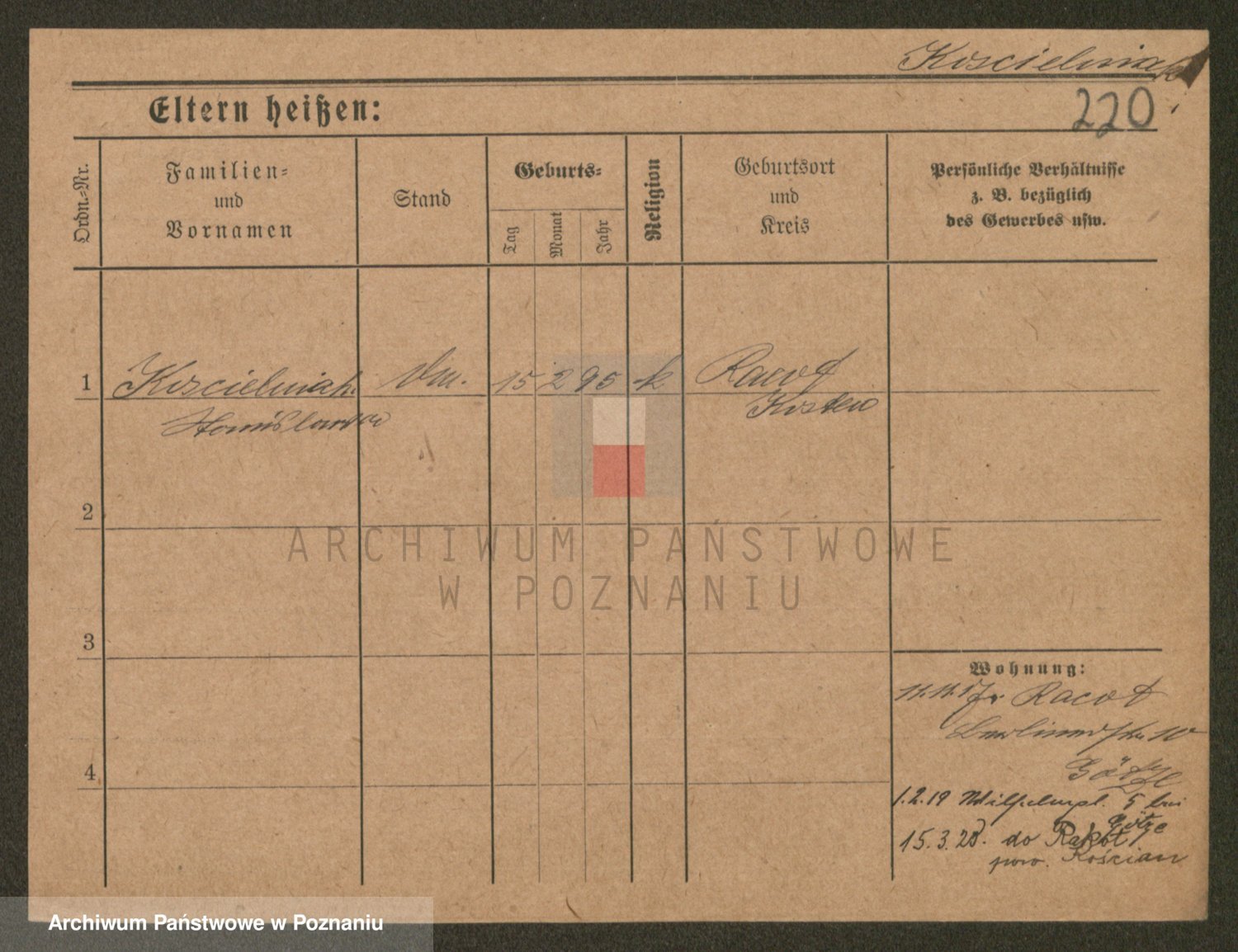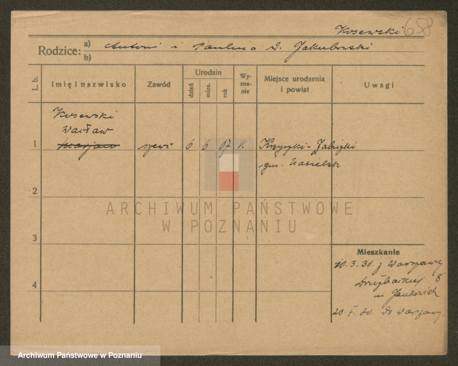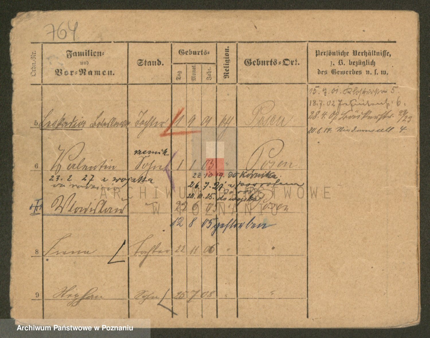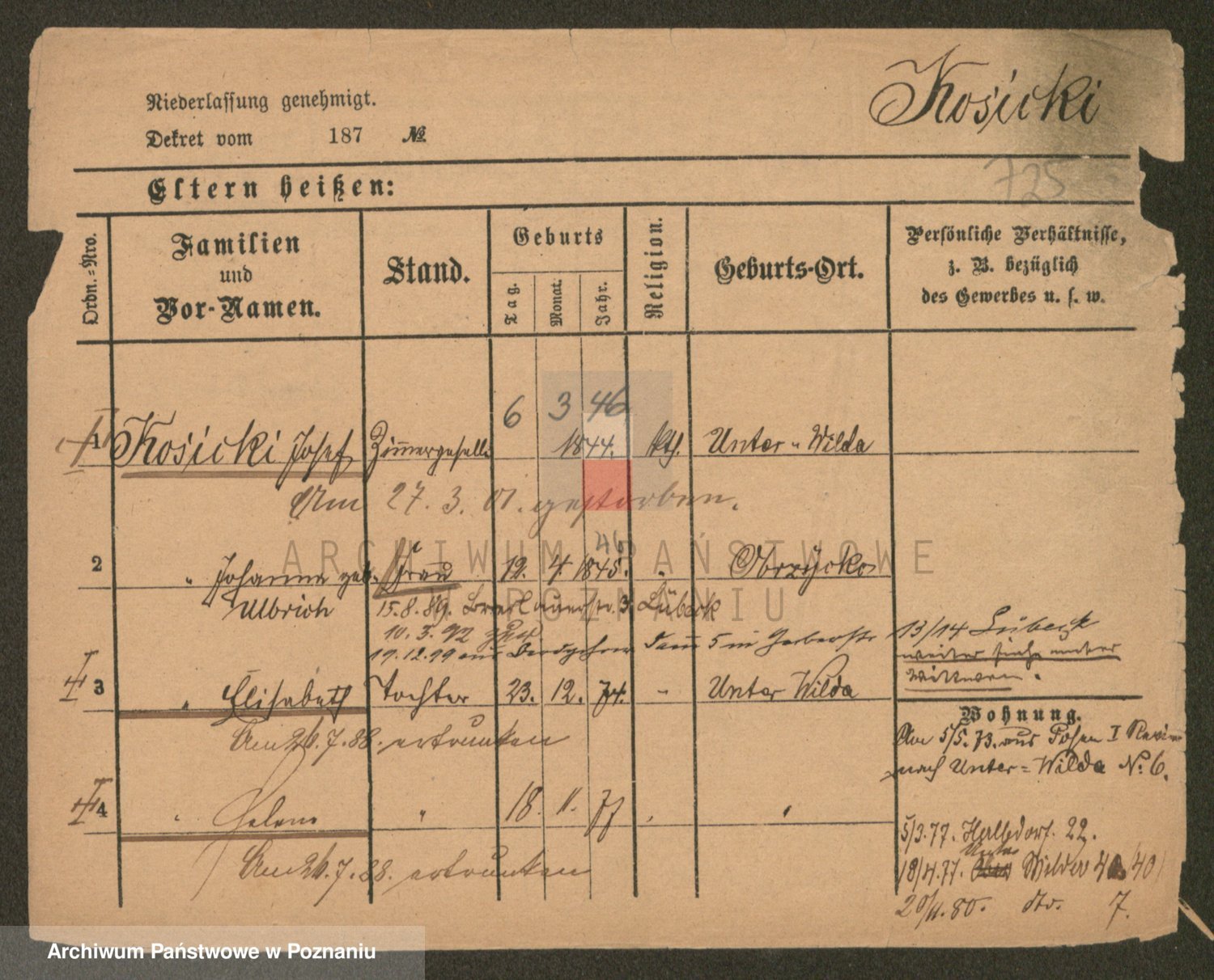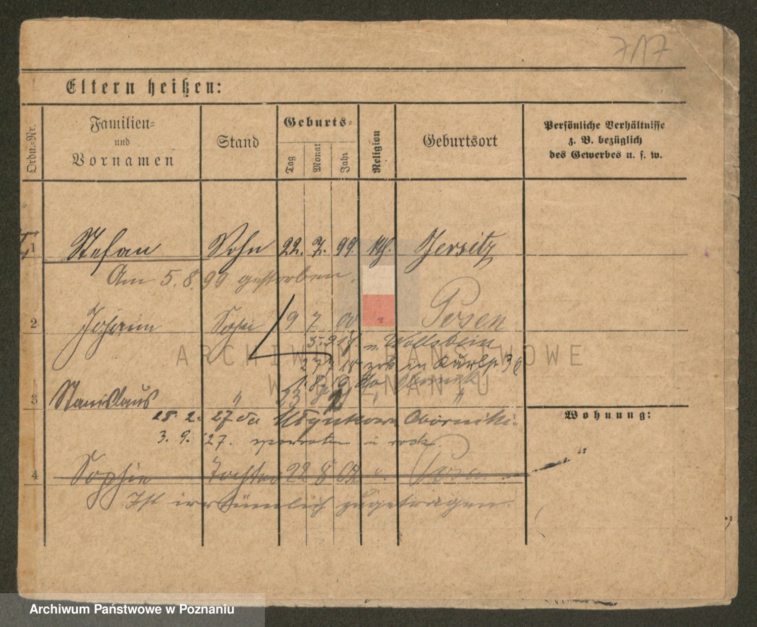 Podgląd karty osobowej dostępny jest po kliknięciu na nazwisko lub ikonkę karty. Można dokonywać powiększenia (ikony na górze) lub przechodzić między kolejnymi skanami (strzałki po bokach).