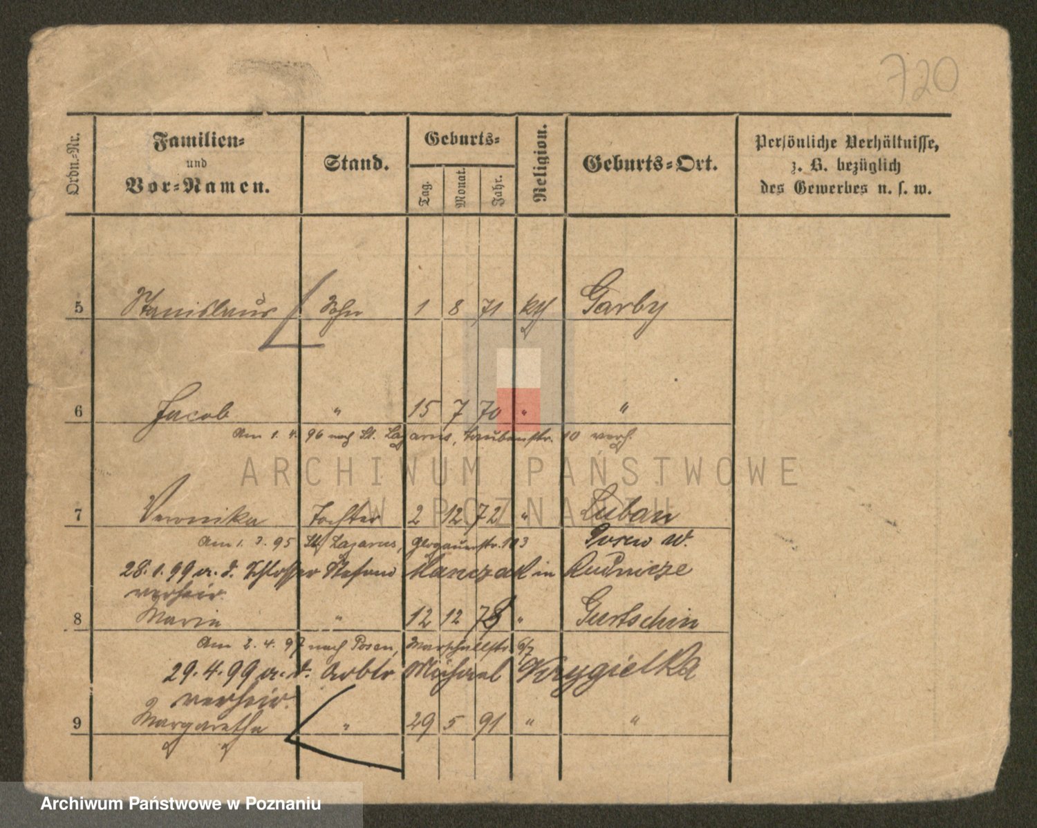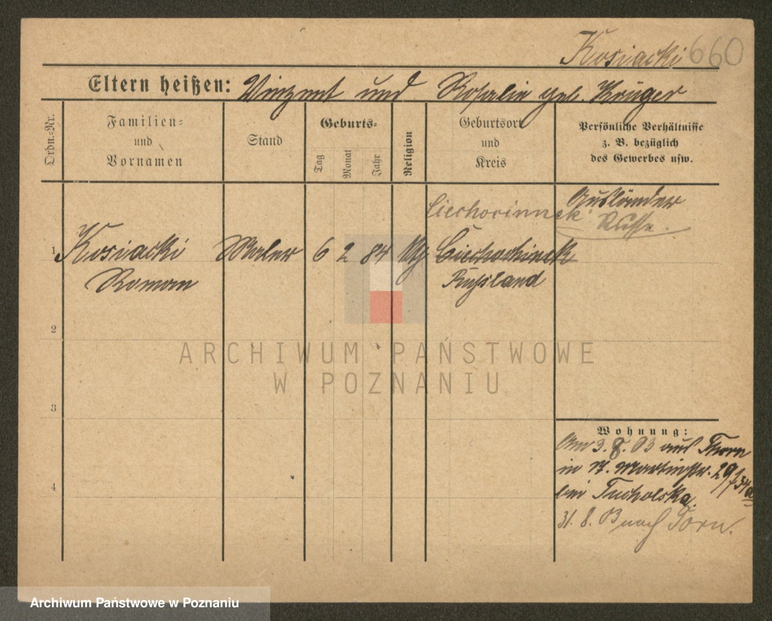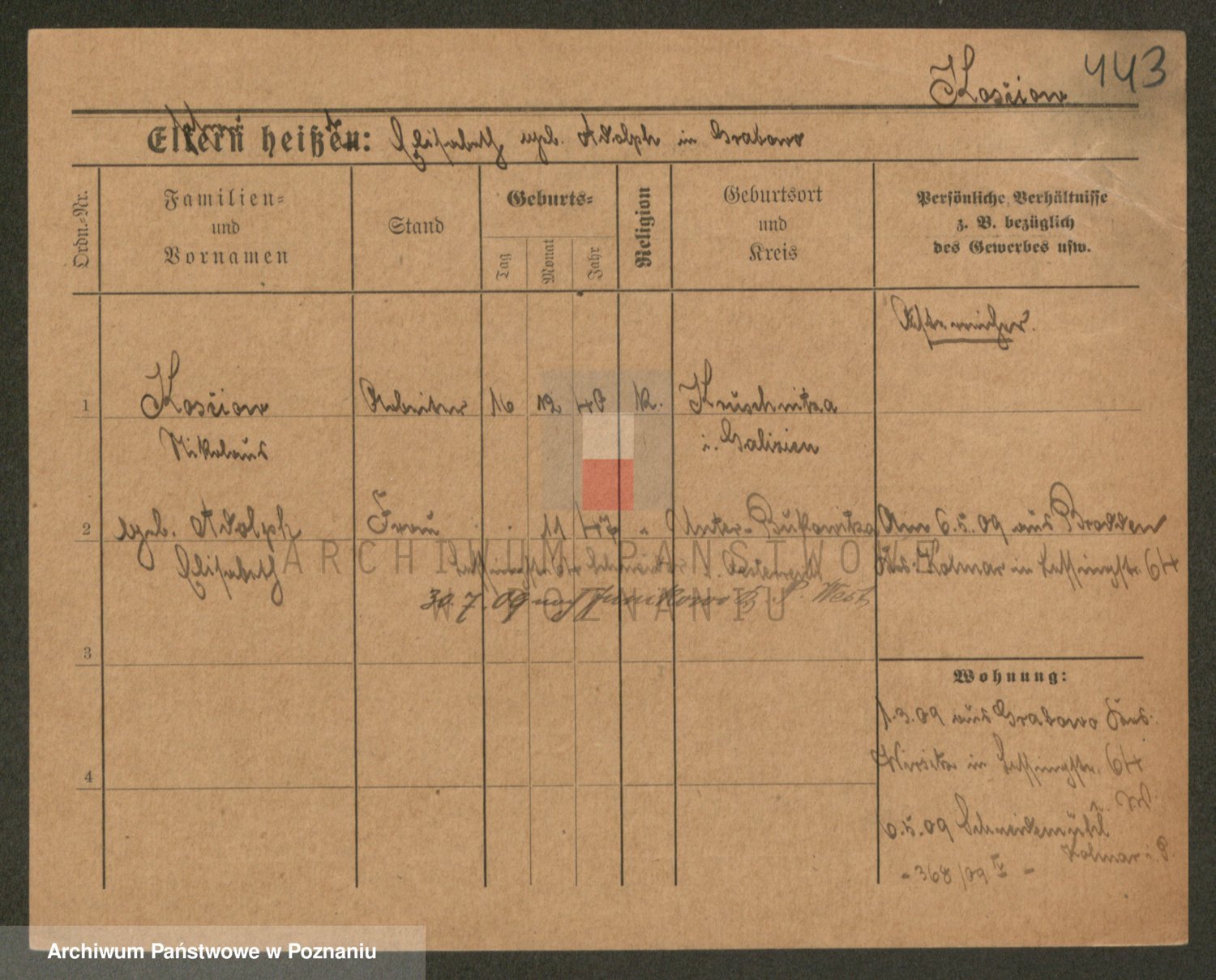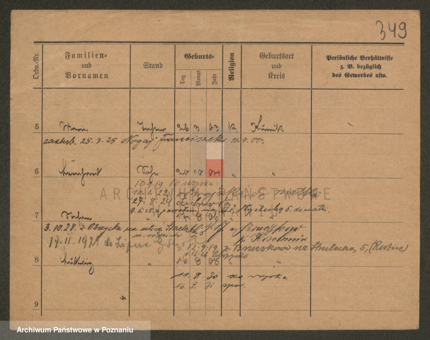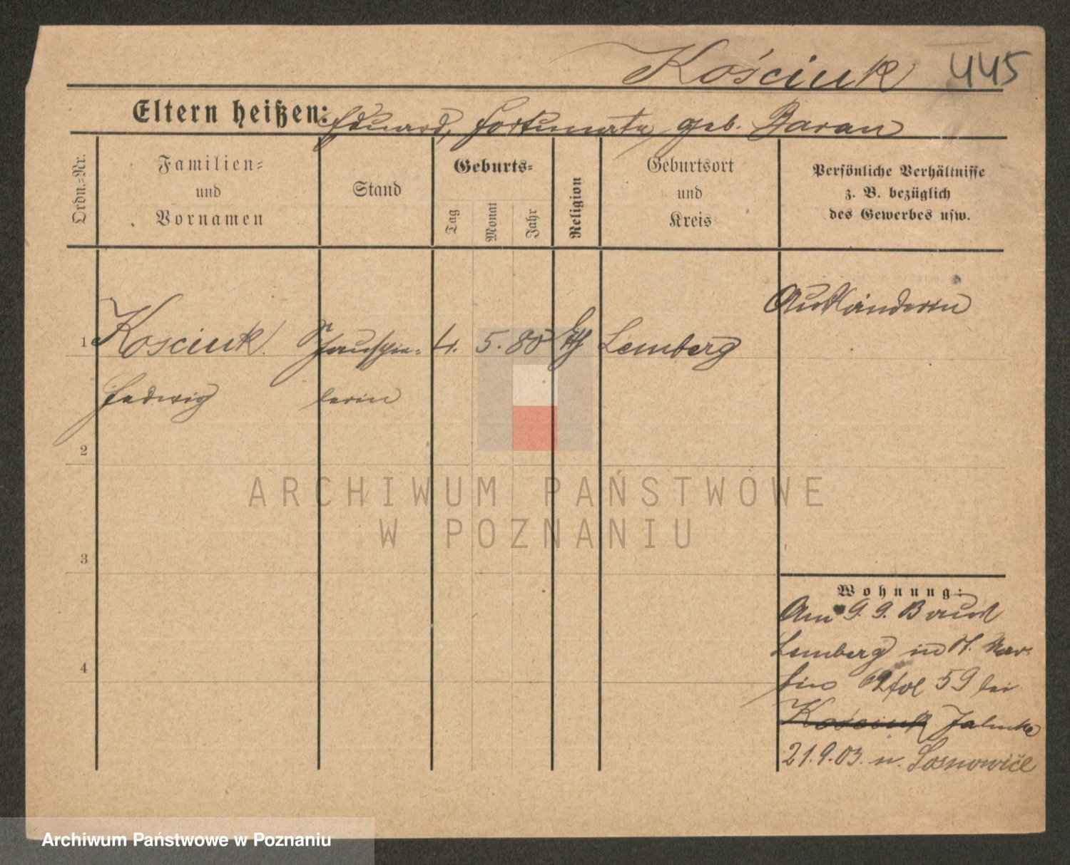 Podgląd karty osobowej dostępny jest po kliknięciu na nazwisko lub ikonkę karty. Można dokonywać powiększenia (ikony na górze) lub przechodzić między kolejnymi skanami (strzałki po bokach).