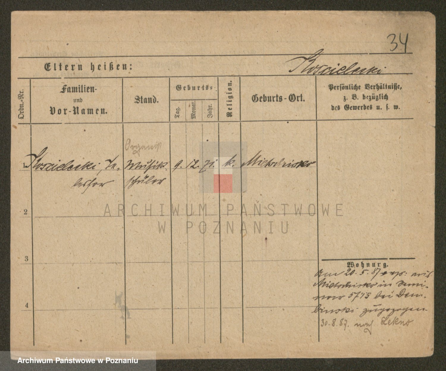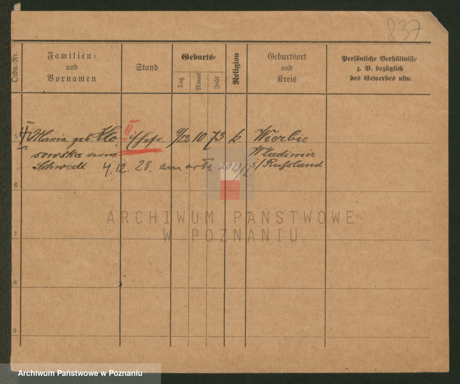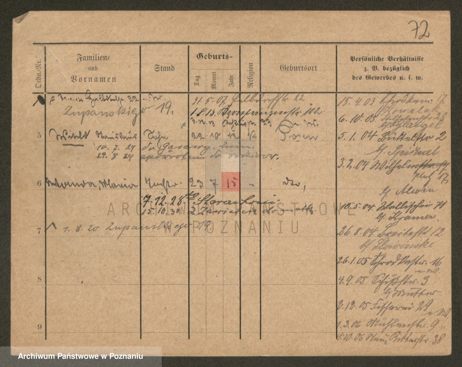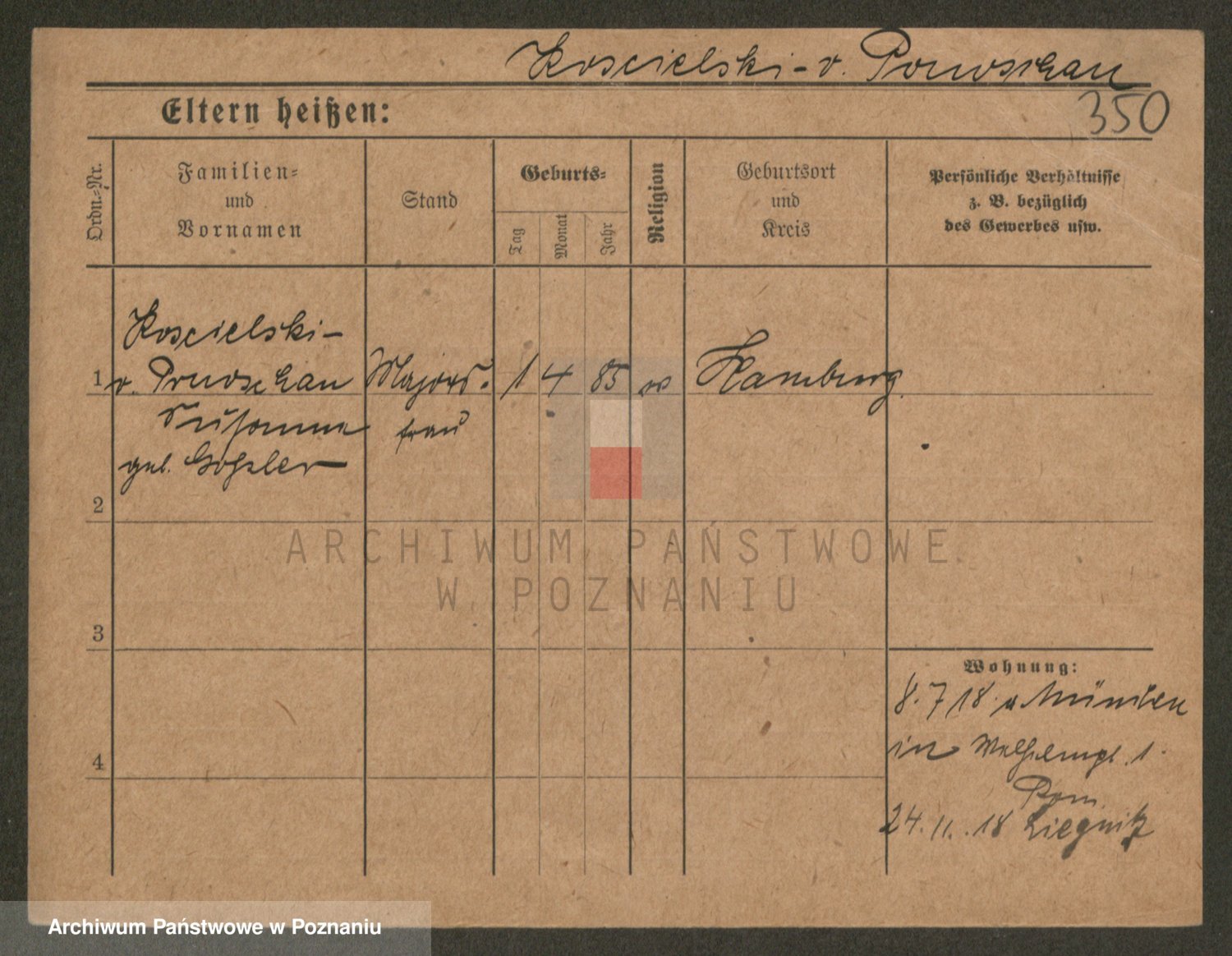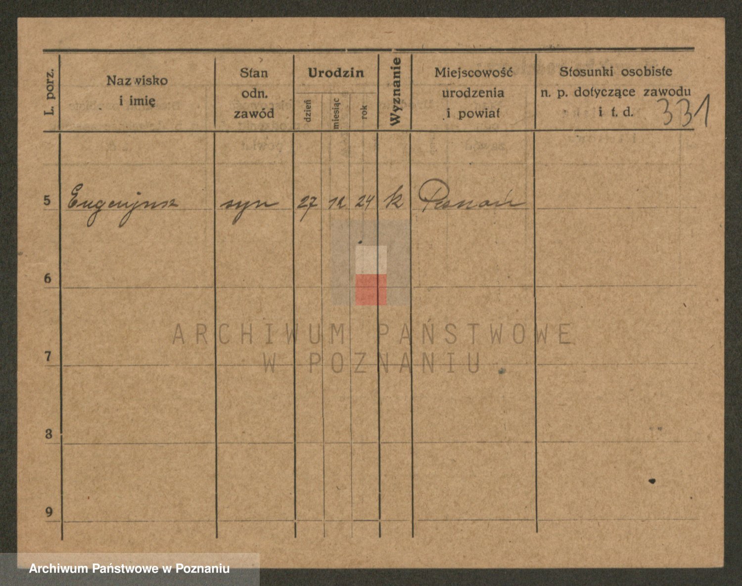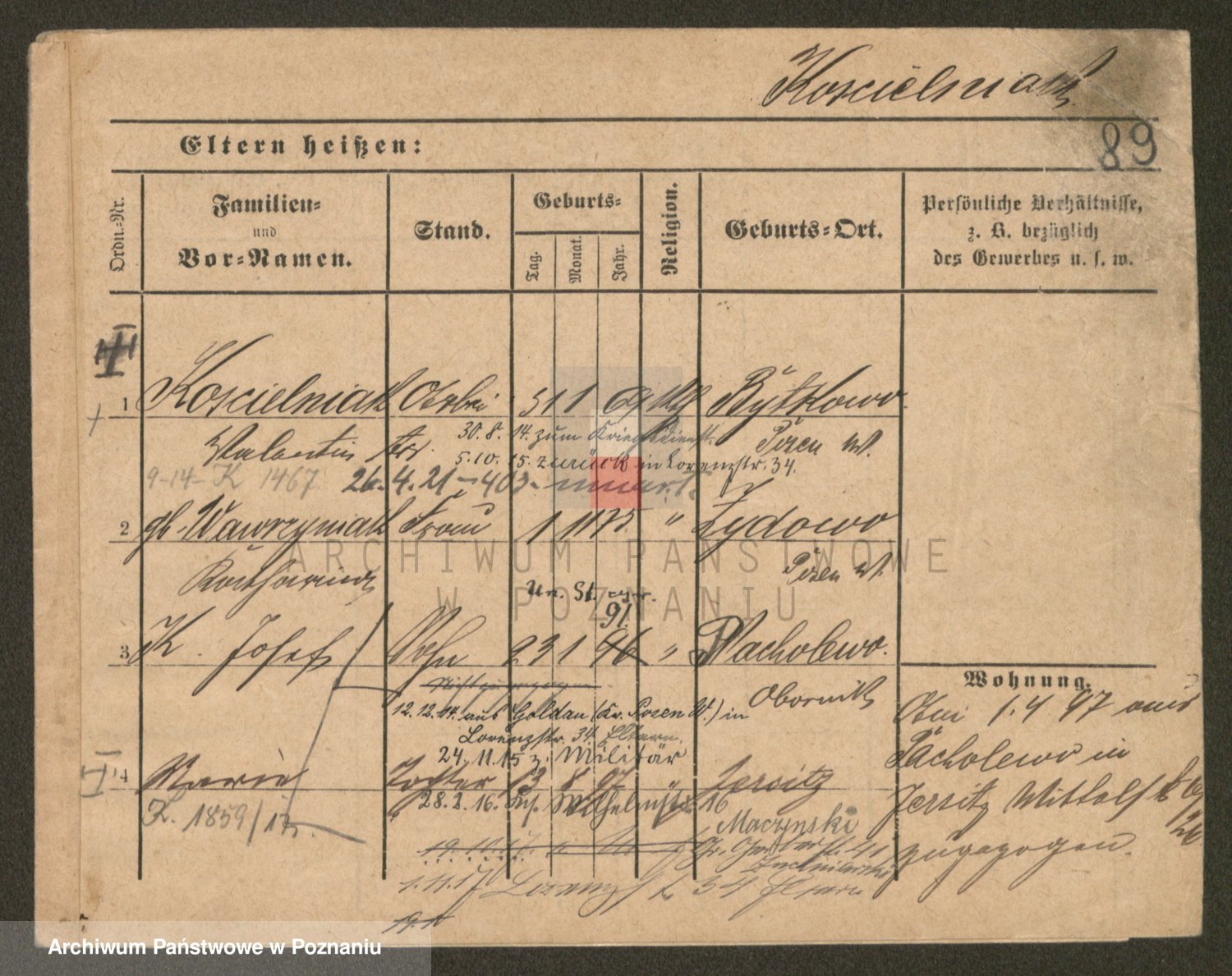 Podgląd karty osobowej dostępny jest po kliknięciu na nazwisko lub ikonkę karty. Można dokonywać powiększenia (ikony na górze) lub przechodzić między kolejnymi skanami (strzałki po bokach).