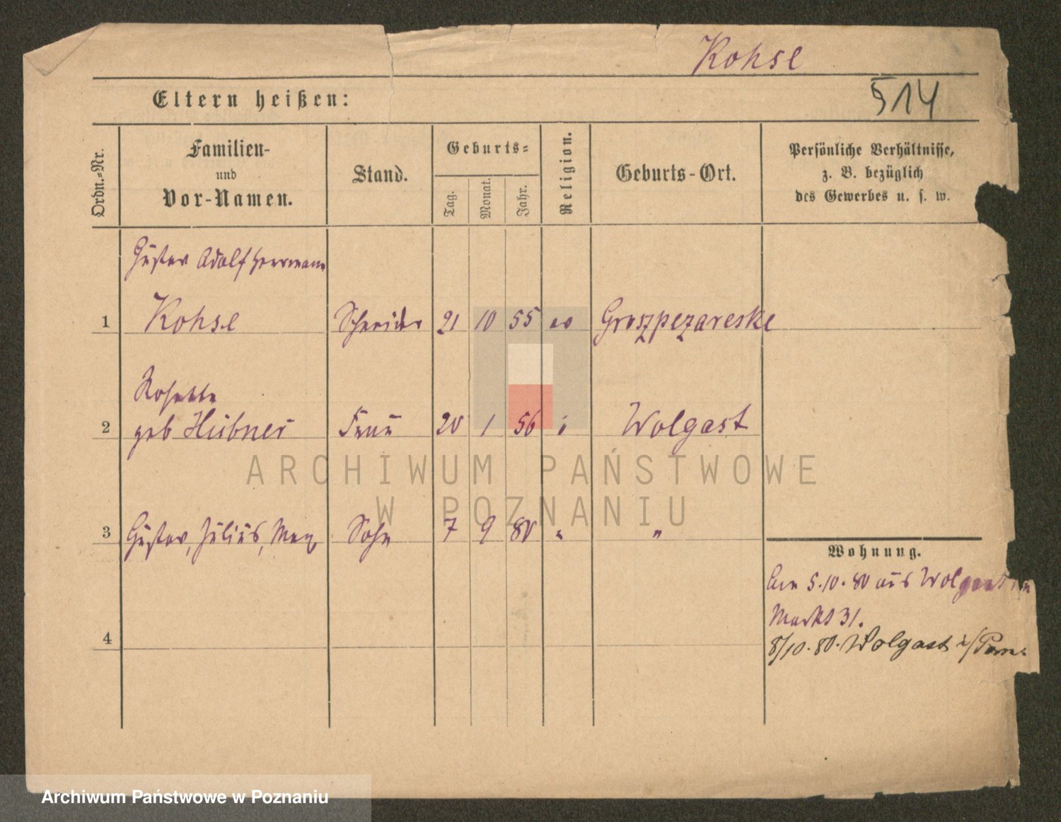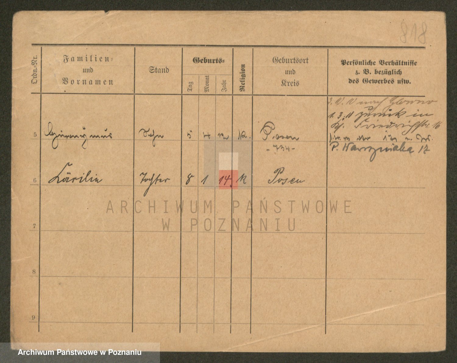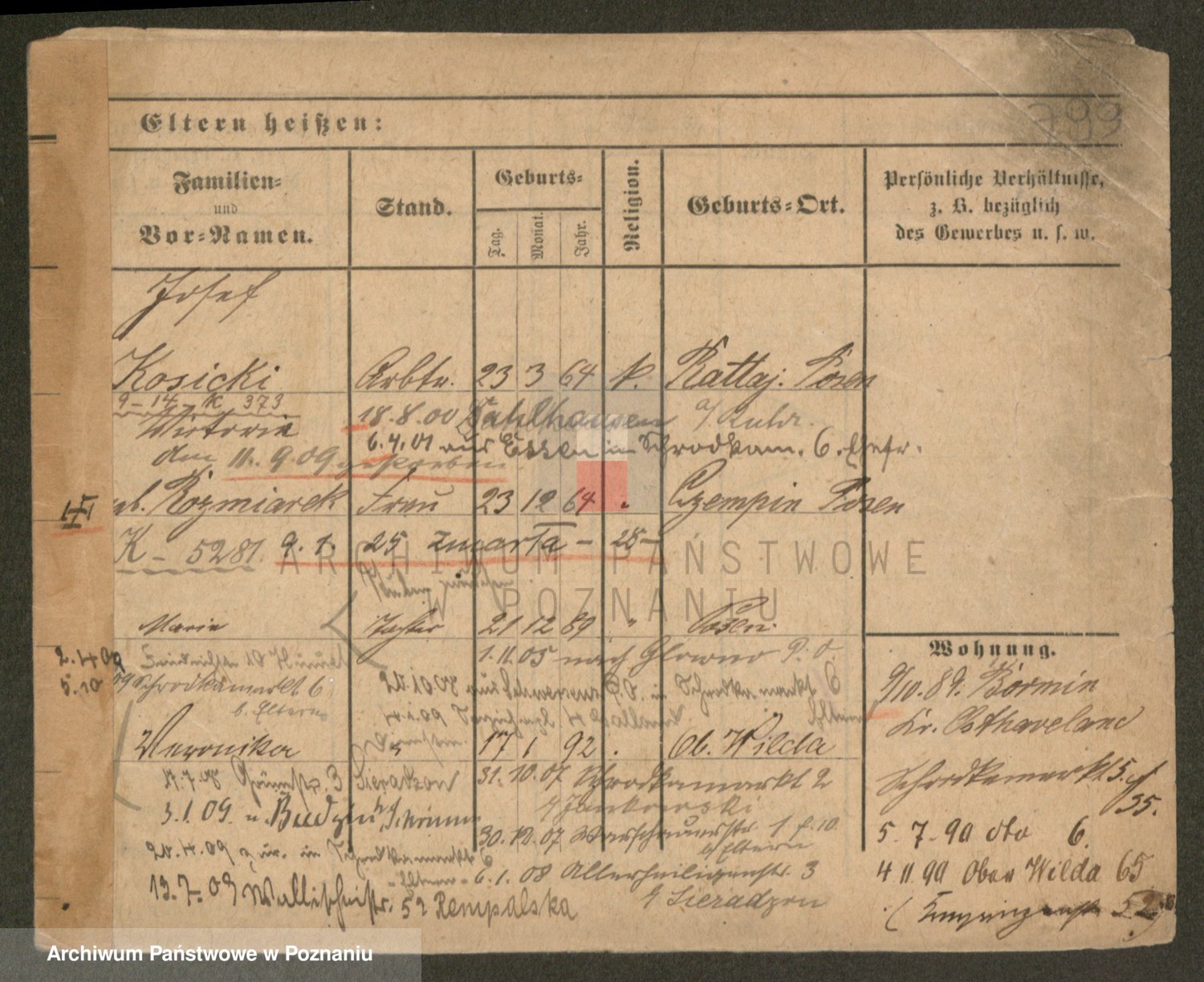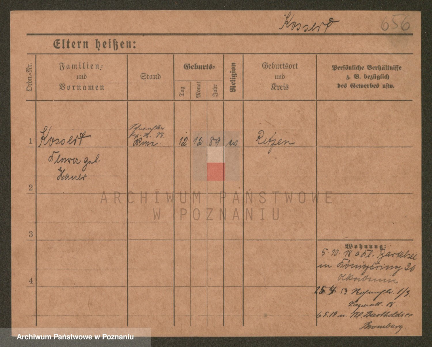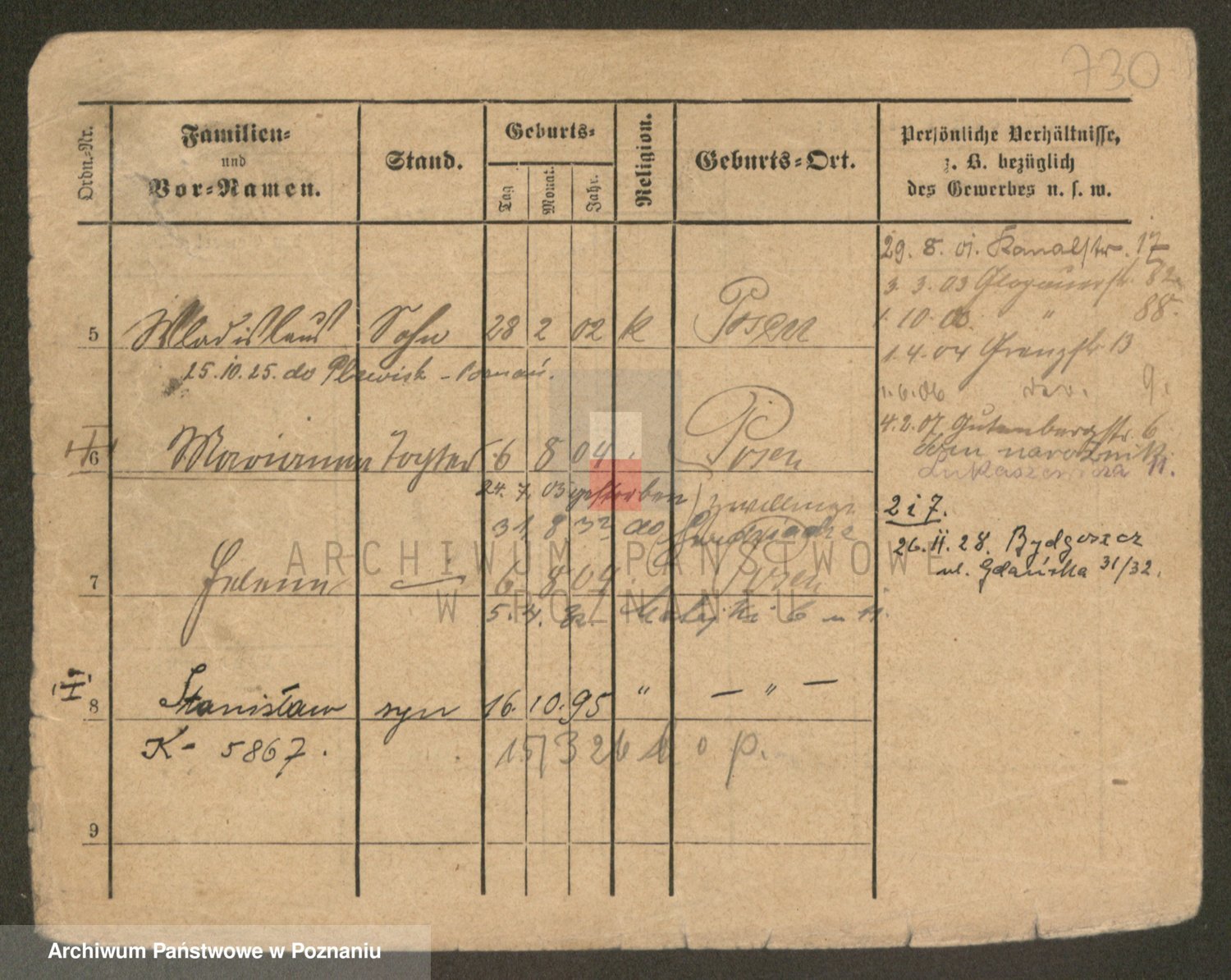 Podgląd karty osobowej dostępny jest po kliknięciu na nazwisko lub ikonkę karty. Można dokonywać powiększenia (ikony na górze) lub przechodzić między kolejnymi skanami (strzałki po bokach).