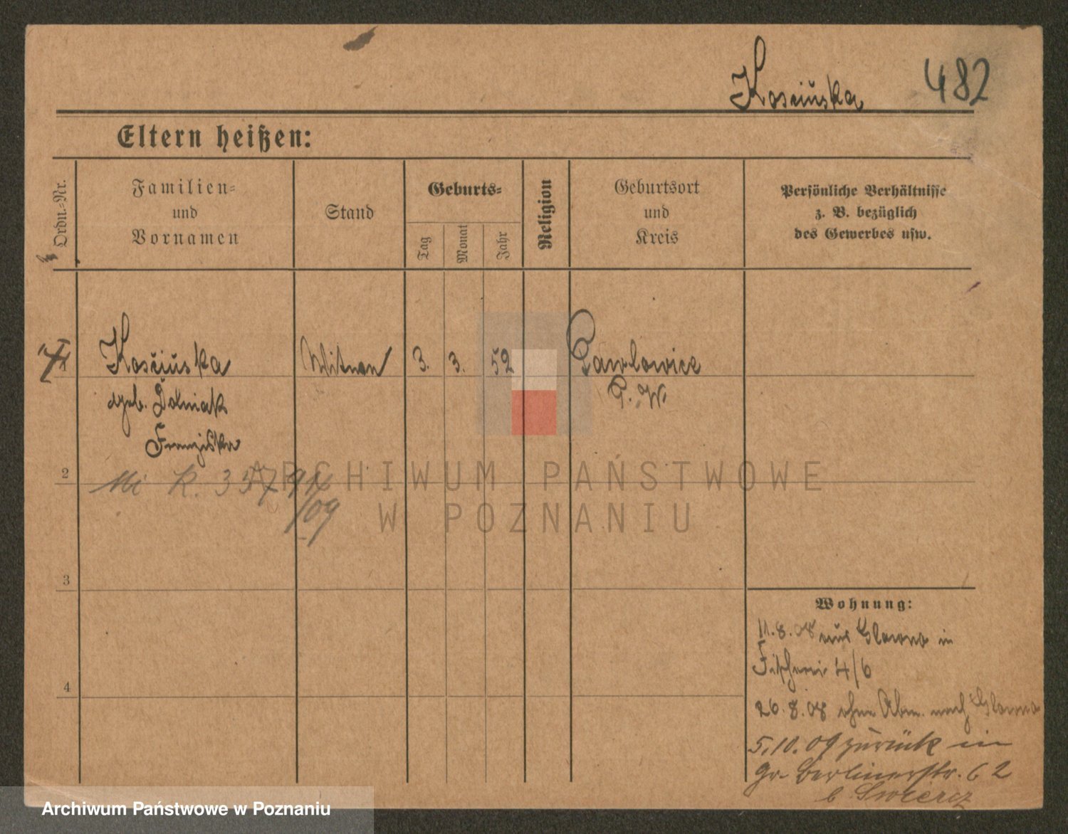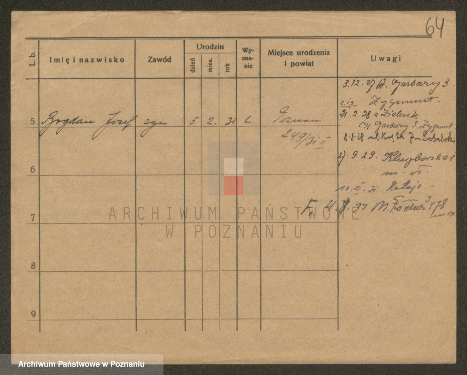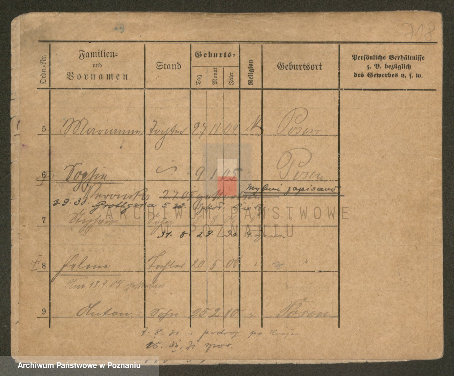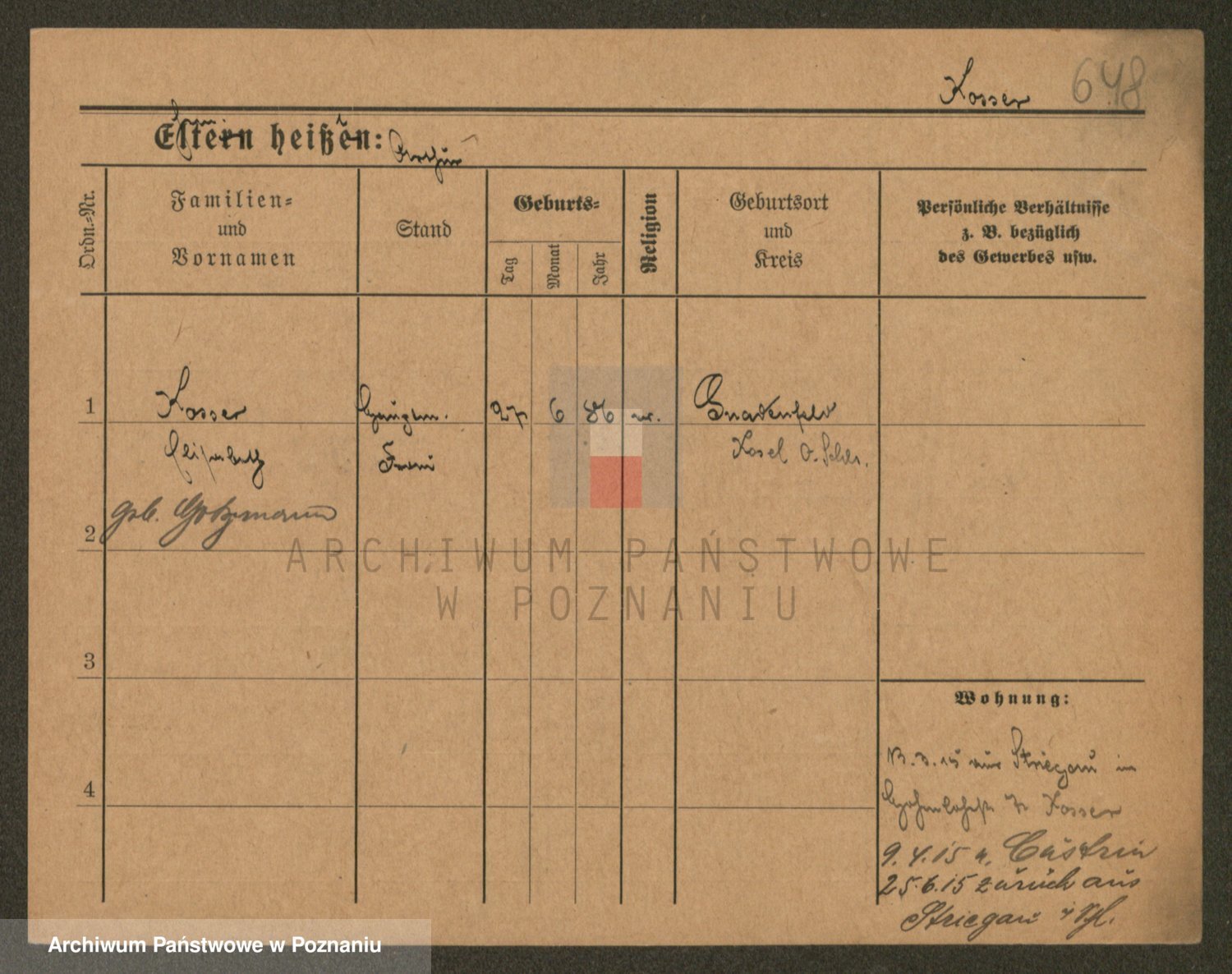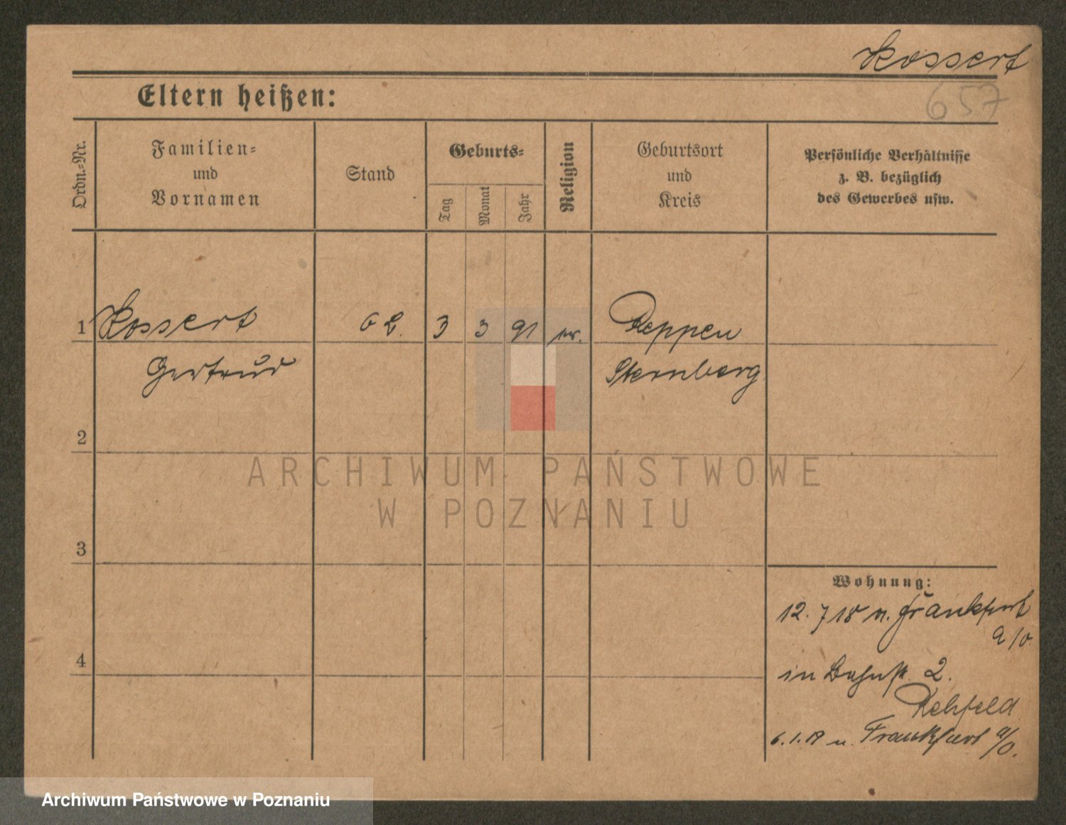 Podgląd karty osobowej dostępny jest po kliknięciu na nazwisko lub ikonkę karty. Można dokonywać powiększenia (ikony na górze) lub przechodzić między kolejnymi skanami (strzałki po bokach).