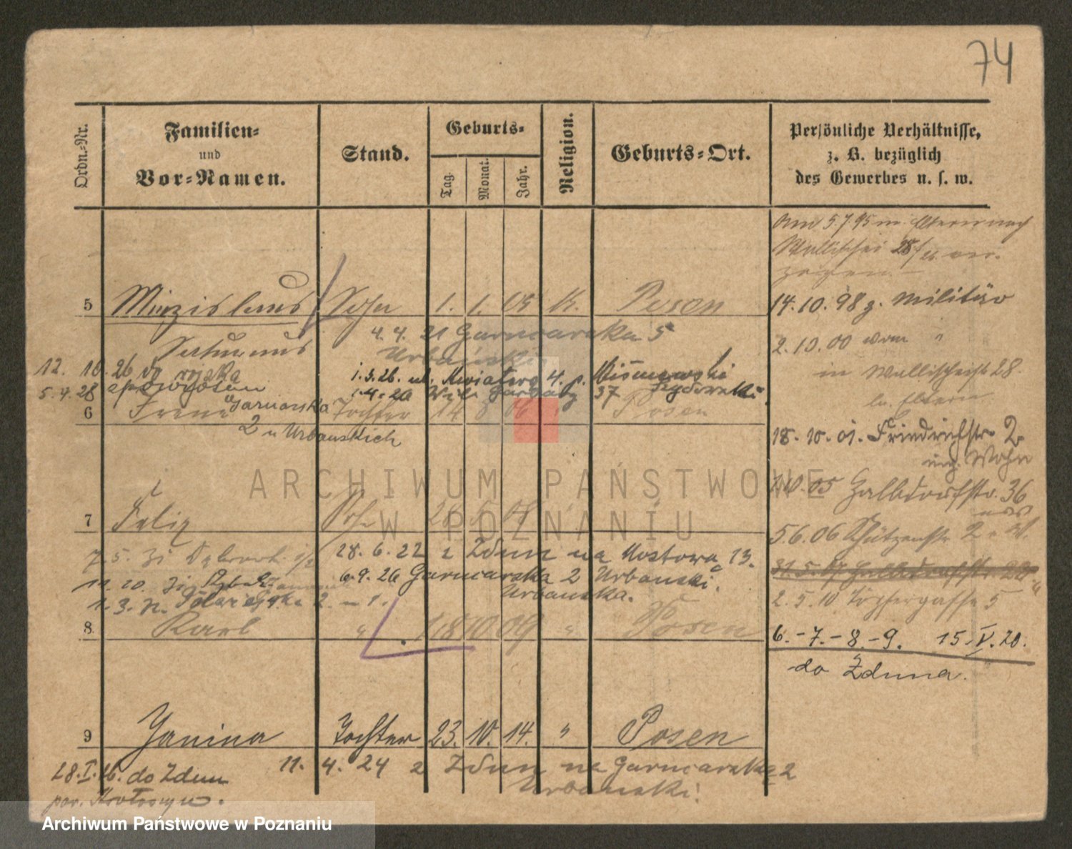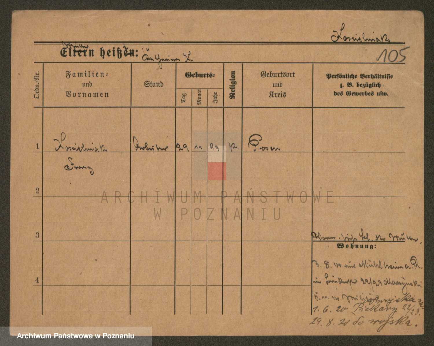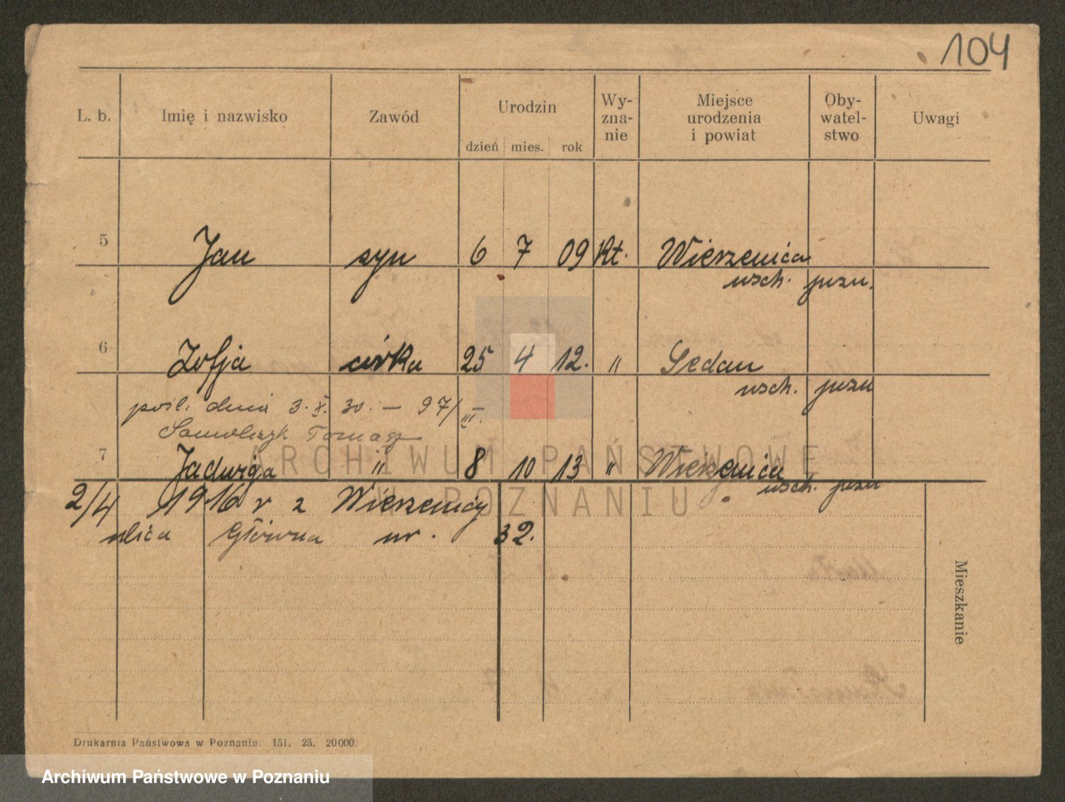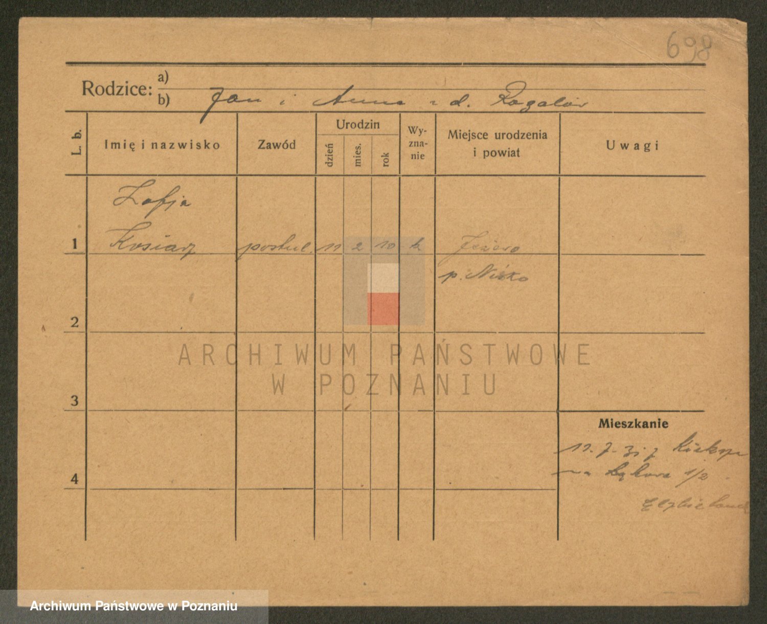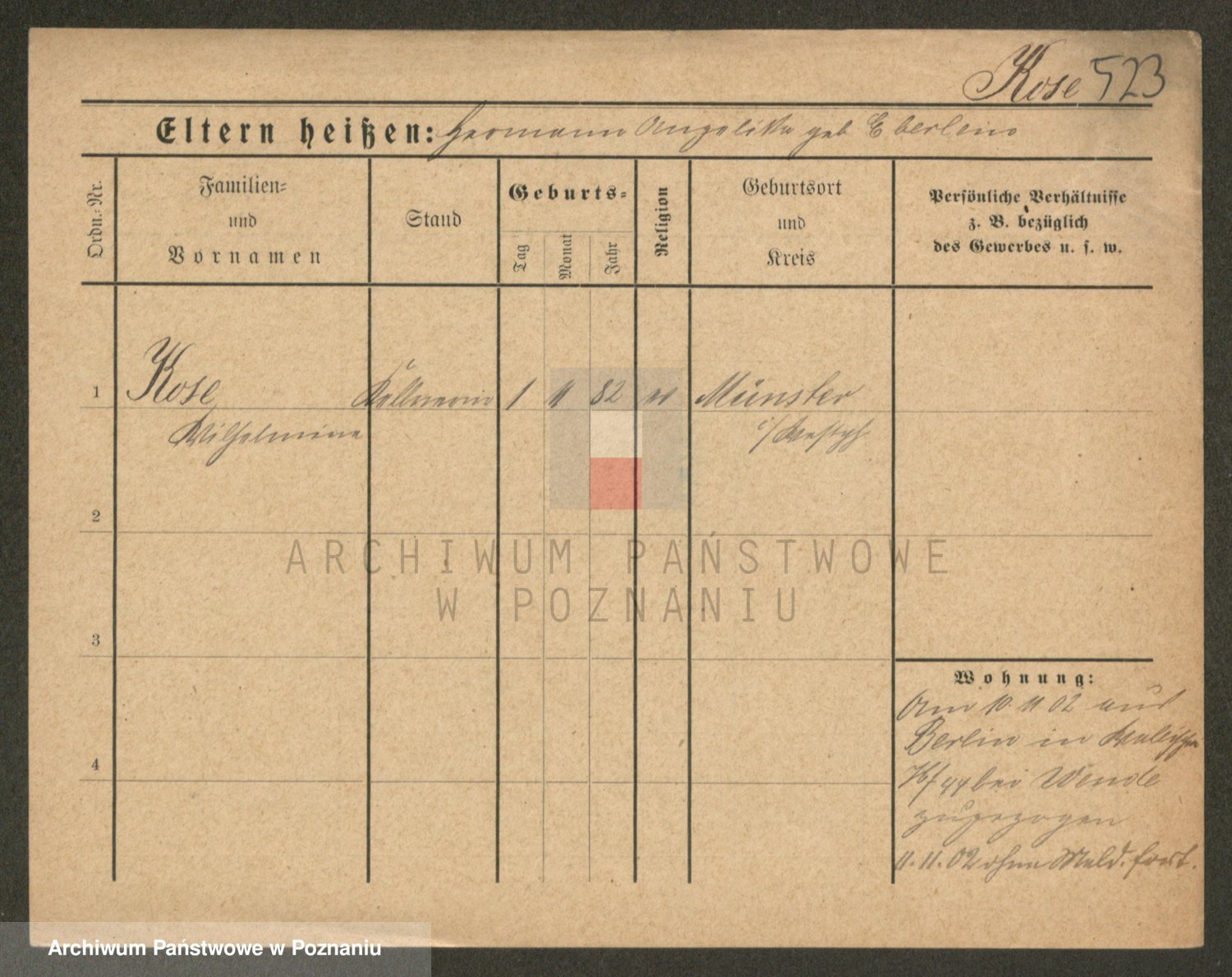 Podgląd karty osobowej dostępny jest po kliknięciu na nazwisko lub ikonkę karty. Można dokonywać powiększenia (ikony na górze) lub przechodzić między kolejnymi skanami (strzałki po bokach).