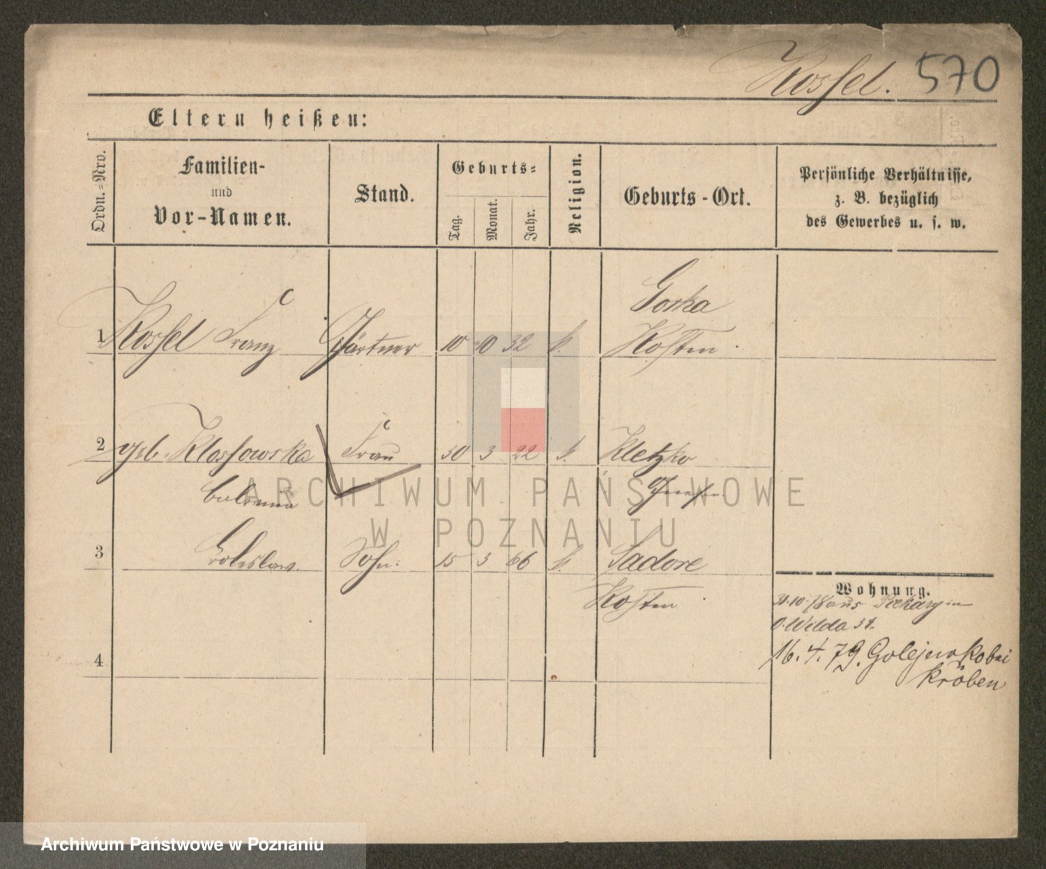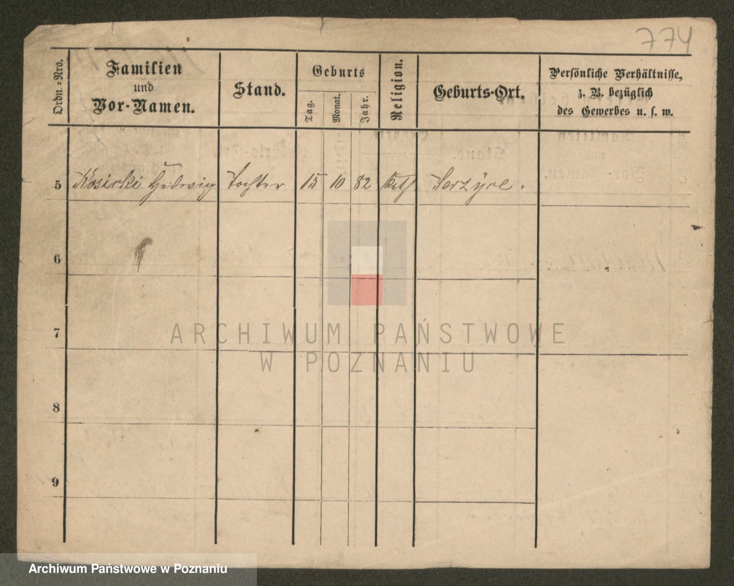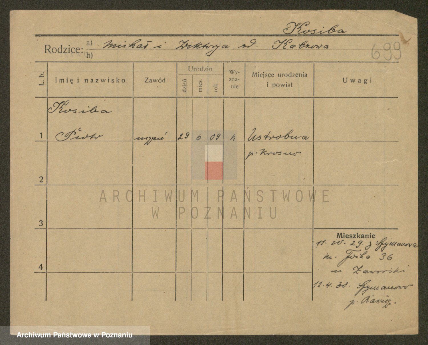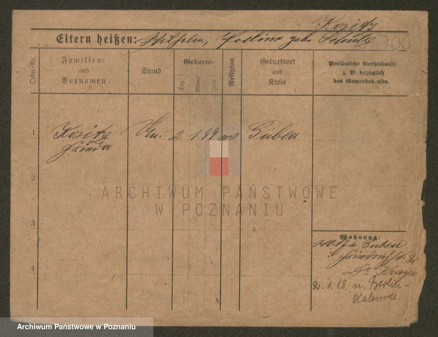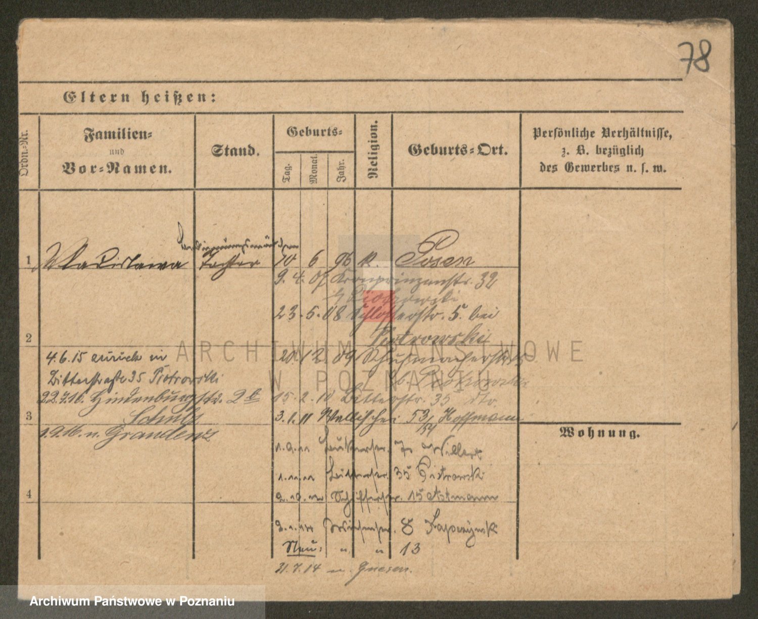 Podgląd karty osobowej dostępny jest po kliknięciu na nazwisko lub ikonkę karty. Można dokonywać powiększenia (ikony na górze) lub przechodzić między kolejnymi skanami (strzałki po bokach).