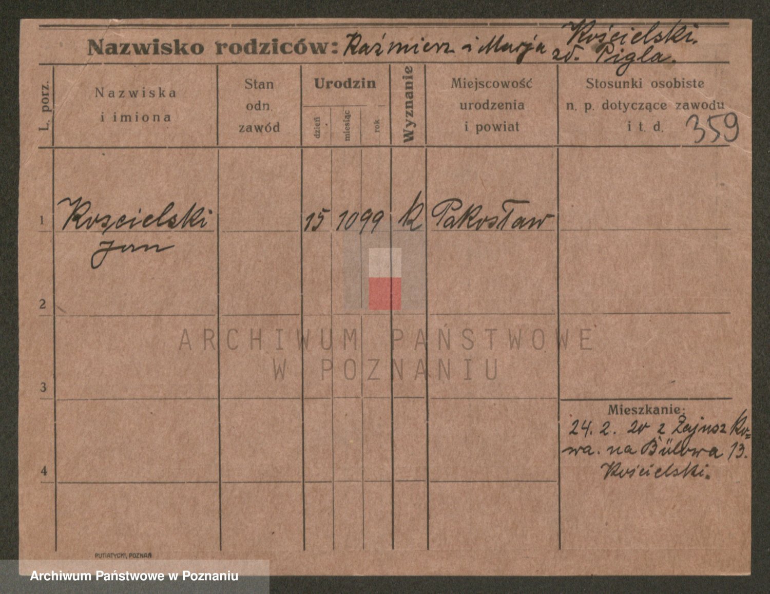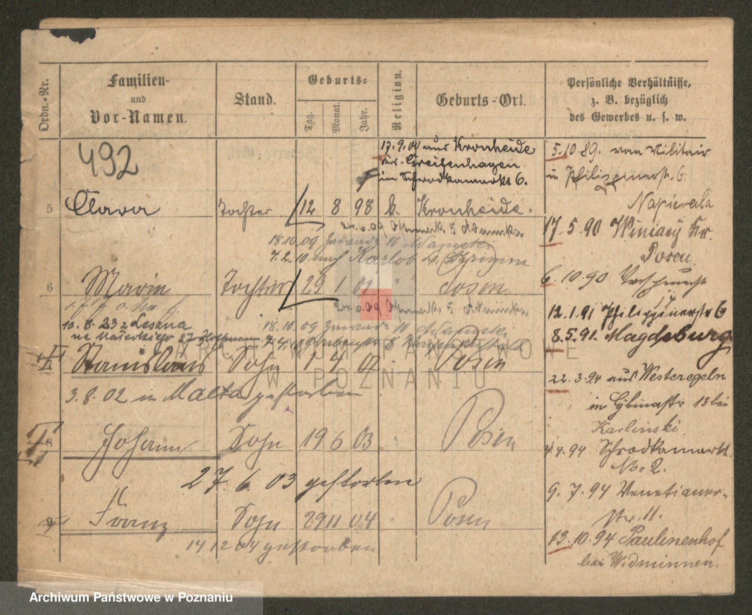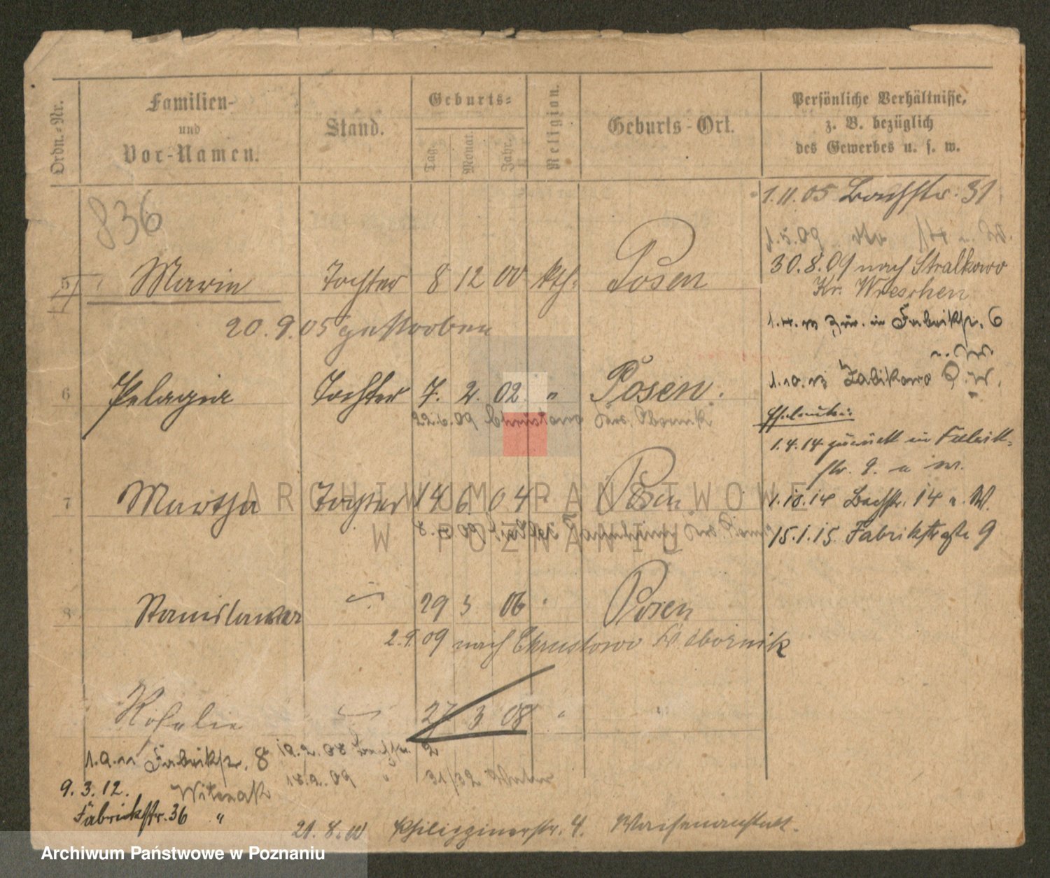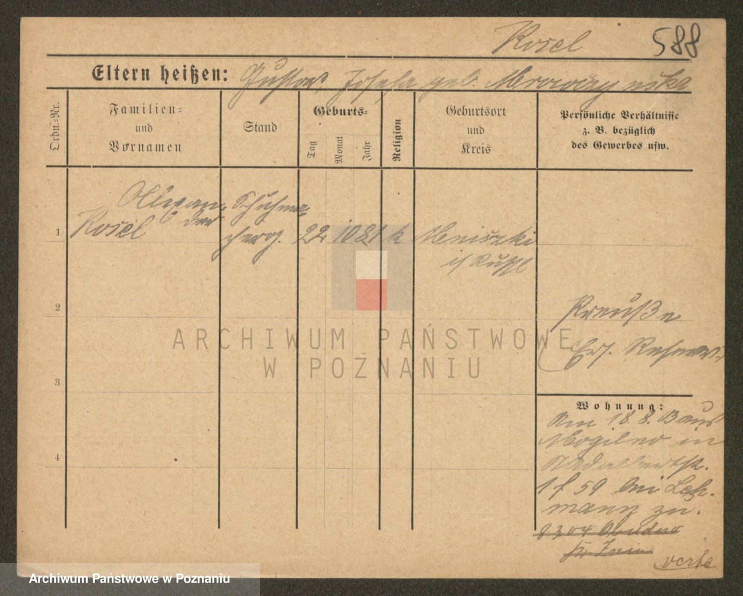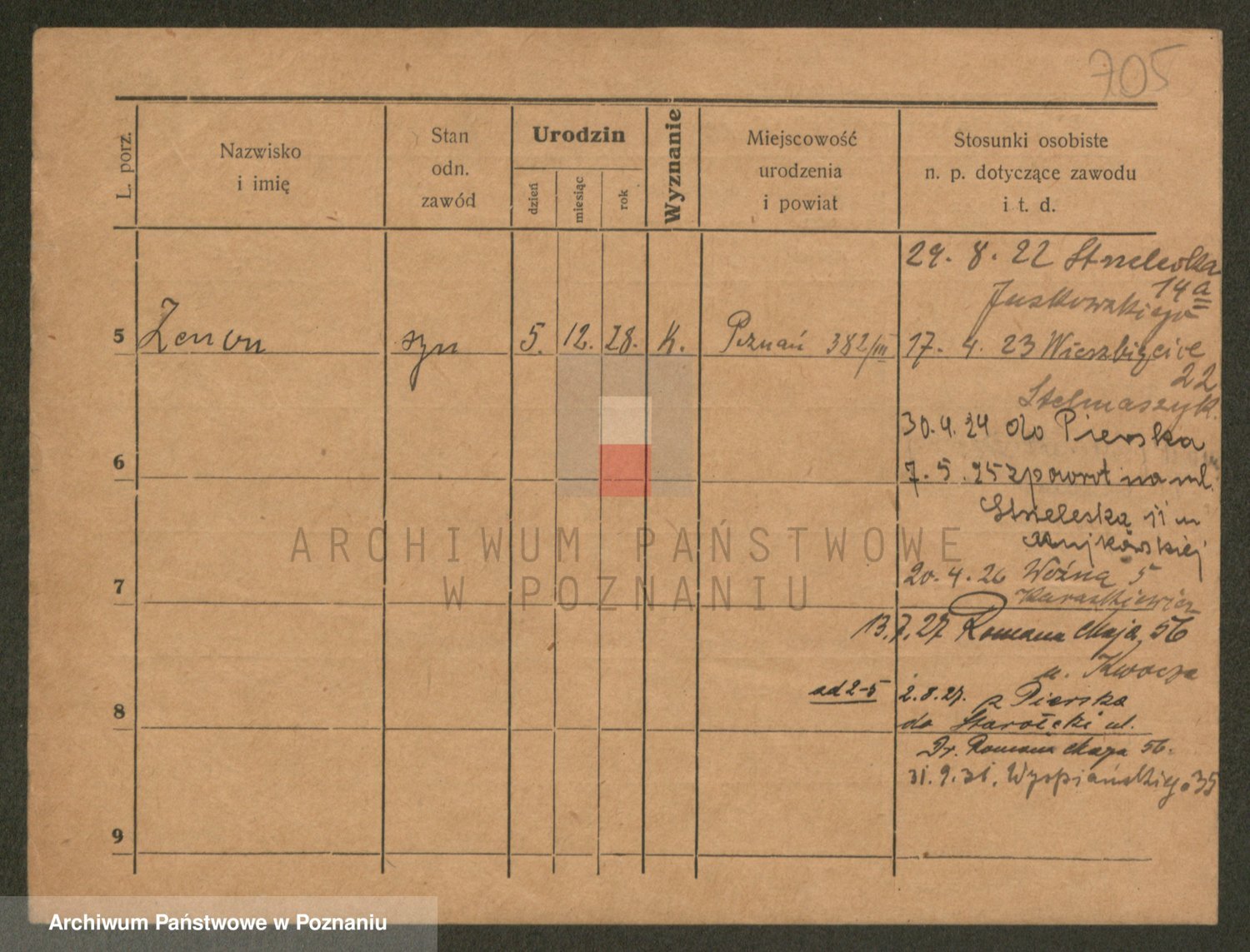 Podgląd karty osobowej dostępny jest po kliknięciu na nazwisko lub ikonkę karty. Można dokonywać powiększenia (ikony na górze) lub przechodzić między kolejnymi skanami (strzałki po bokach).
