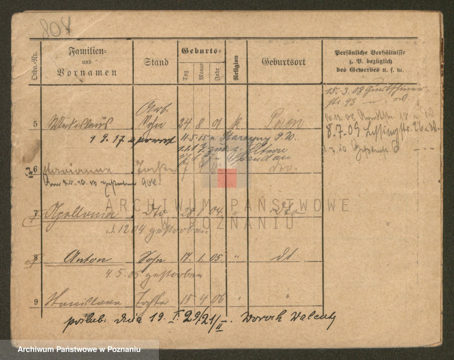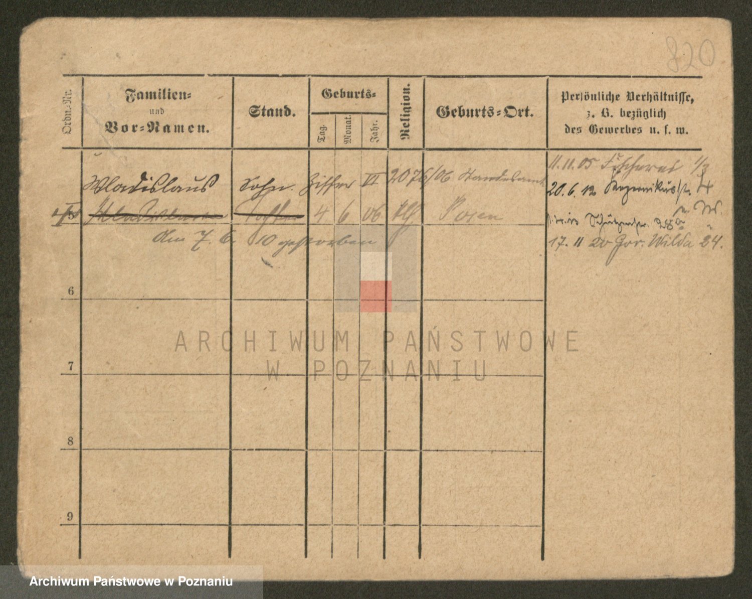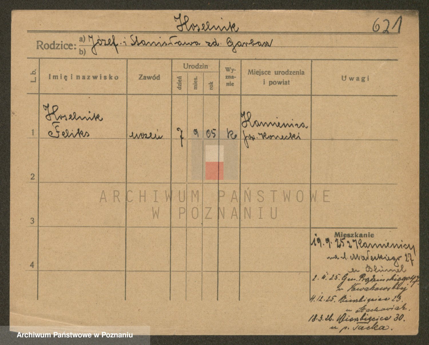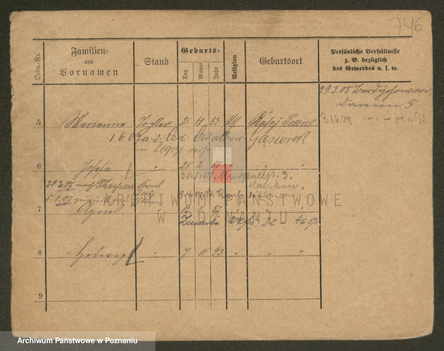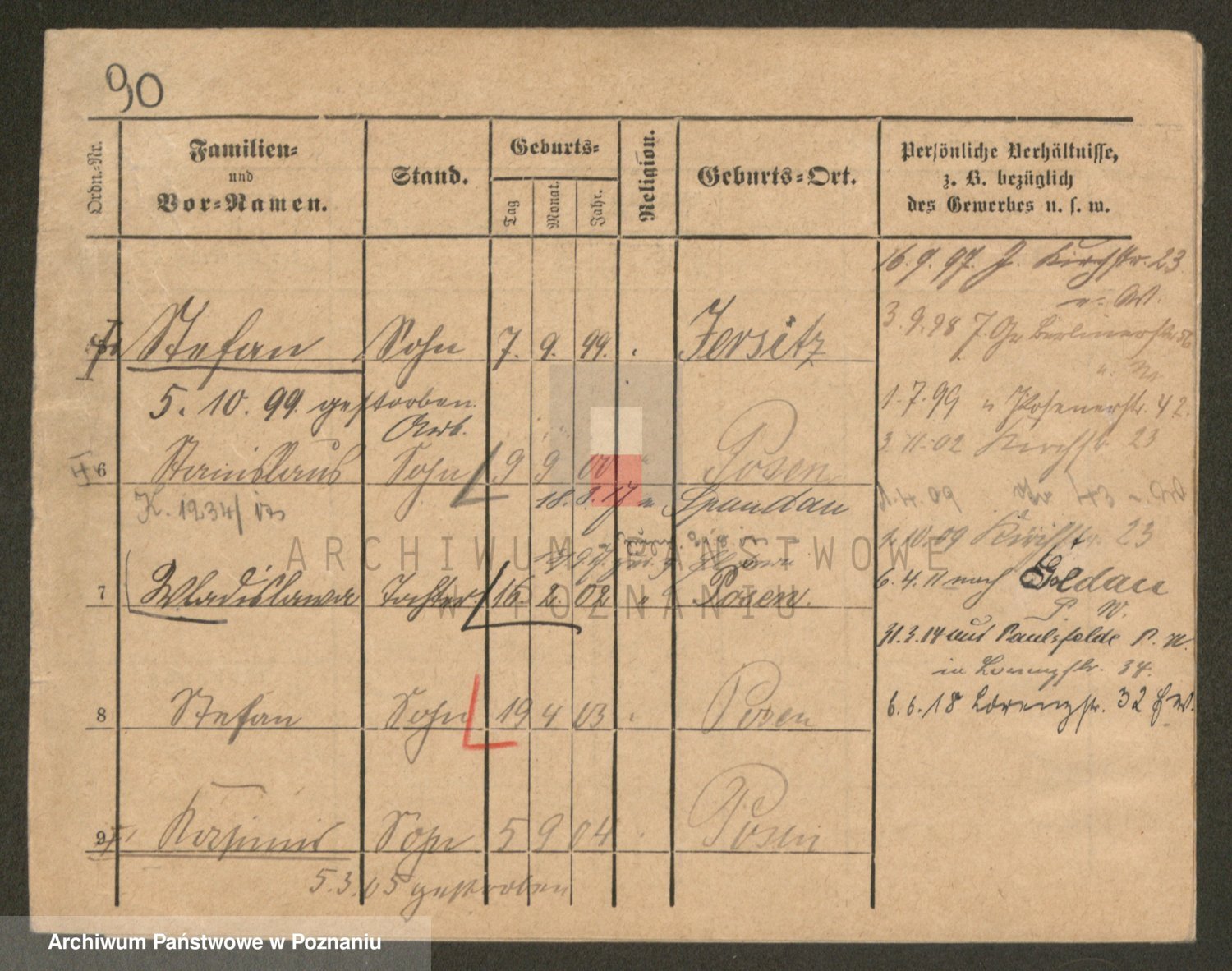 Podgląd karty osobowej dostępny jest po kliknięciu na nazwisko lub ikonkę karty. Można dokonywać powiększenia (ikony na górze) lub przechodzić między kolejnymi skanami (strzałki po bokach).