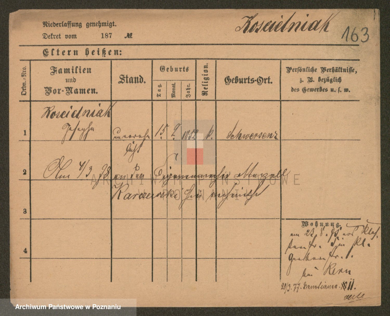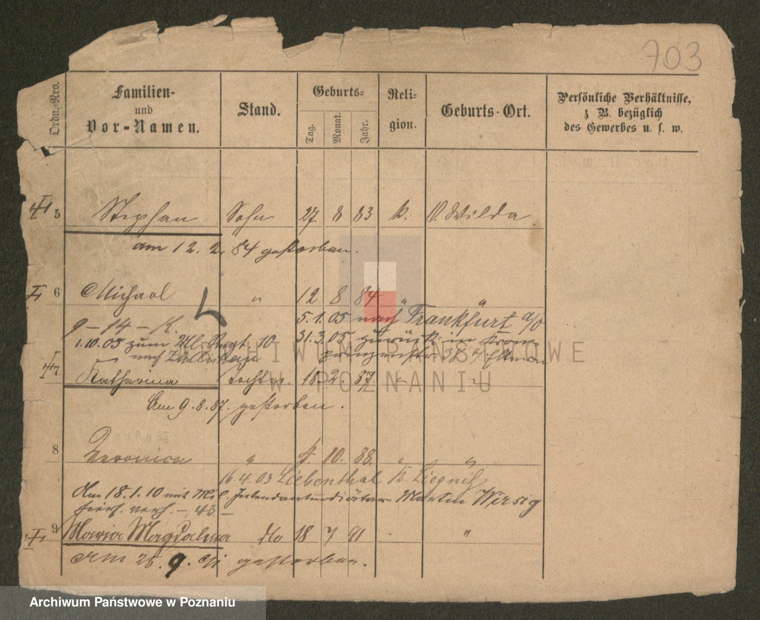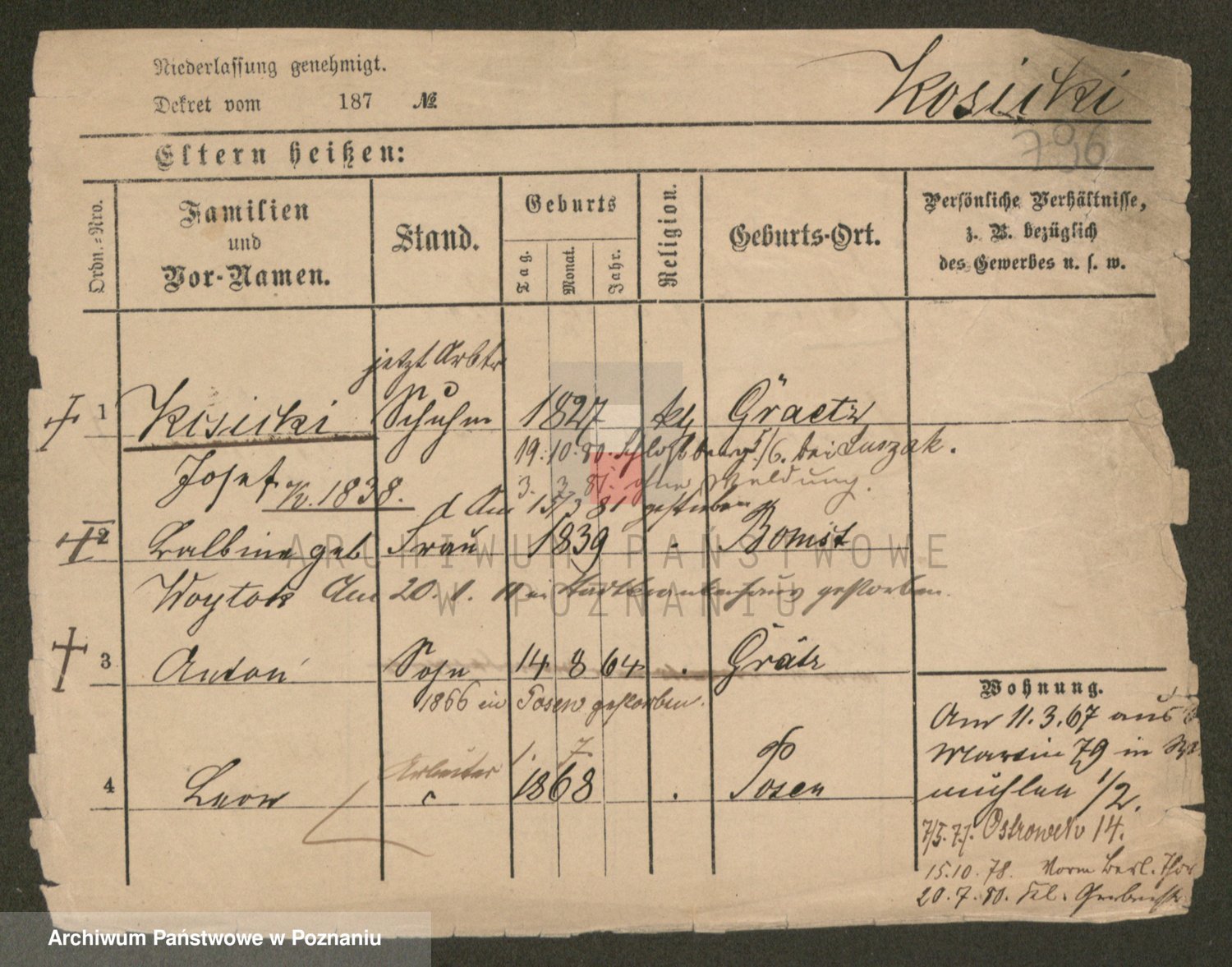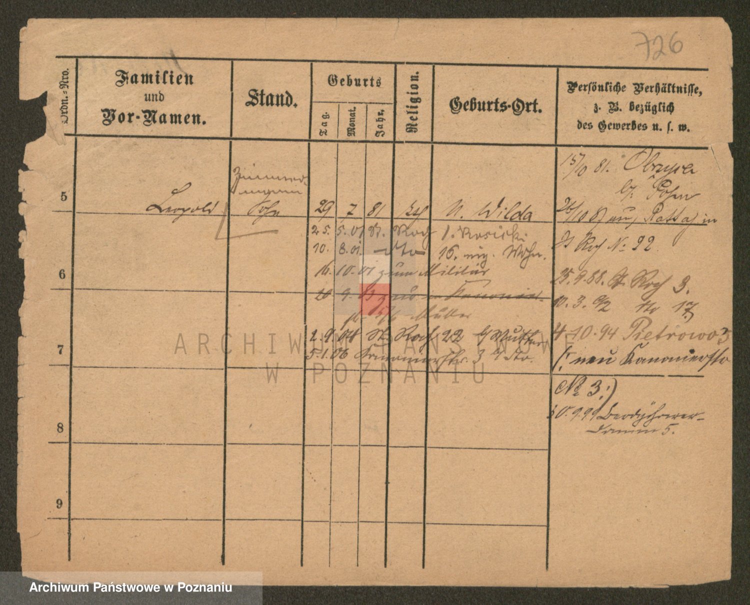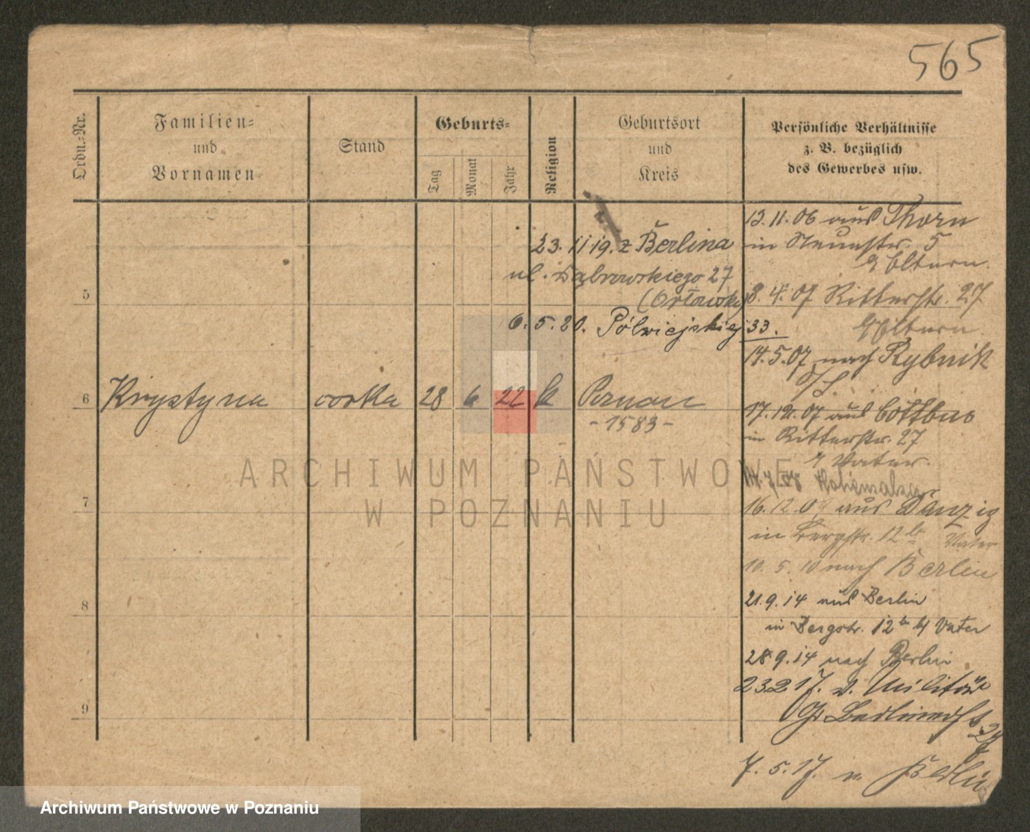 Podgląd karty osobowej dostępny jest po kliknięciu na nazwisko lub ikonkę karty. Można dokonywać powiększenia (ikony na górze) lub przechodzić między kolejnymi skanami (strzałki po bokach).