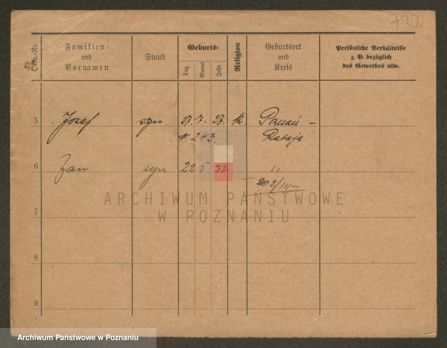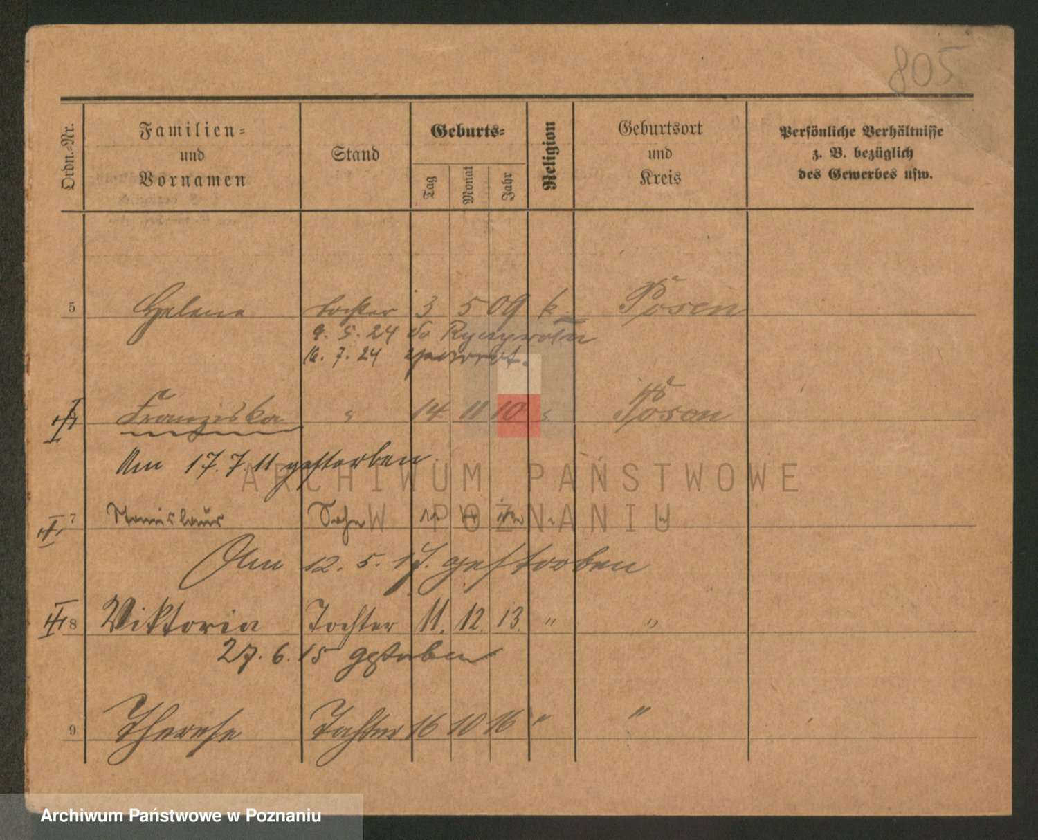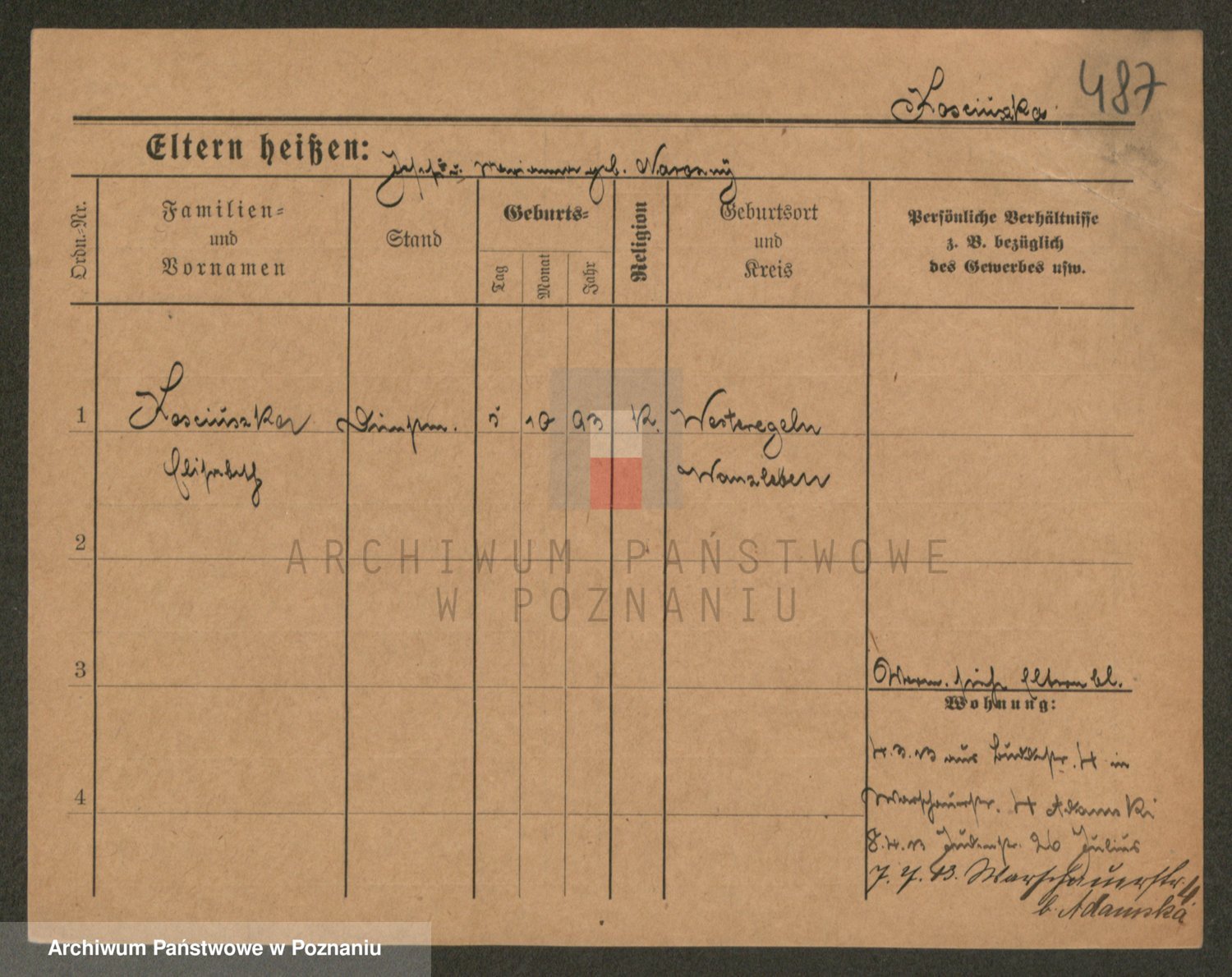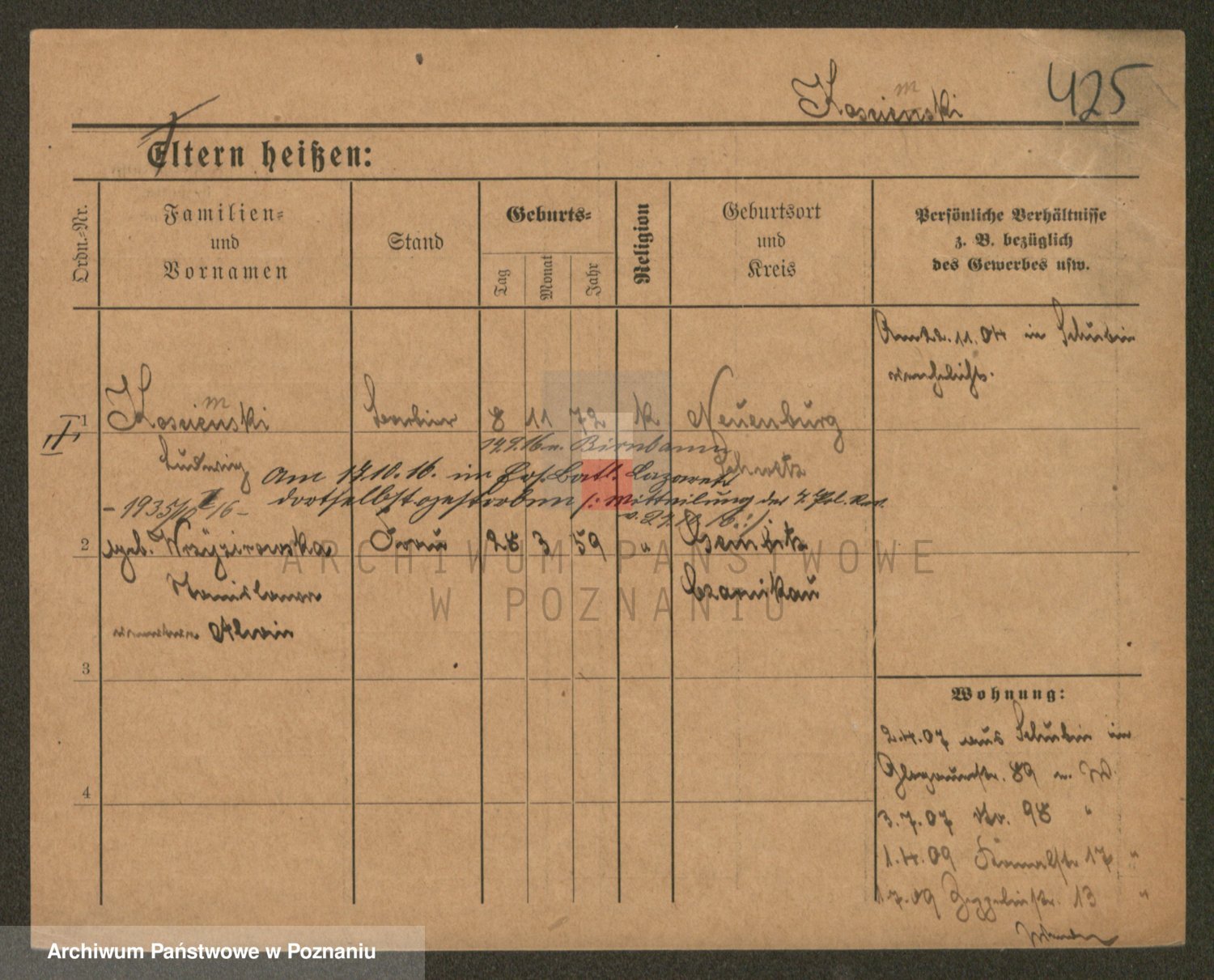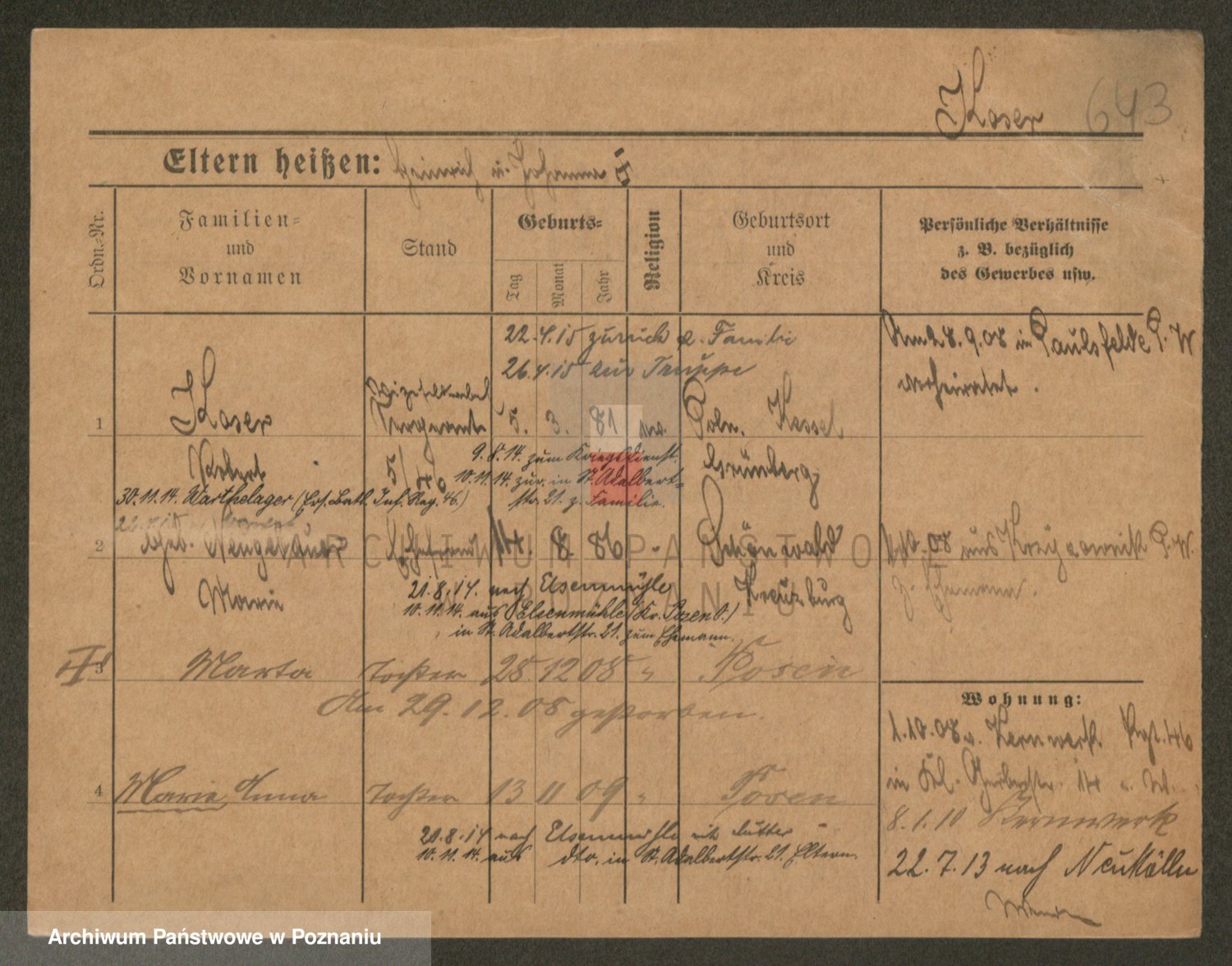Podgląd karty osobowej dostępny jest po kliknięciu na nazwisko lub ikonkę karty. Można dokonywać powiększenia (ikony na górze) lub przechodzić między kolejnymi skanami (strzałki po bokach).